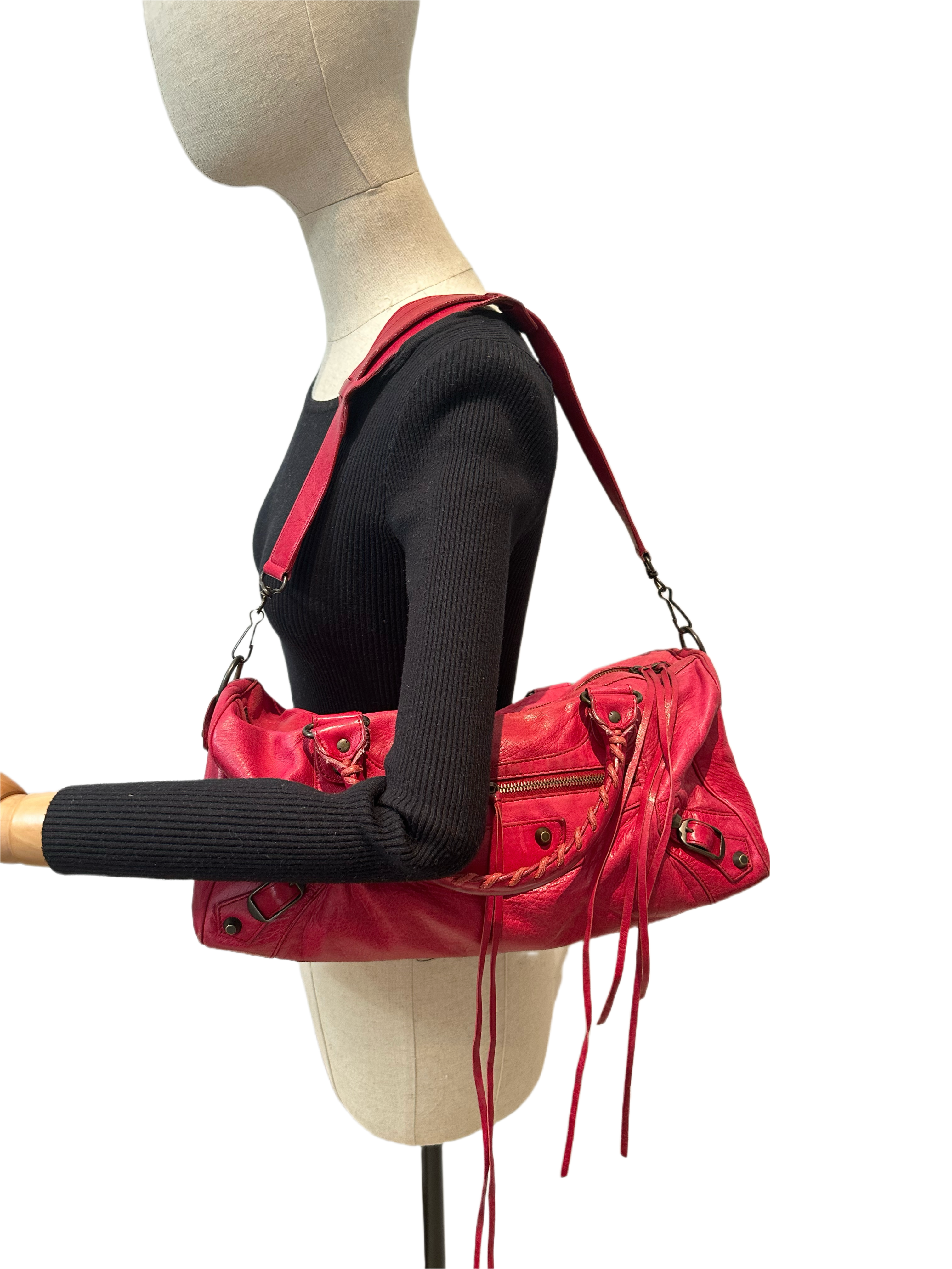 Balenciaga Red City Leather Shoulder Bag