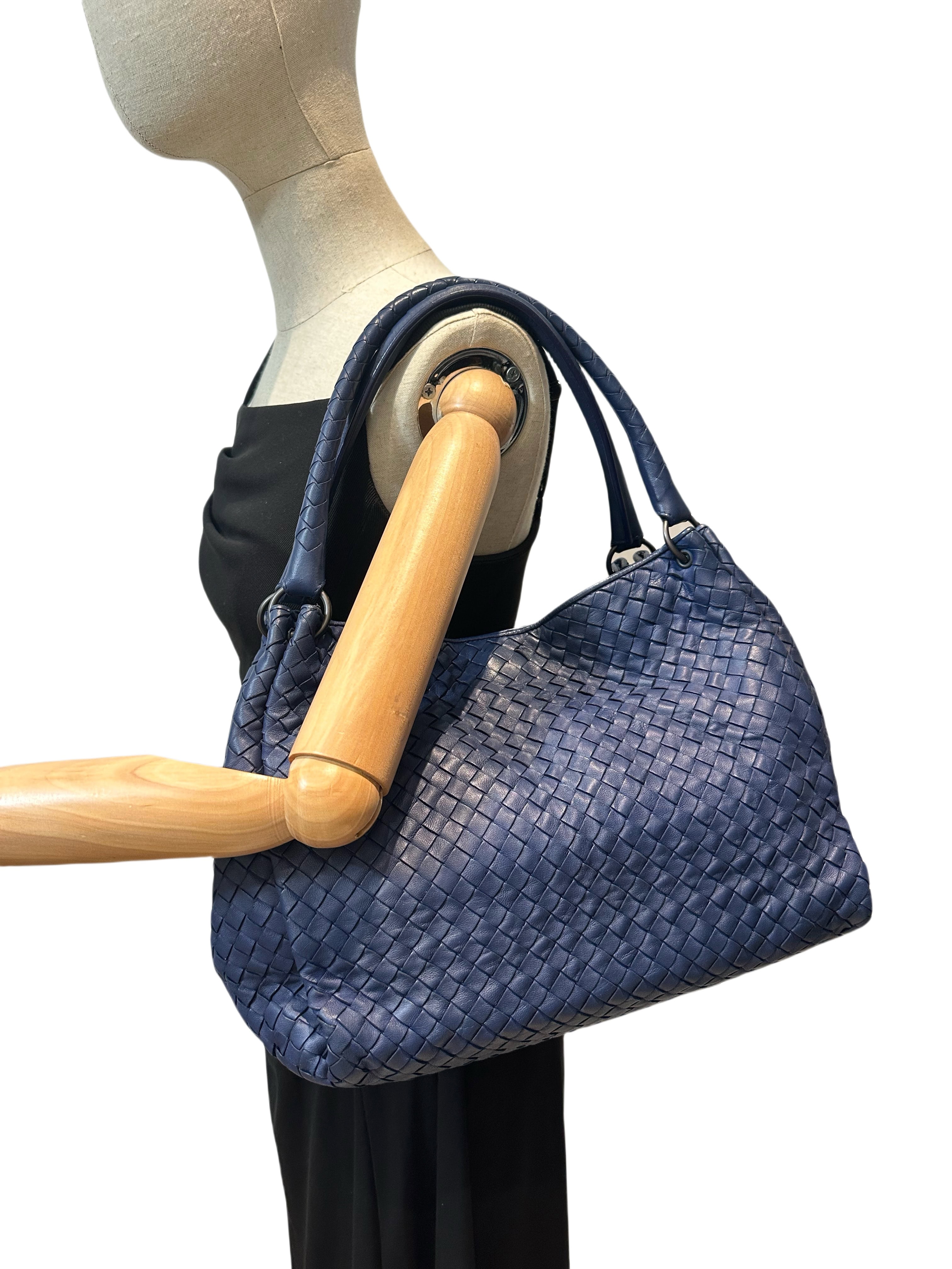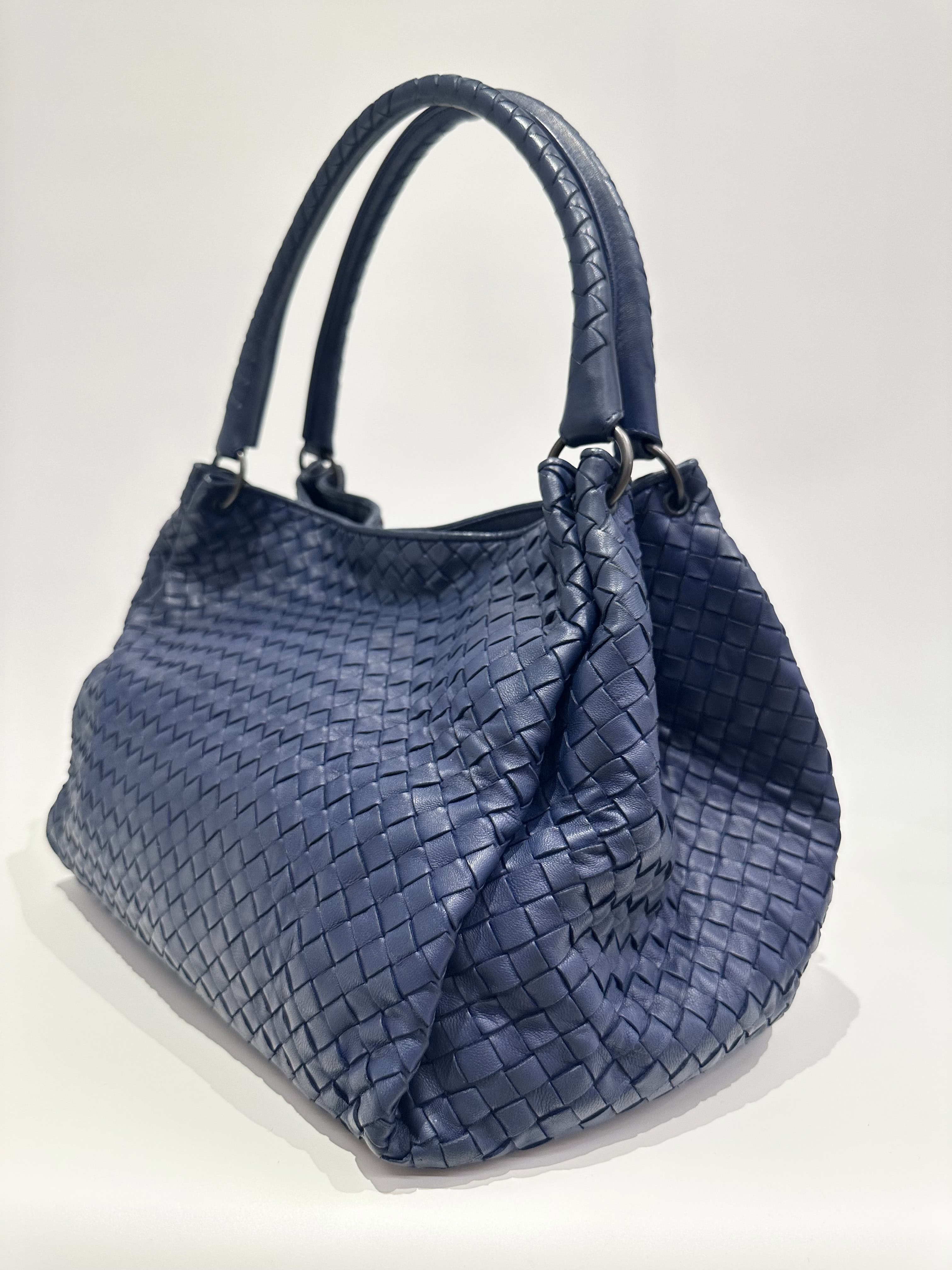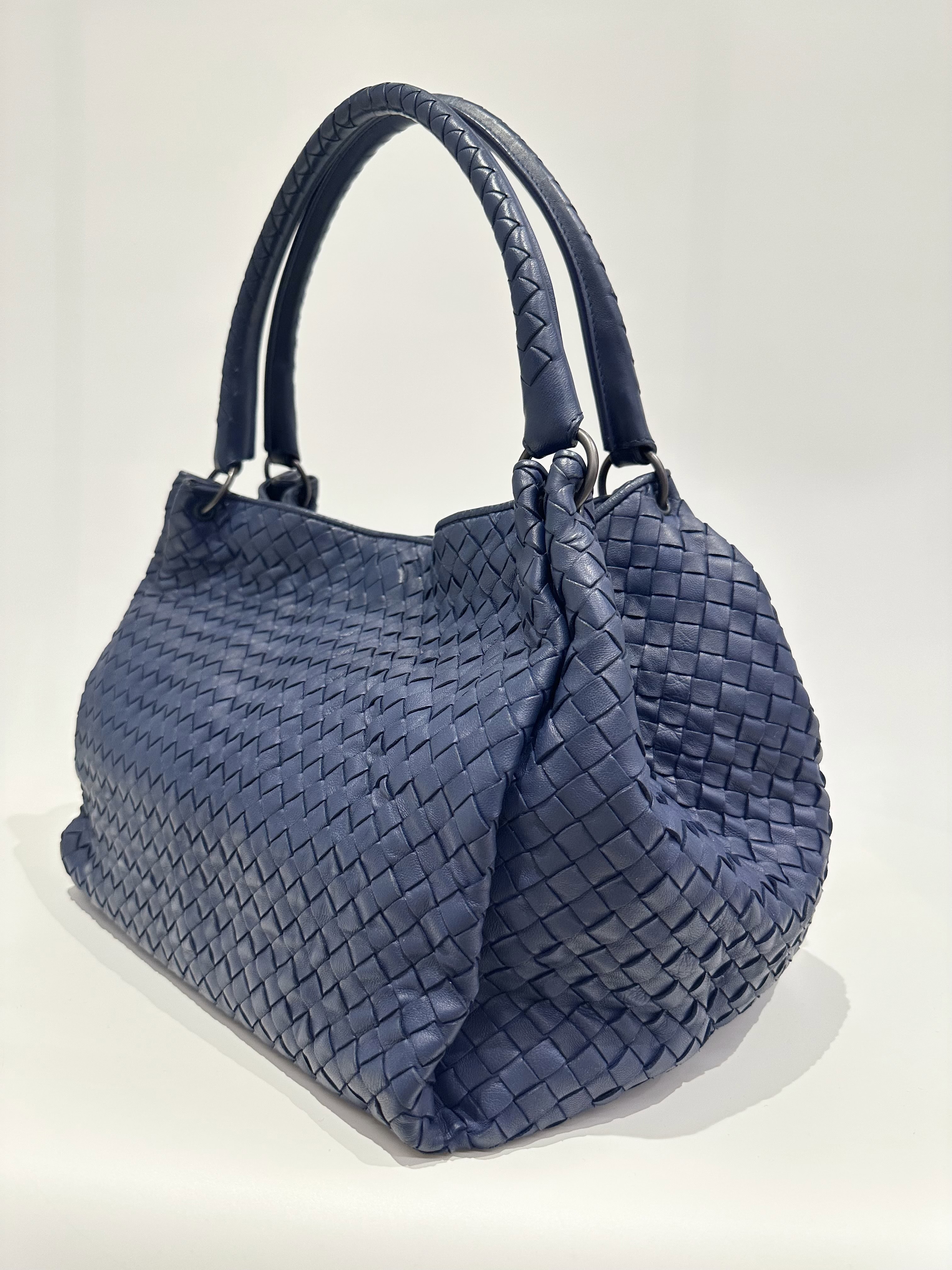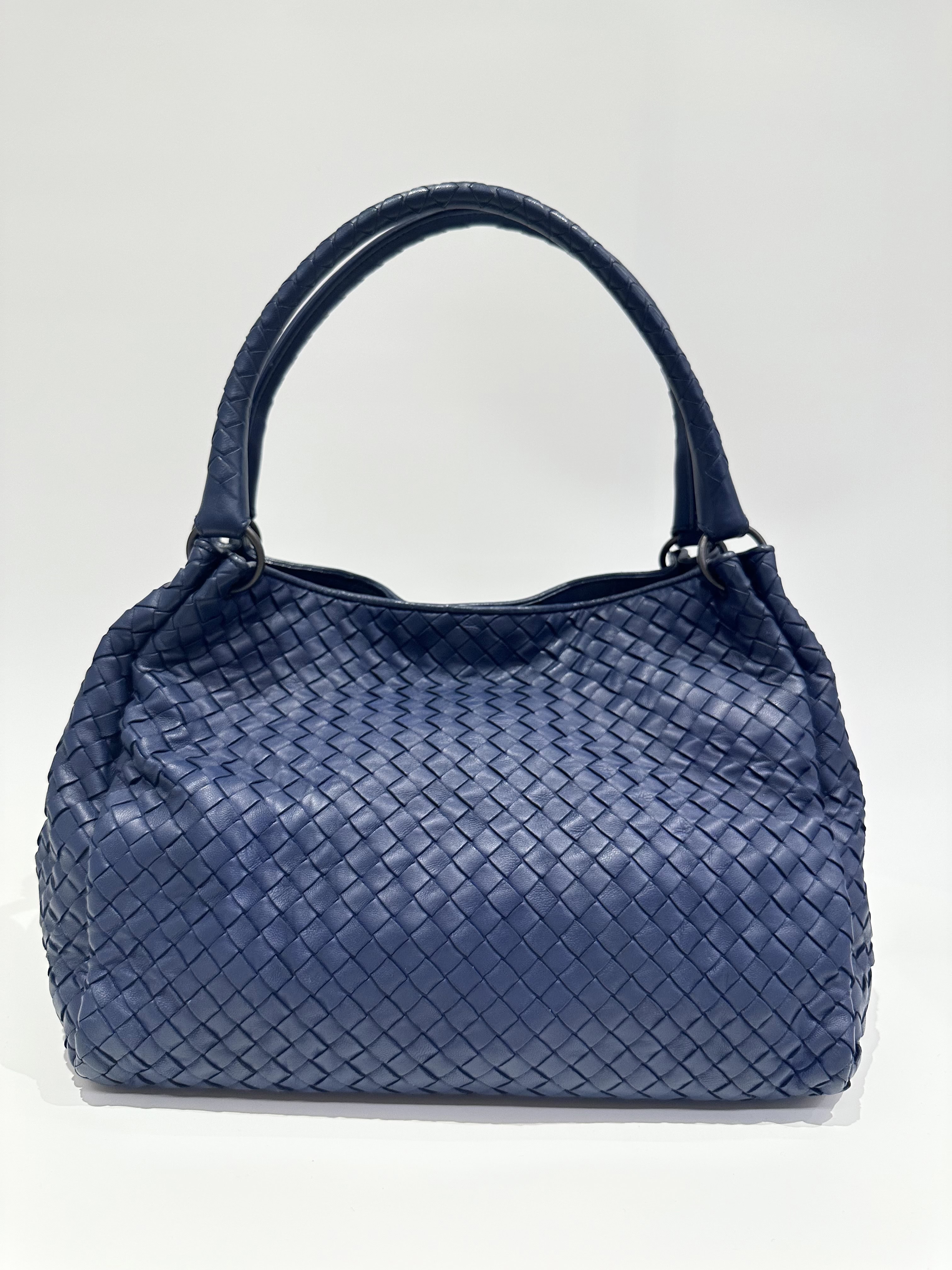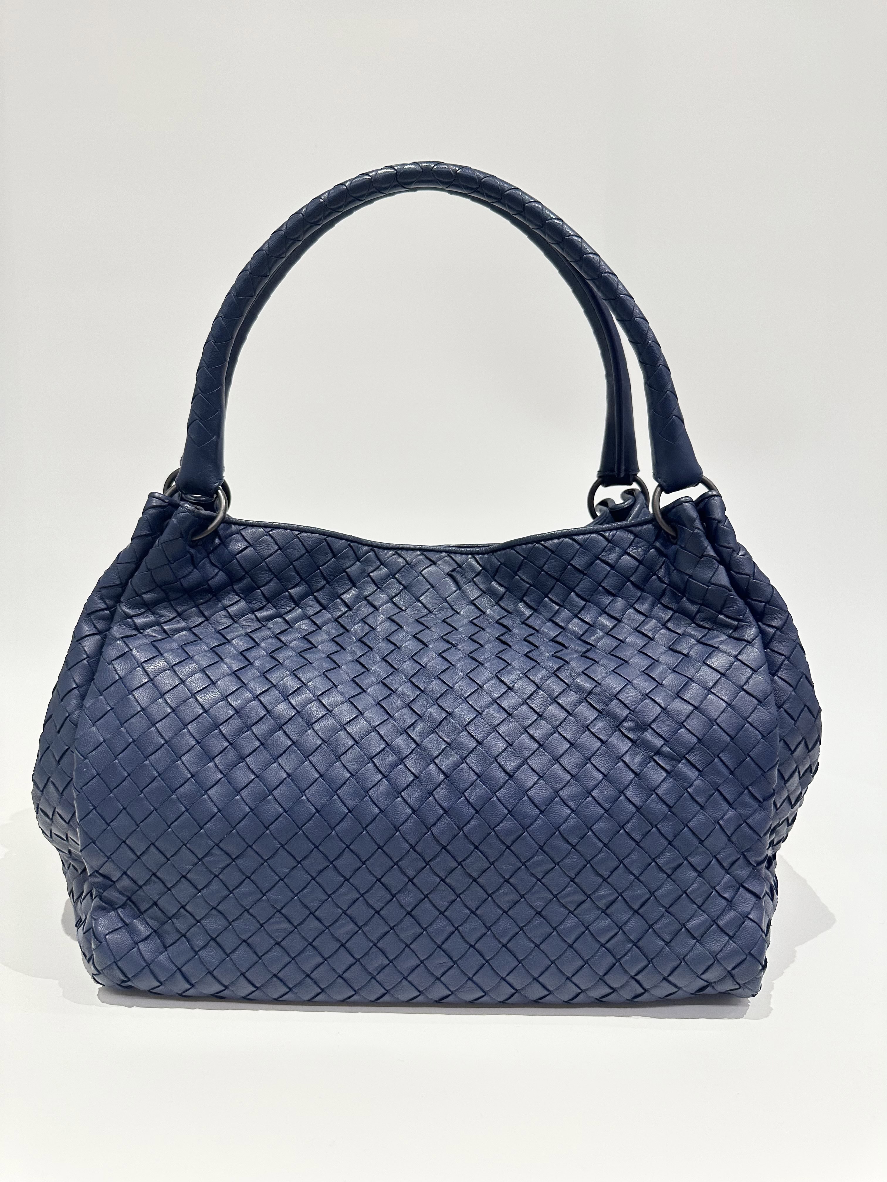 Bottega Veneta Blue Navy Leather Tote Bag