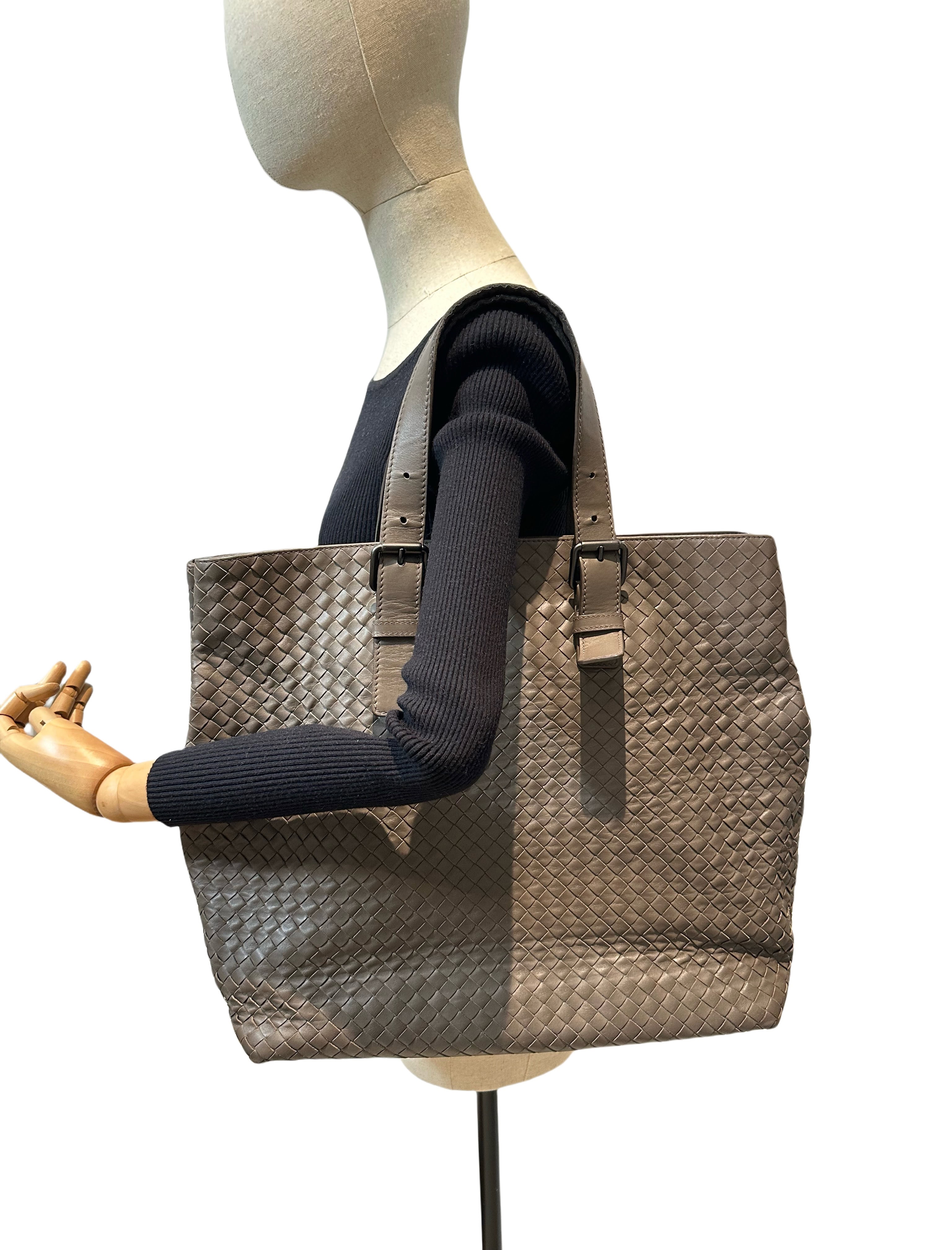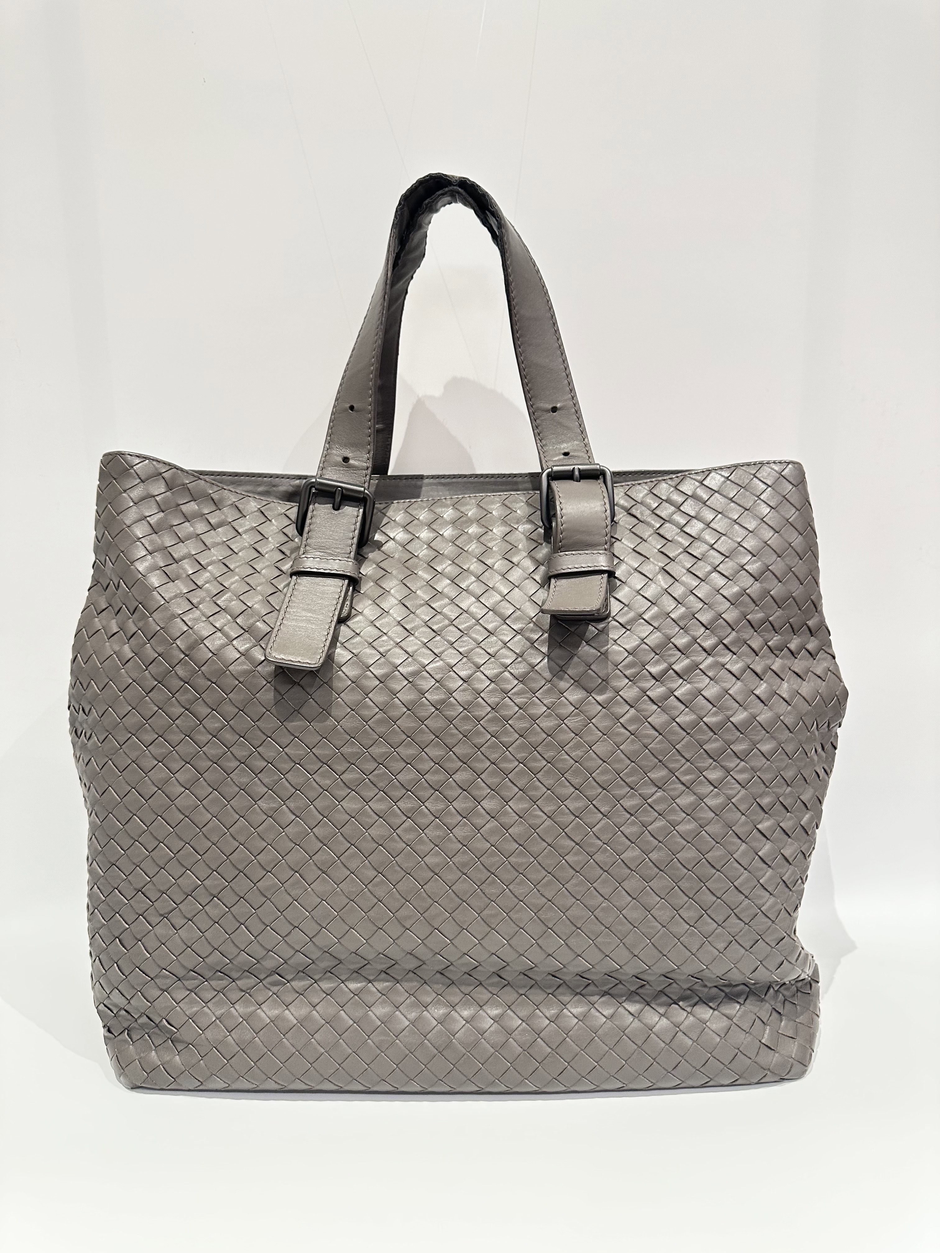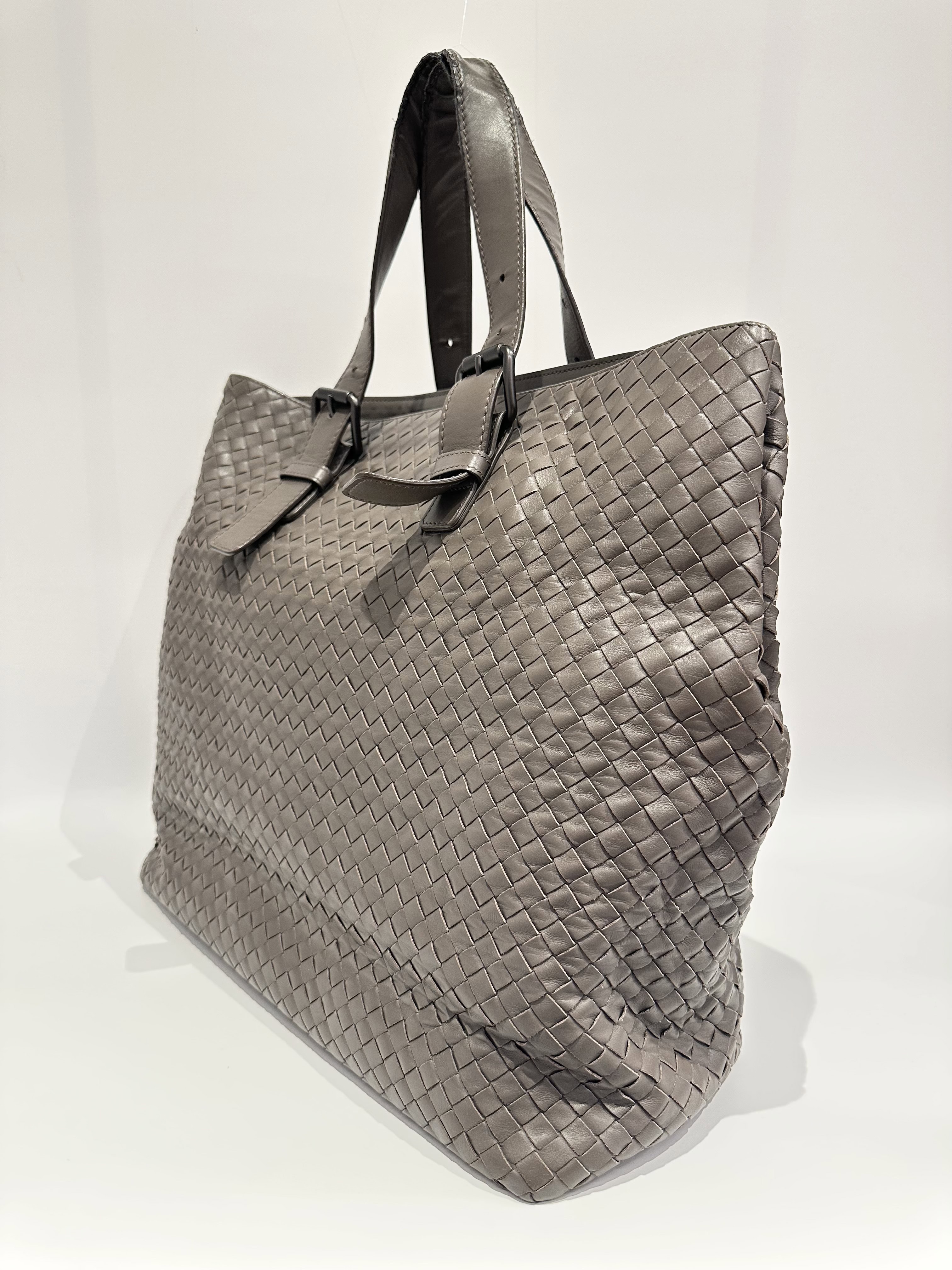 Bottega Veneta Grey Inrecciato Leather Tote Bag