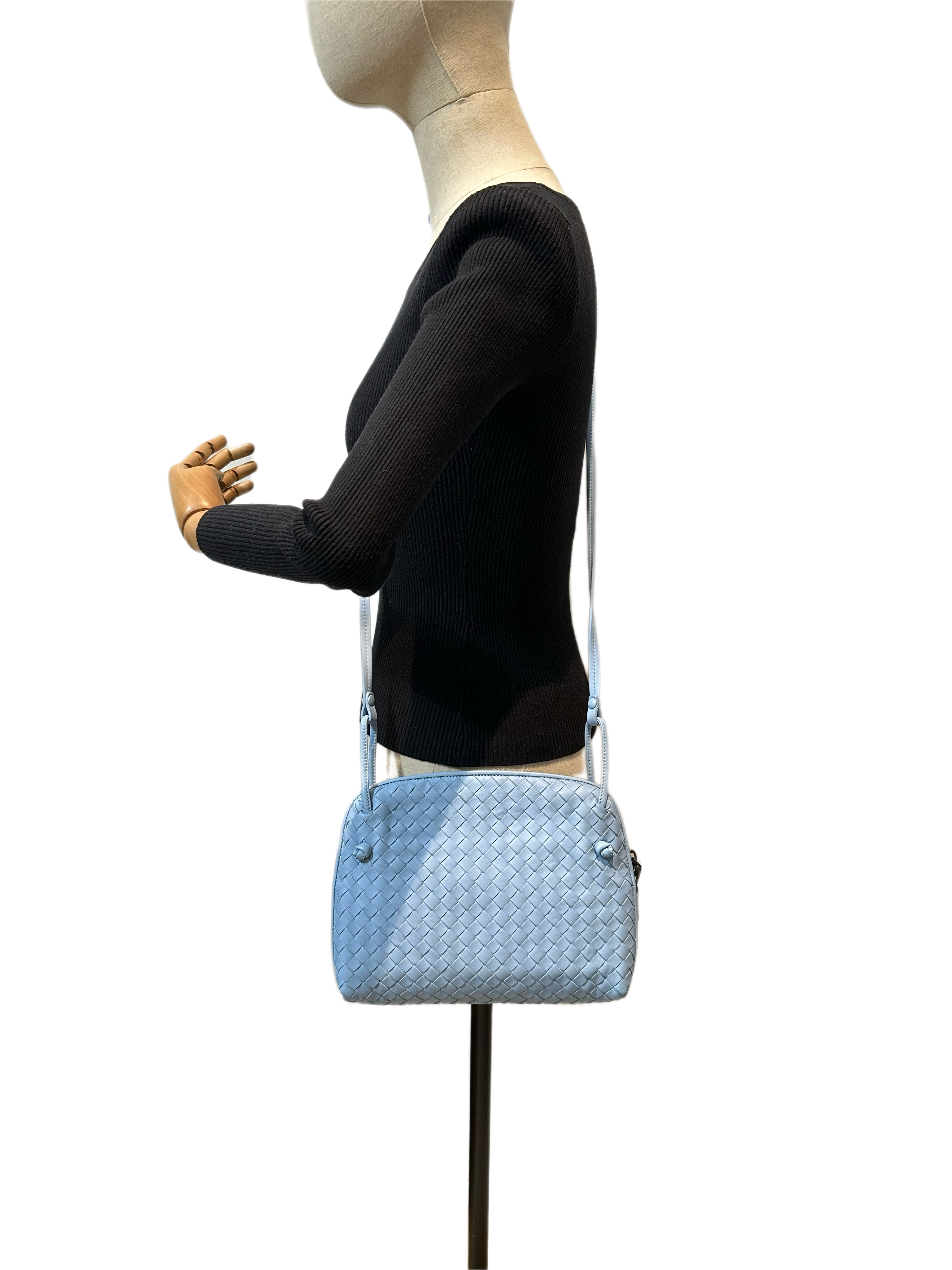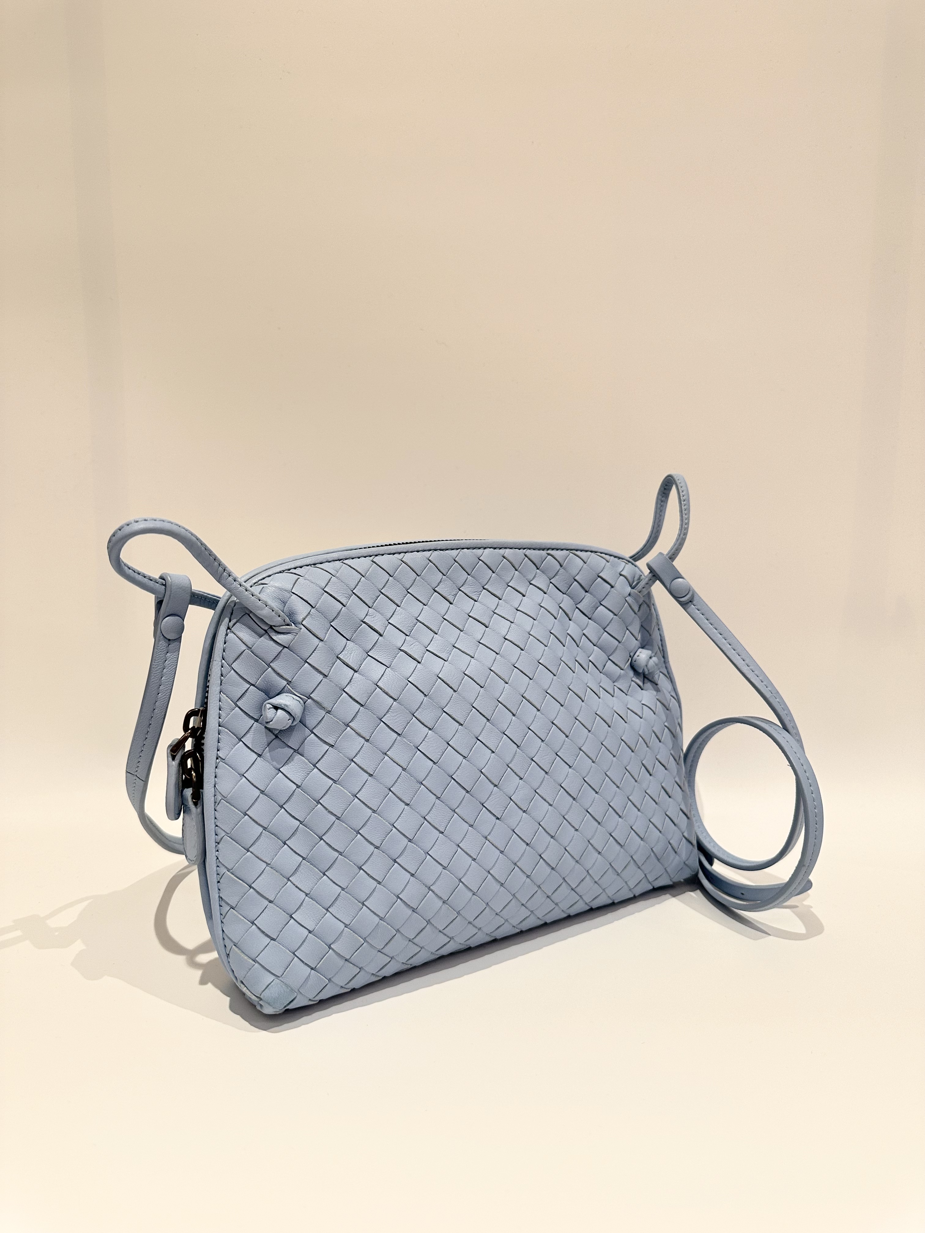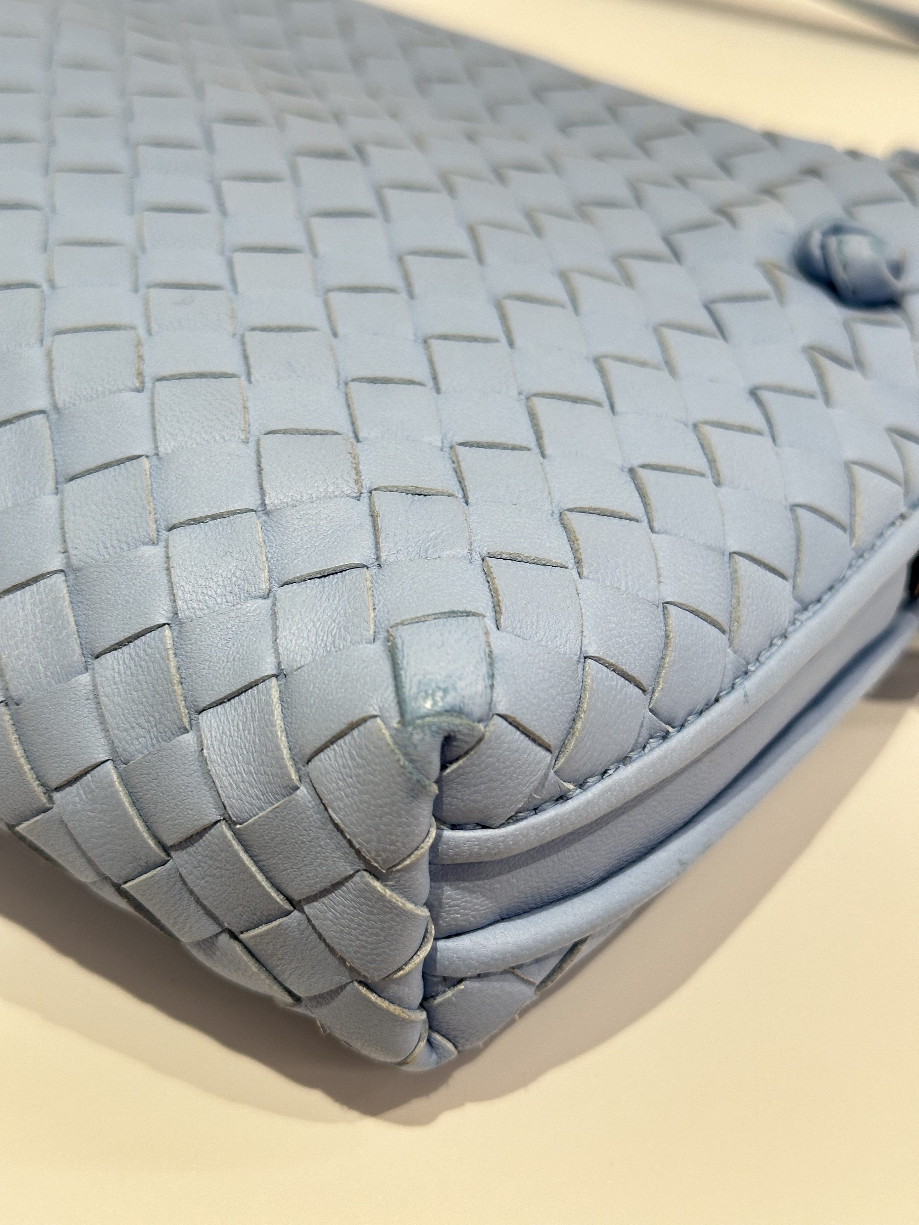 Bottega Veneta light blue loop crossbody leather bag