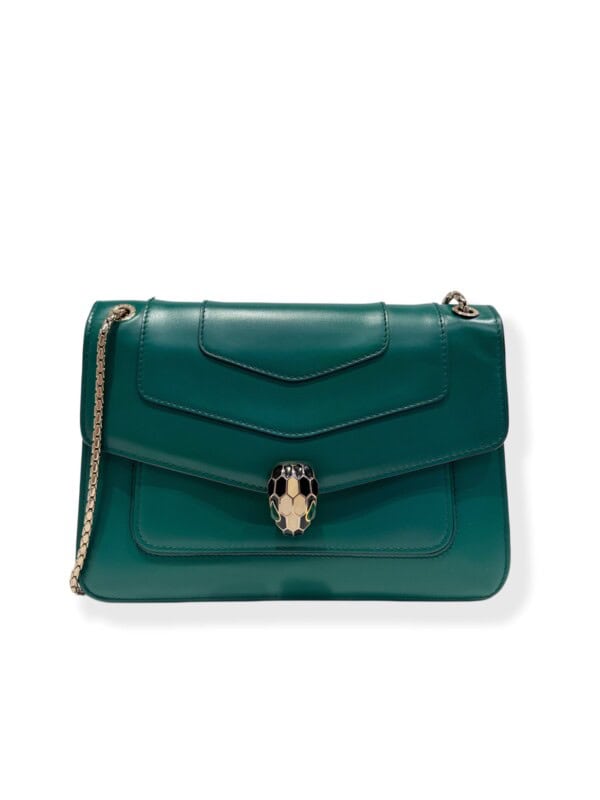 Bvlgari Green Serpenti Leather Handbag