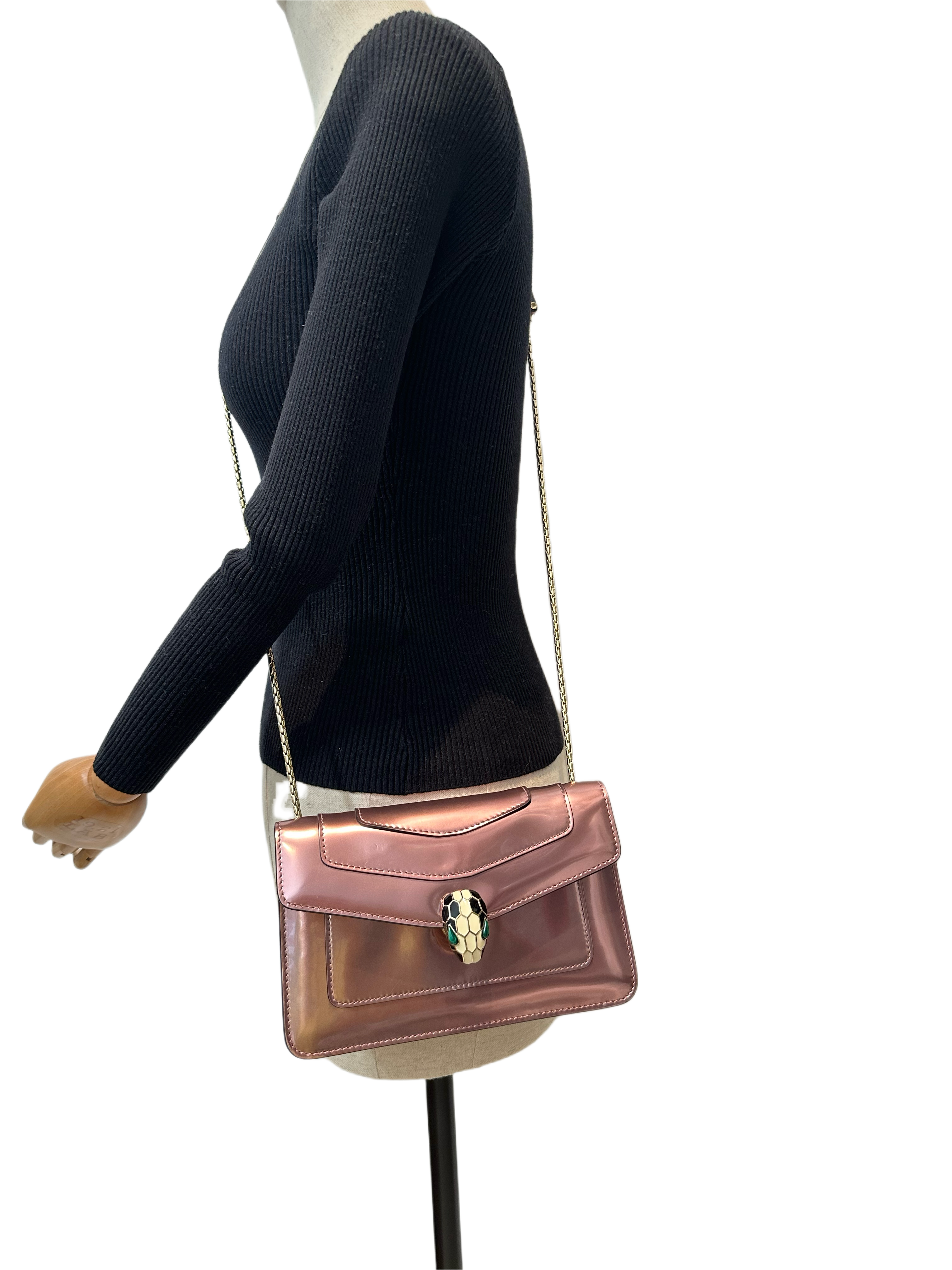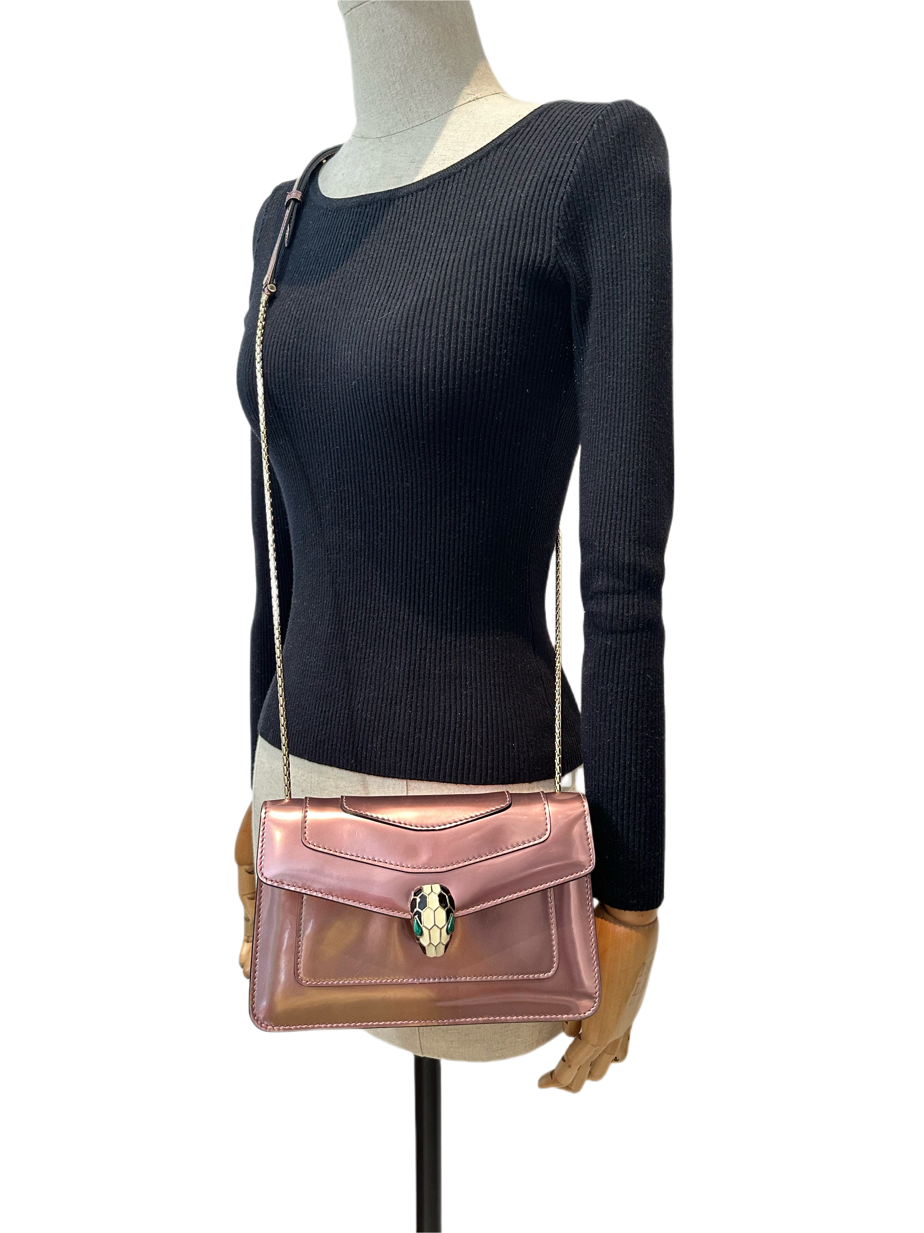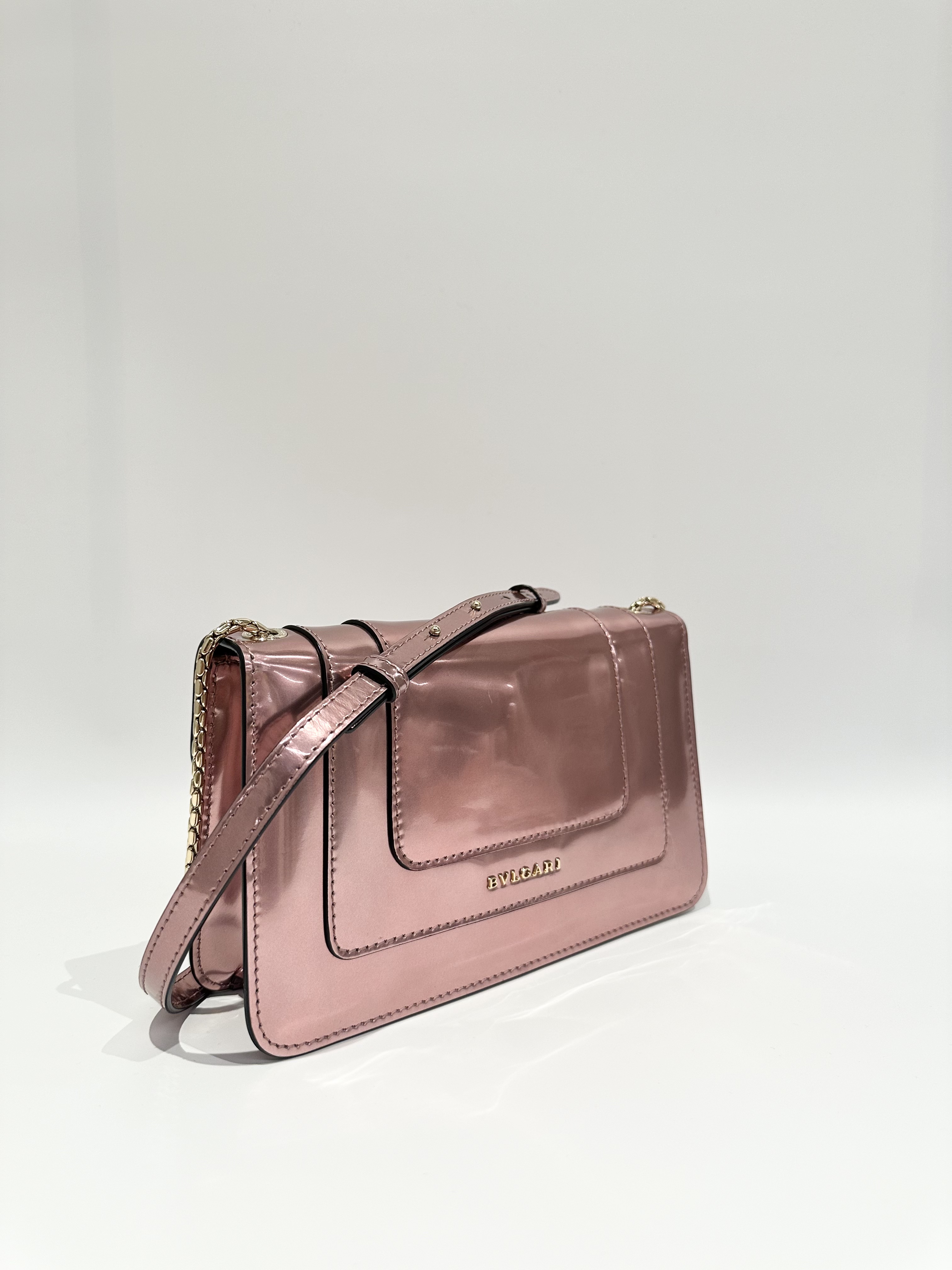 Bvlgari Pink Metallic Calfskin Serpenti Crossbody Bag