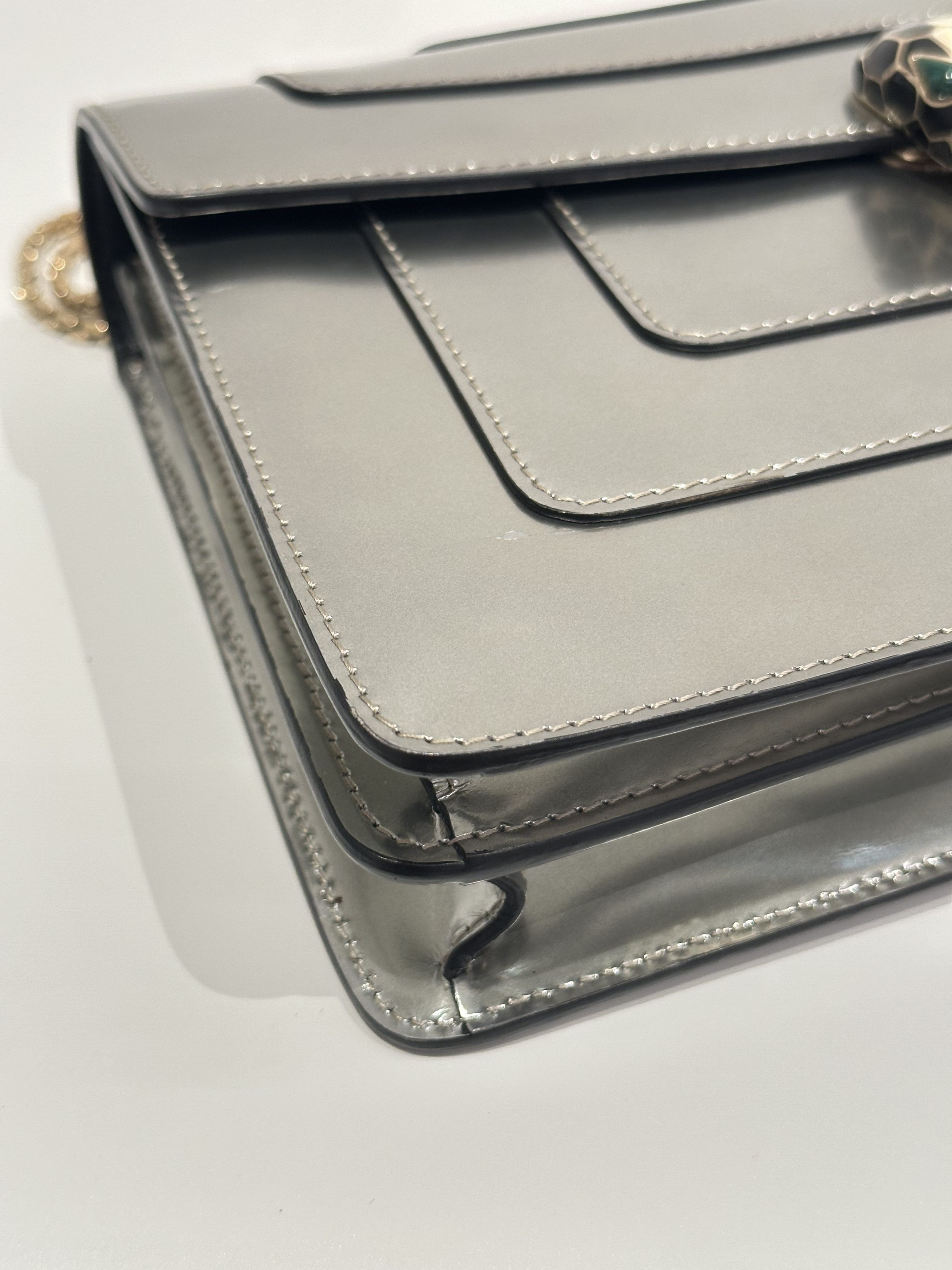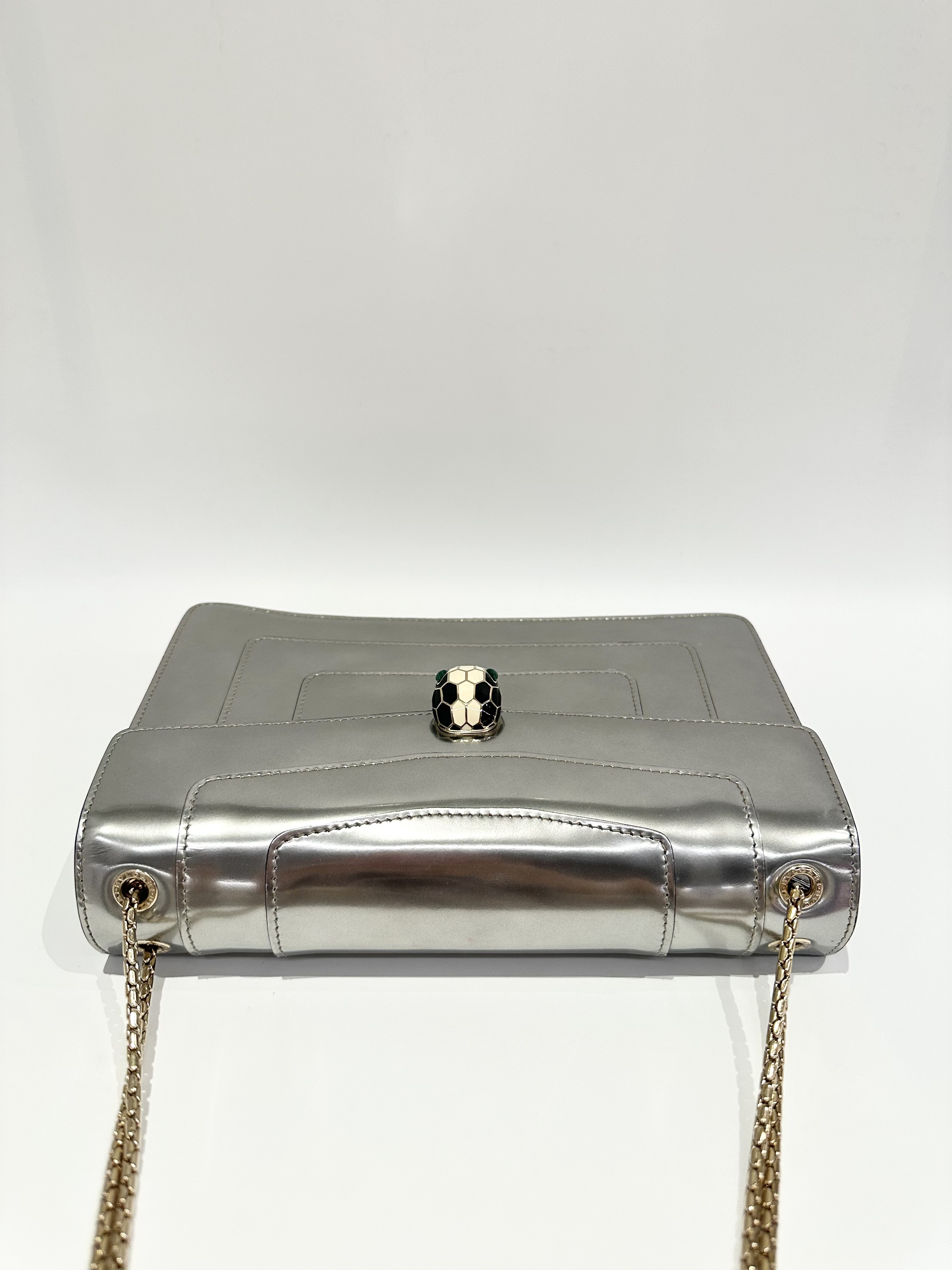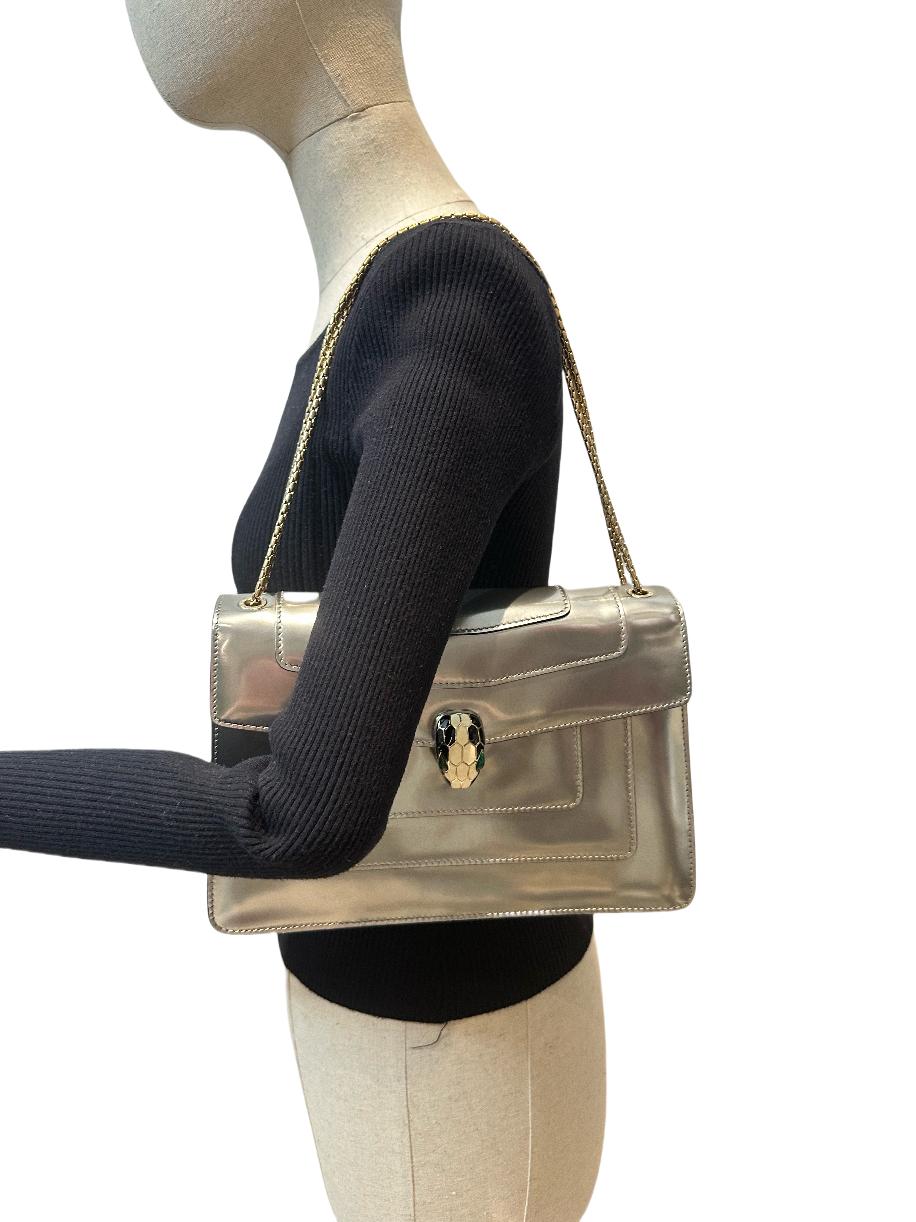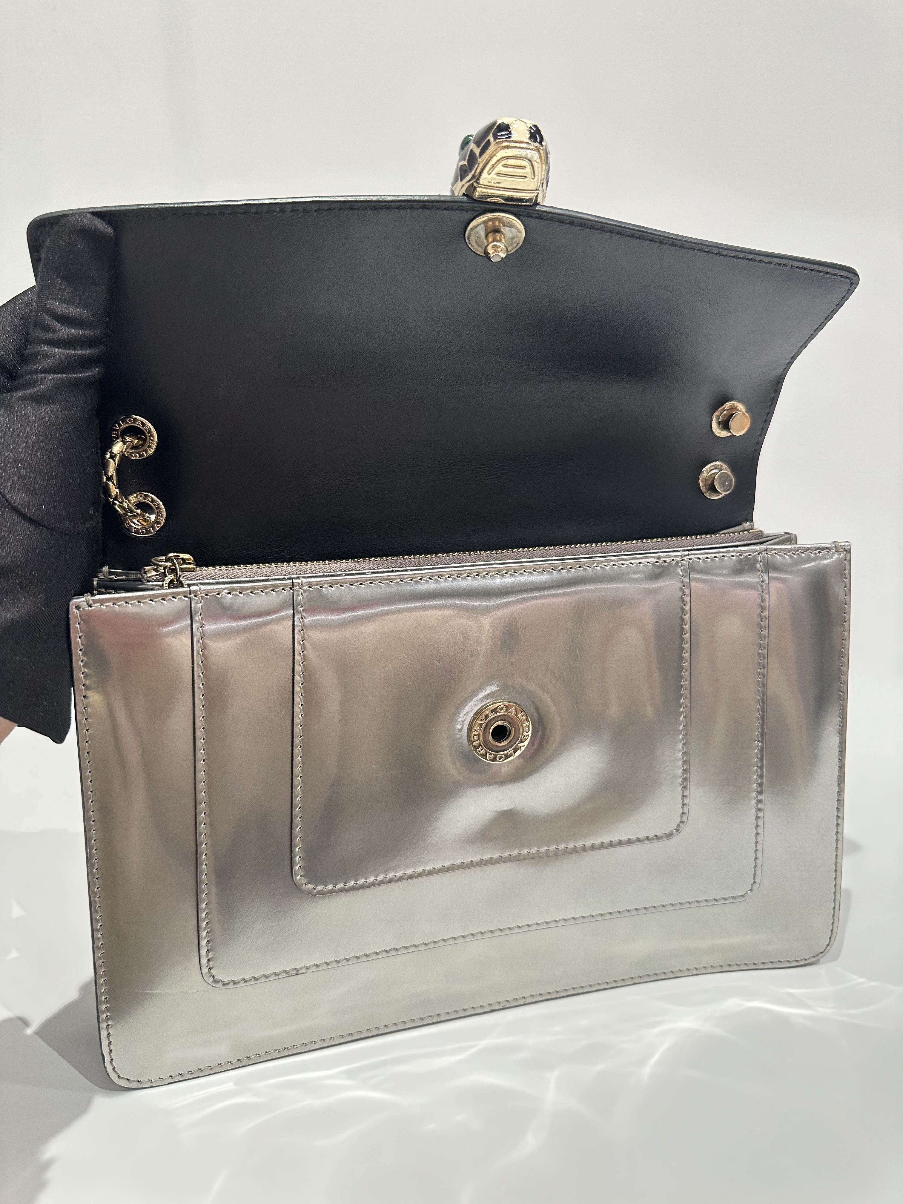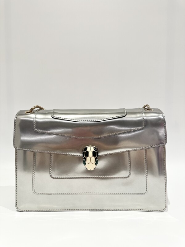 Bvlgari Silver Serpenti Metallic Calfskin Shoulder Bag