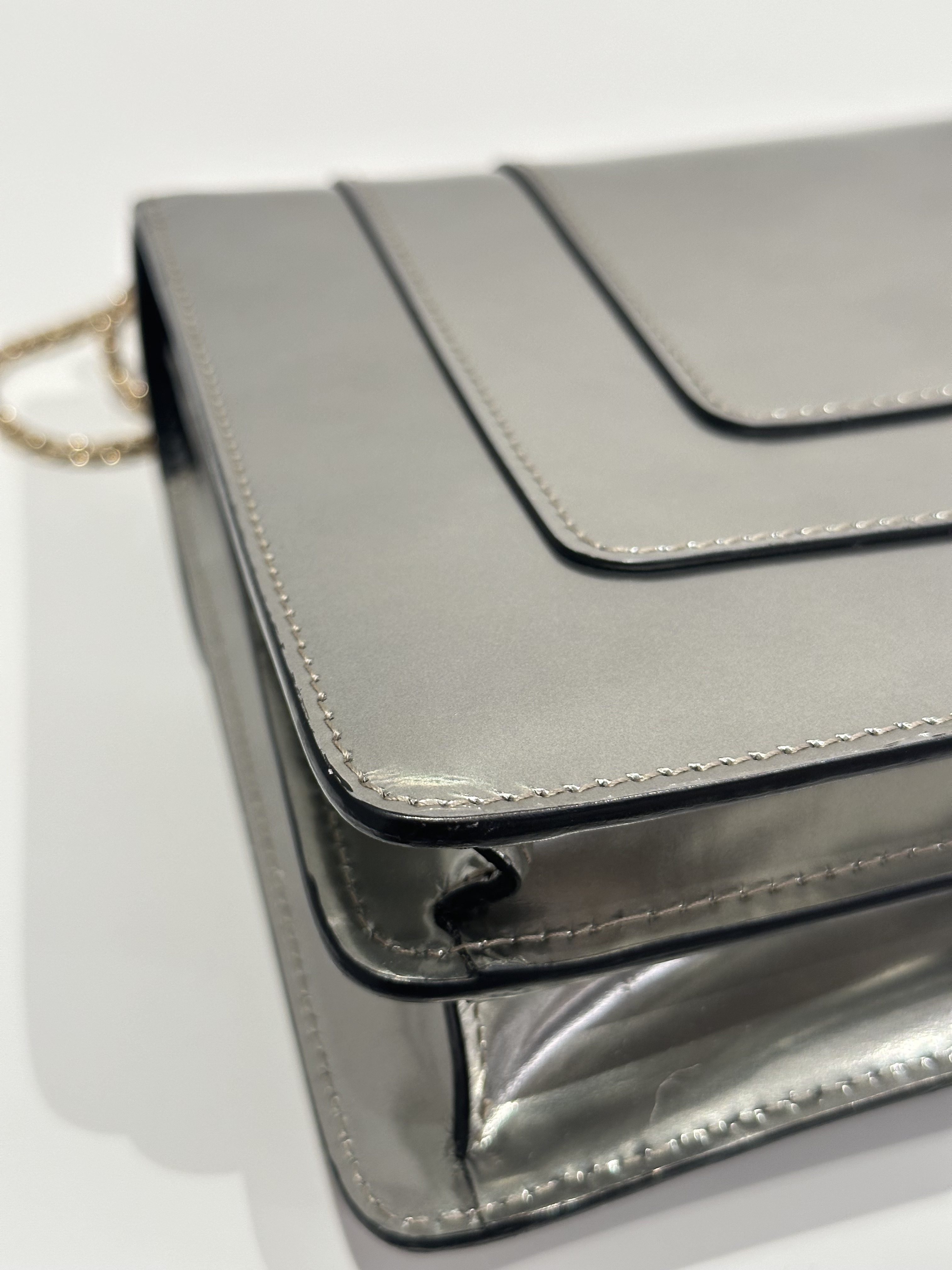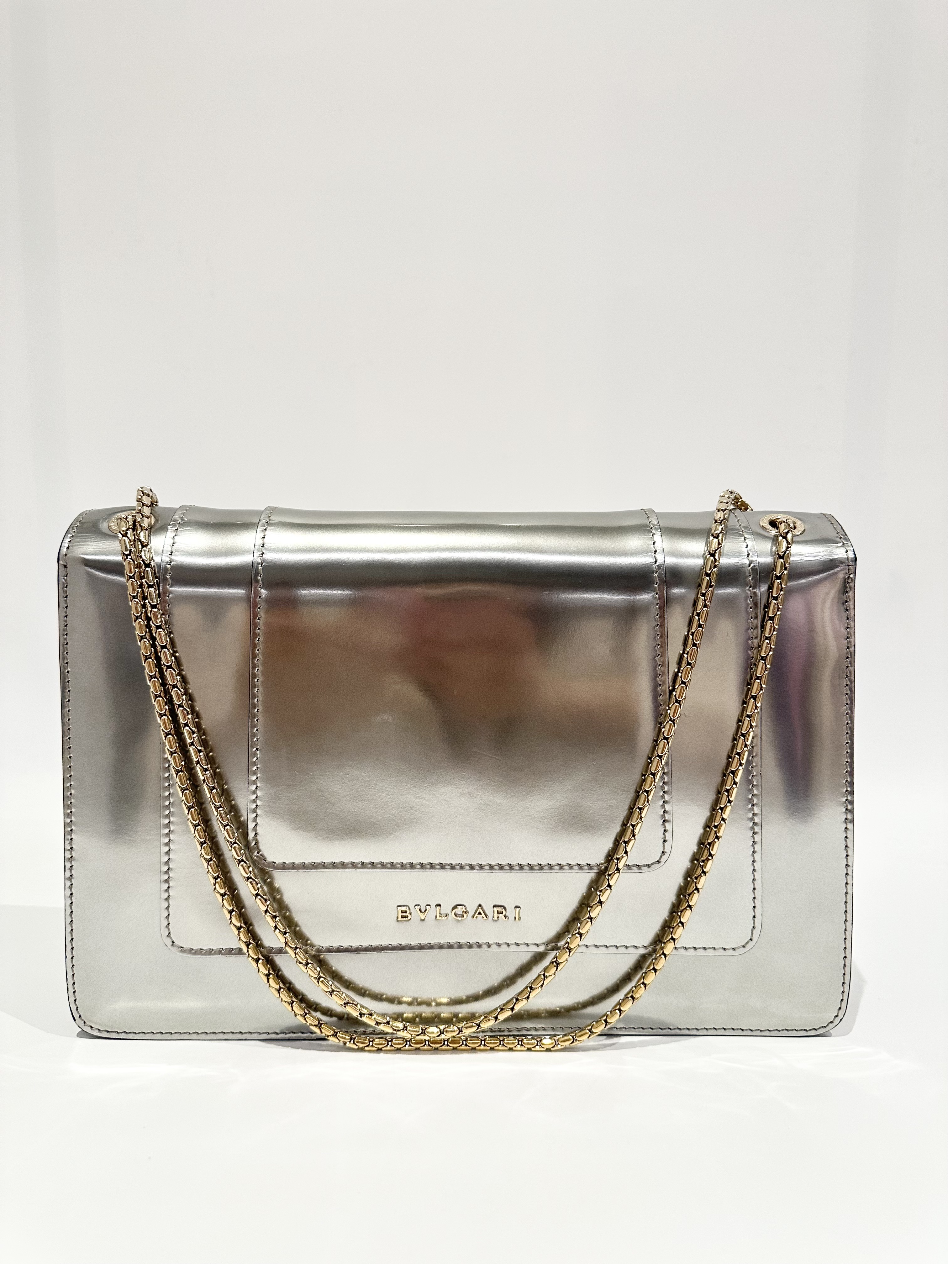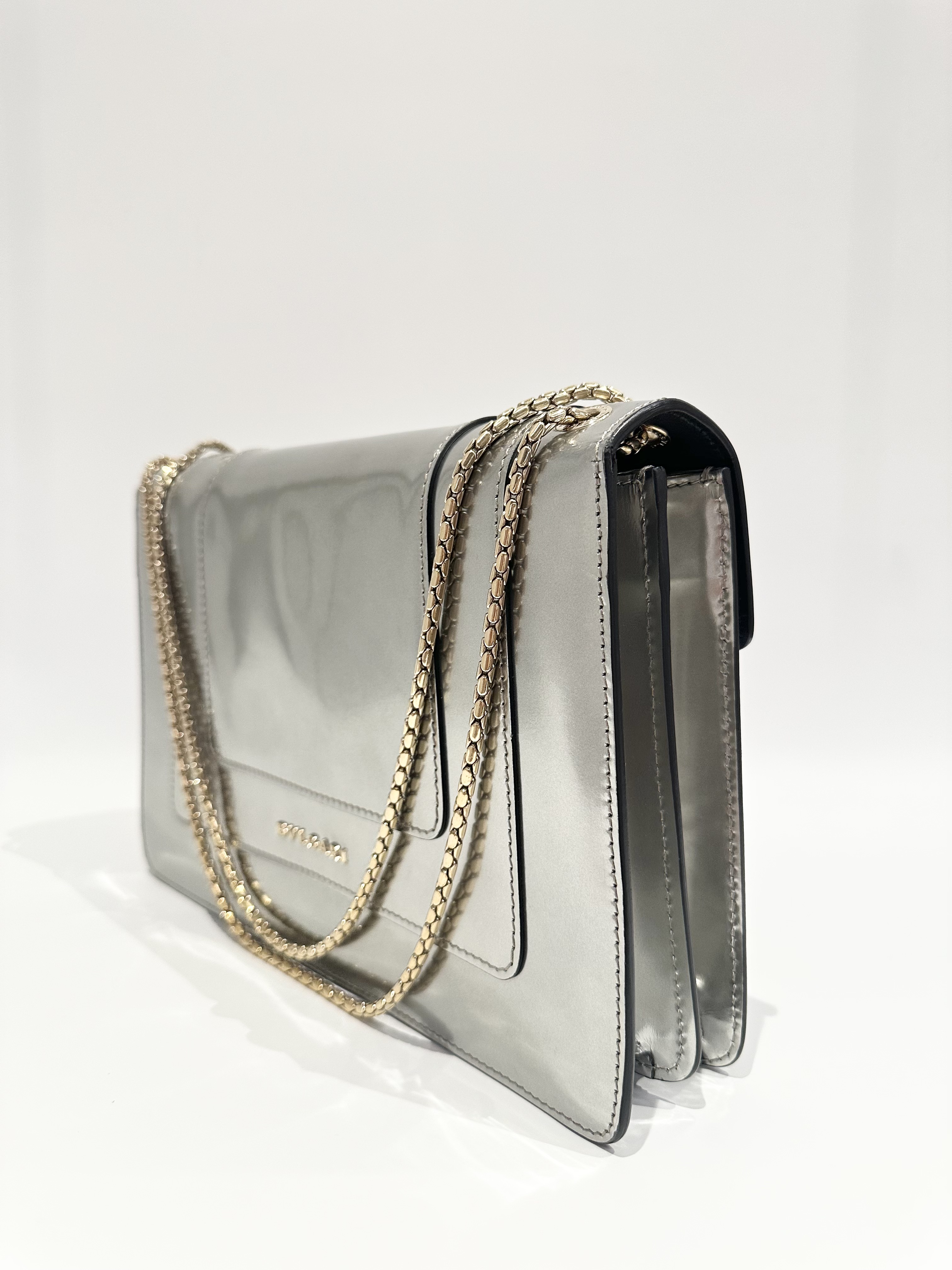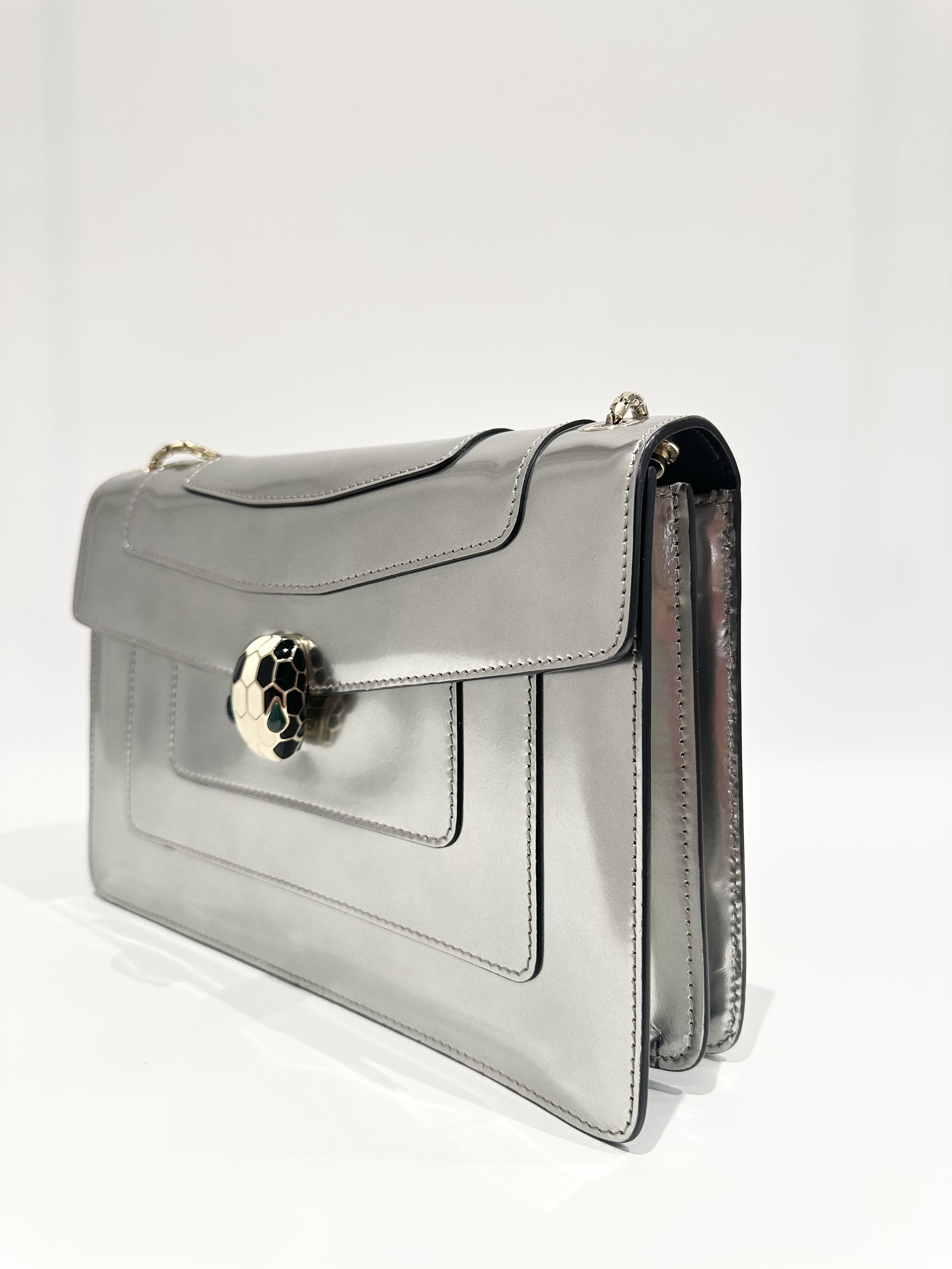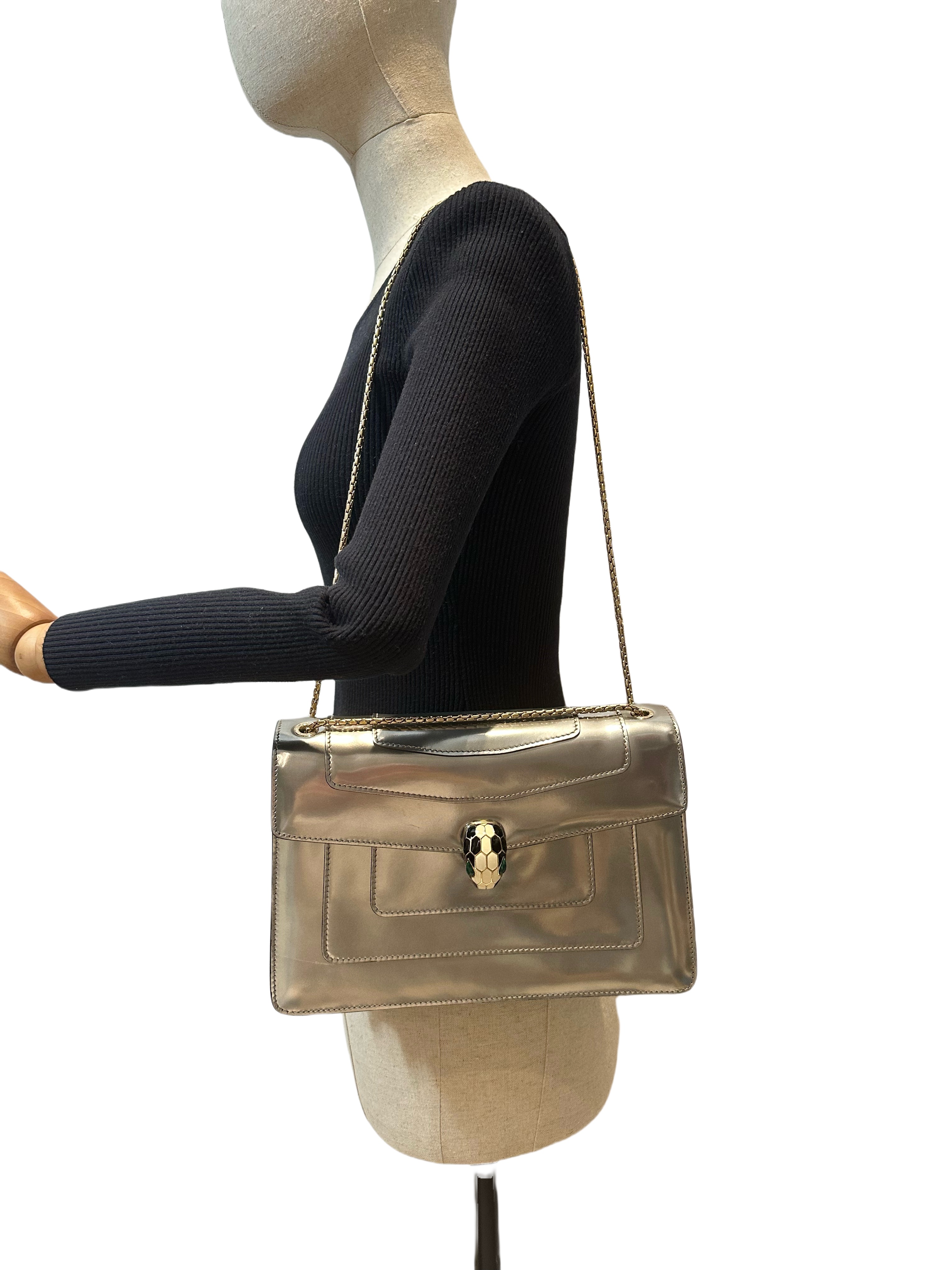 Bvlgari Silver Serpenti Metallic Calfskin Shoulder Bag