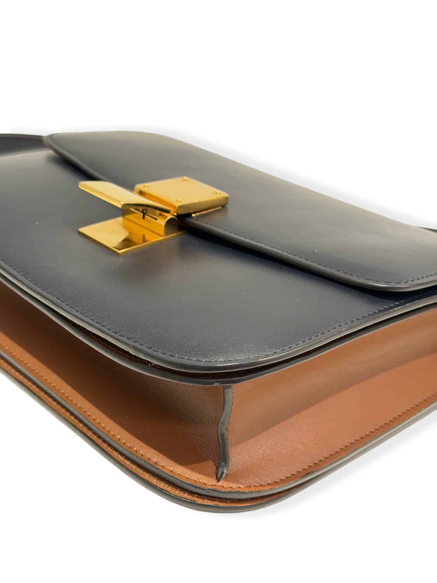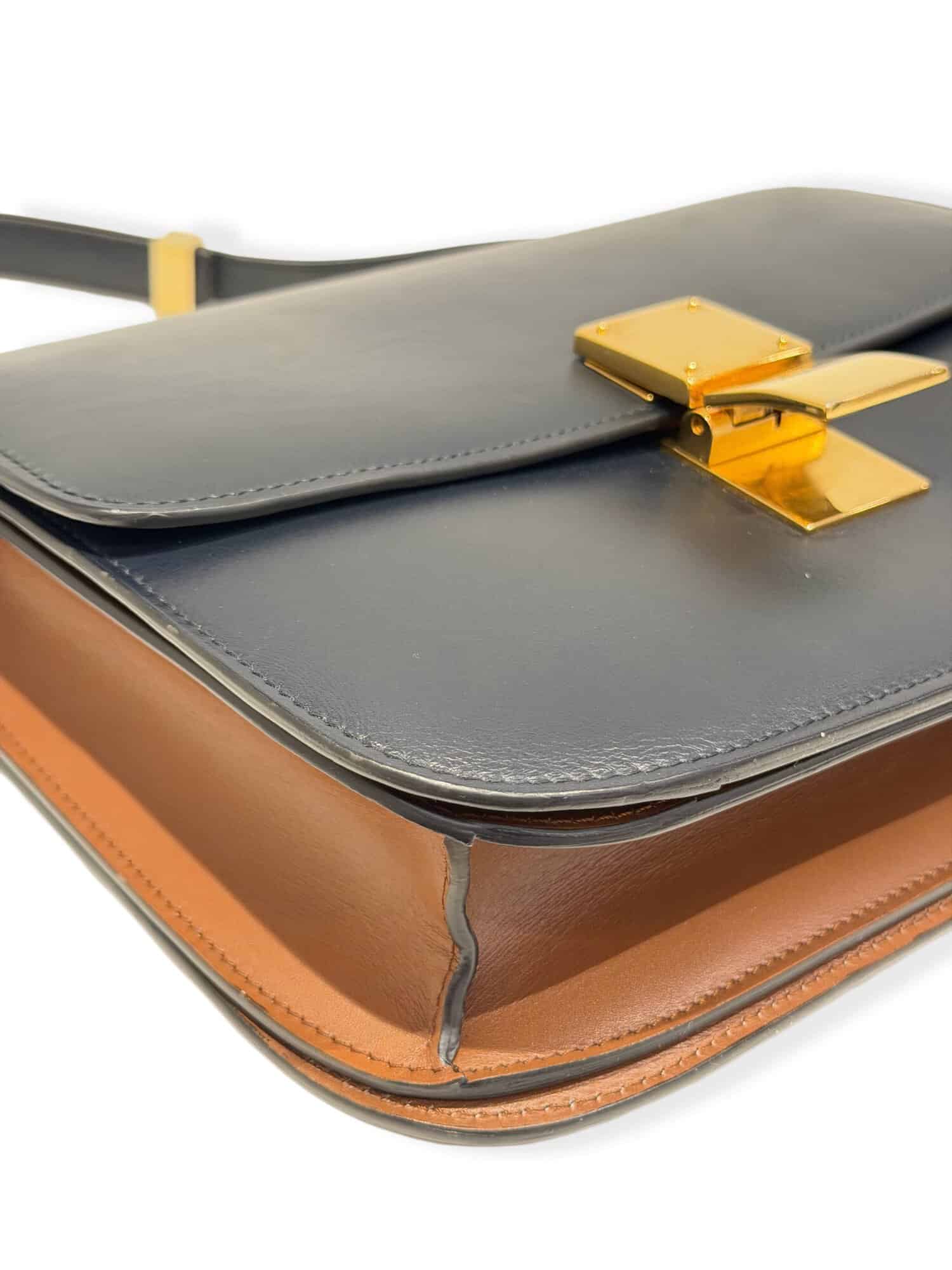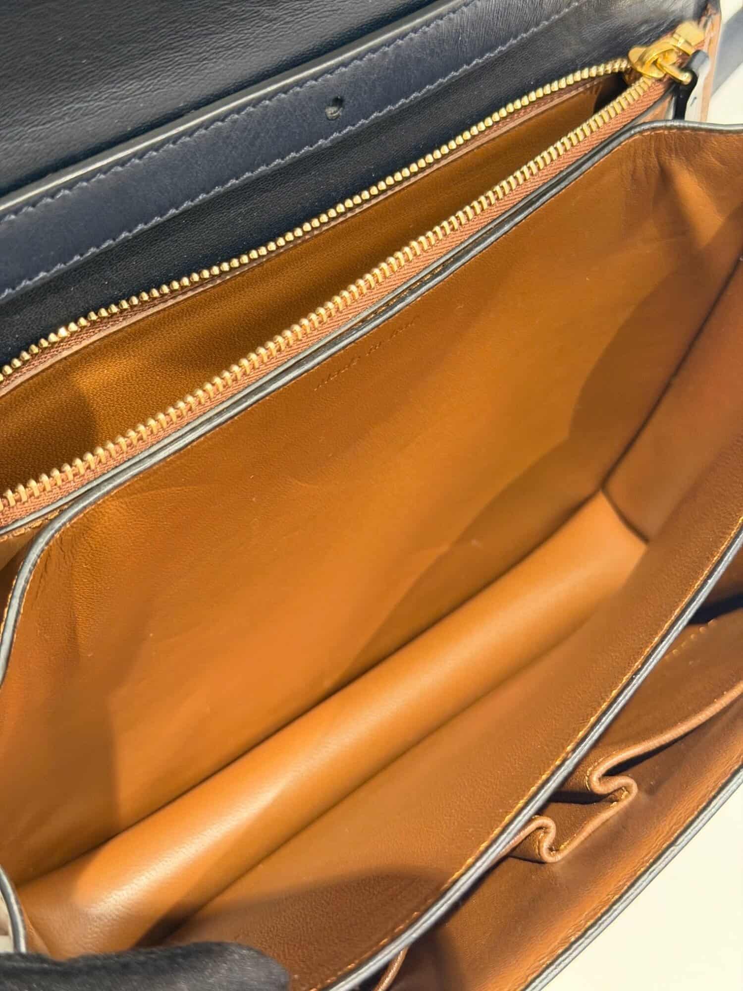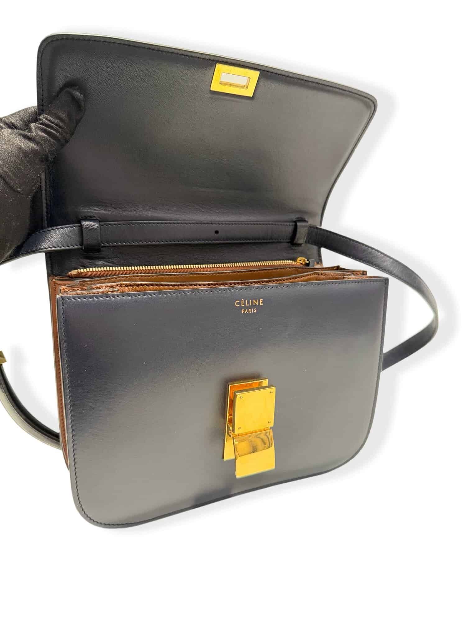 Celine Dark Navy Blue Classic Leather Handbag Medium Size
