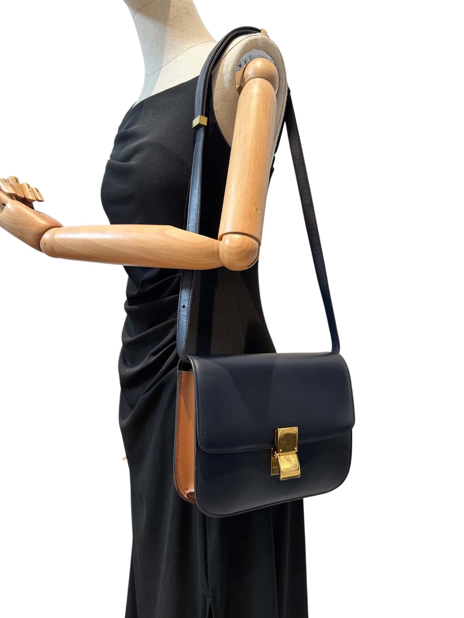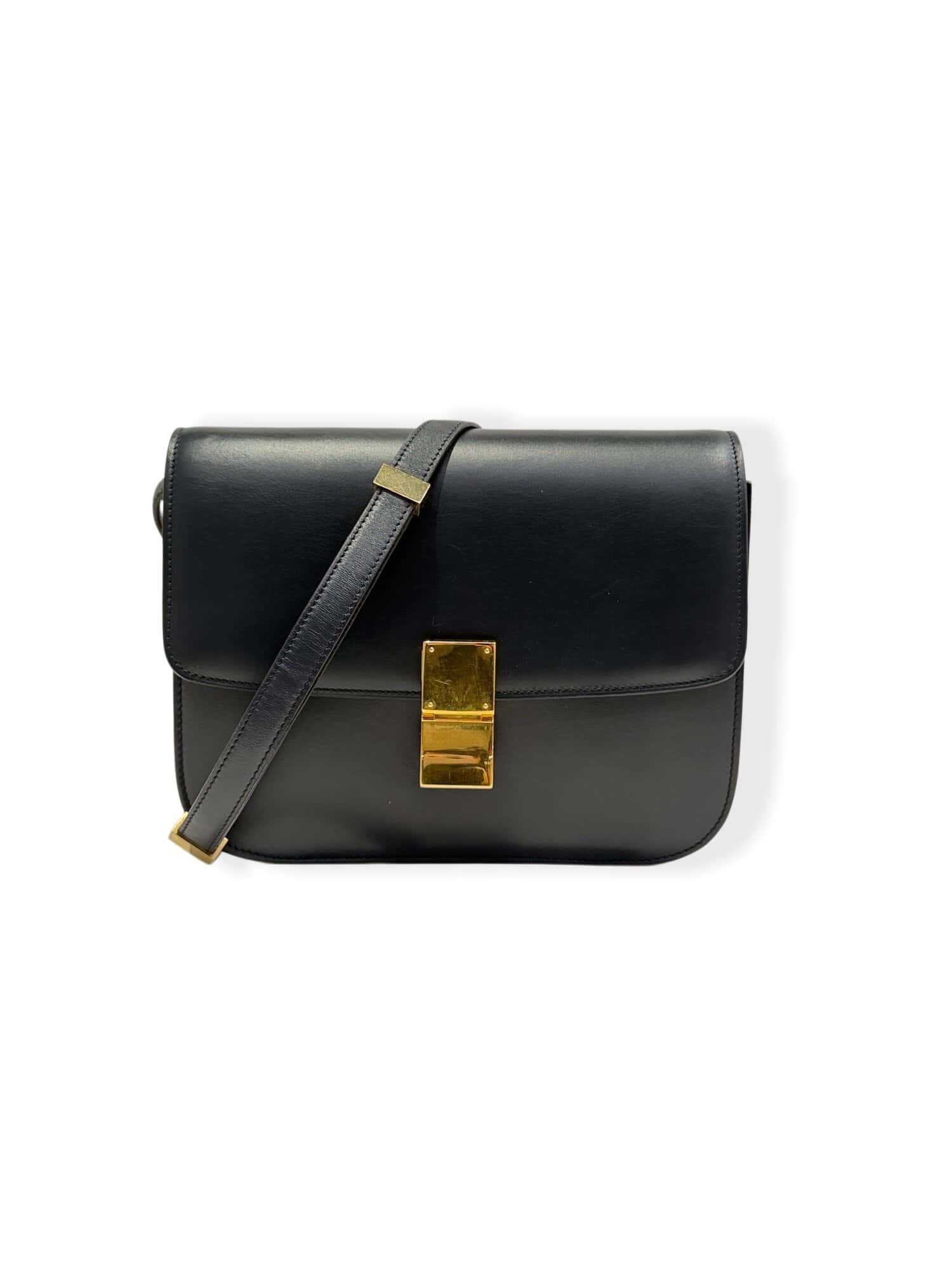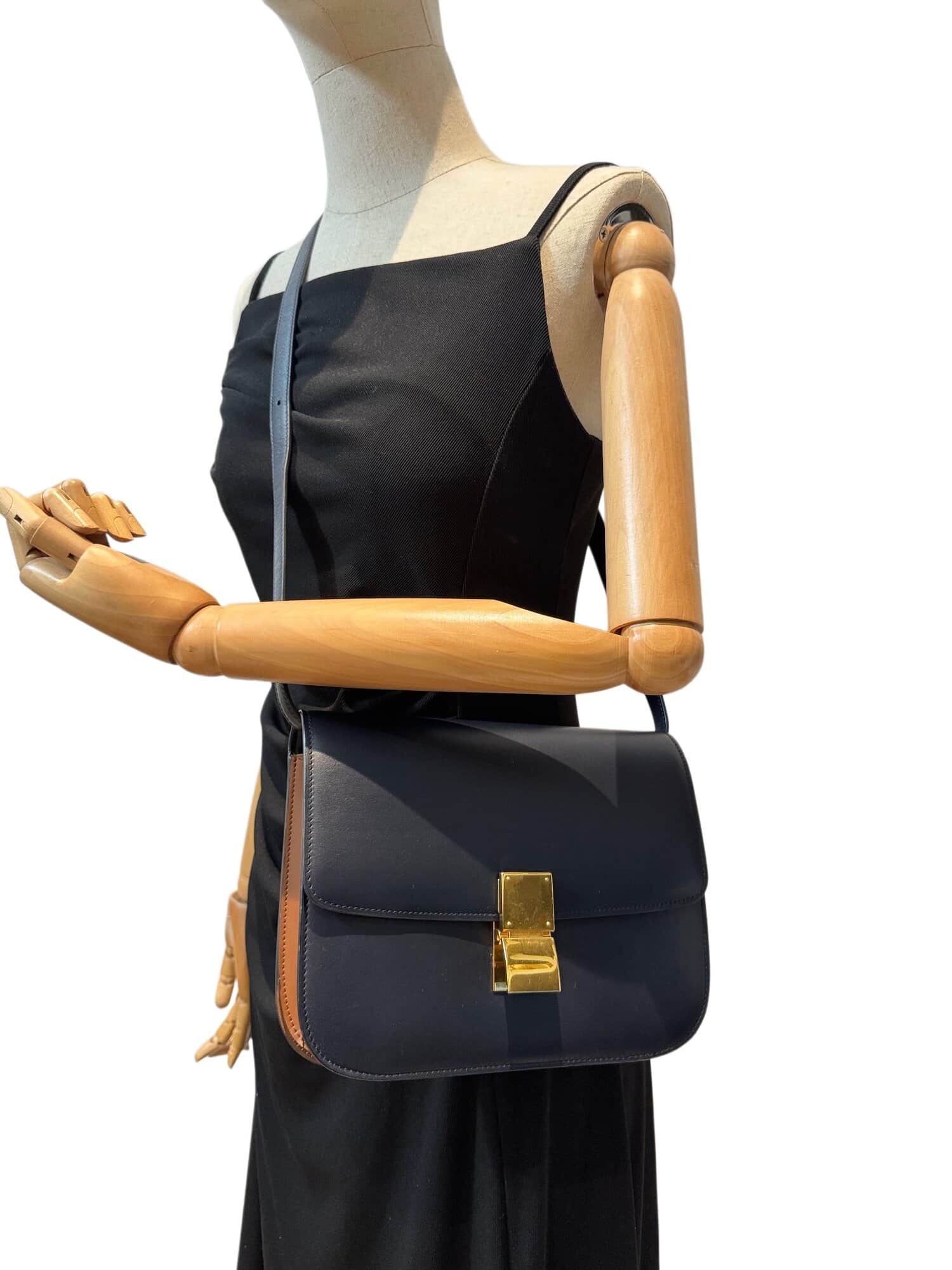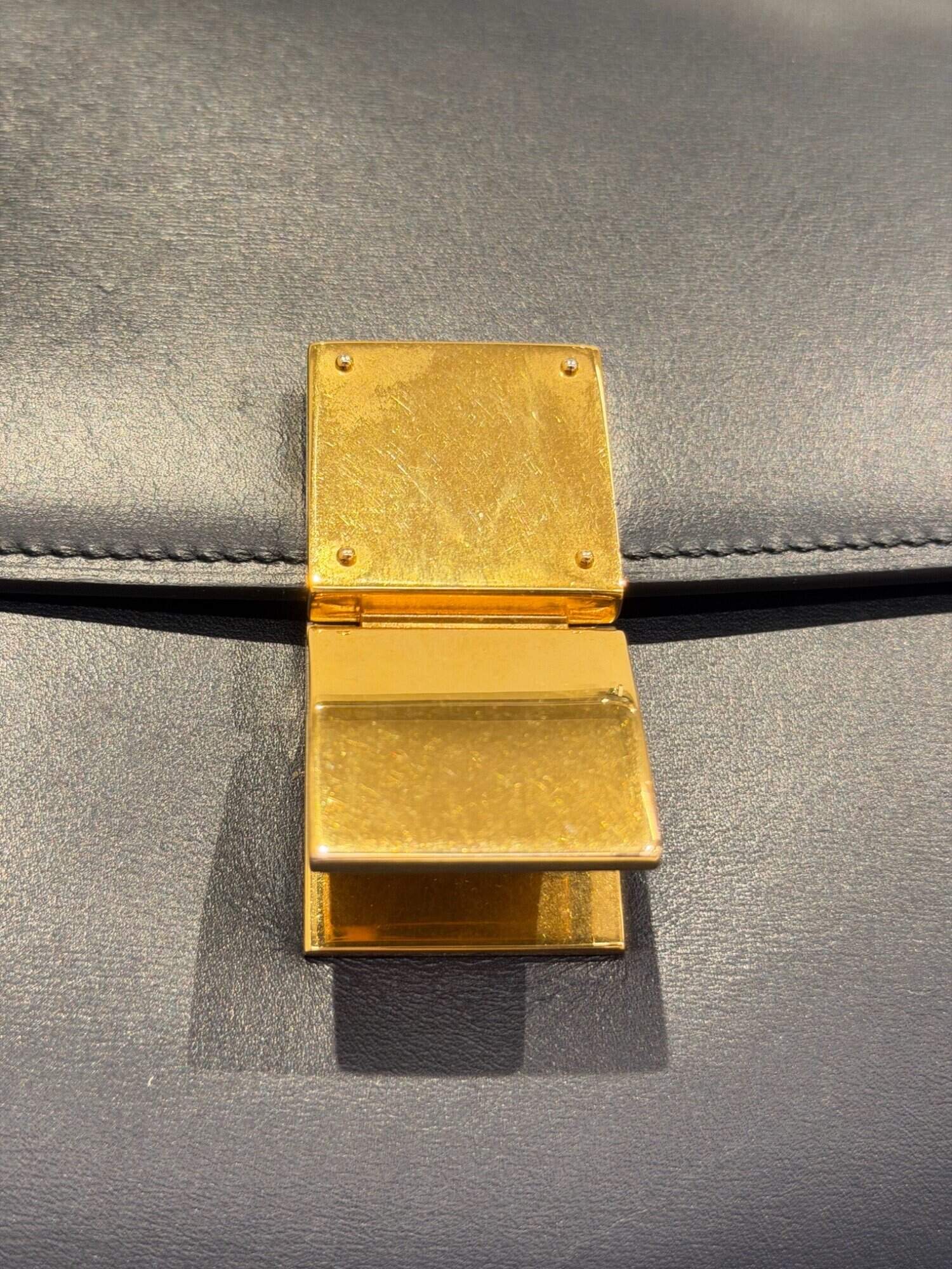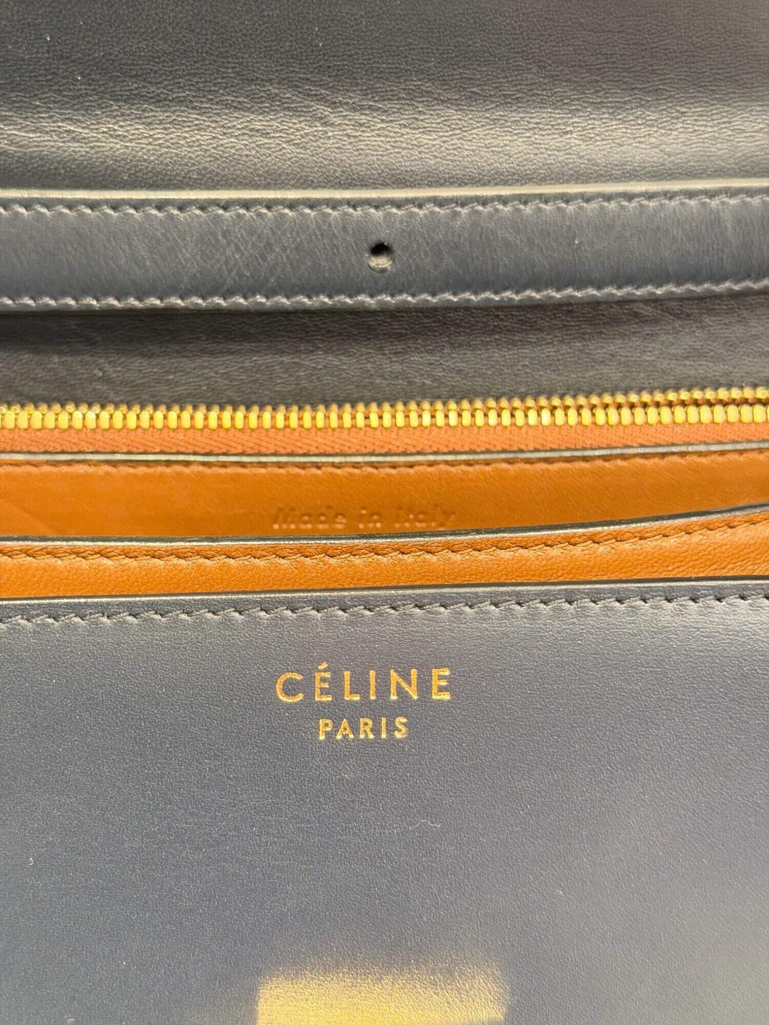 Celine Dark Navy Blue Classic Leather Handbag Medium Size