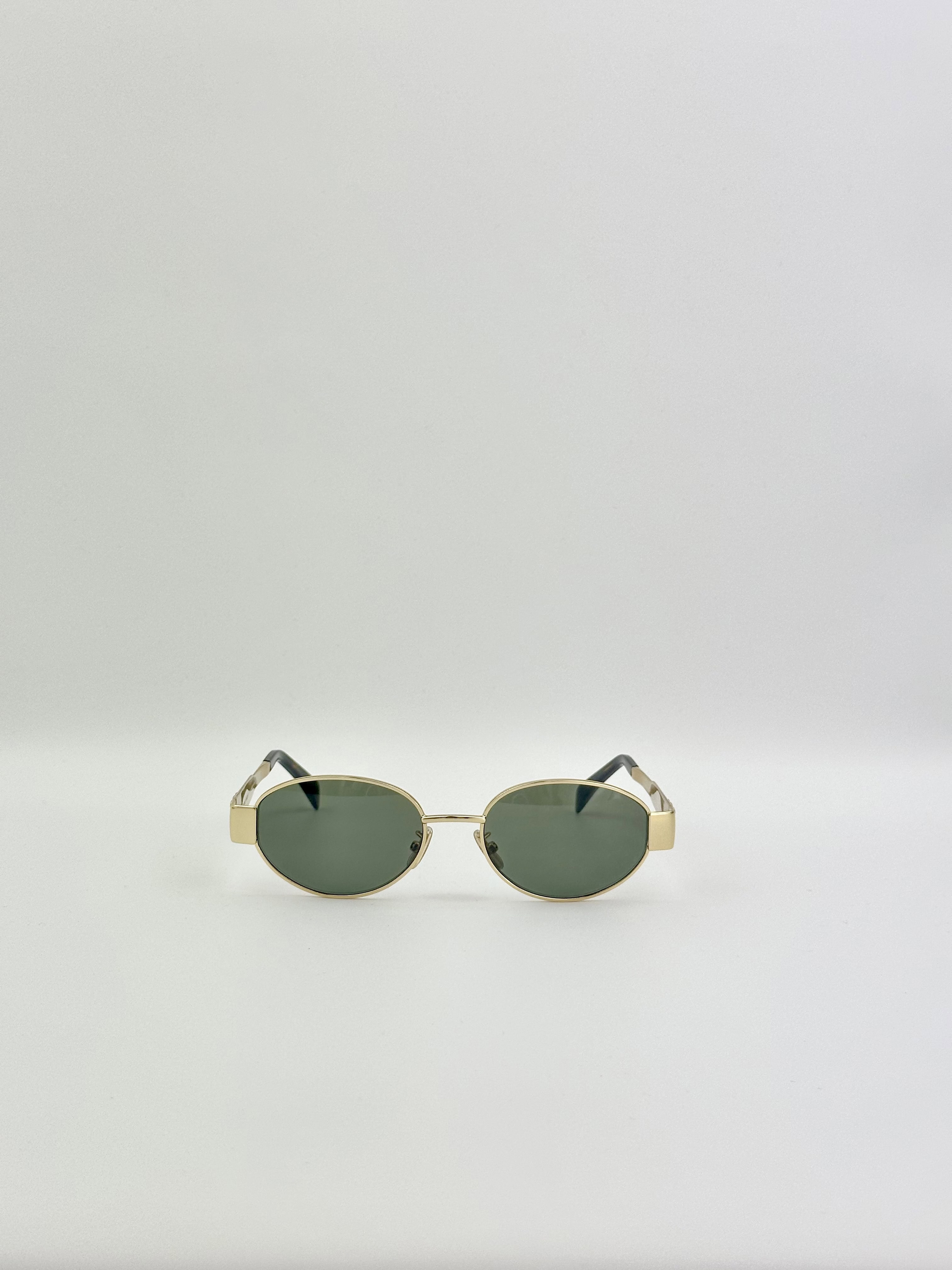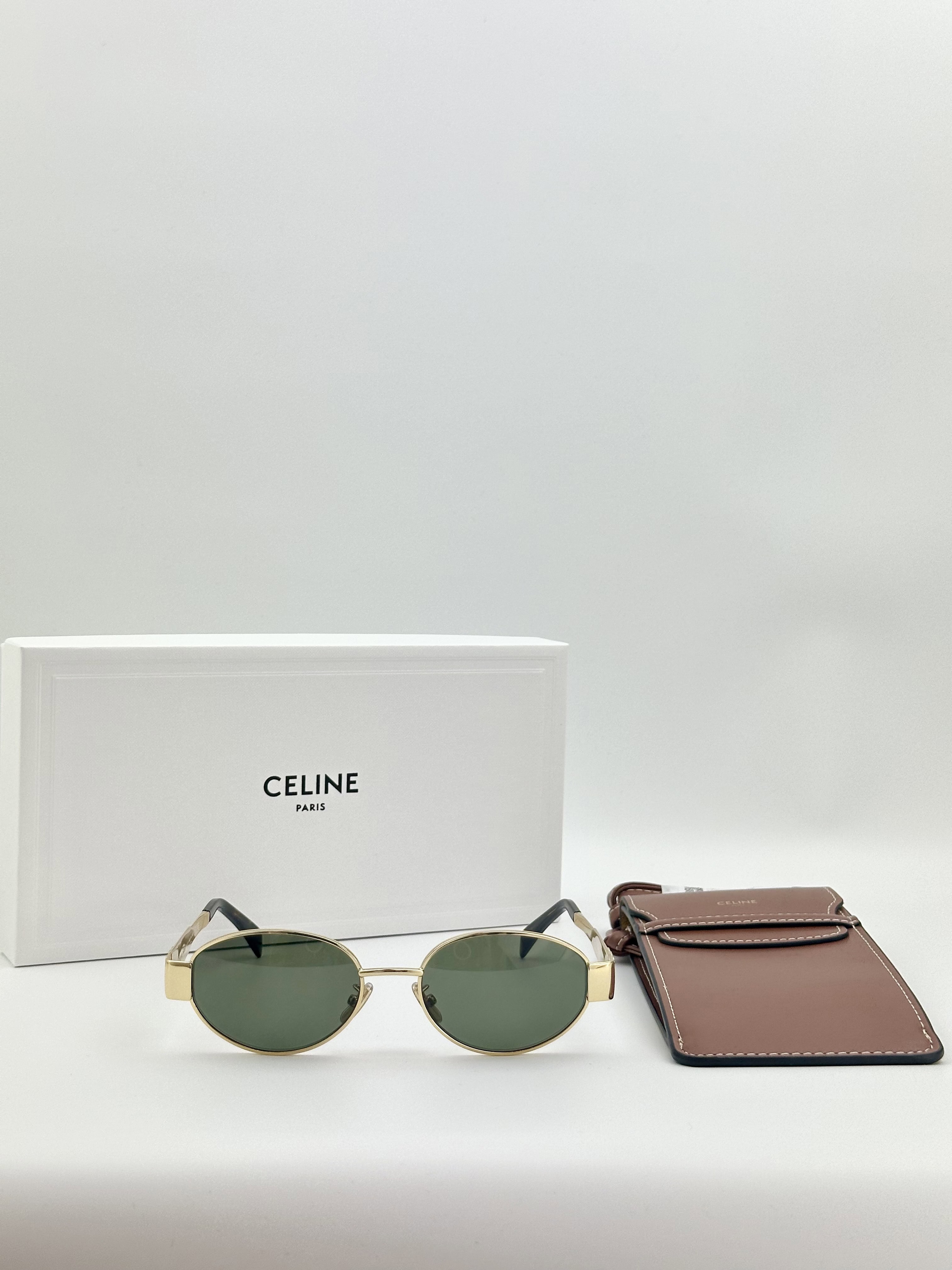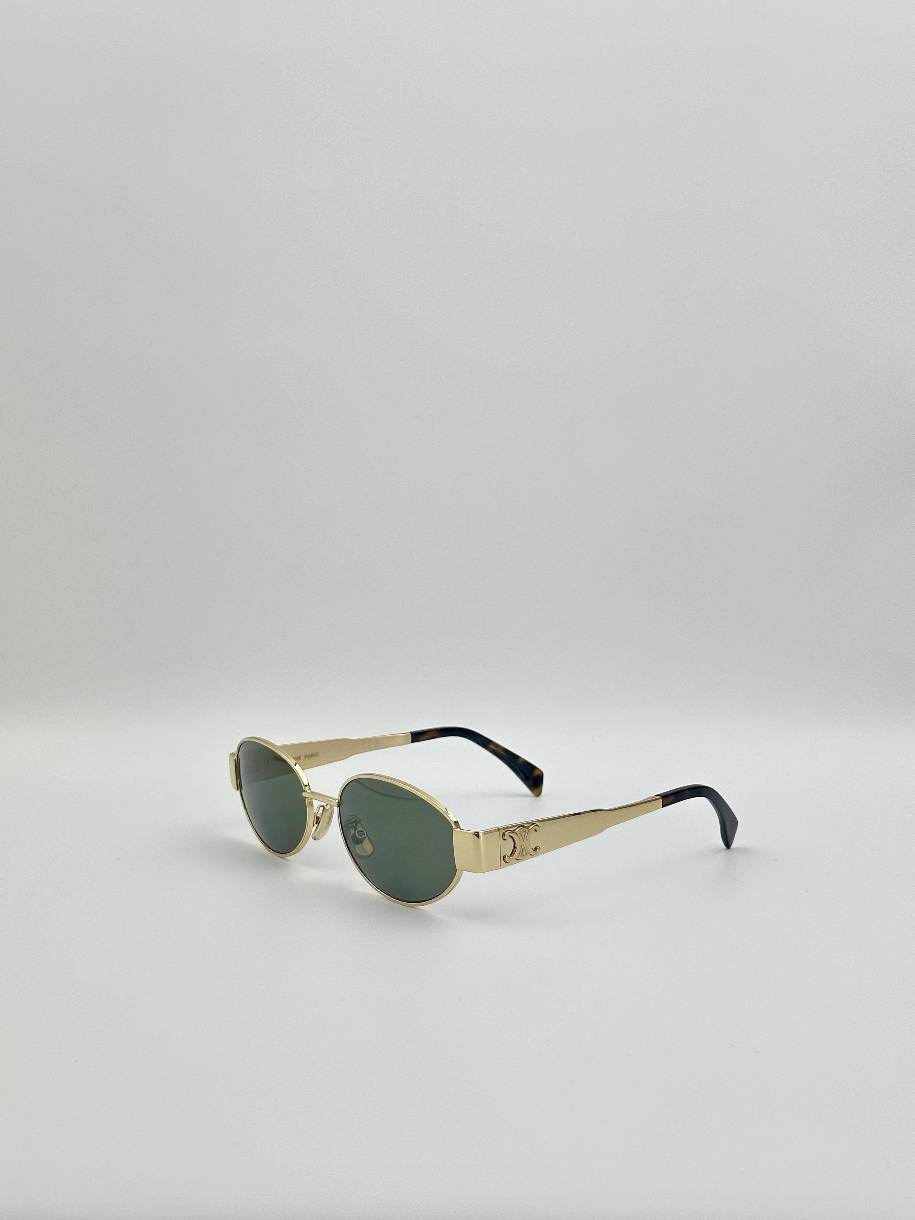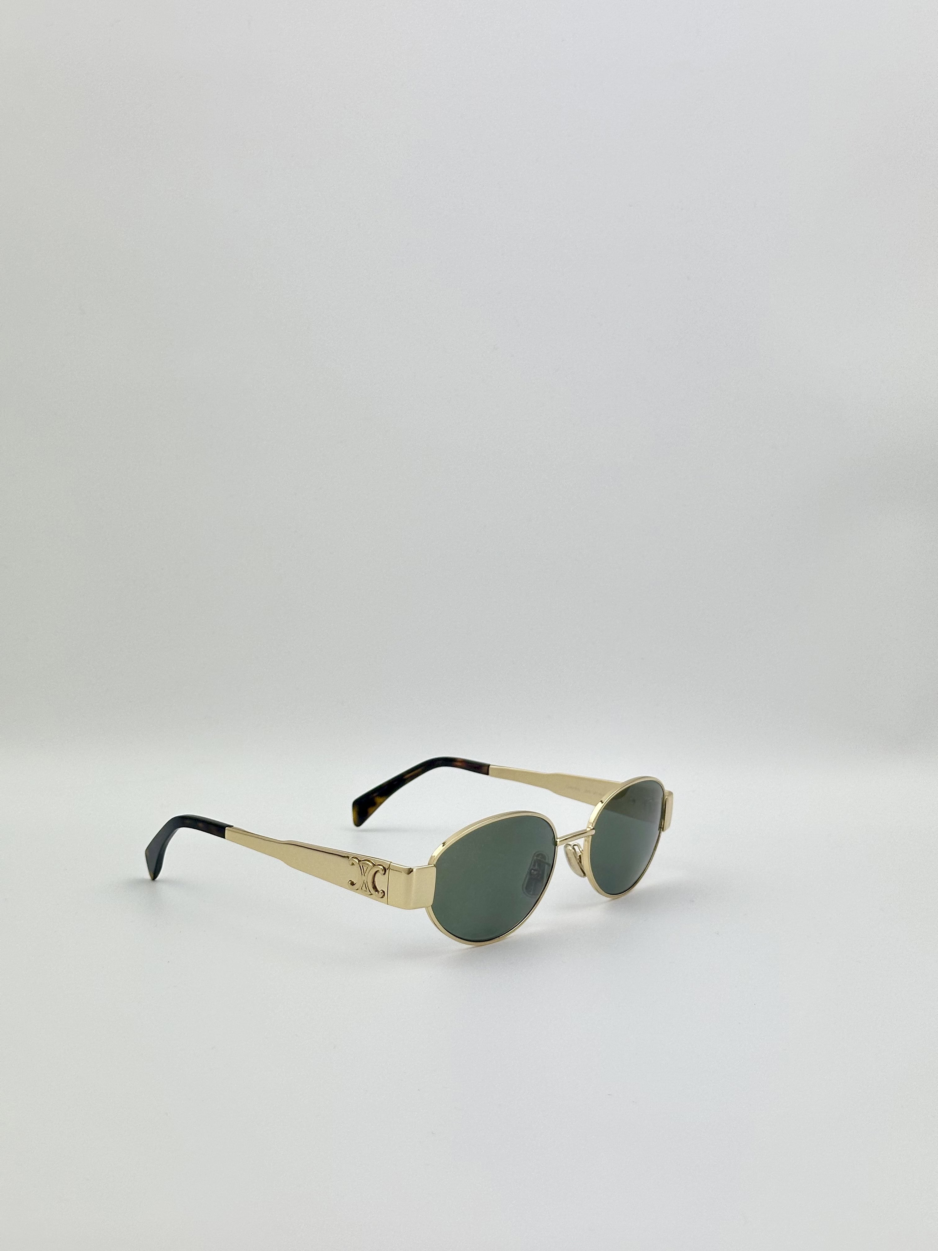 Celine Triomphe Oval Sunglasses CL40235U Metal Frame Gold