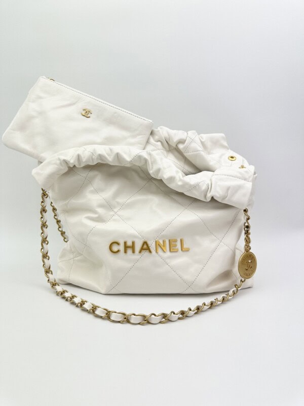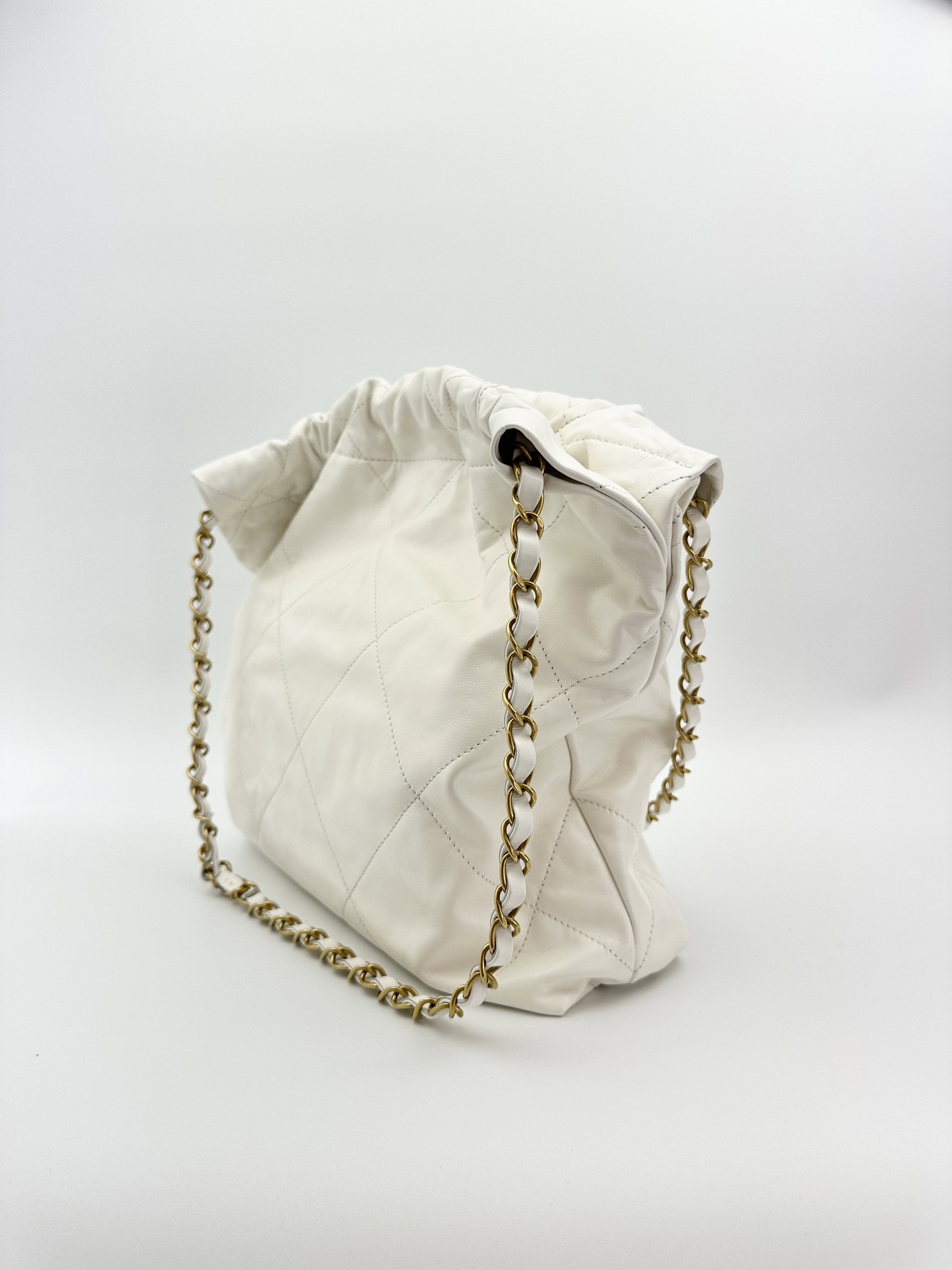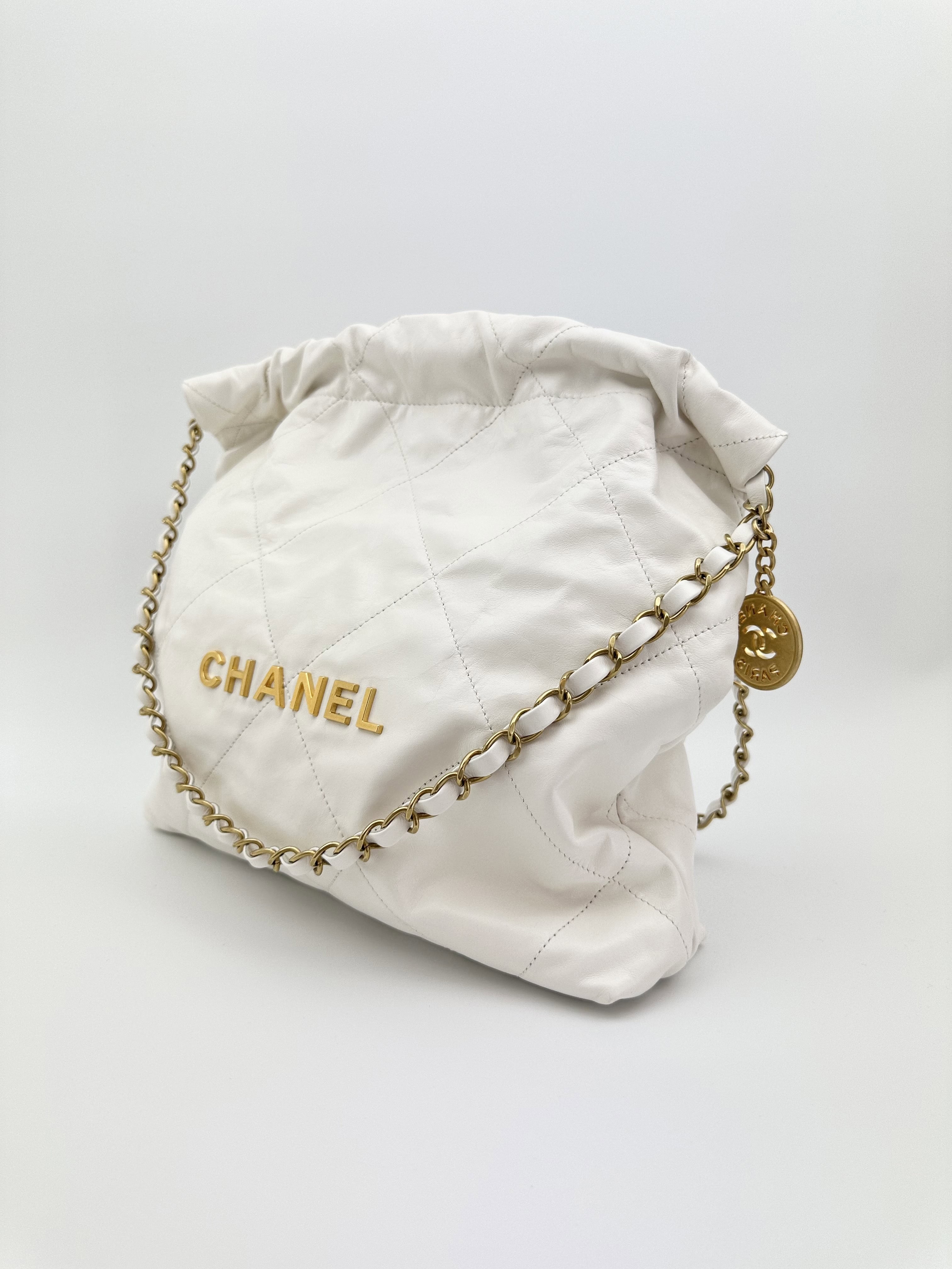 Chanel 22 bag white leather small size