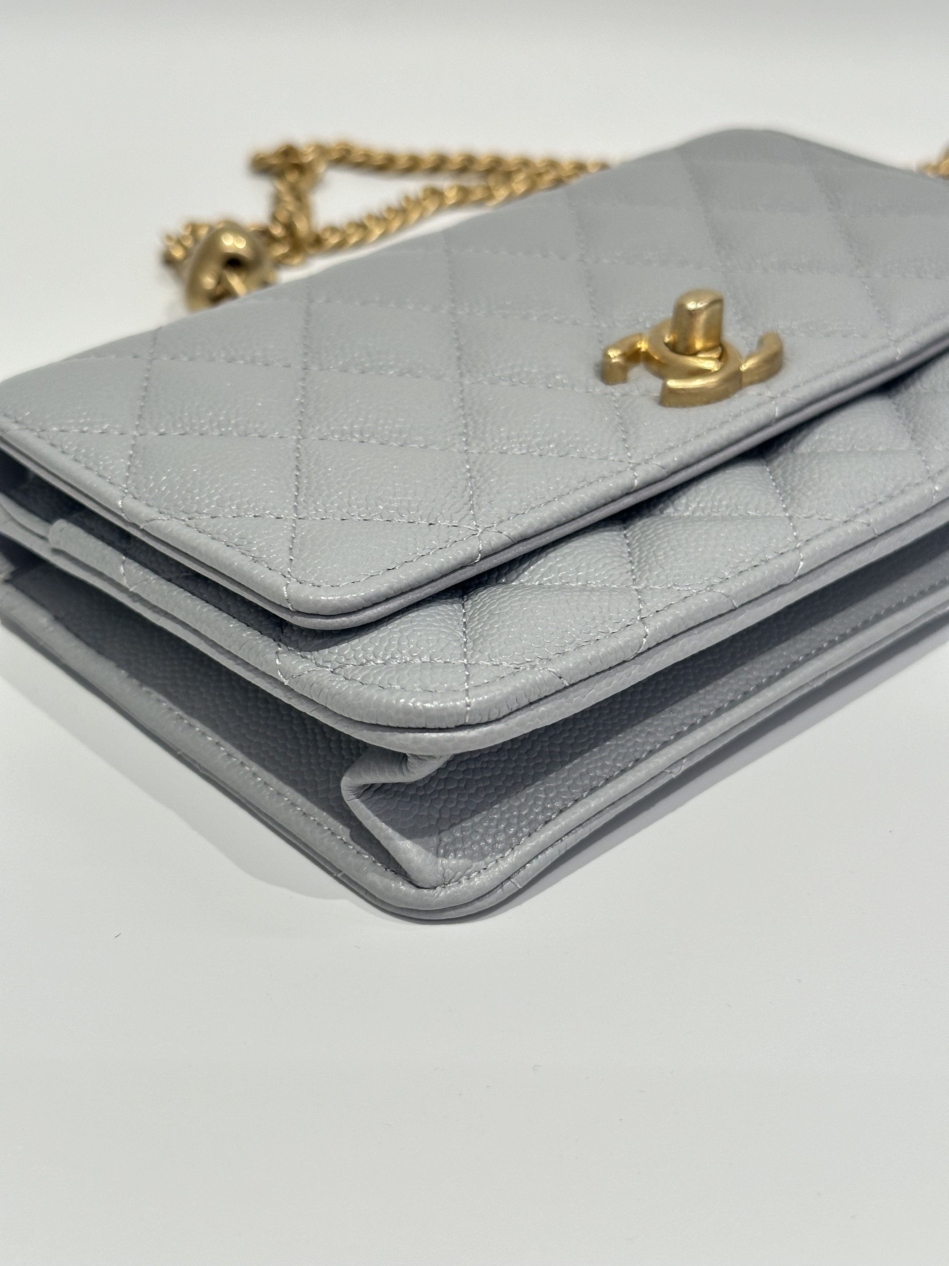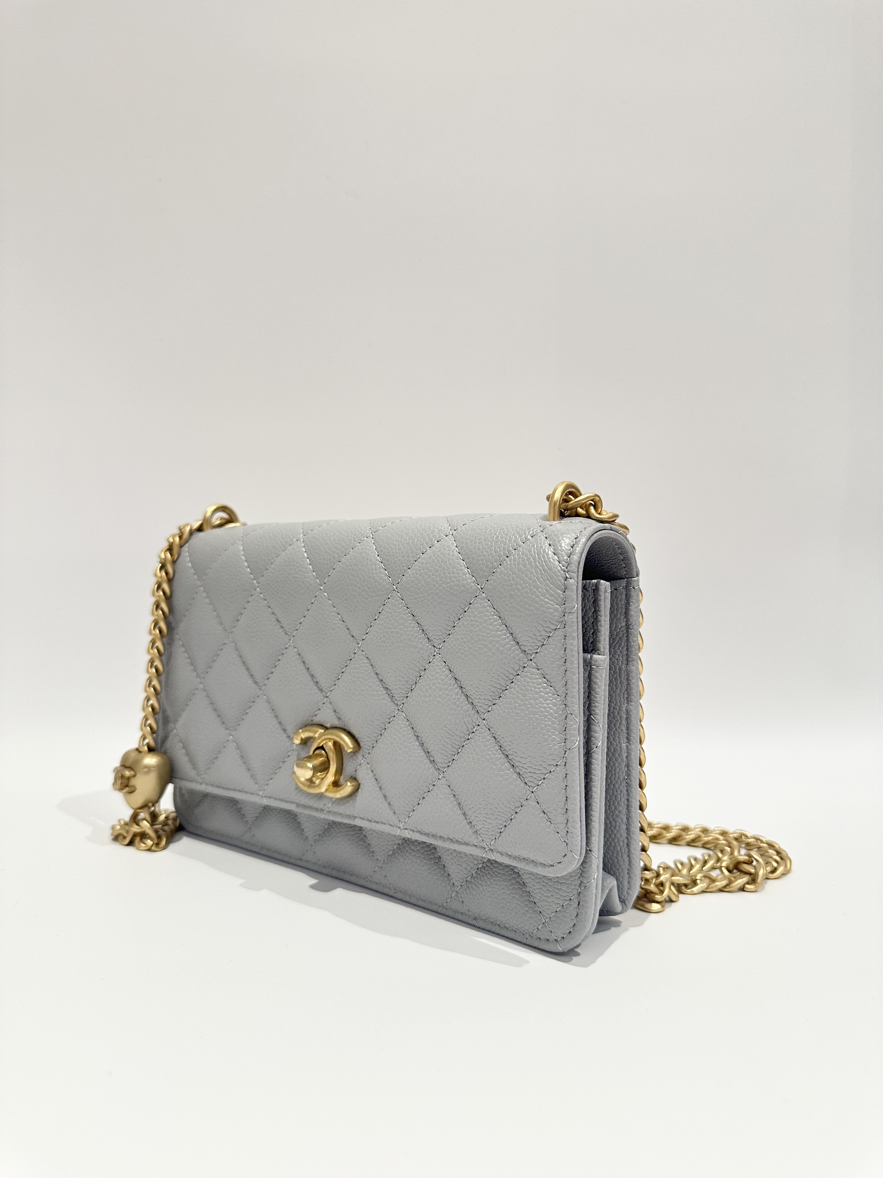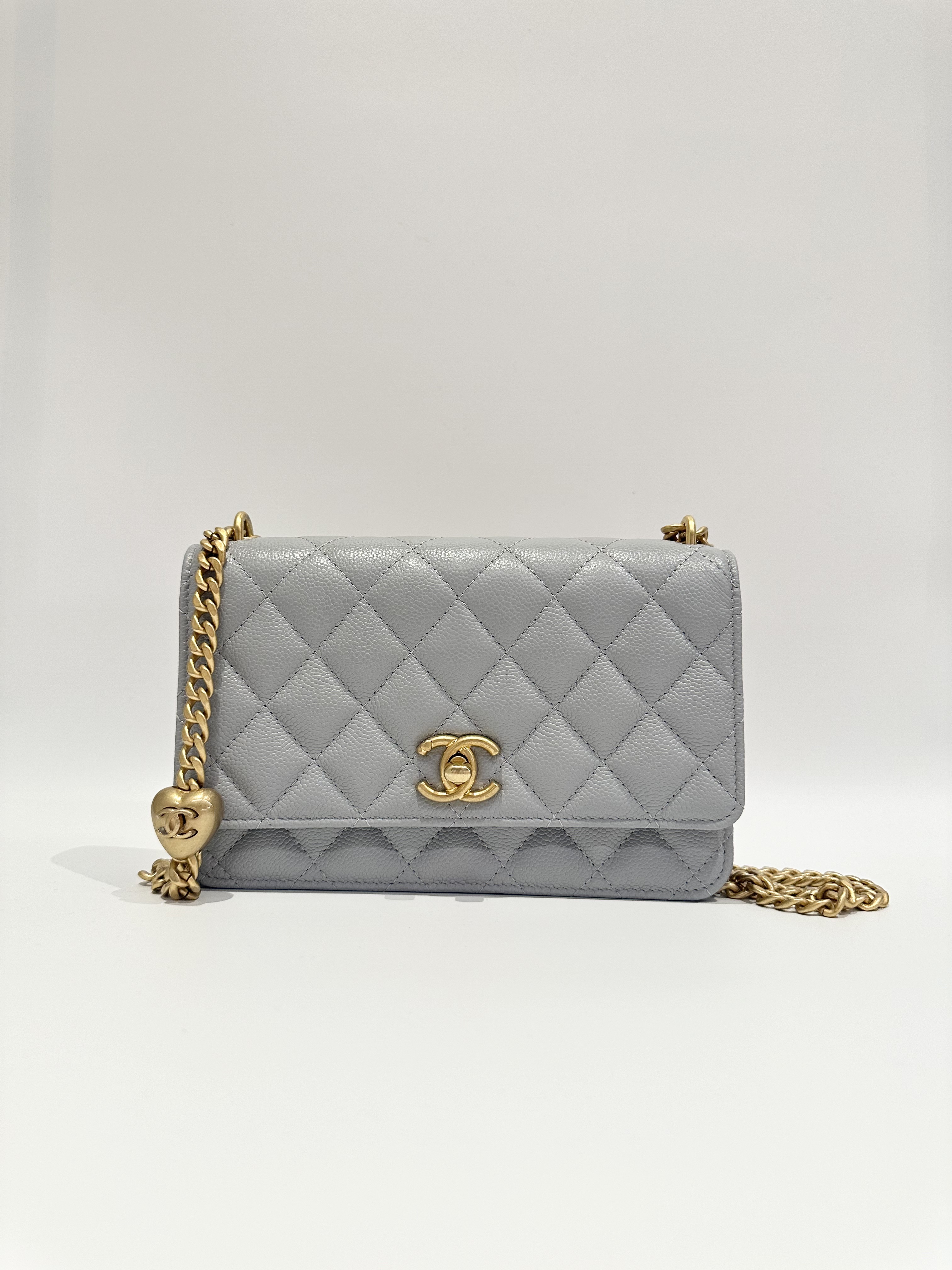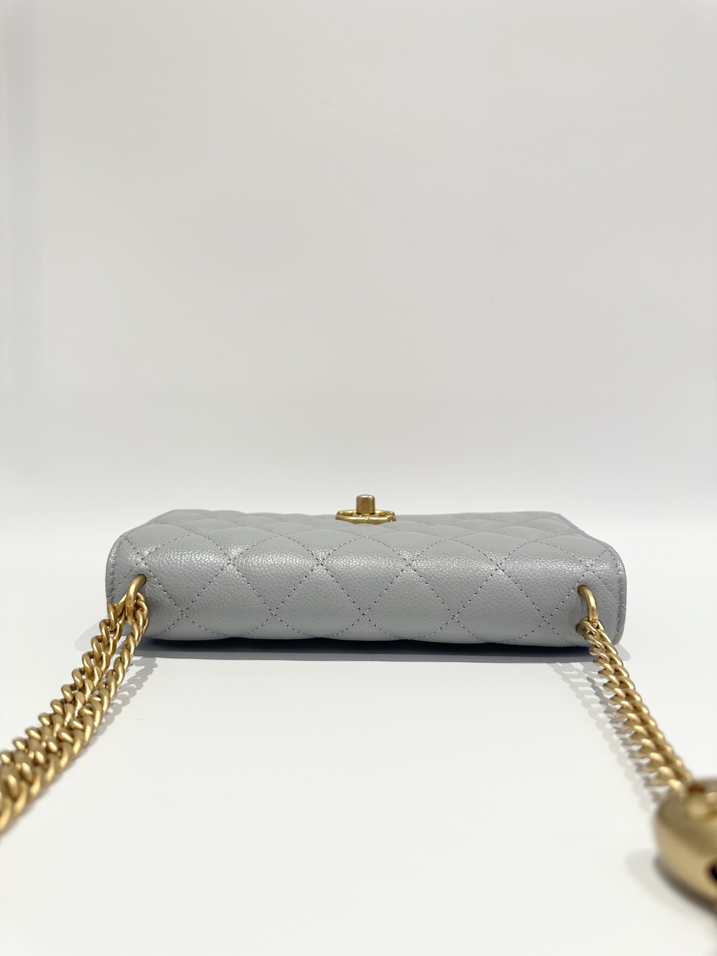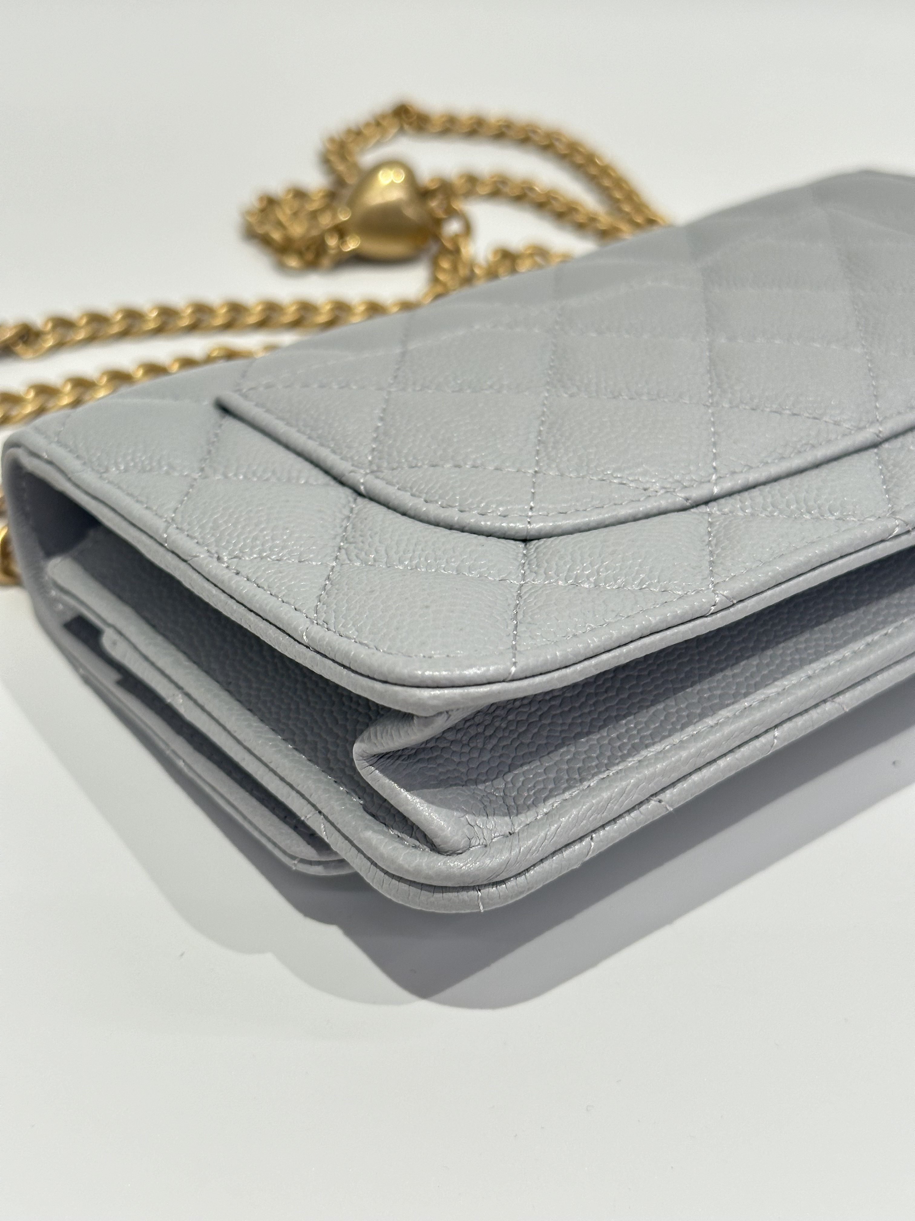 Chanel 24P love golden ball light grey wallet on chain