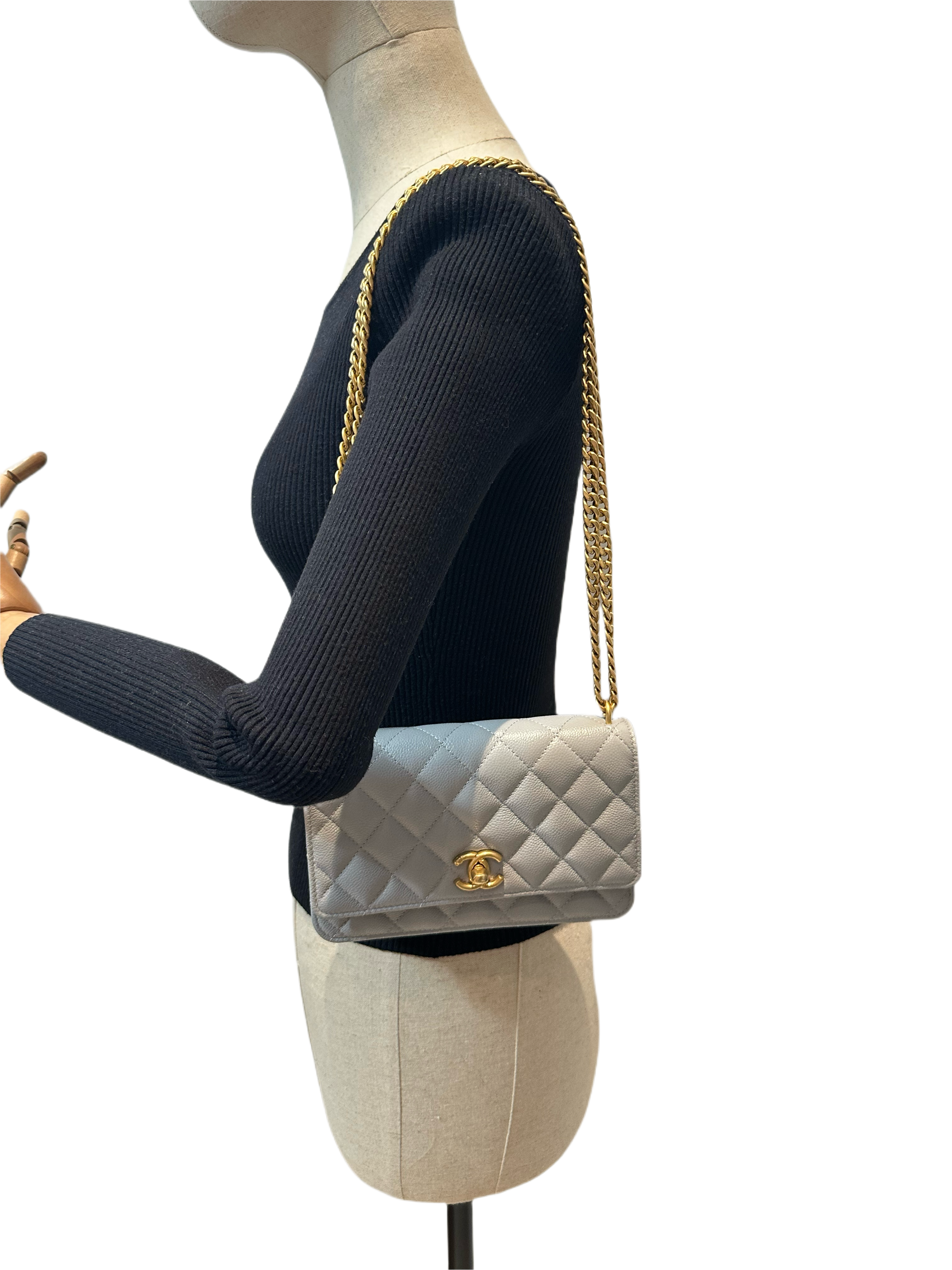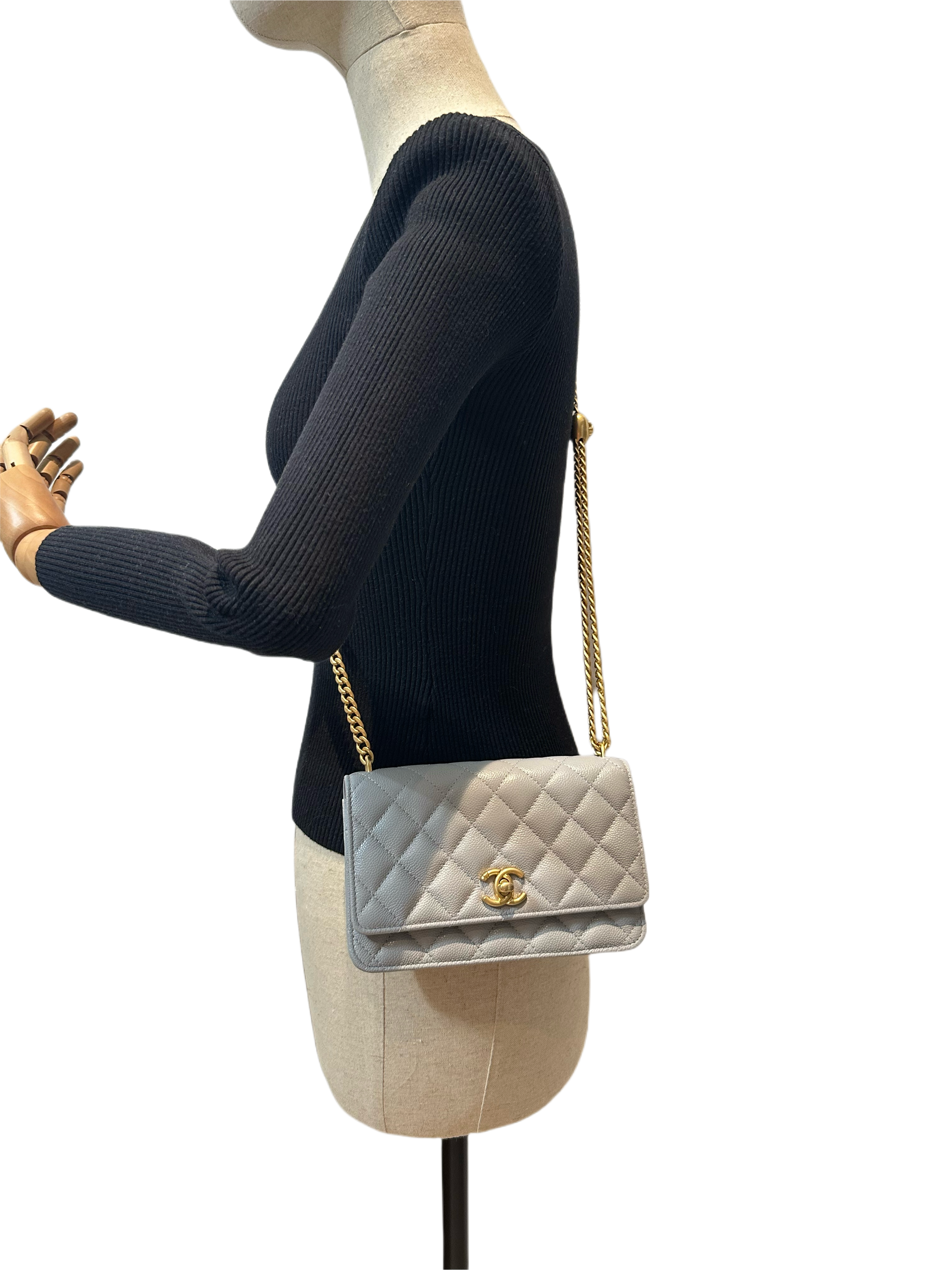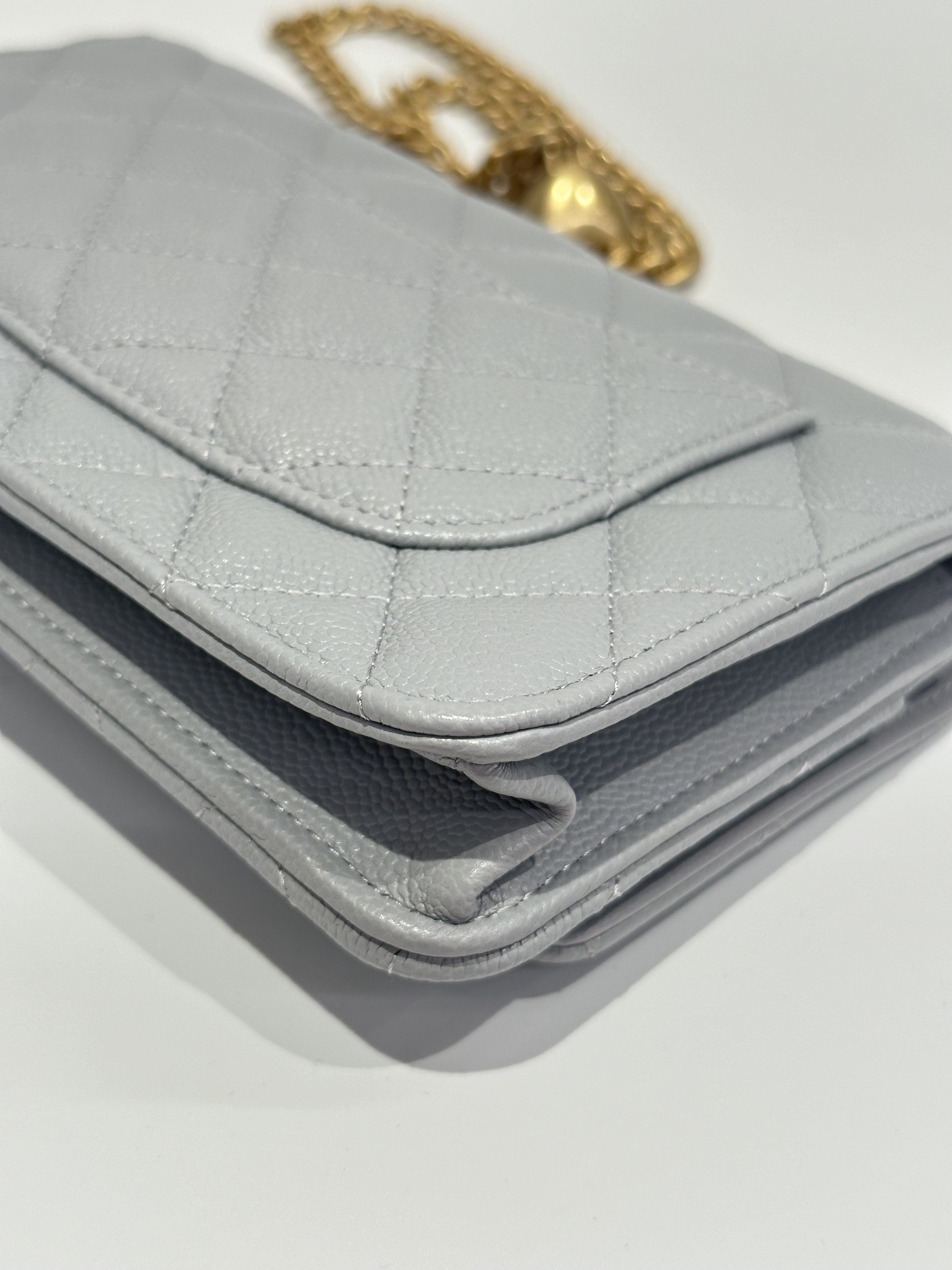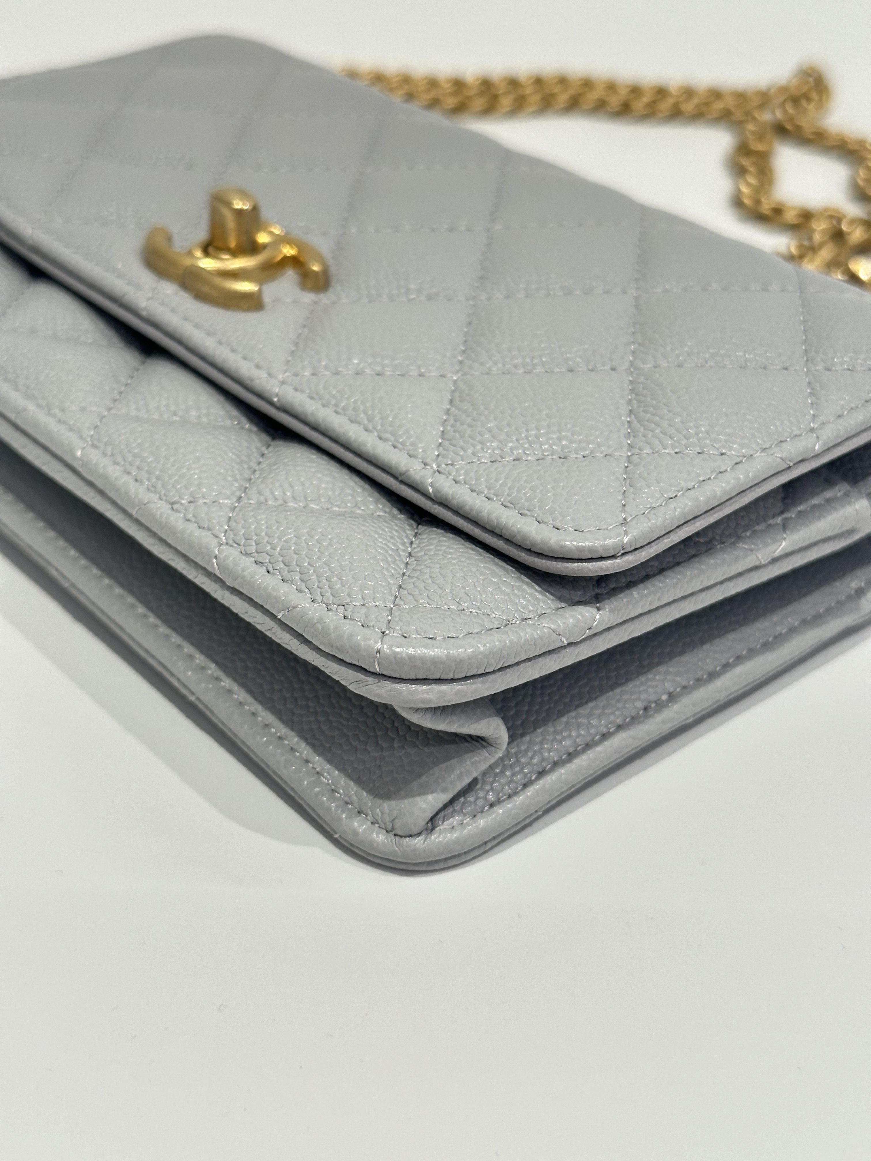 Chanel 24P love golden ball light grey wallet on chain