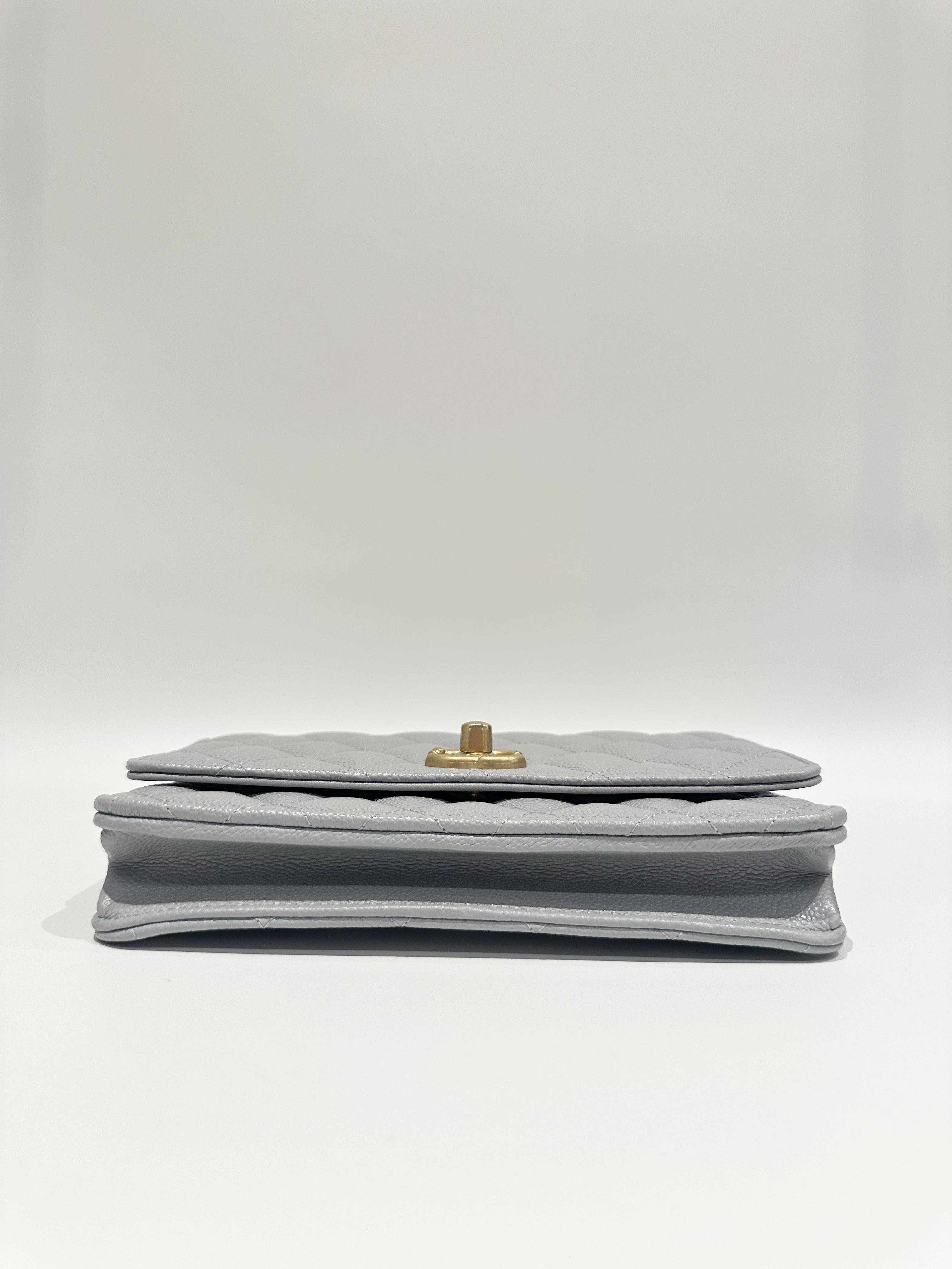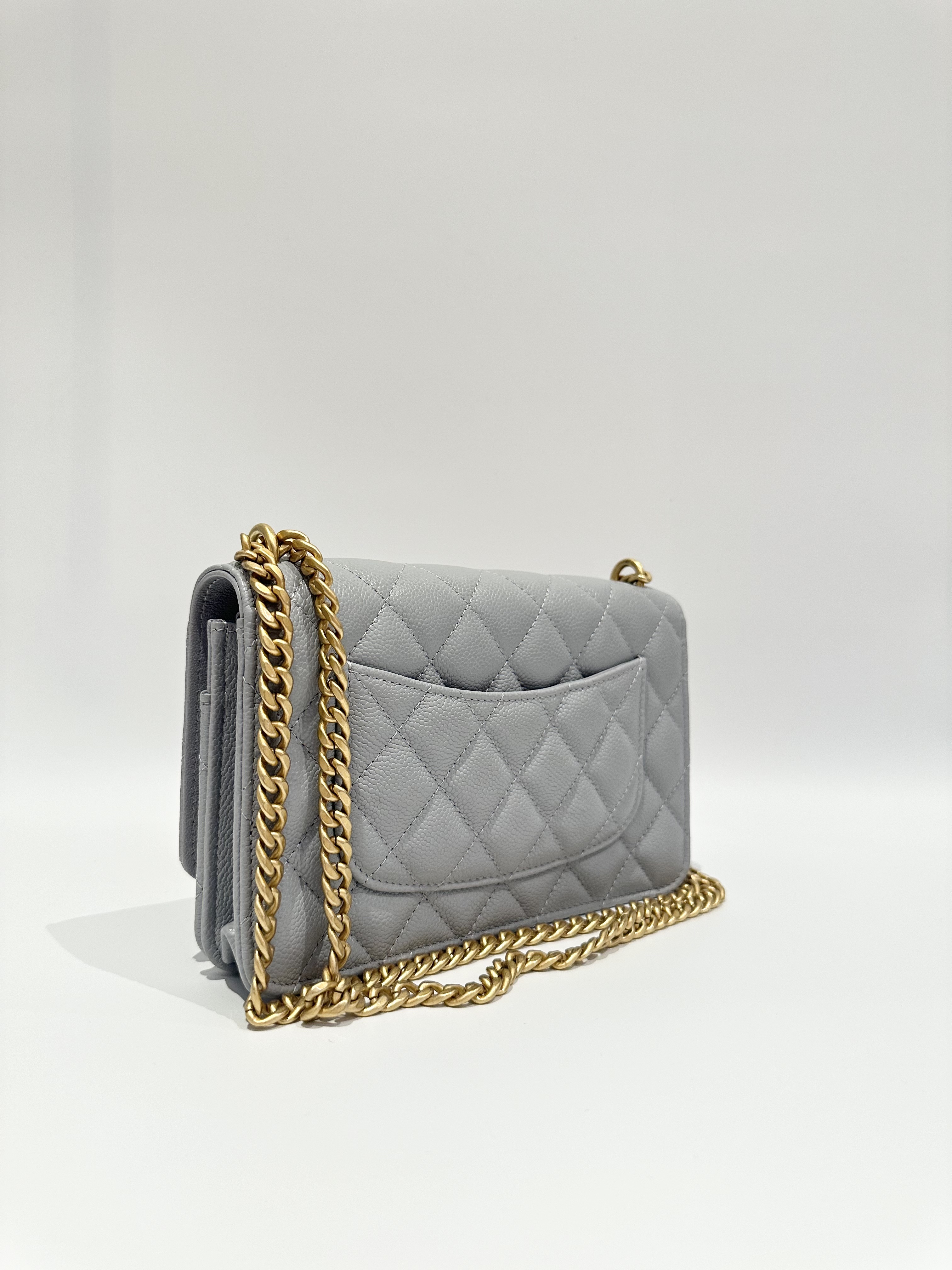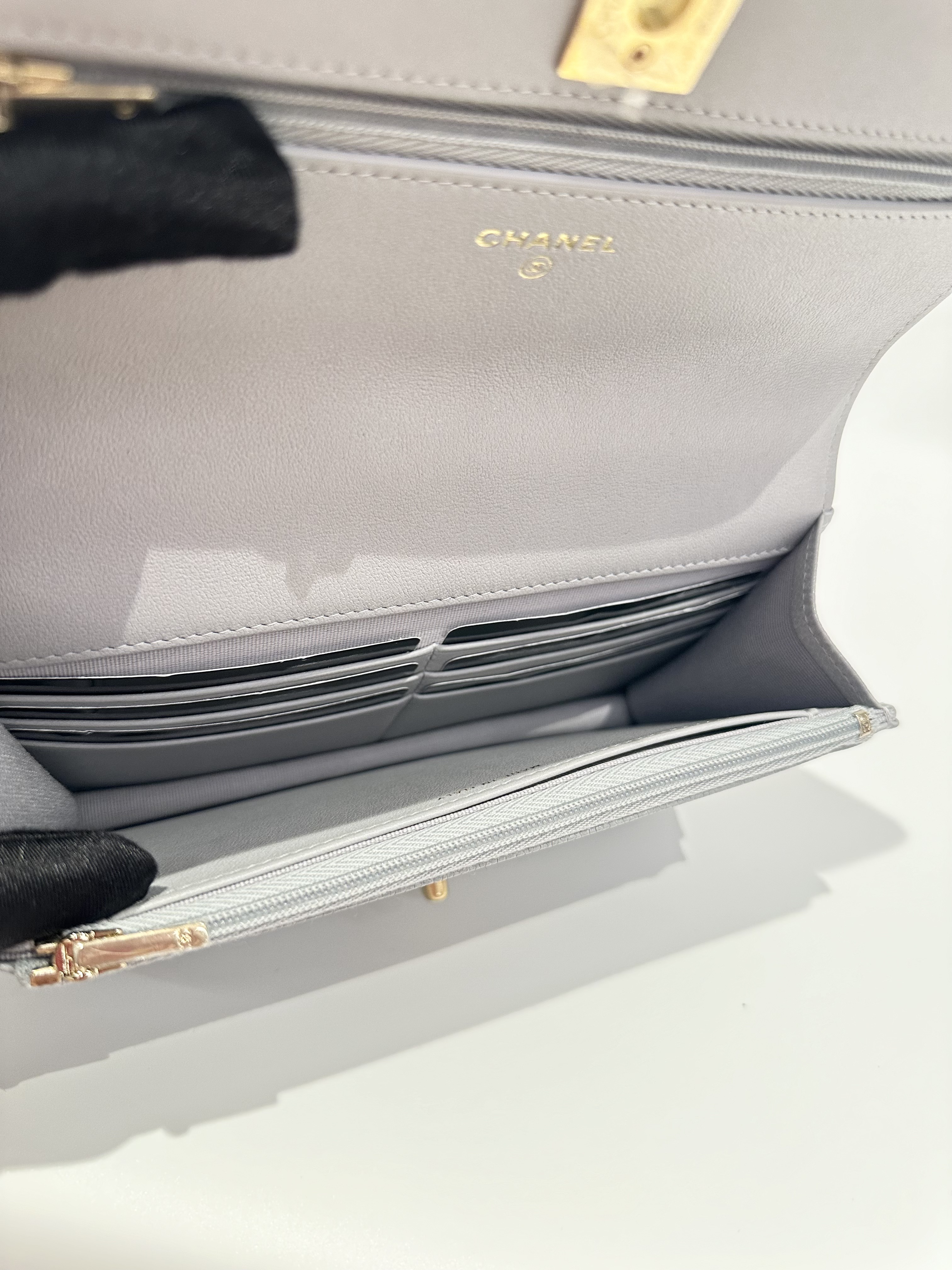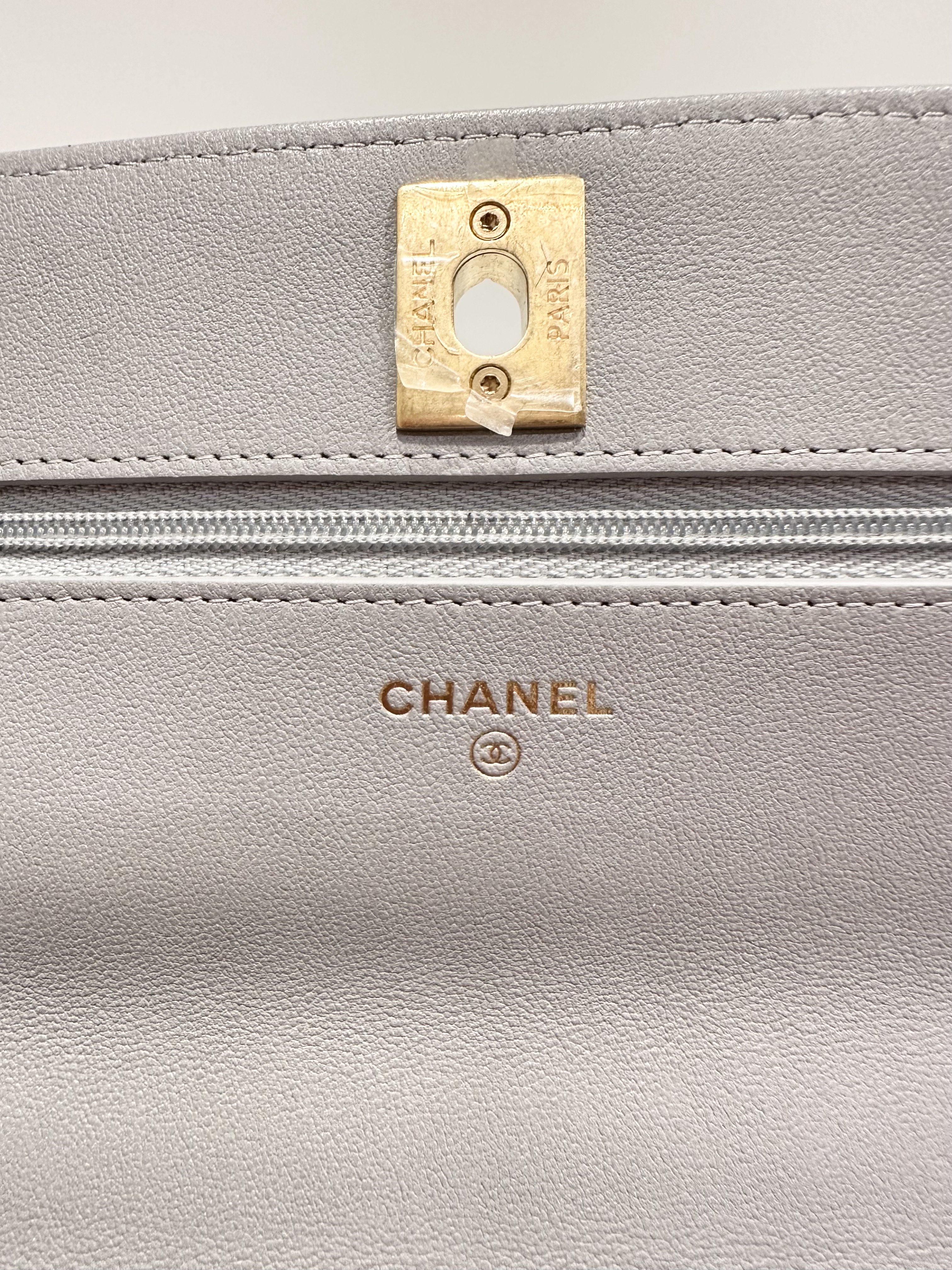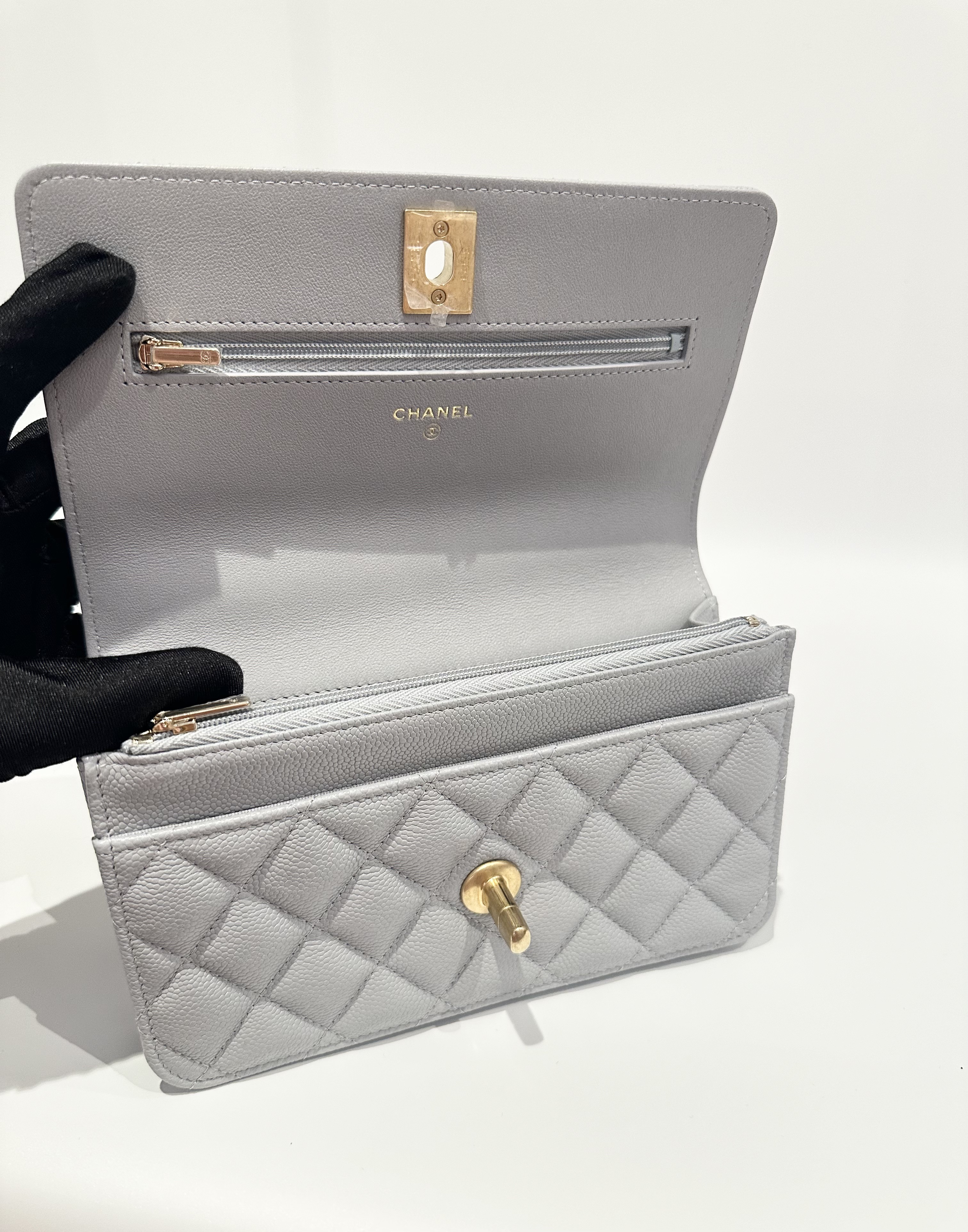 Chanel 24P love golden ball light grey wallet on chain