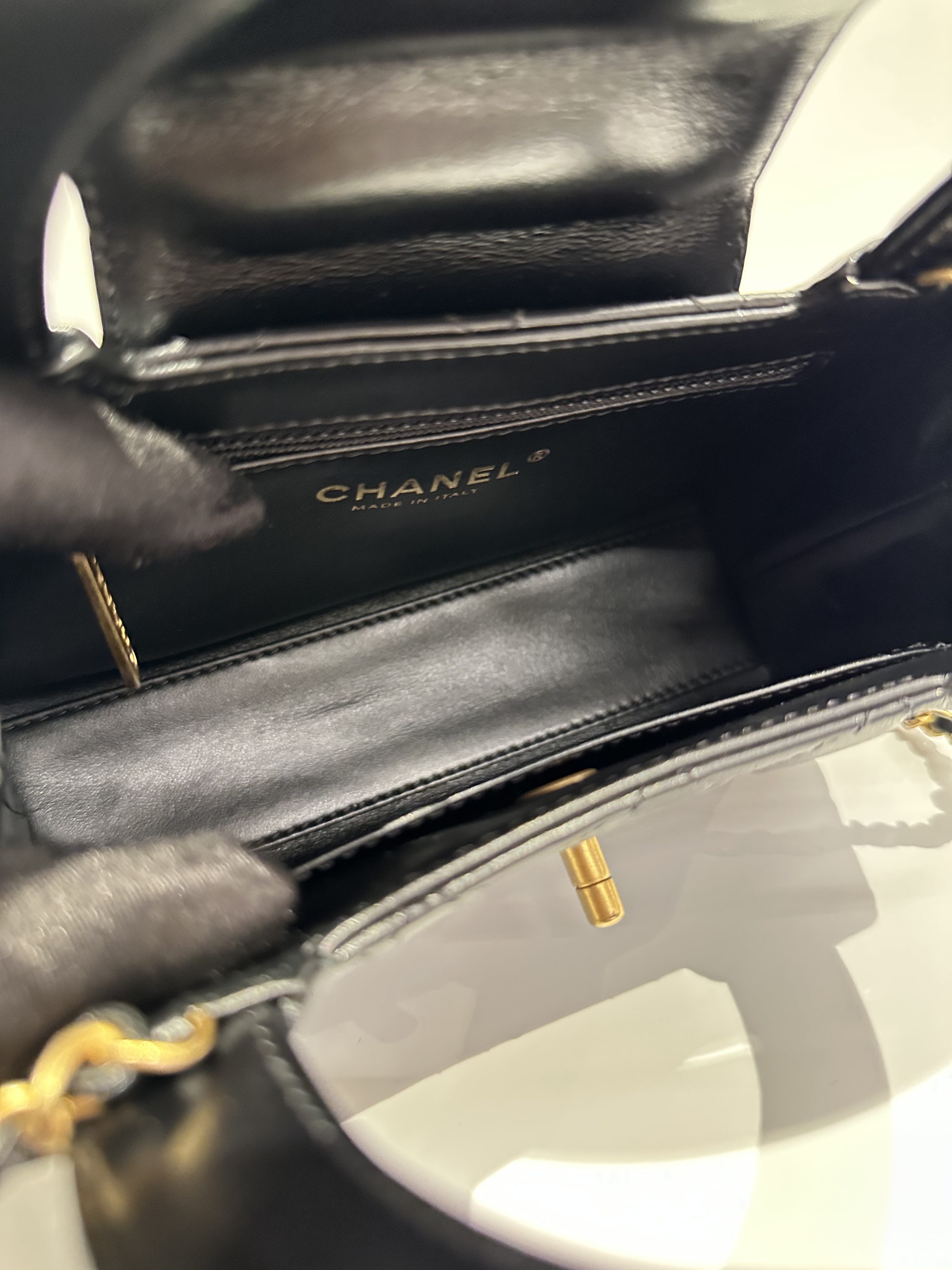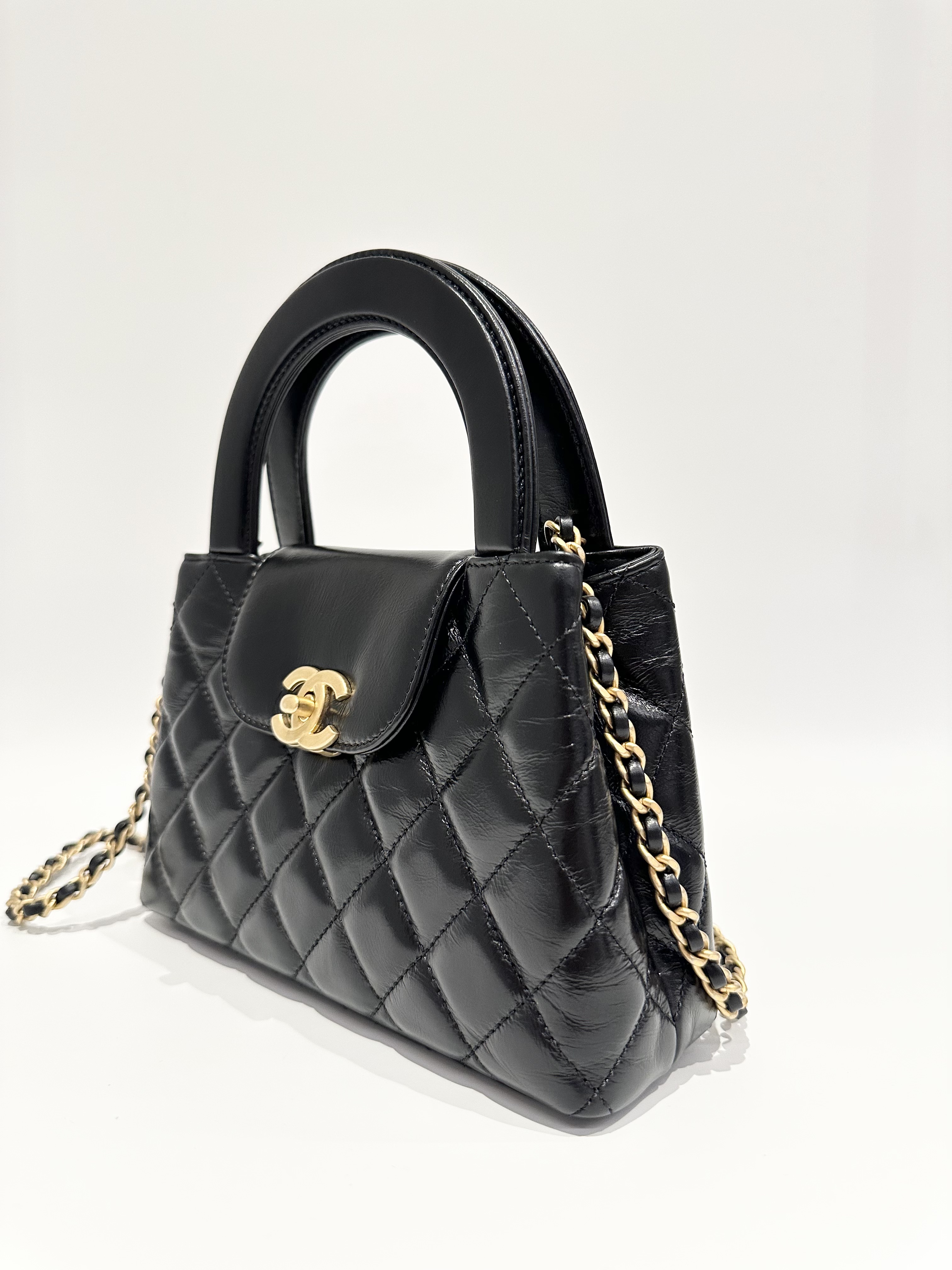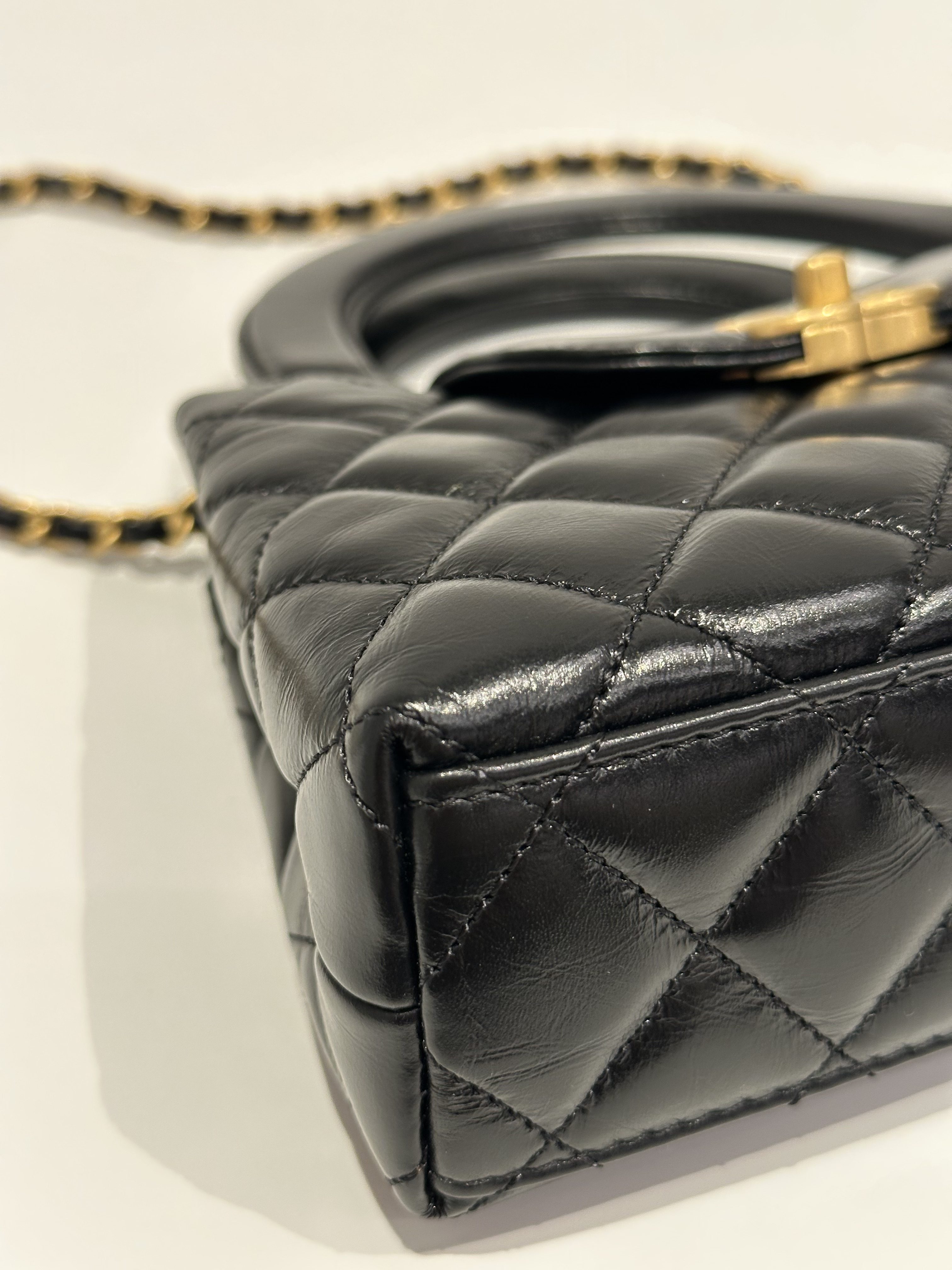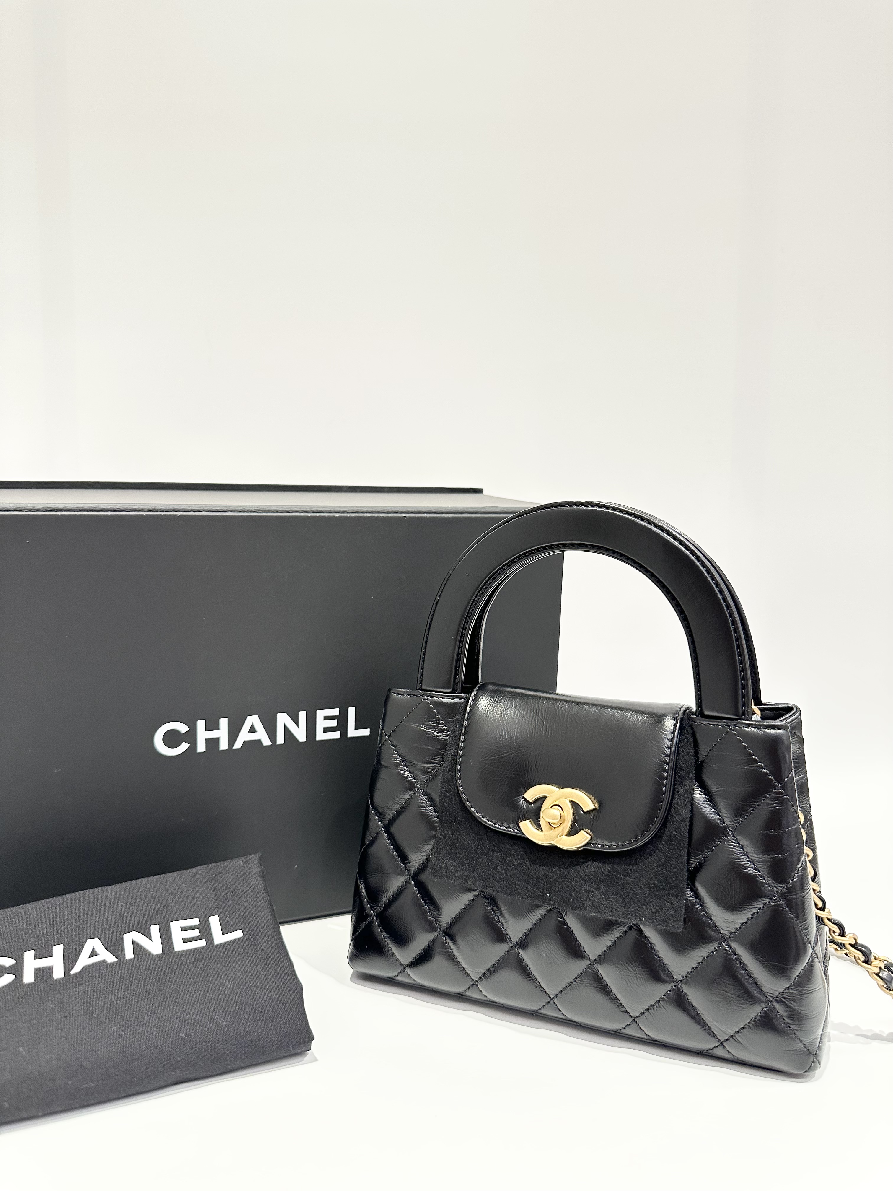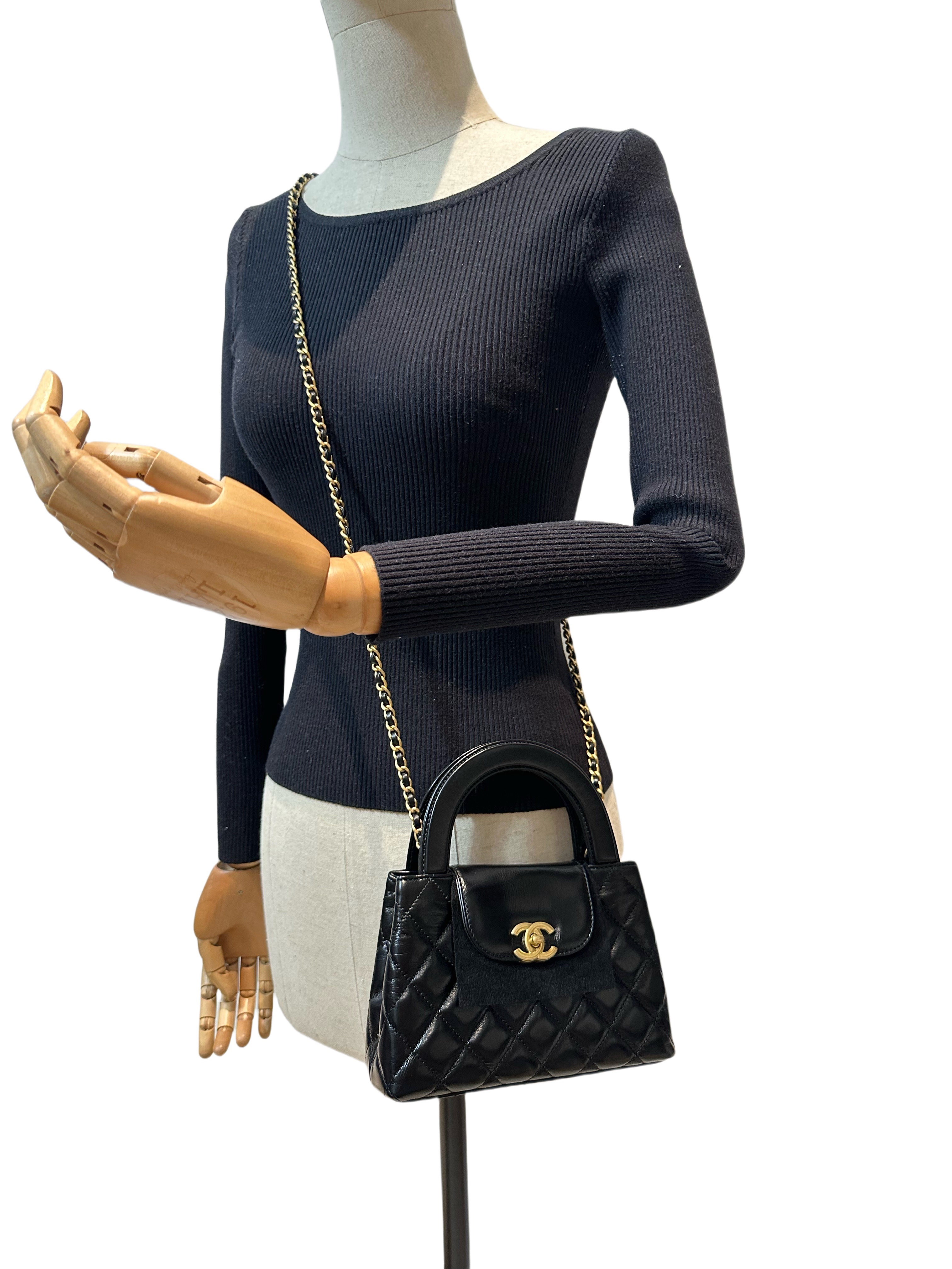 Chanel Black Kelly Mini Shiny Aged Calfskin Handbag