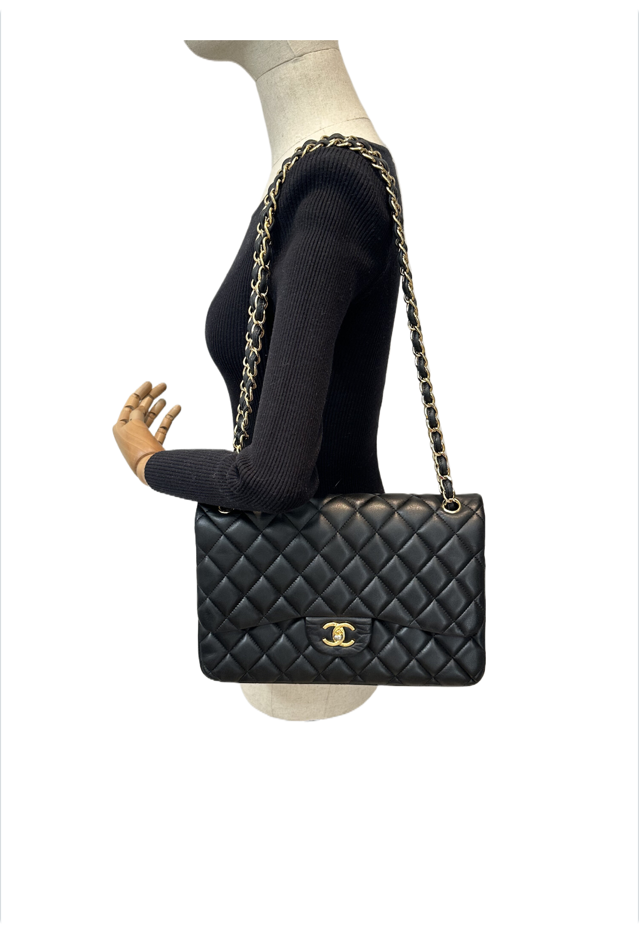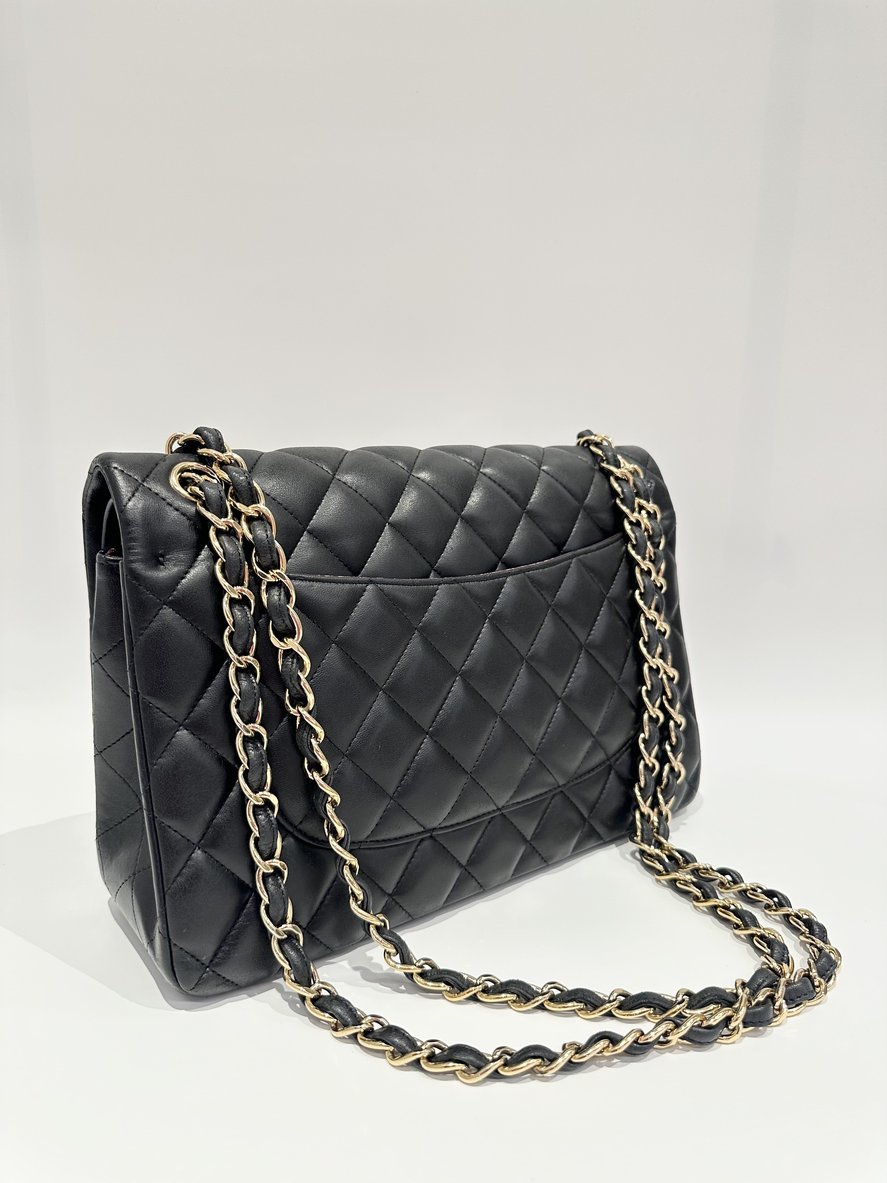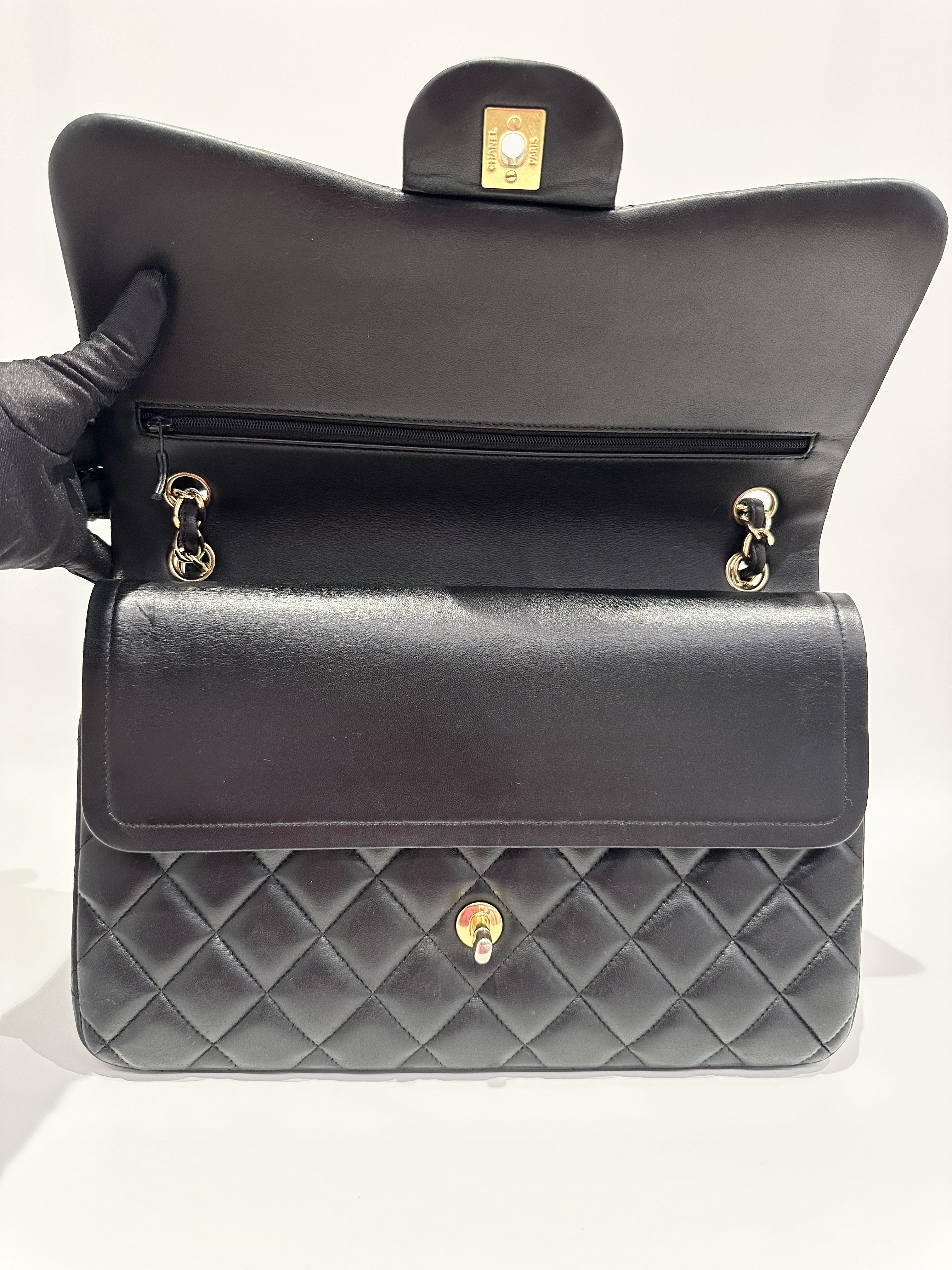 Chanel black large timeless classic double flap handbag