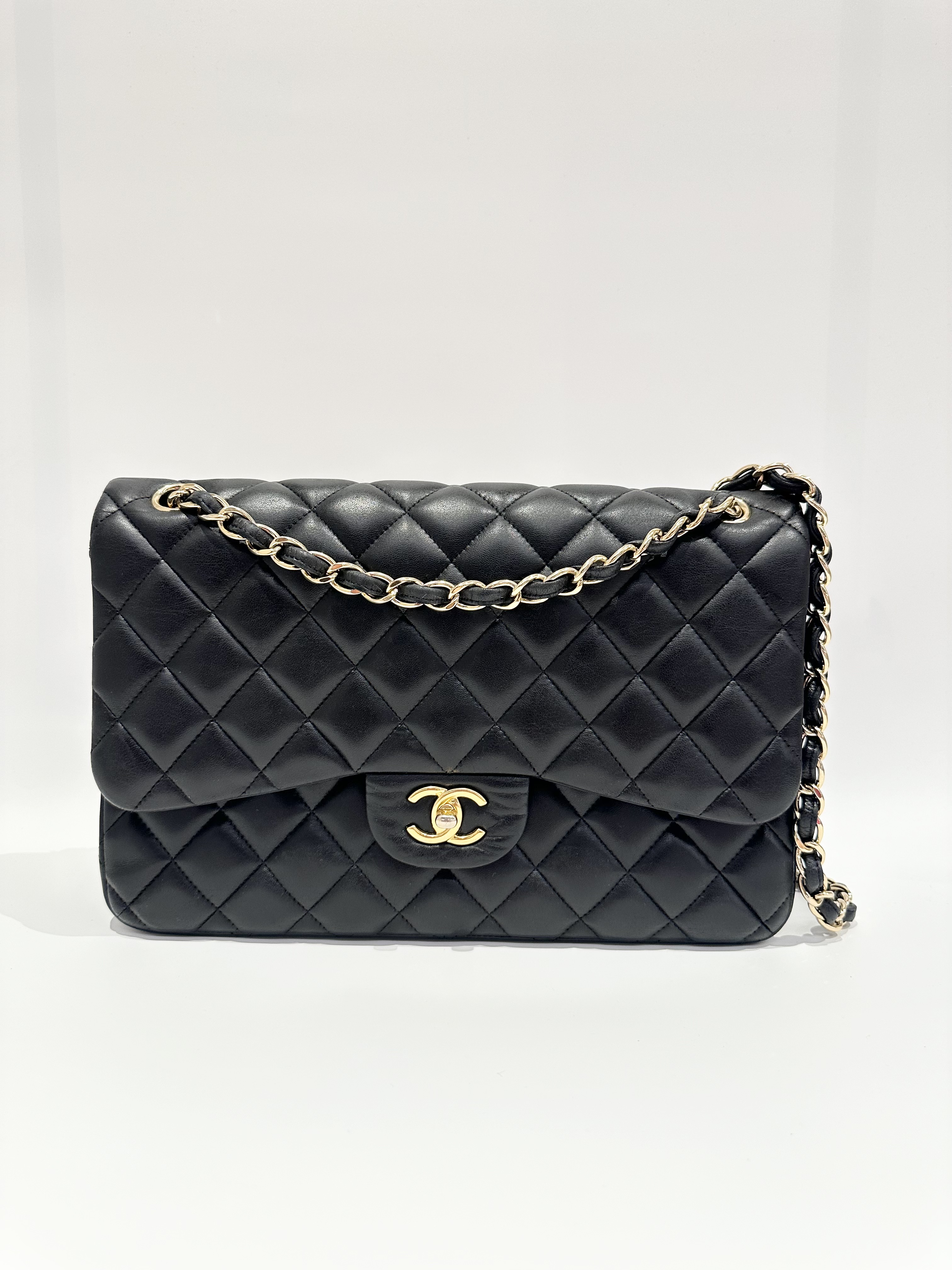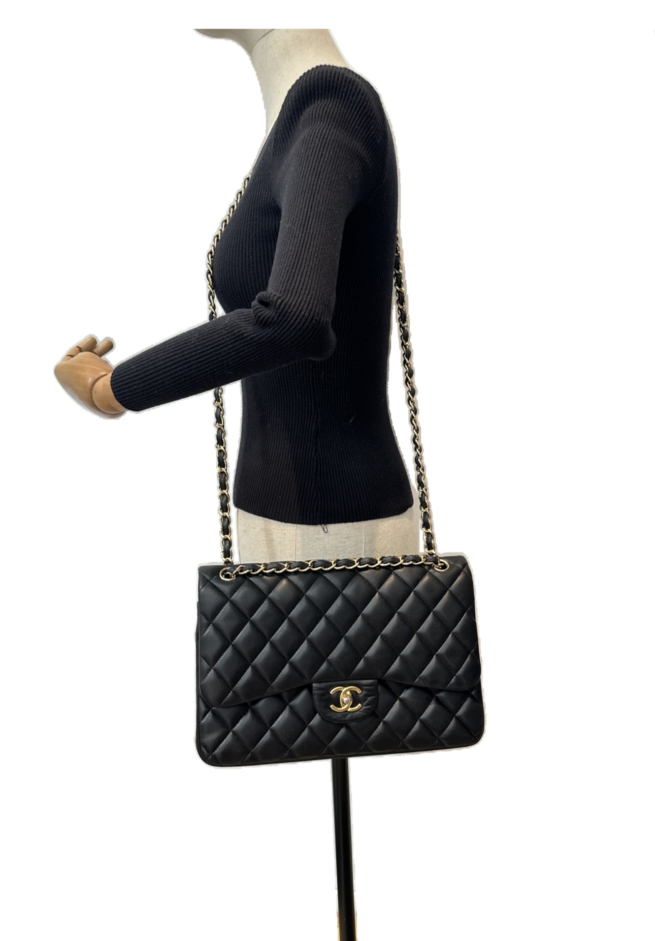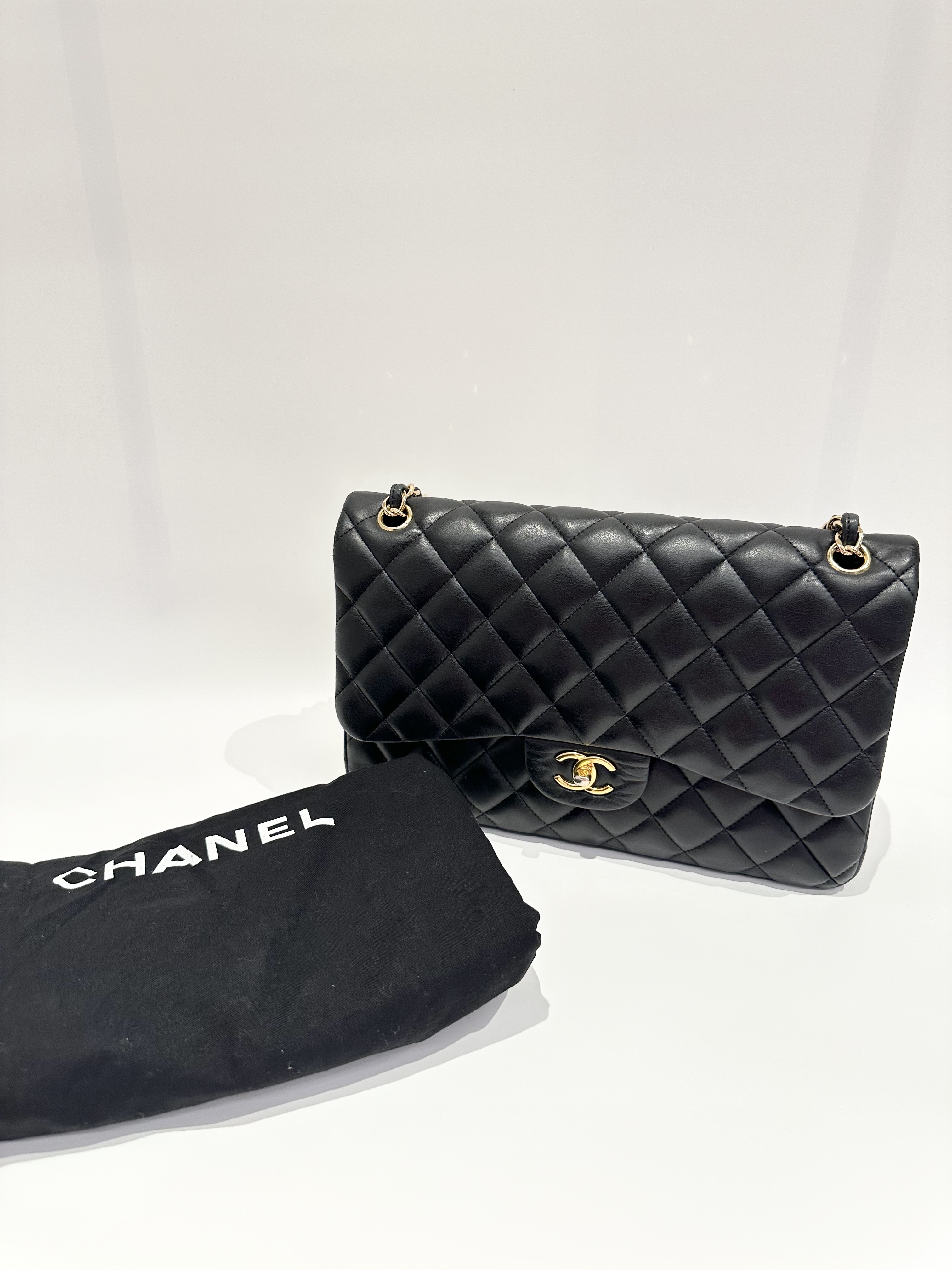Chanel black large timeless classic double flap handbag