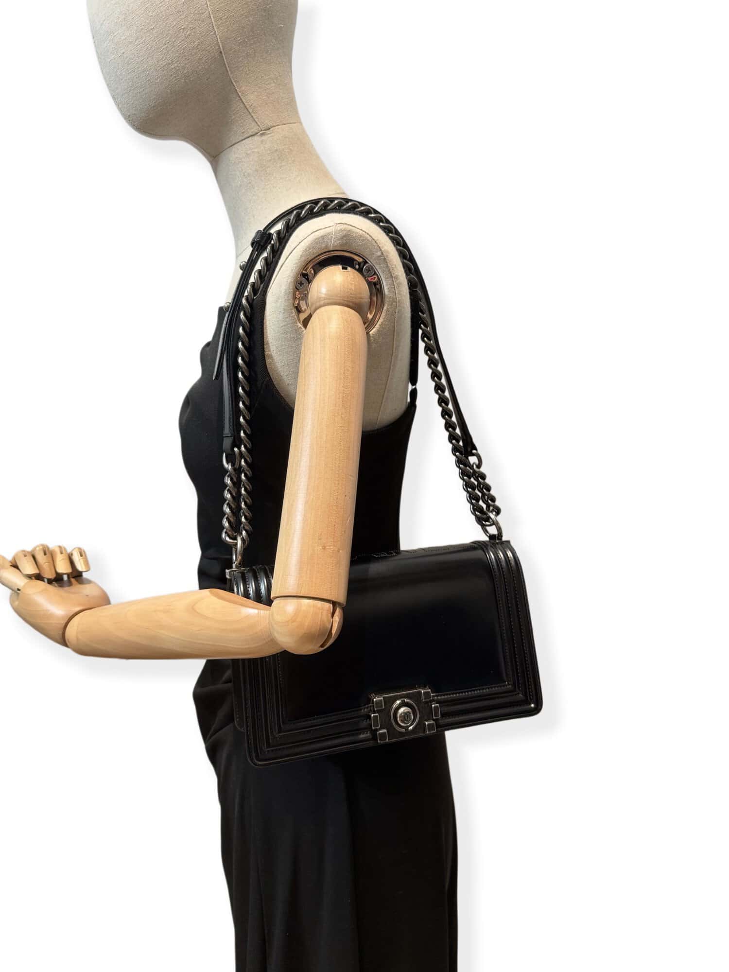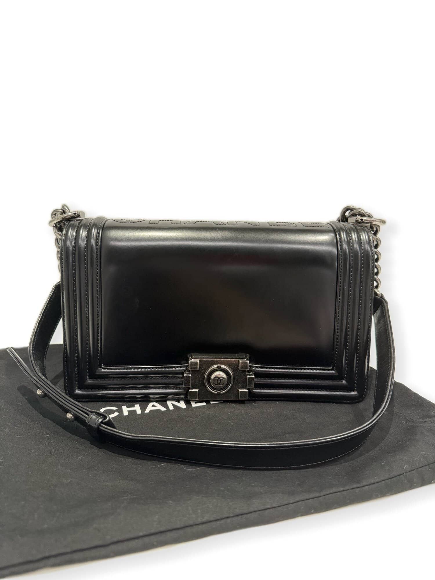 Chanel Black Le Boy Leather Handbag Medium Size