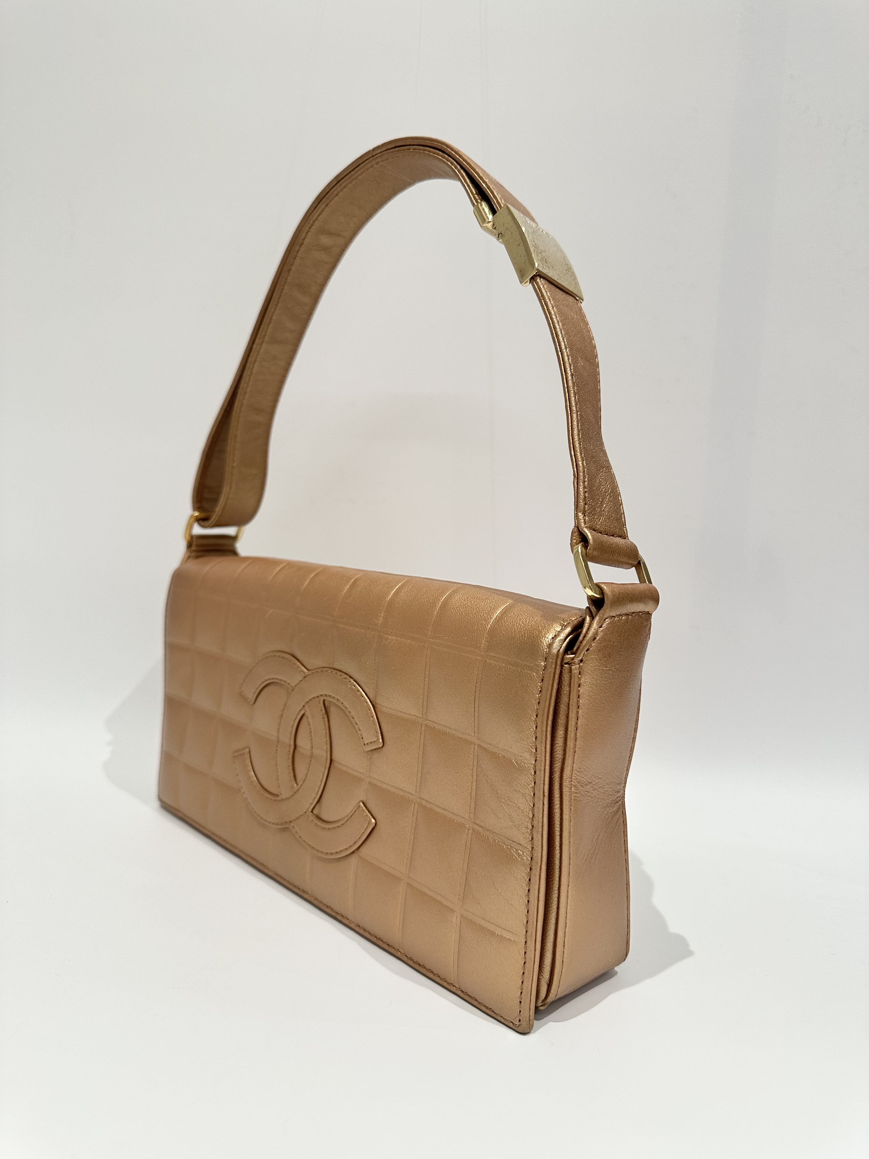 Chanel Gold Chocolate Bar Leather Shoulder Bag
