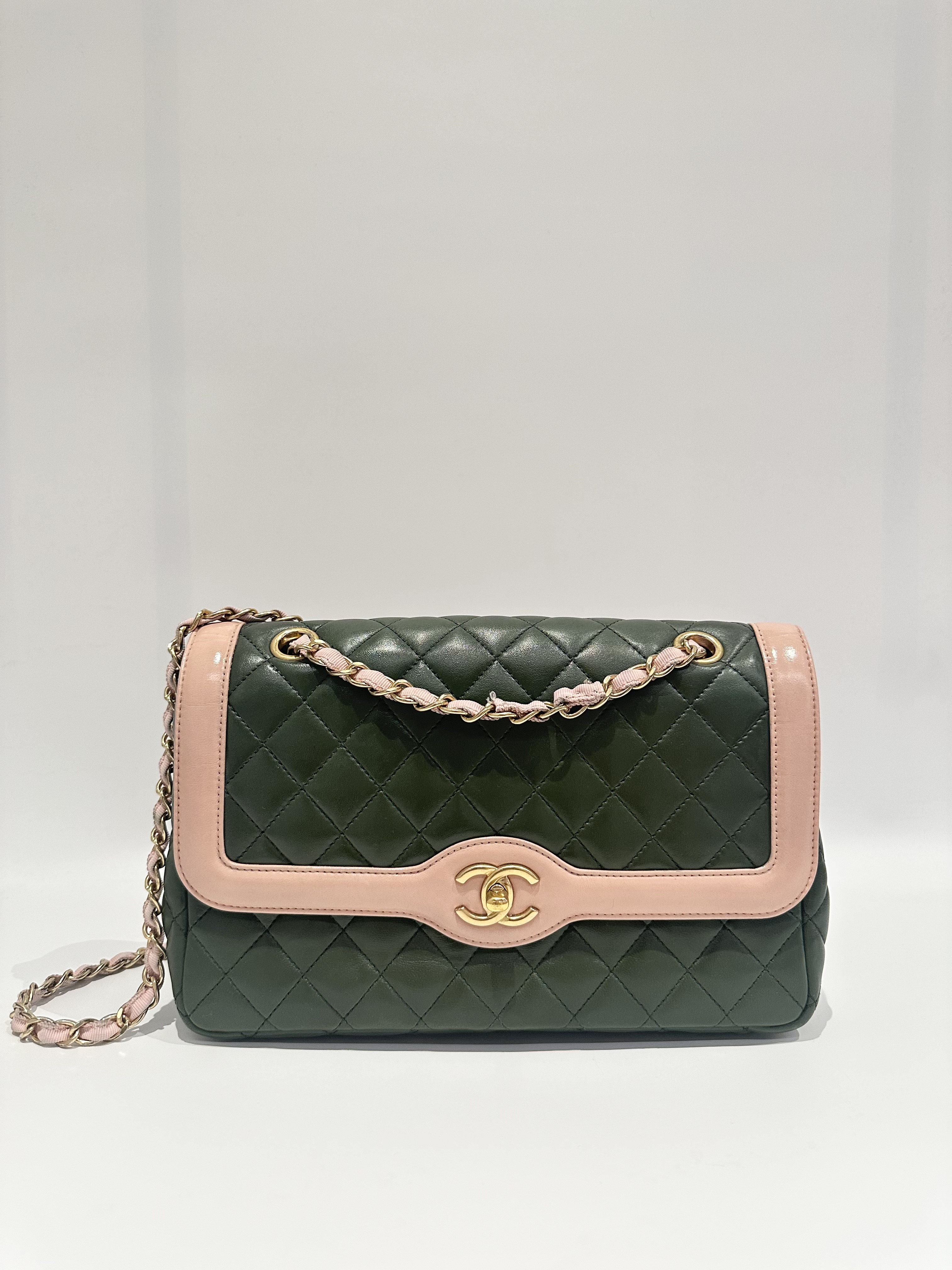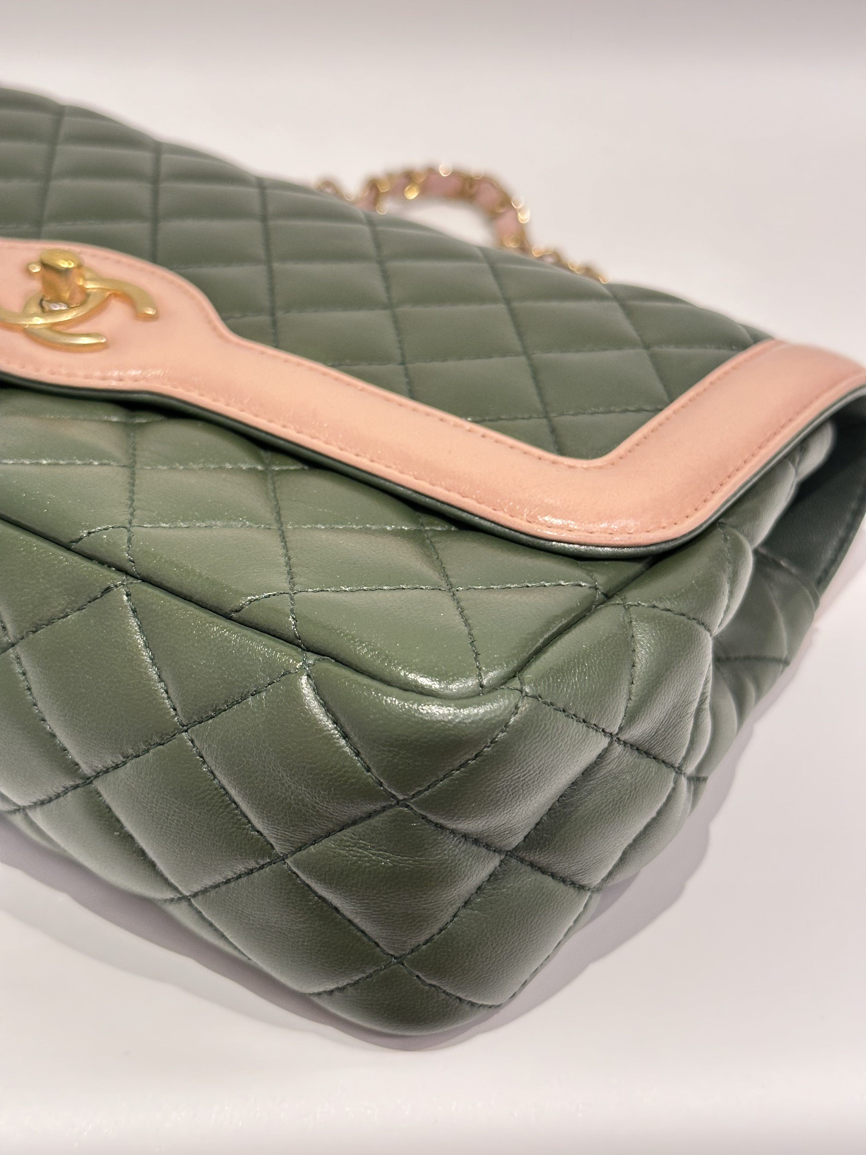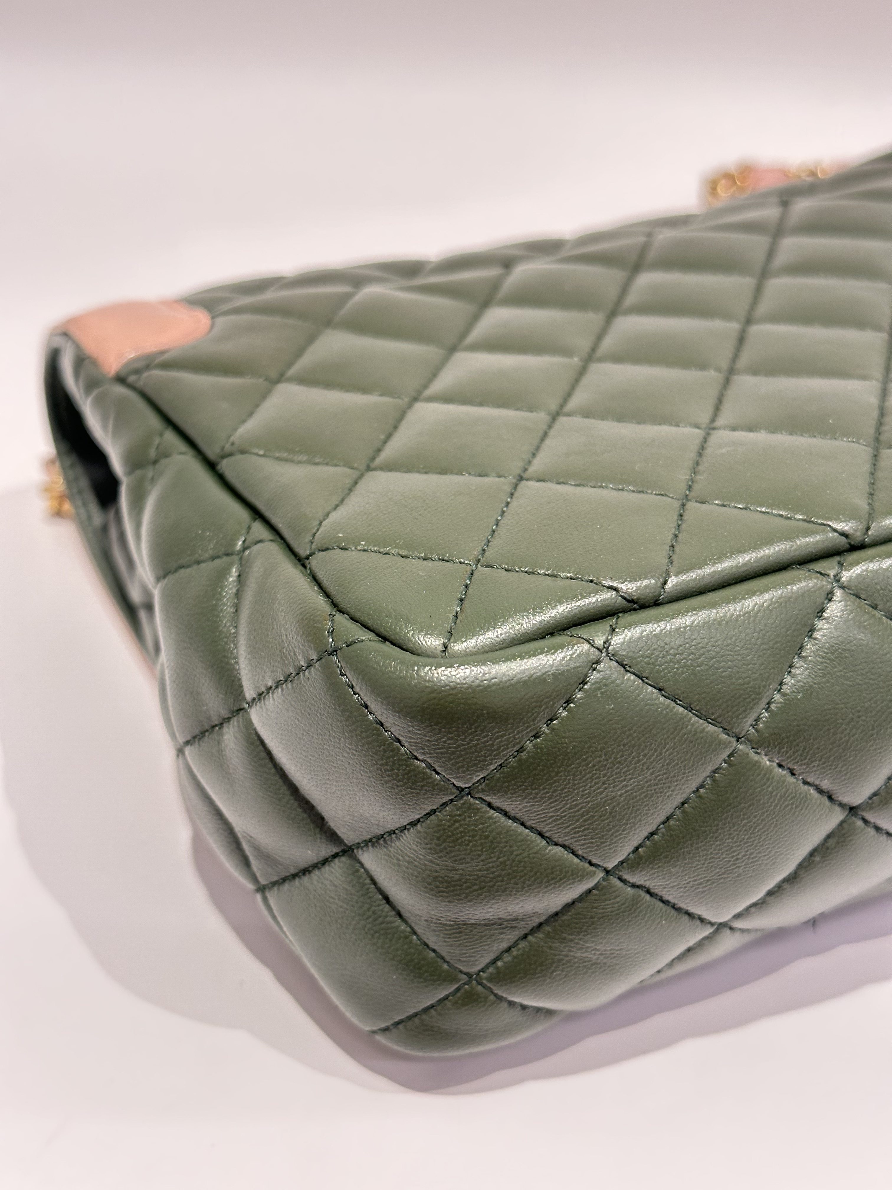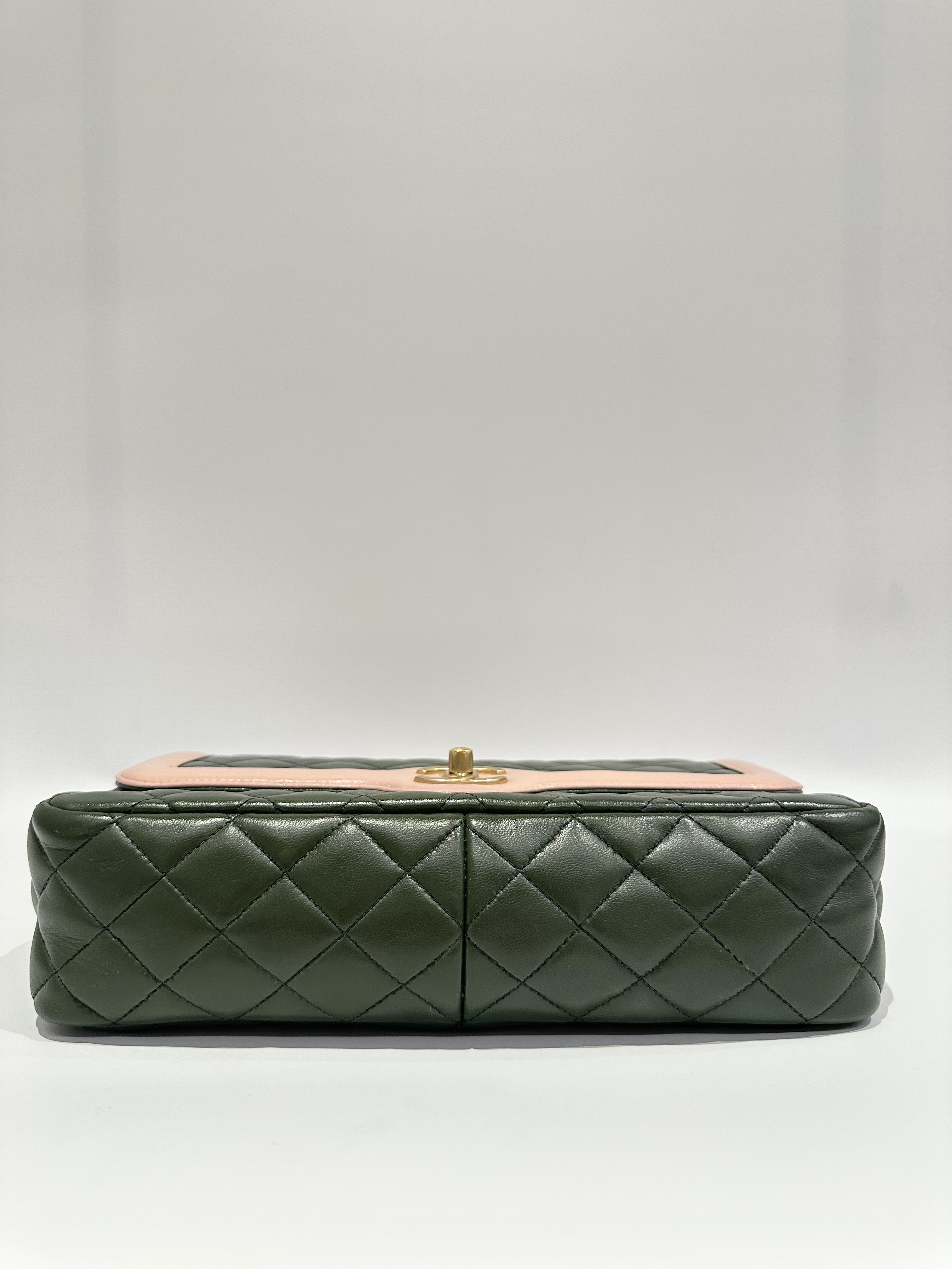 Chanel Green Pink Timeless Classic Flap Leather Handbag
