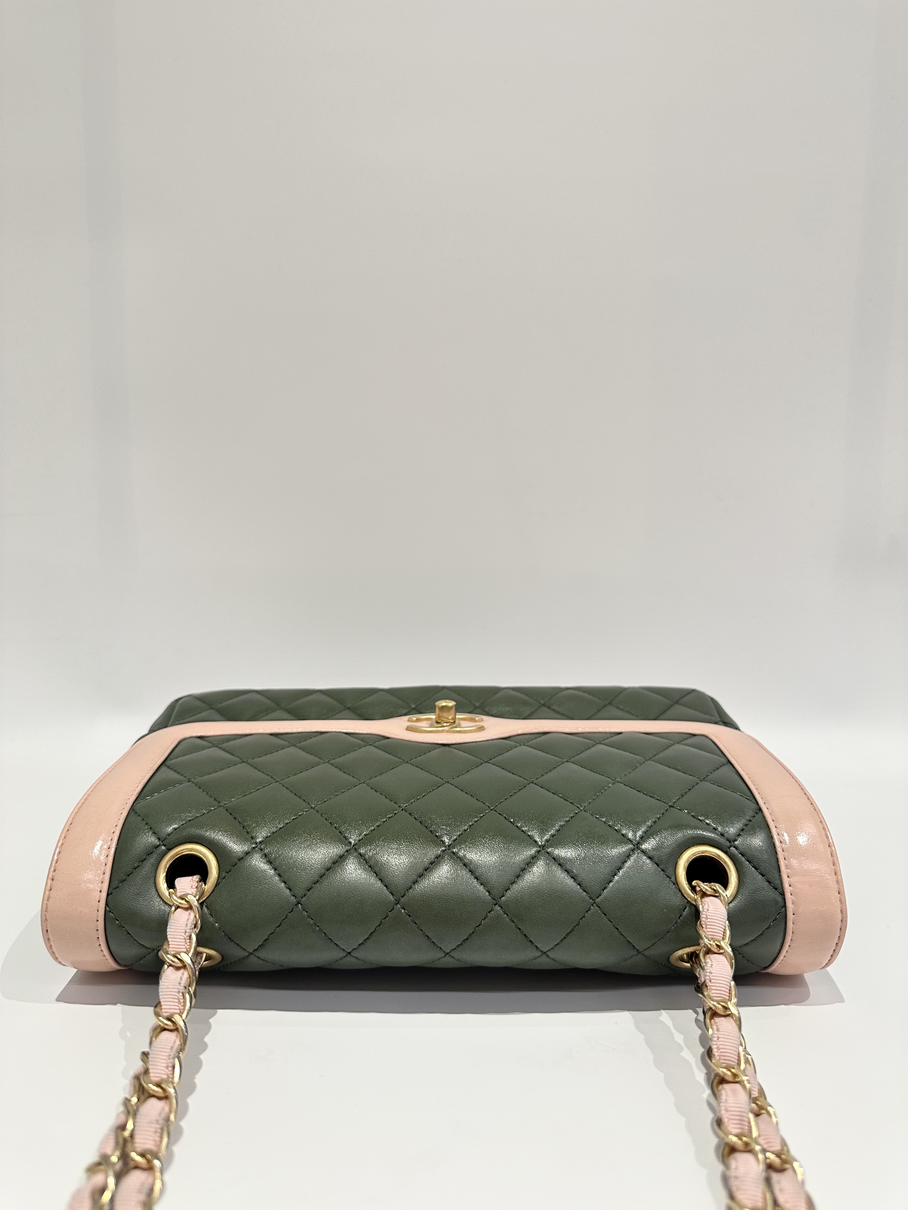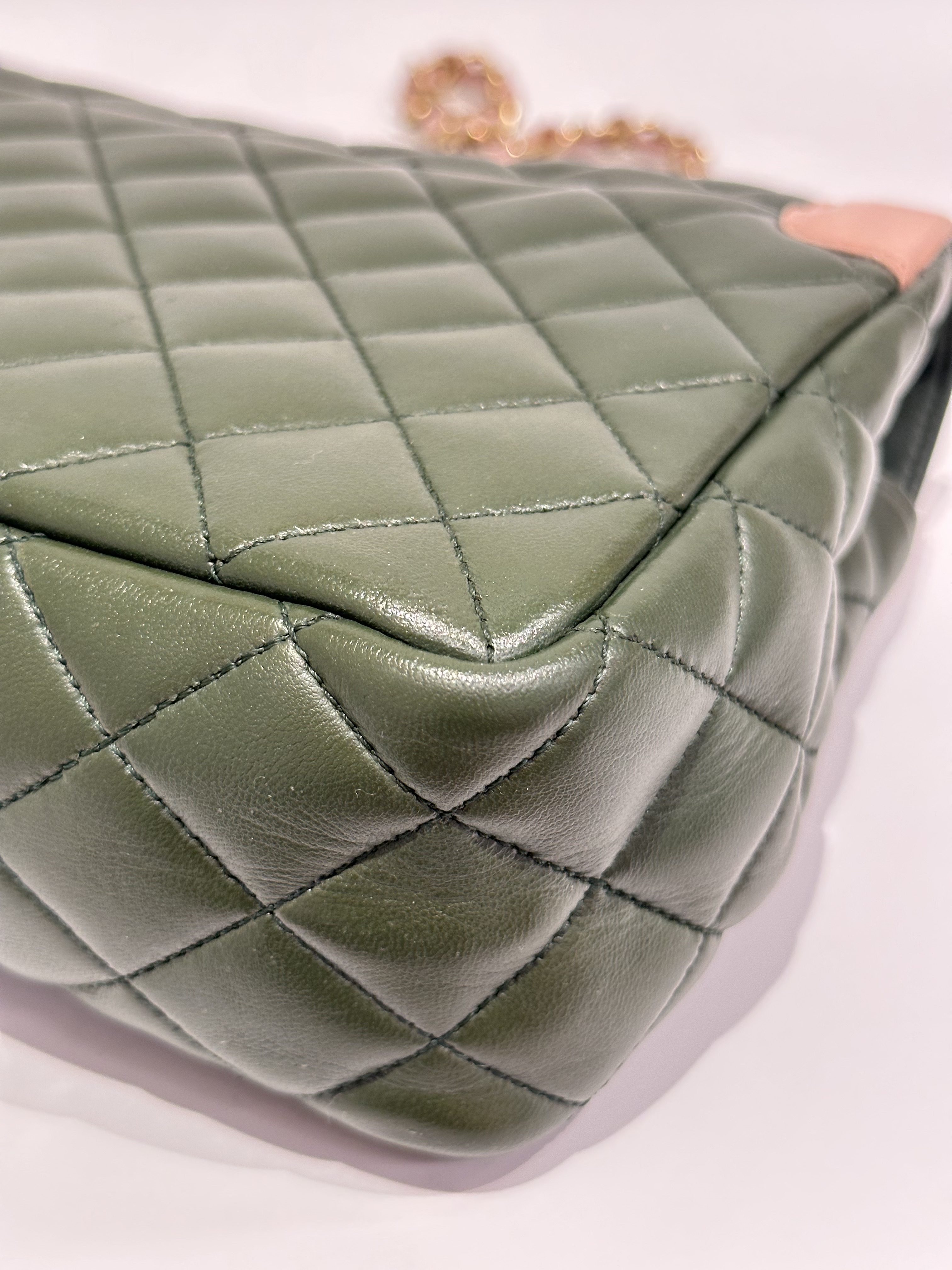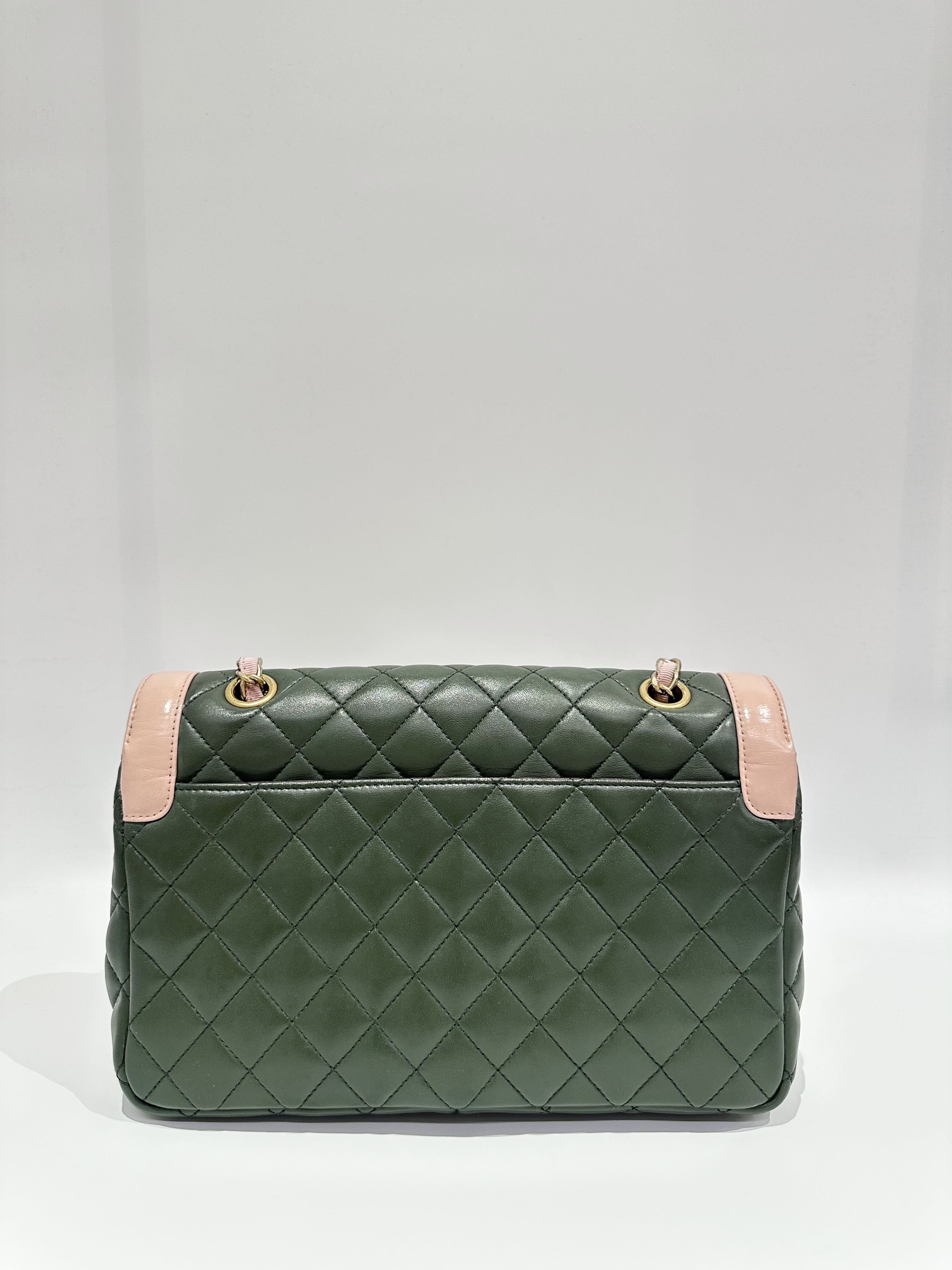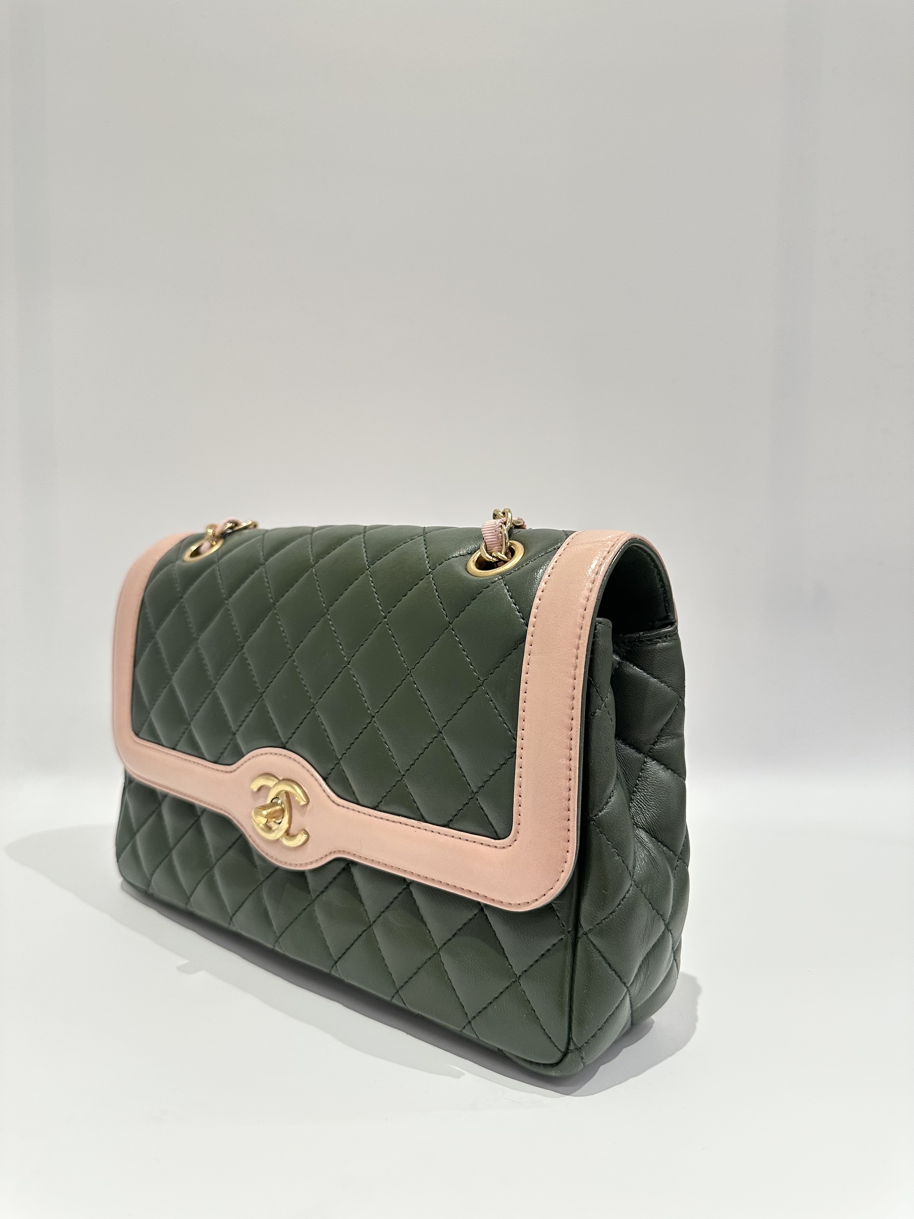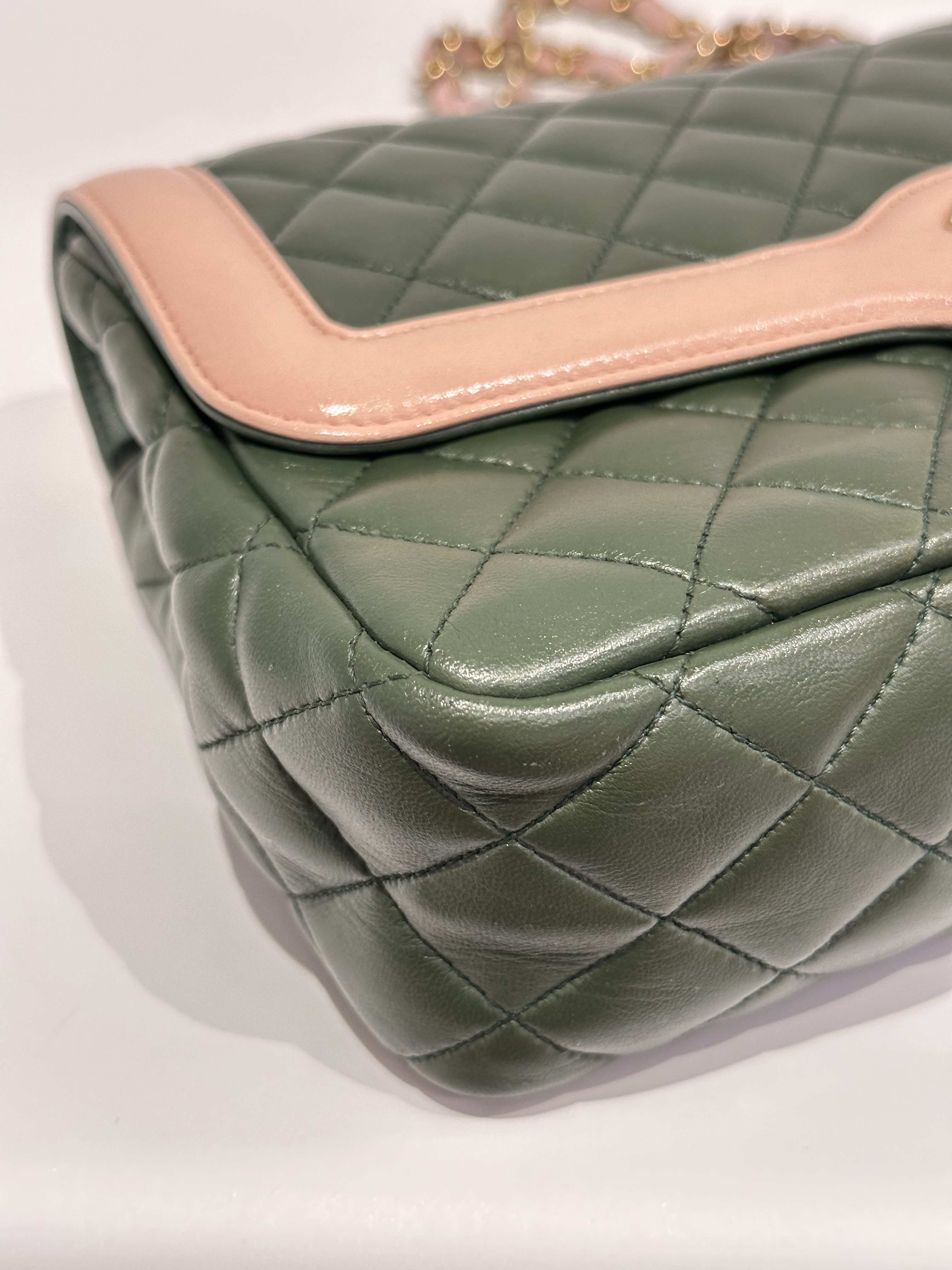 Chanel Green Pink Timeless Classic Flap Leather Handbag