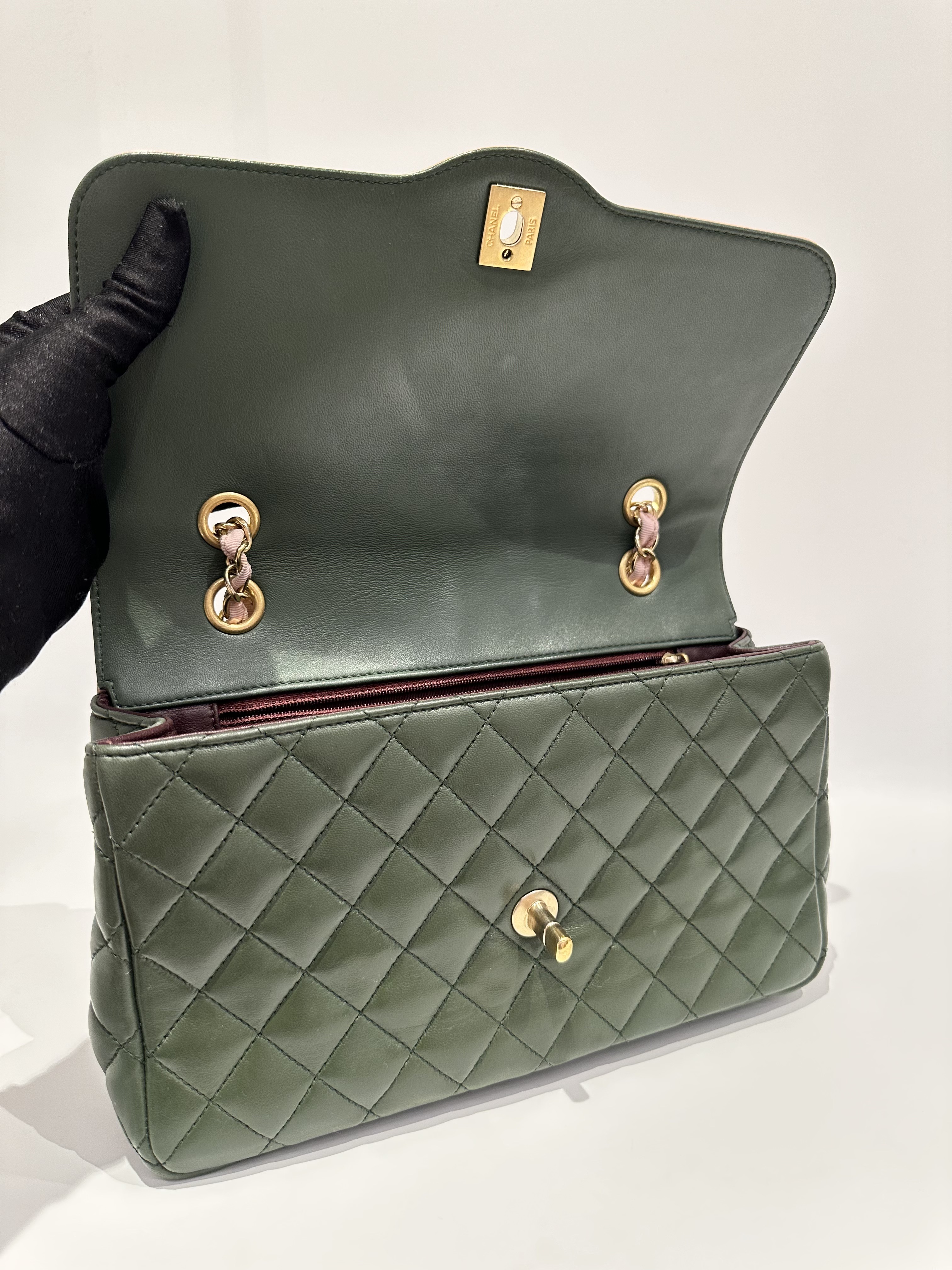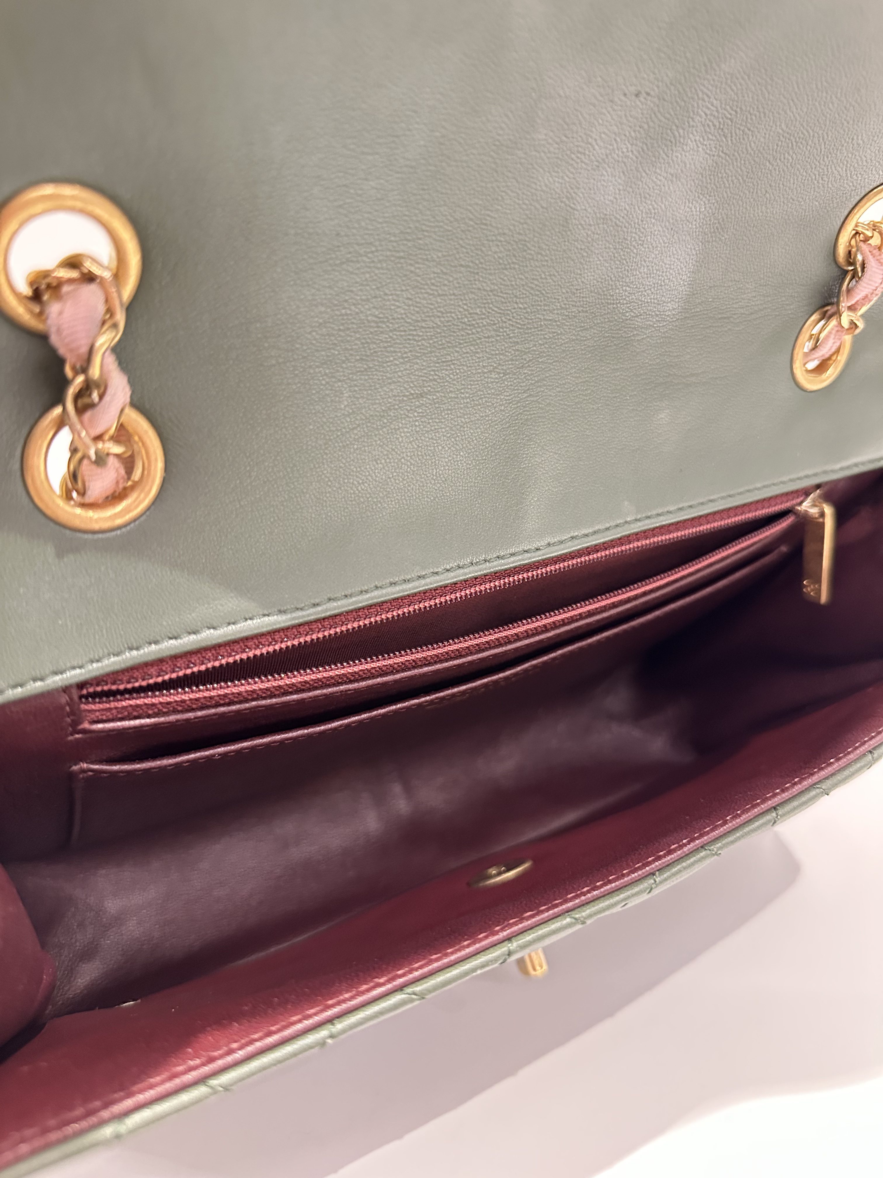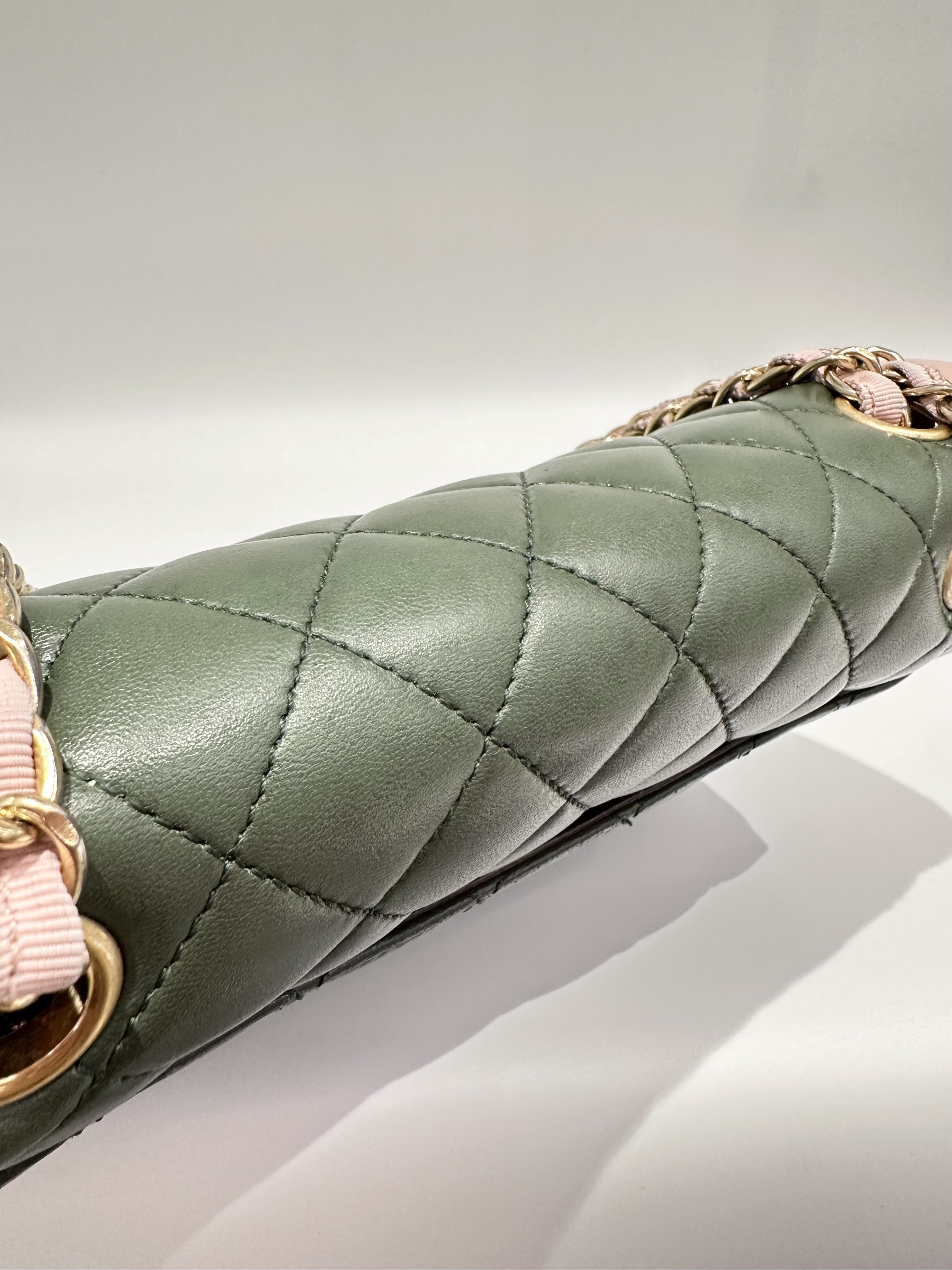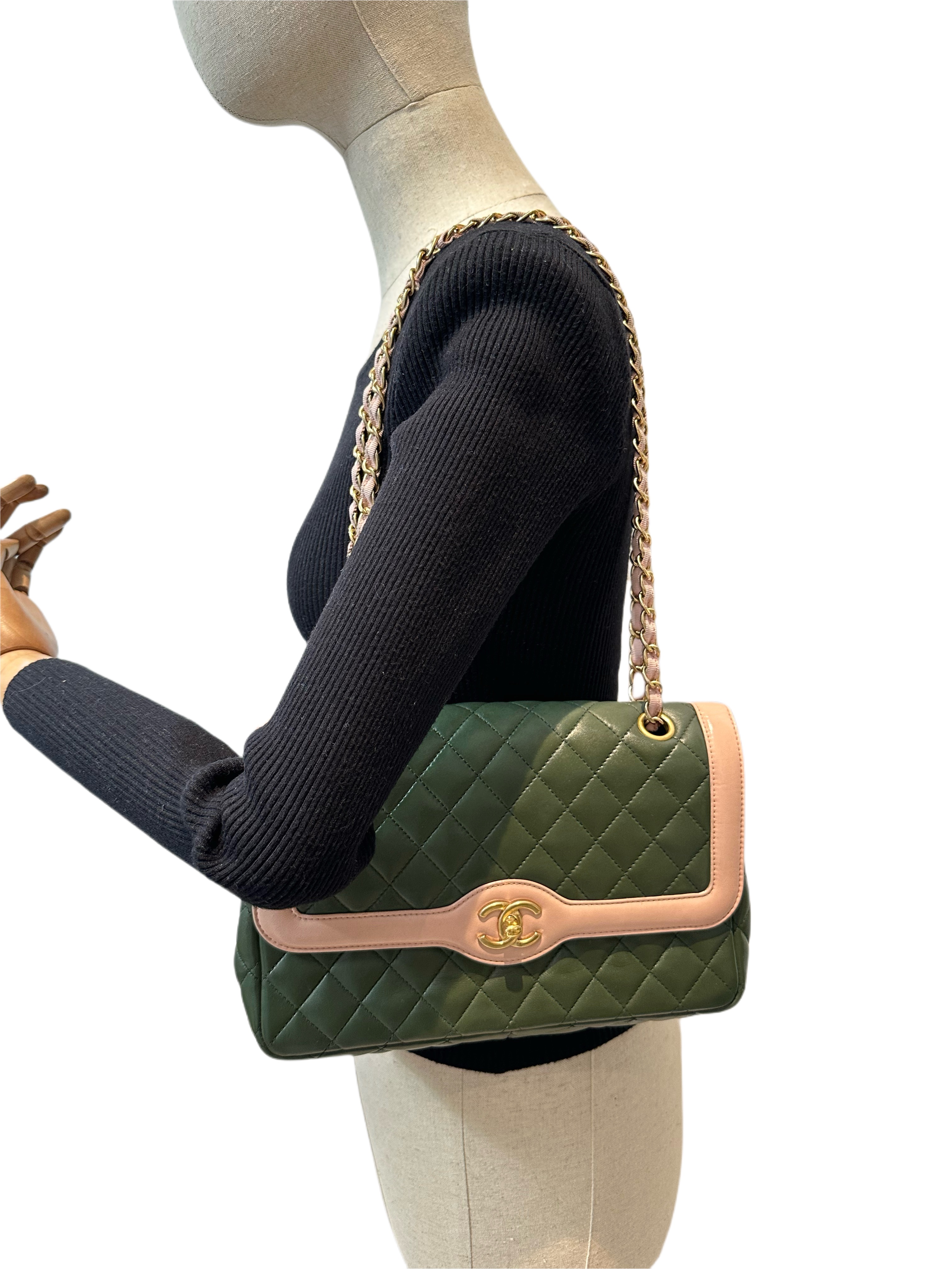 Chanel Green Pink Timeless Classic Flap Leather Handbag