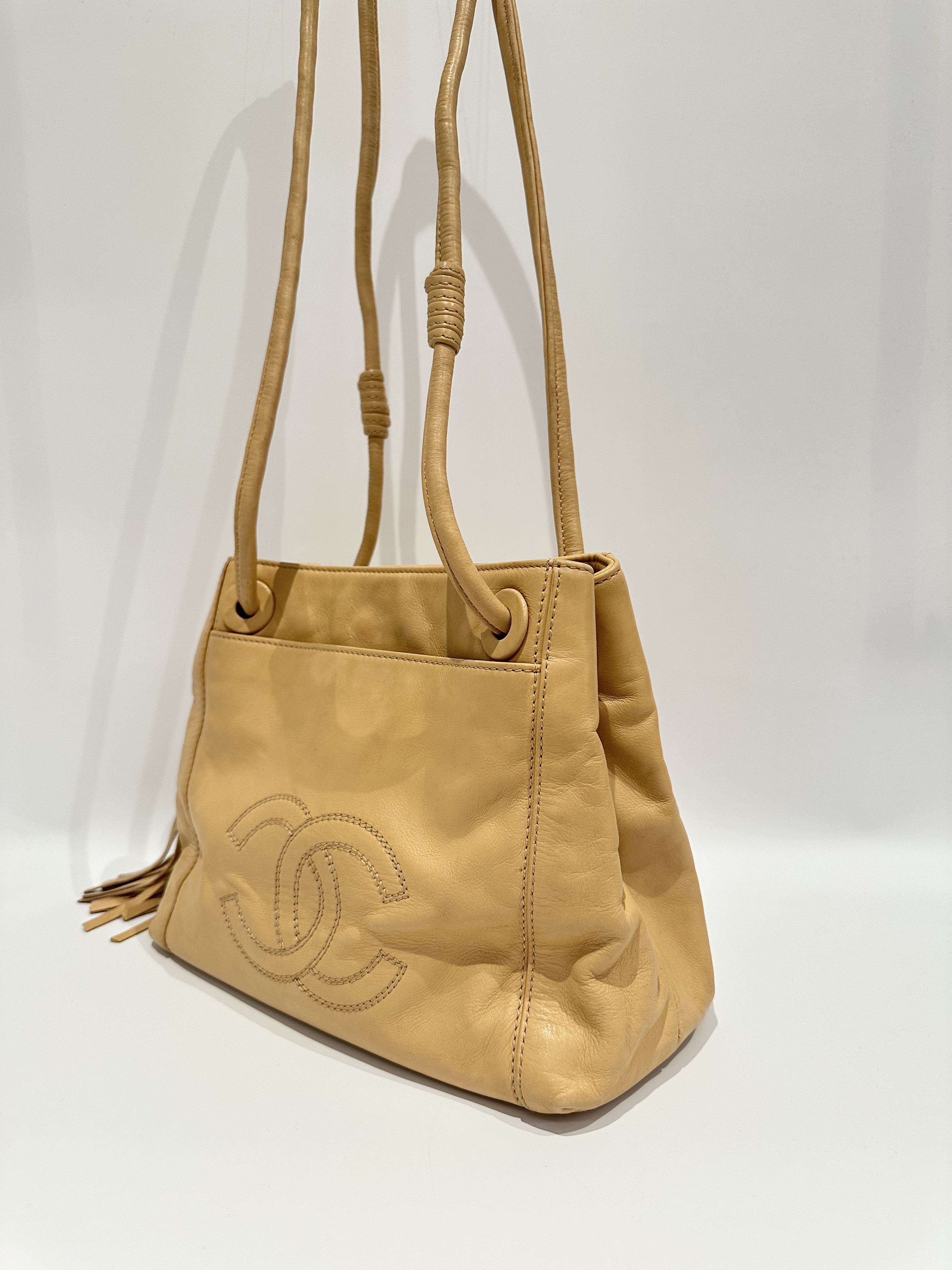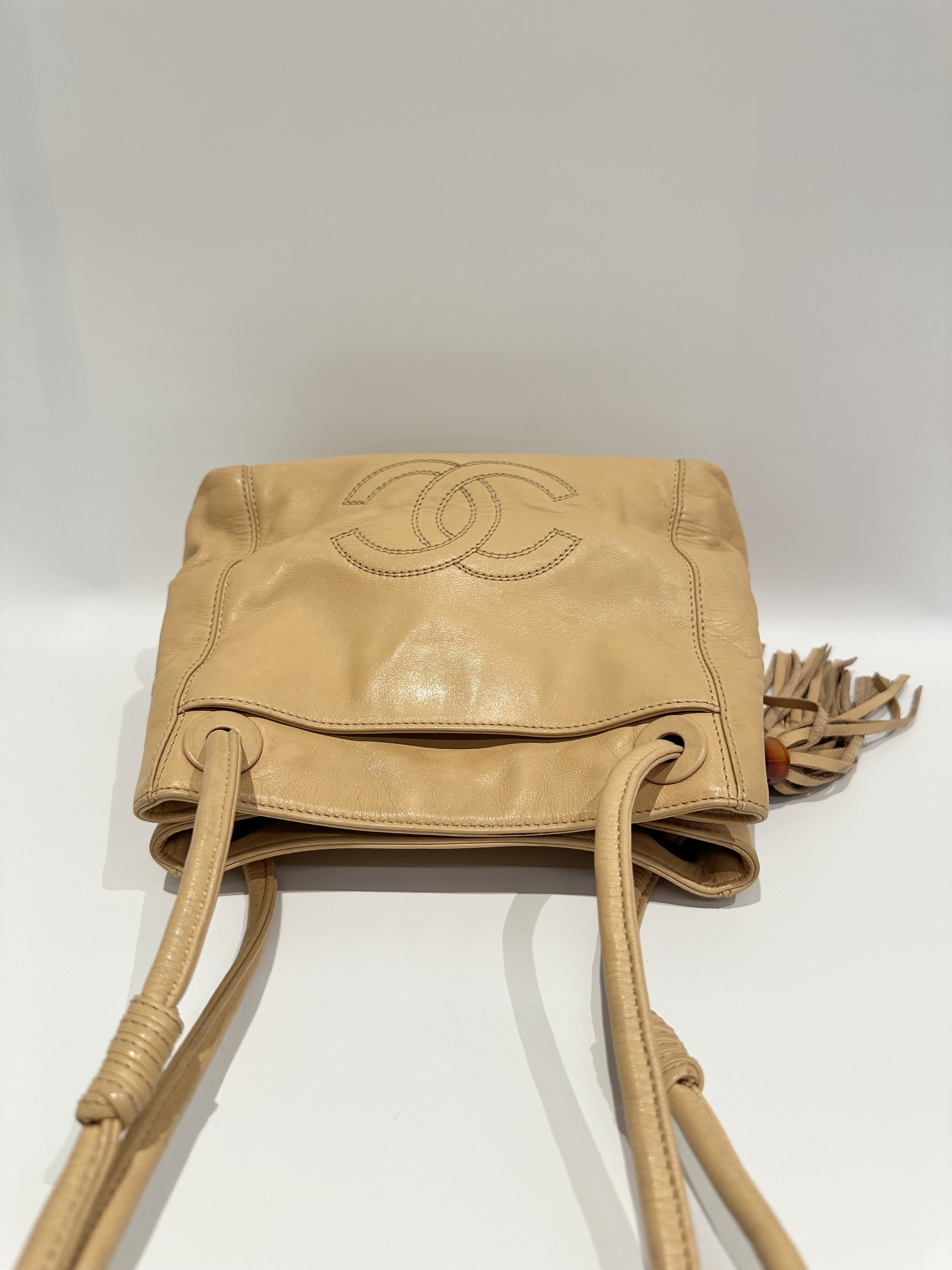 Chanel Vintage Beige Mini Bucket Leather Shoulder Bag