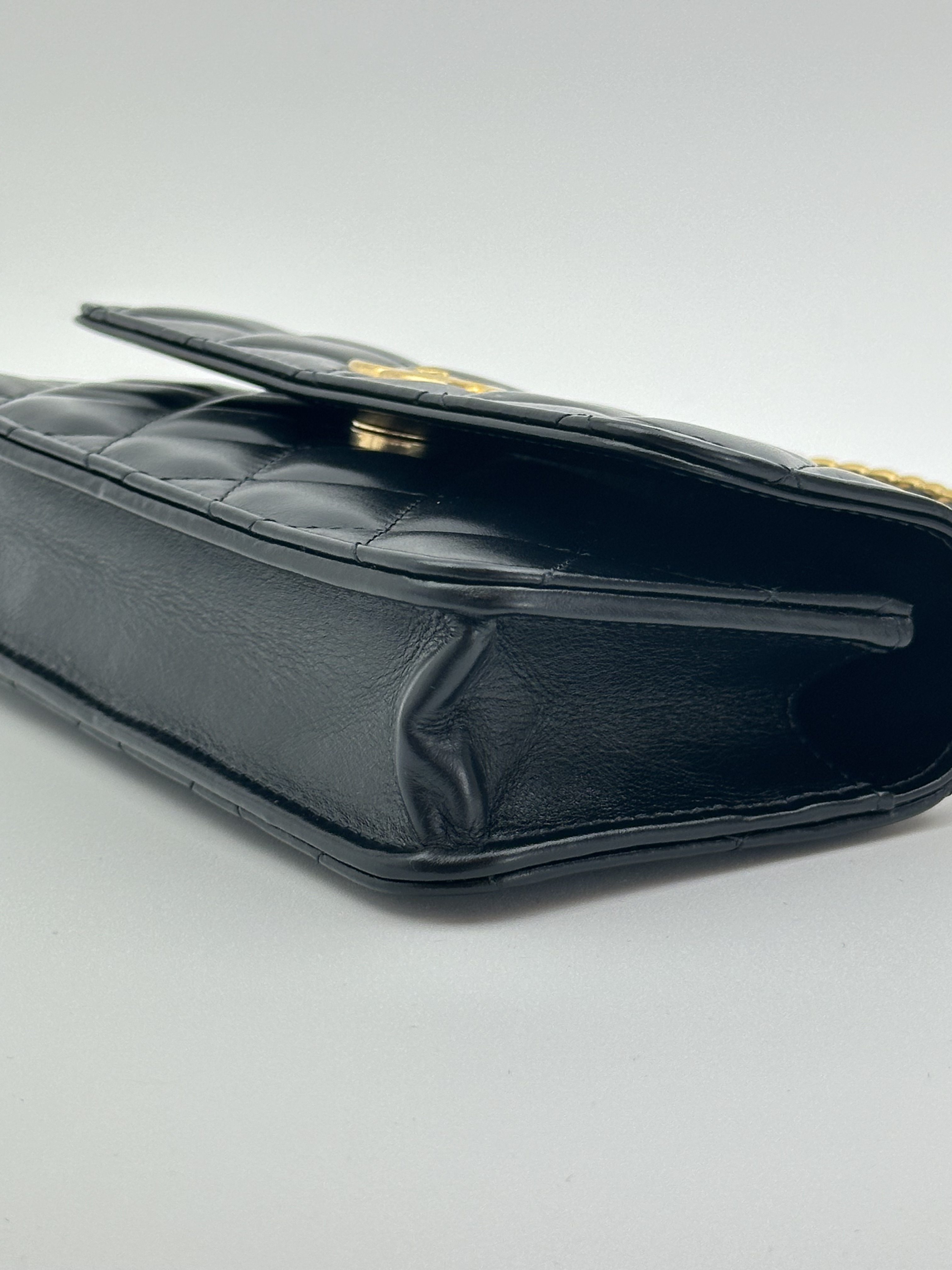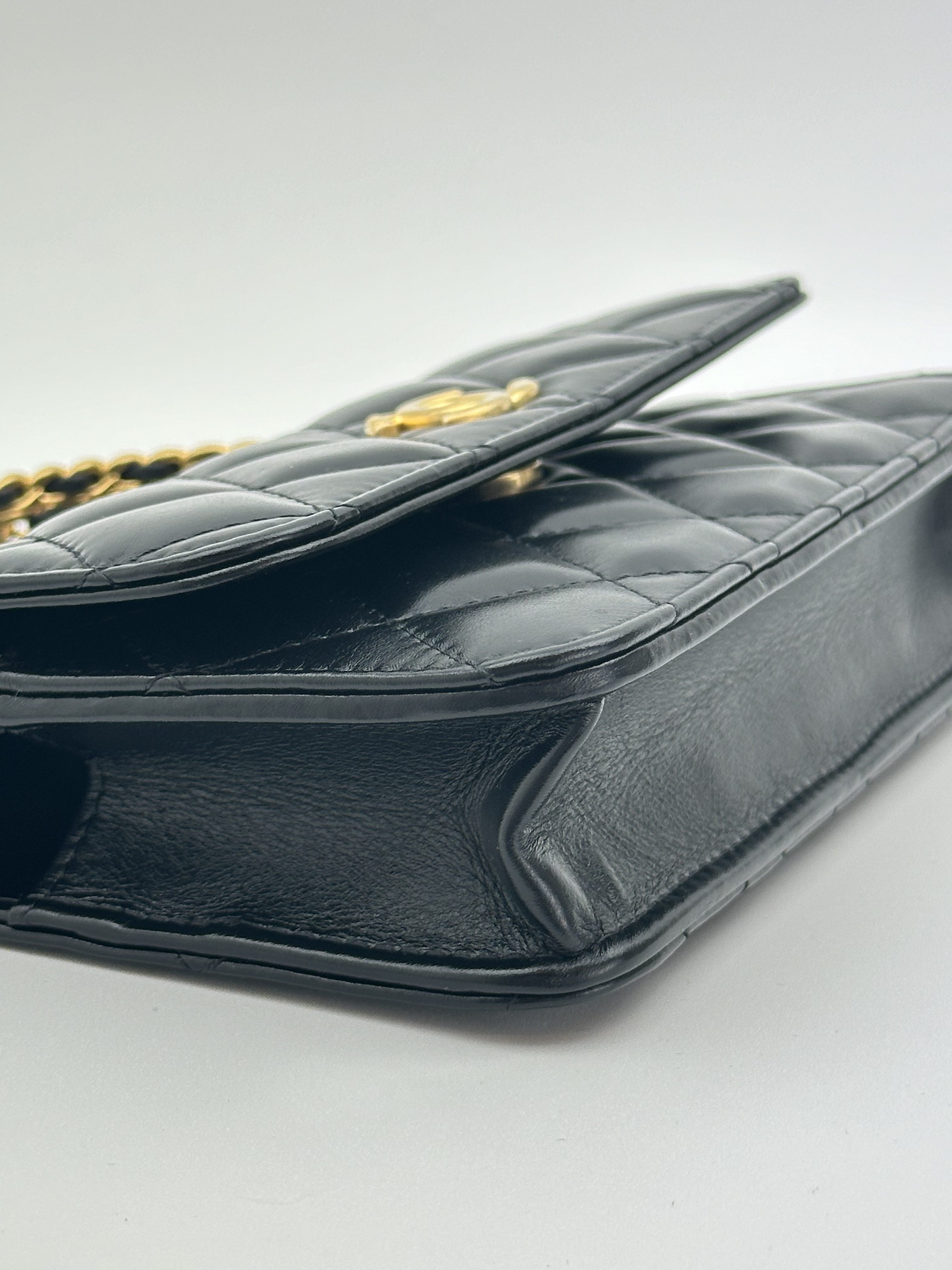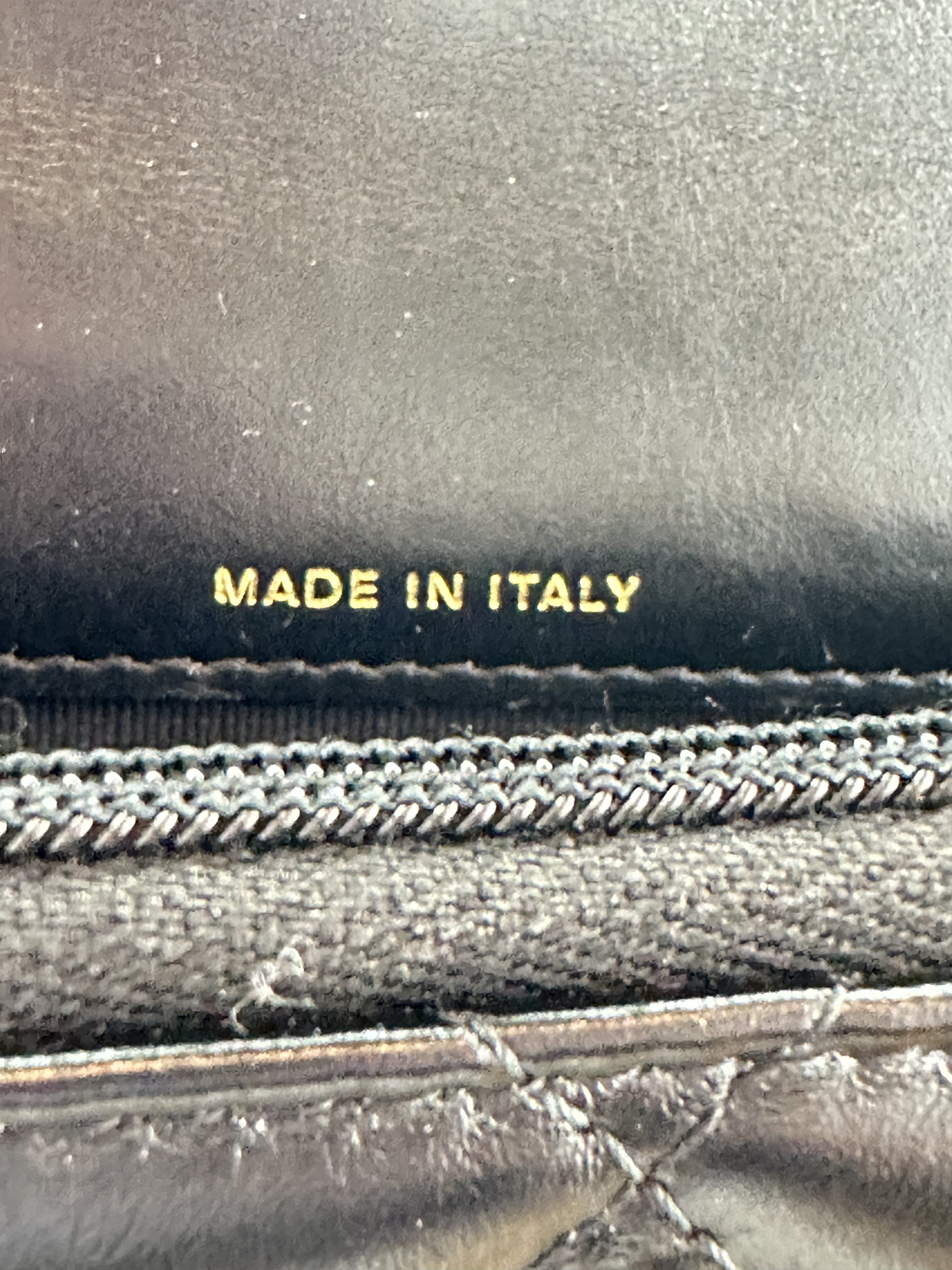 Exterior condition: excellent. Minor discoloration and creases on leather.
