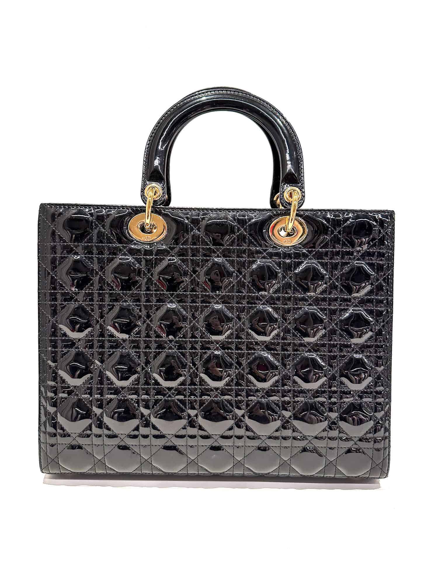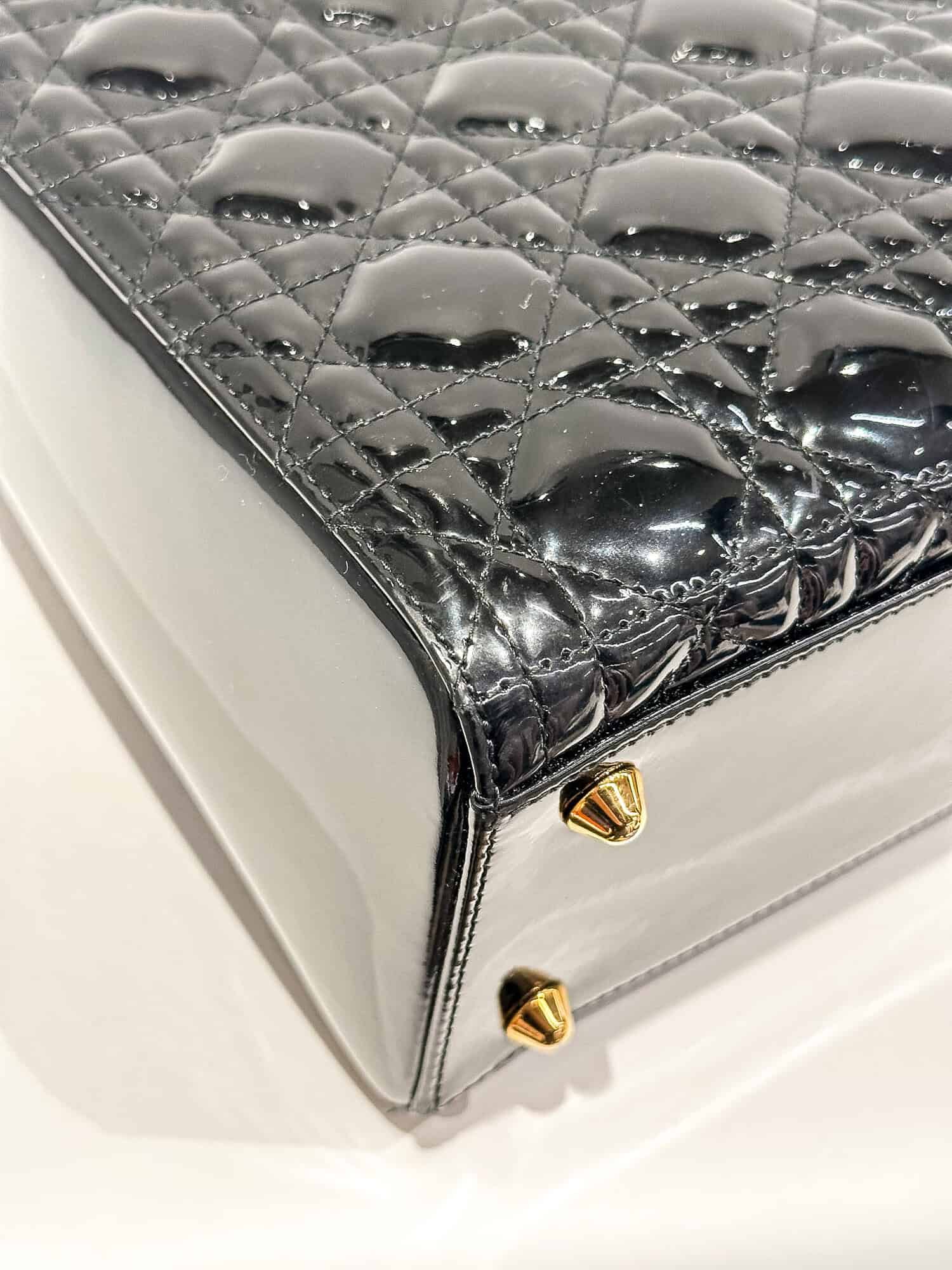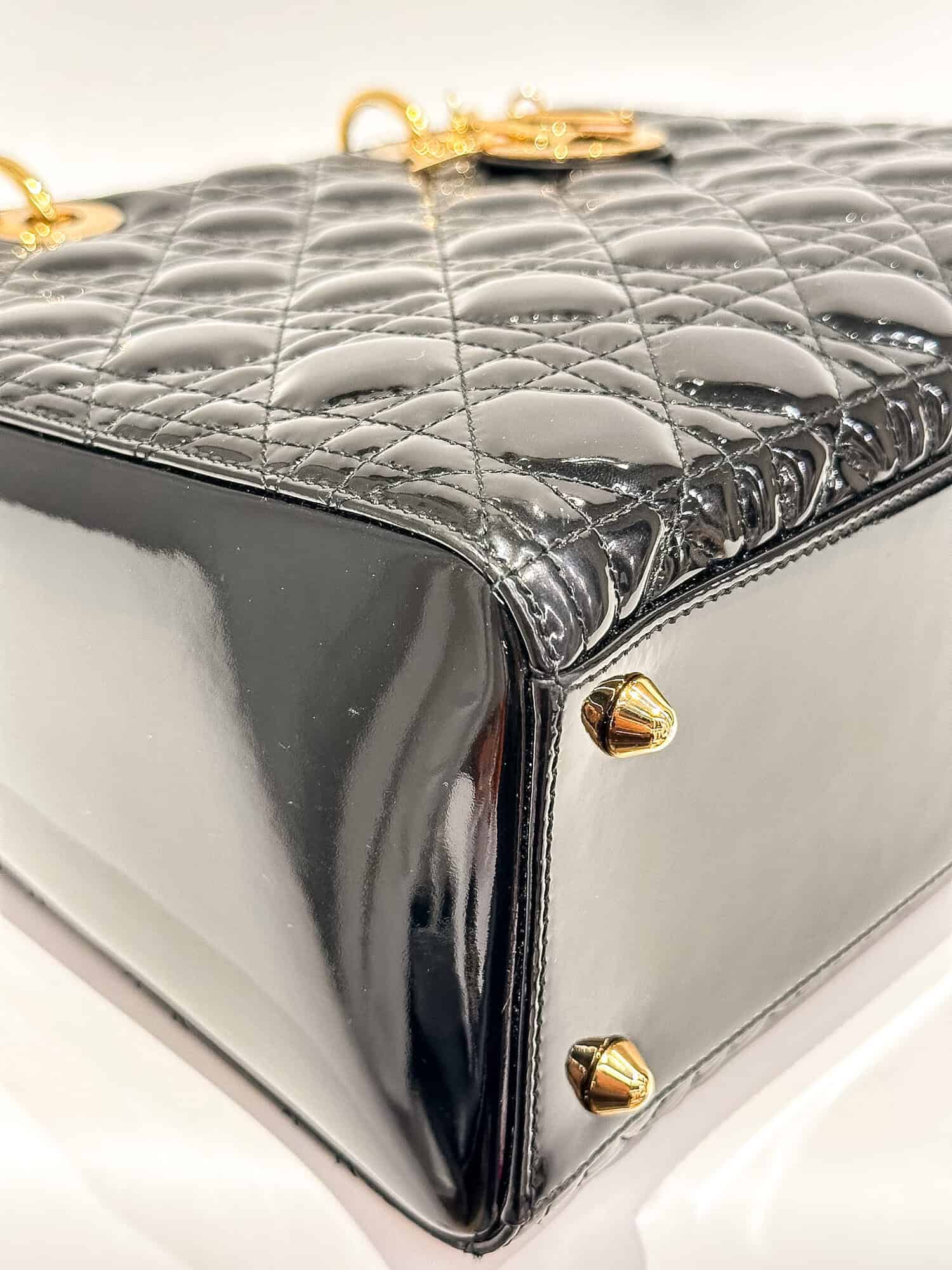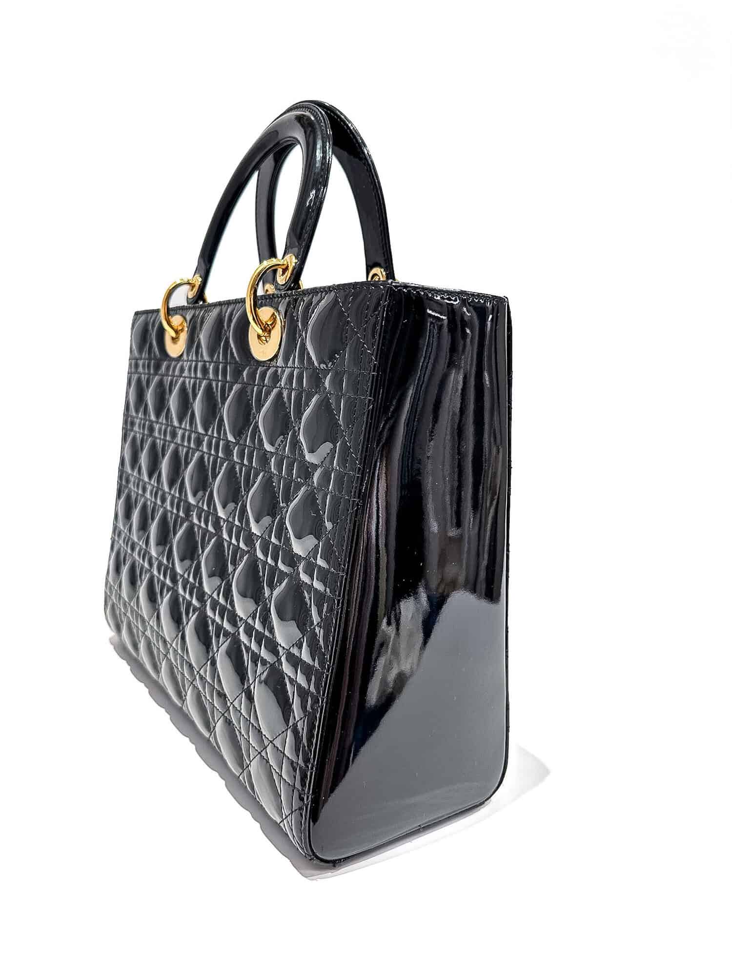Dior Black Lady Dior Patent Leather Large Size