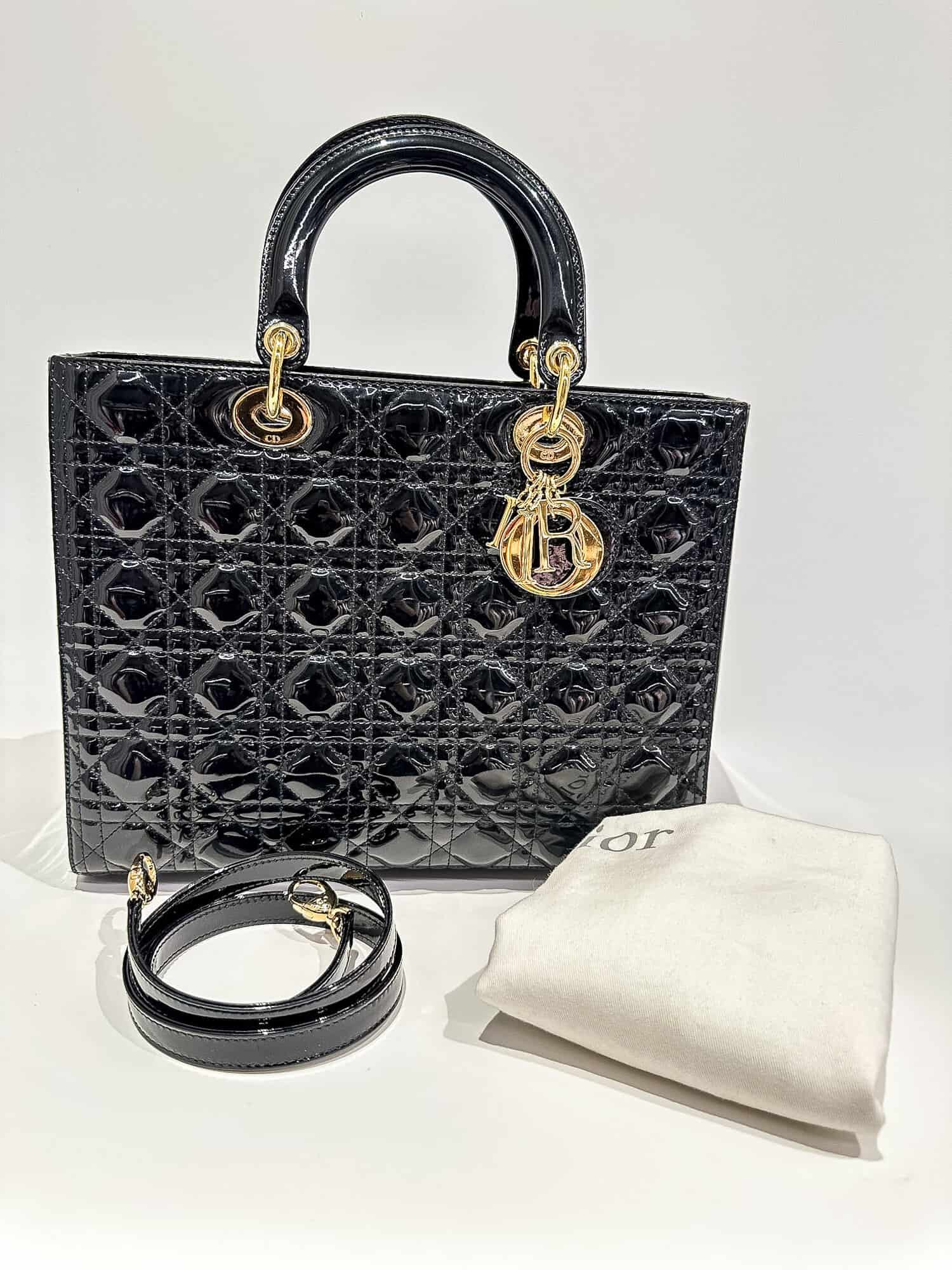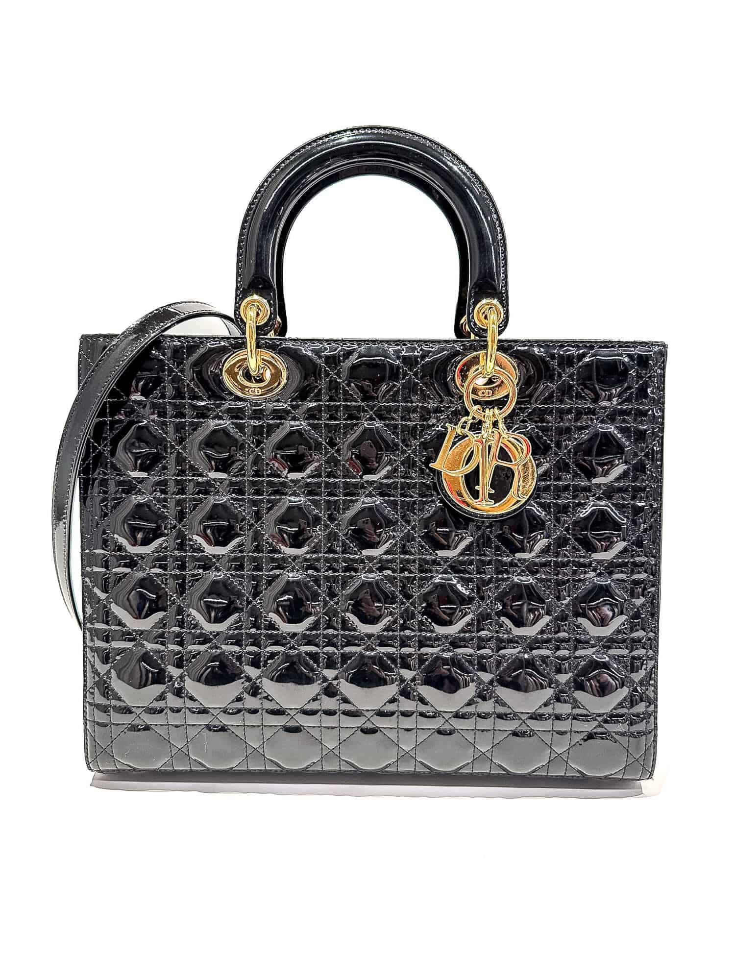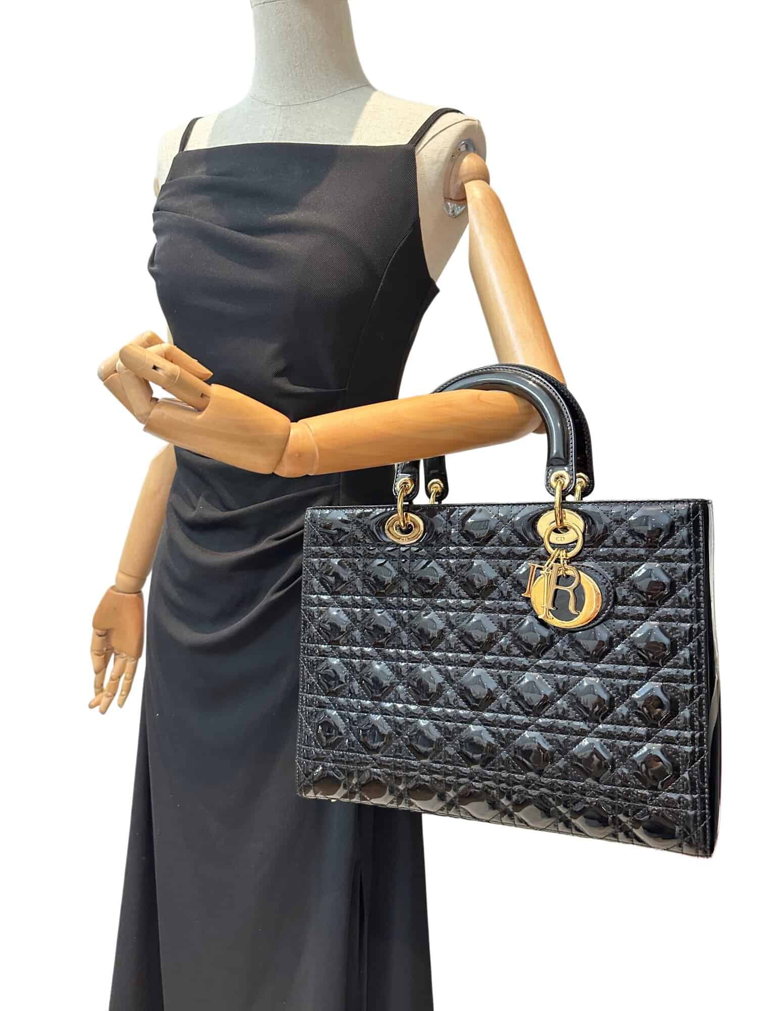 Dior Black Lady Dior Patent Leather Large Size