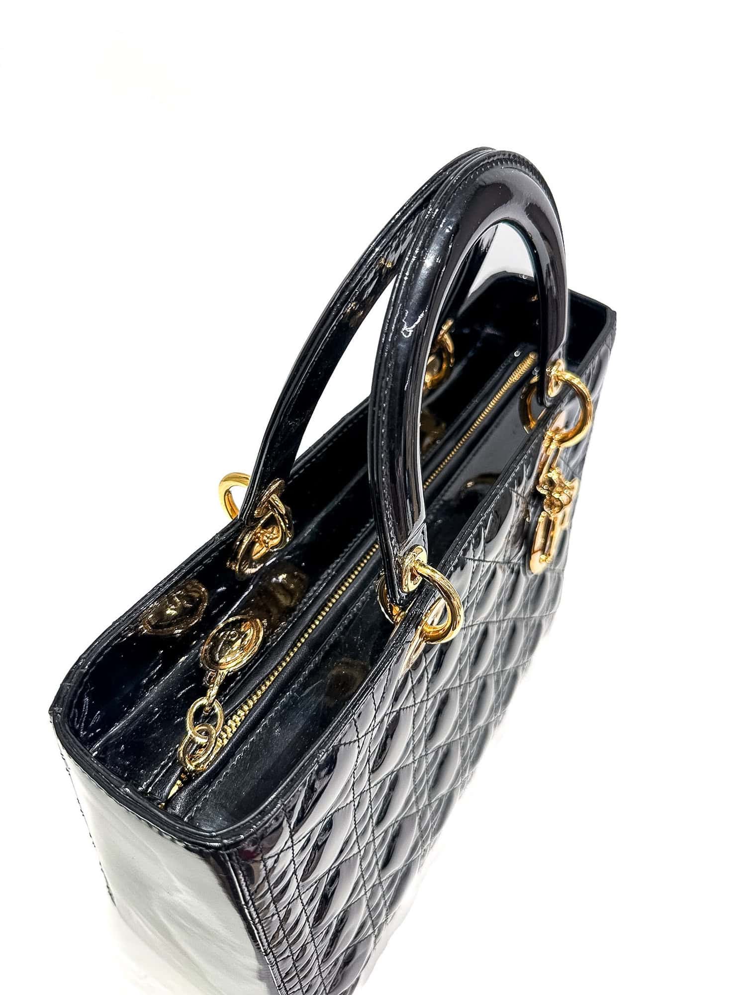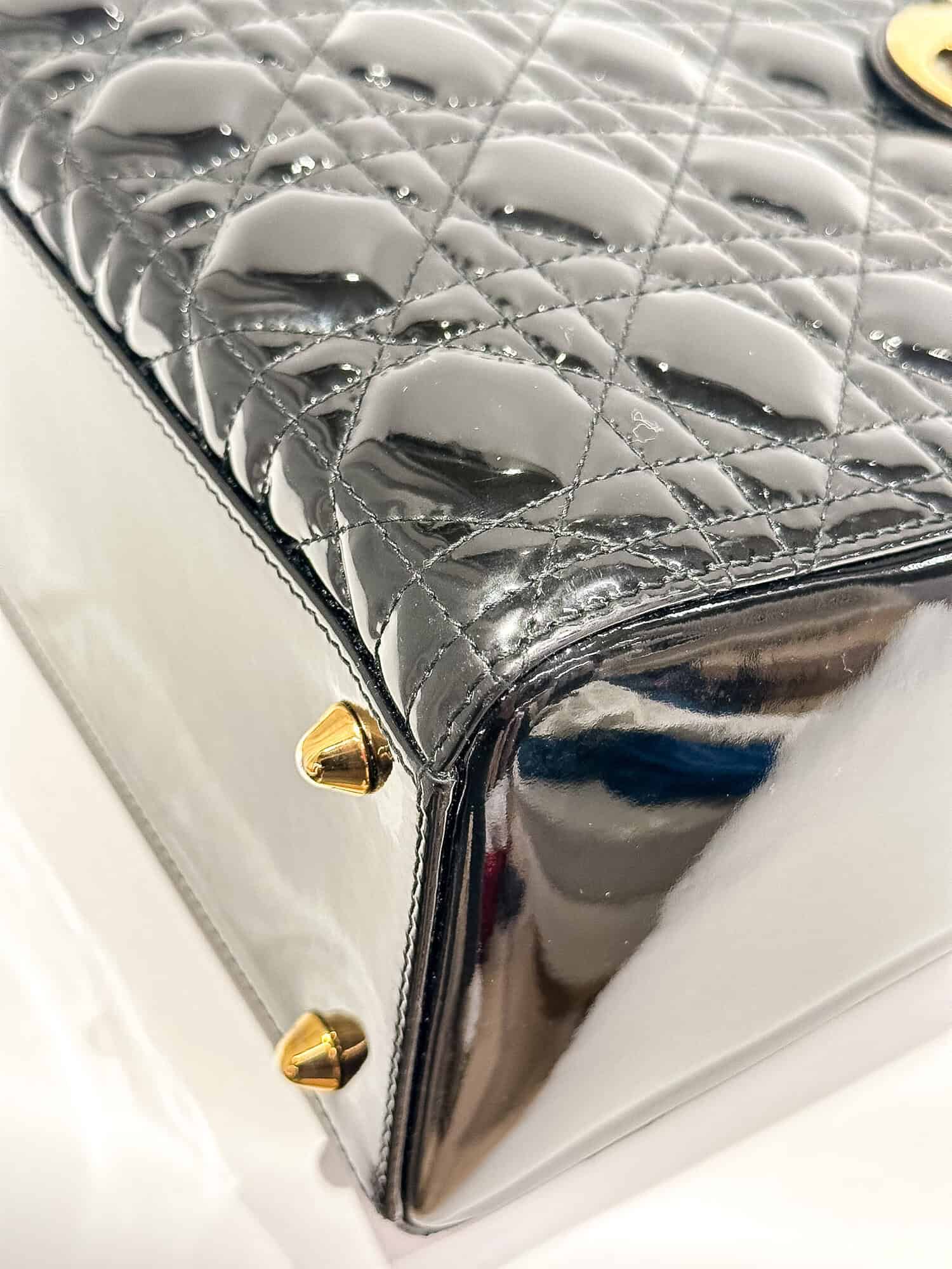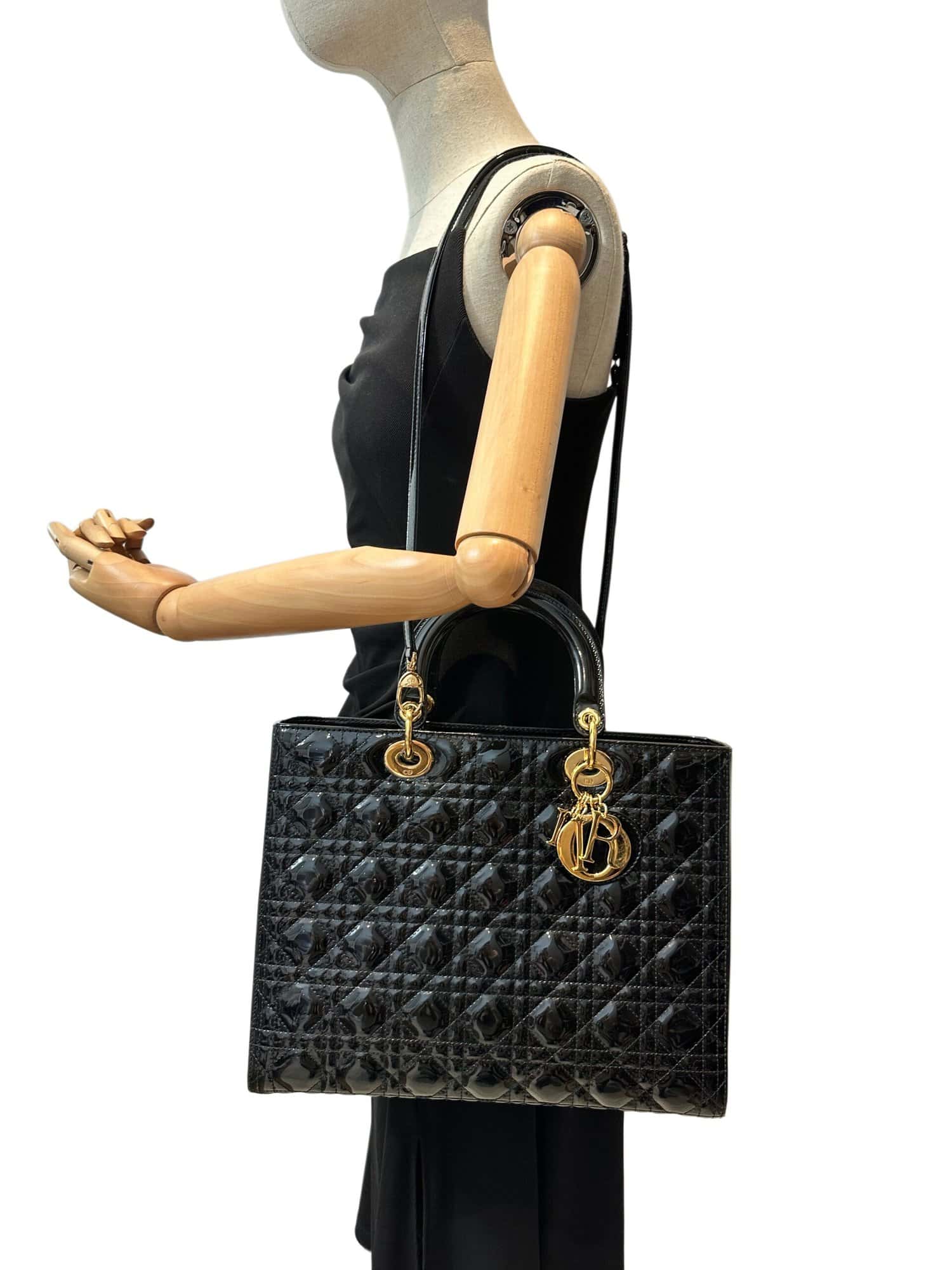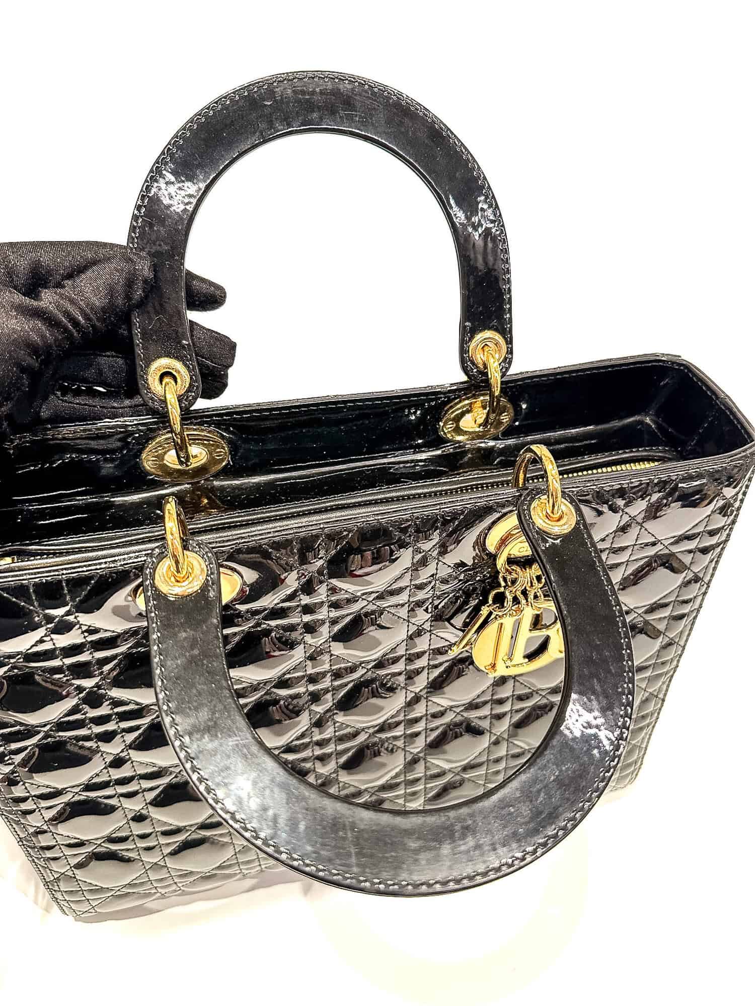 Dior Black Lady Dior Patent Leather Large Size