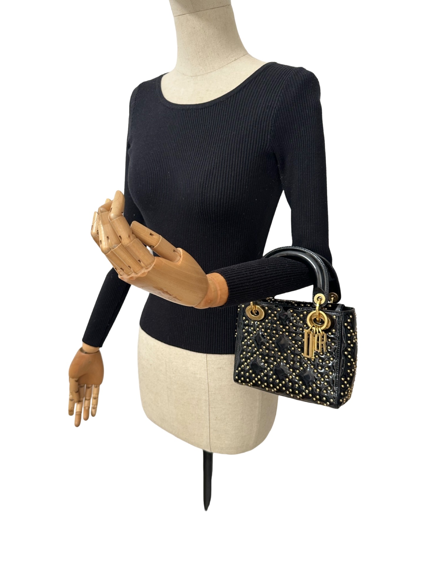 Dior black Mini Lady Dior crossbody leather bag