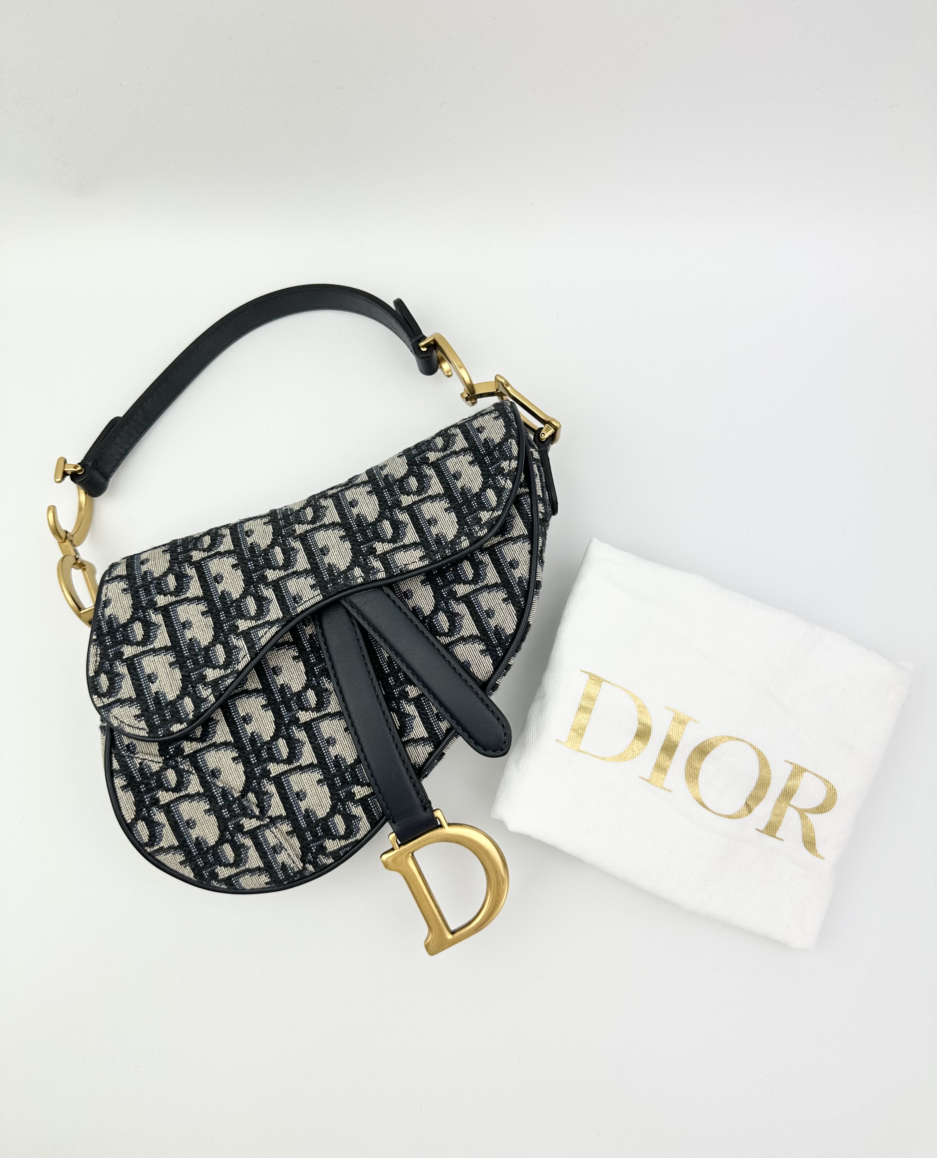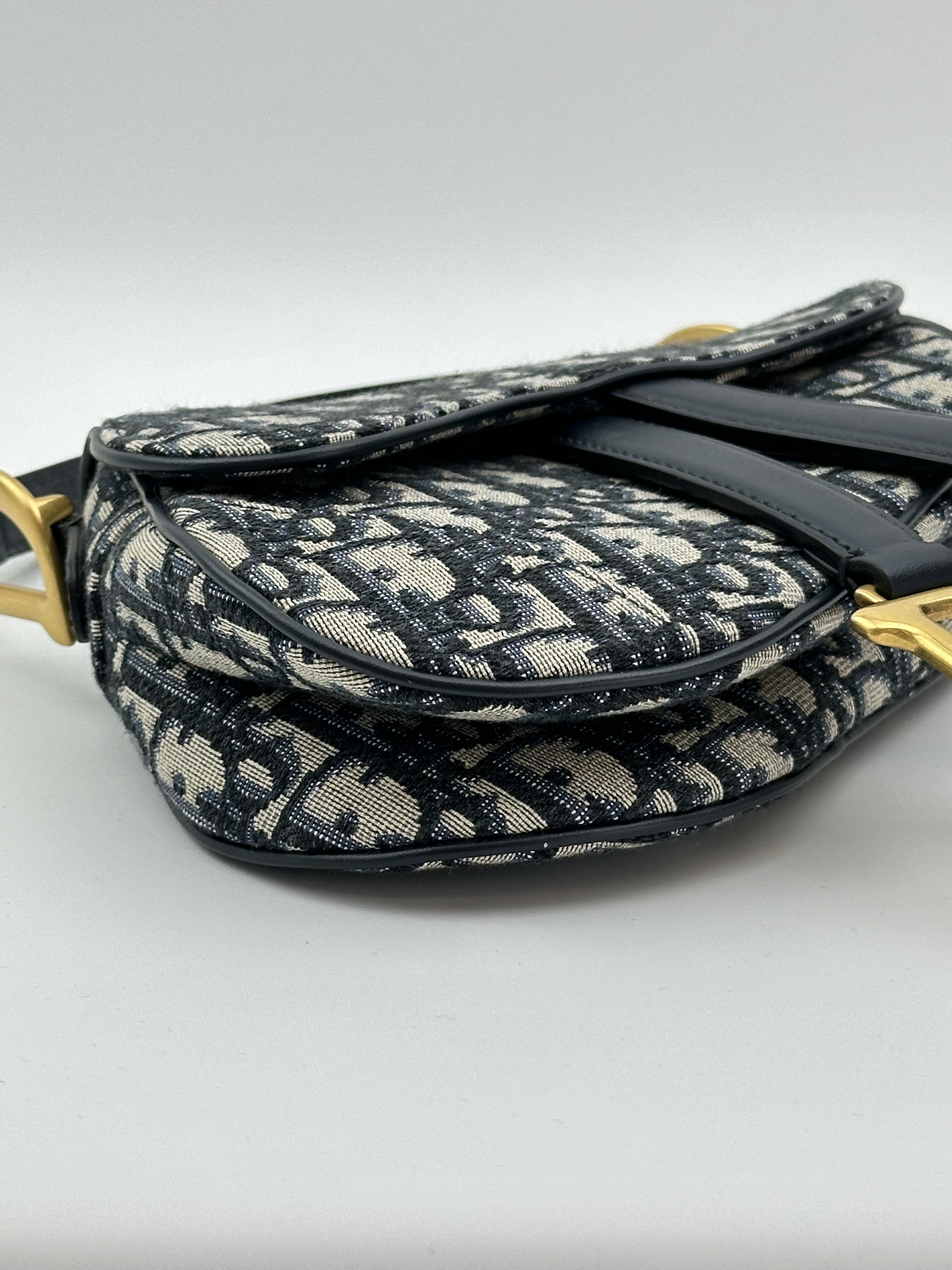 Dior blue cloth saddle bag small size