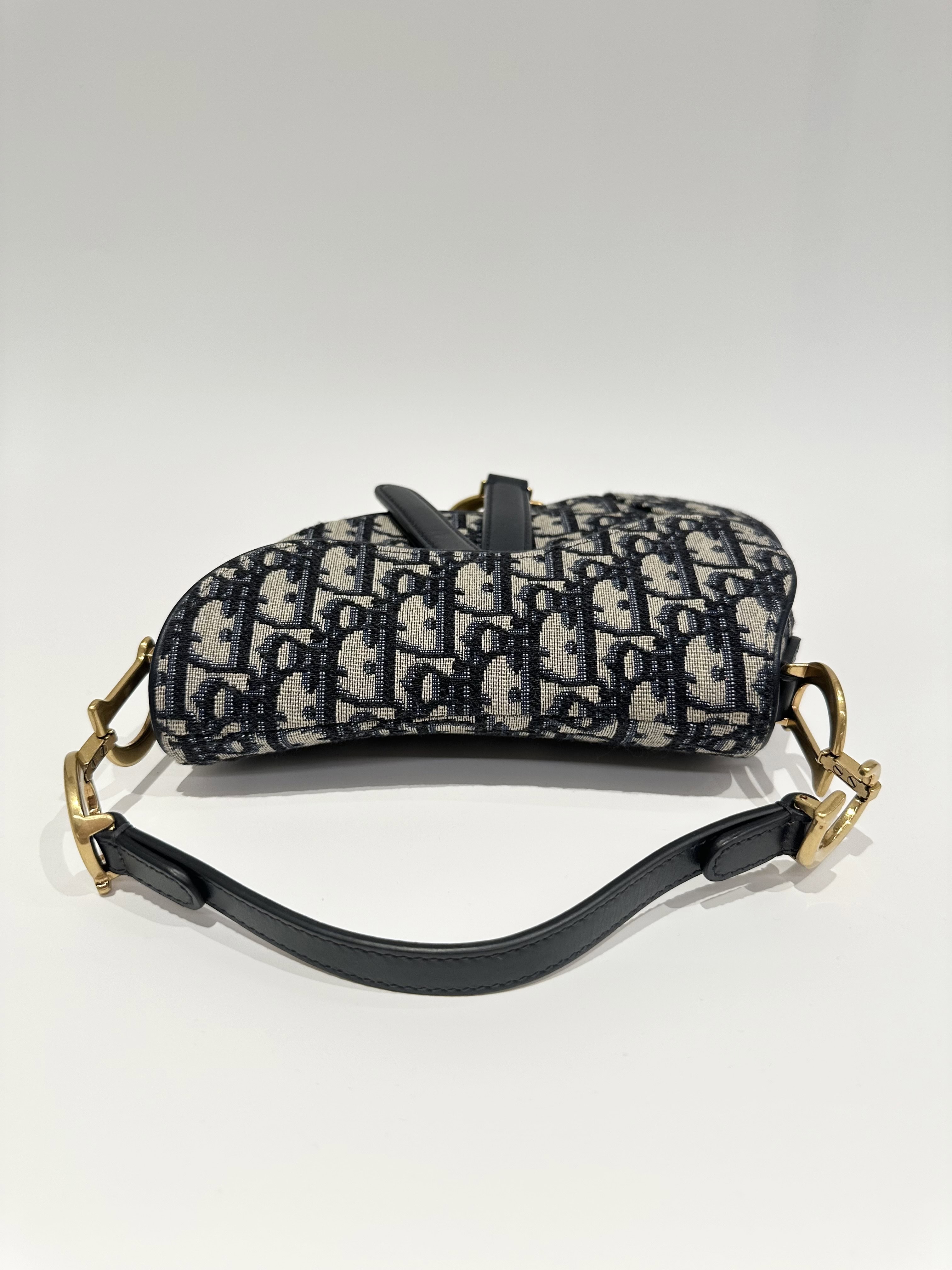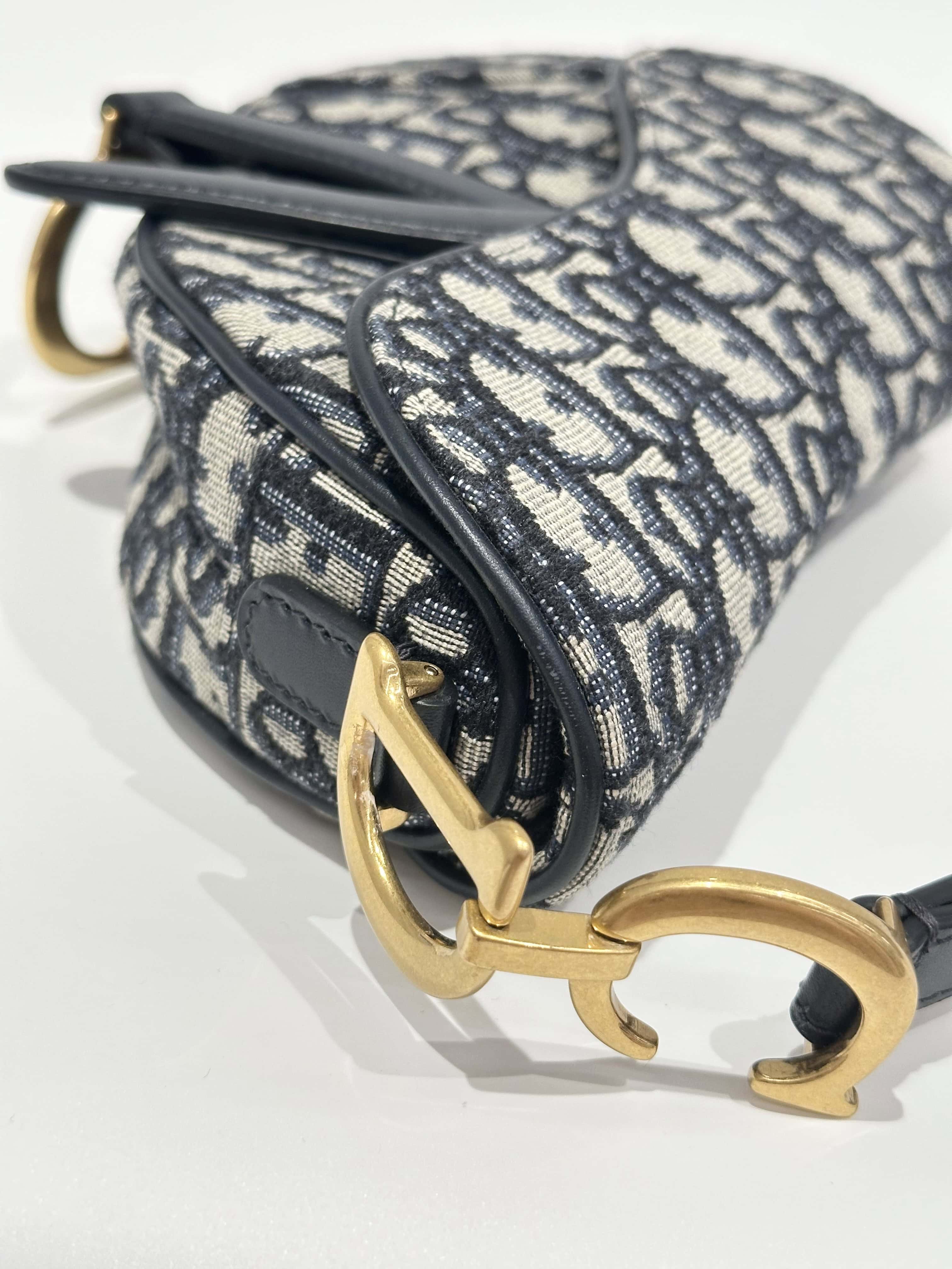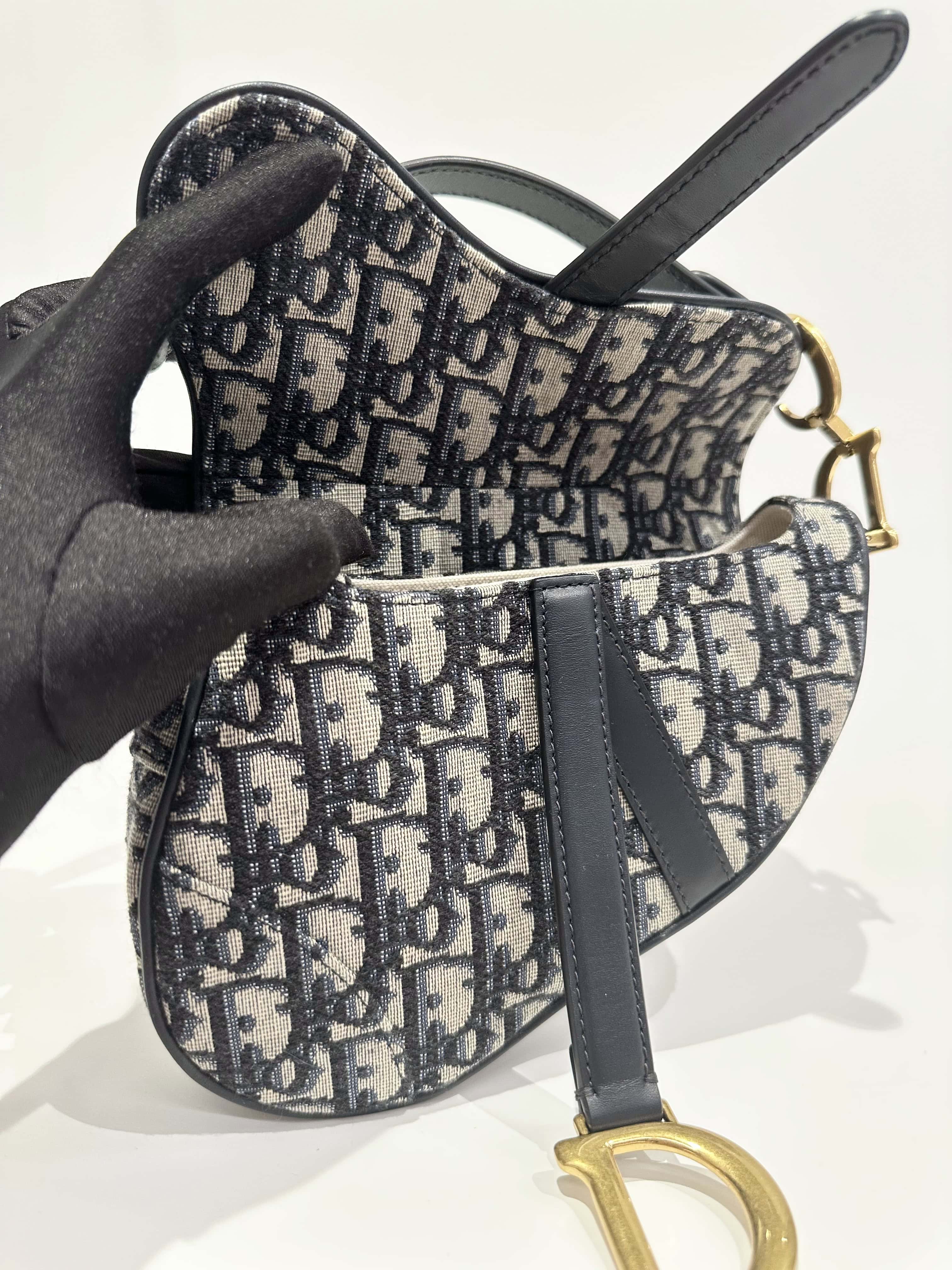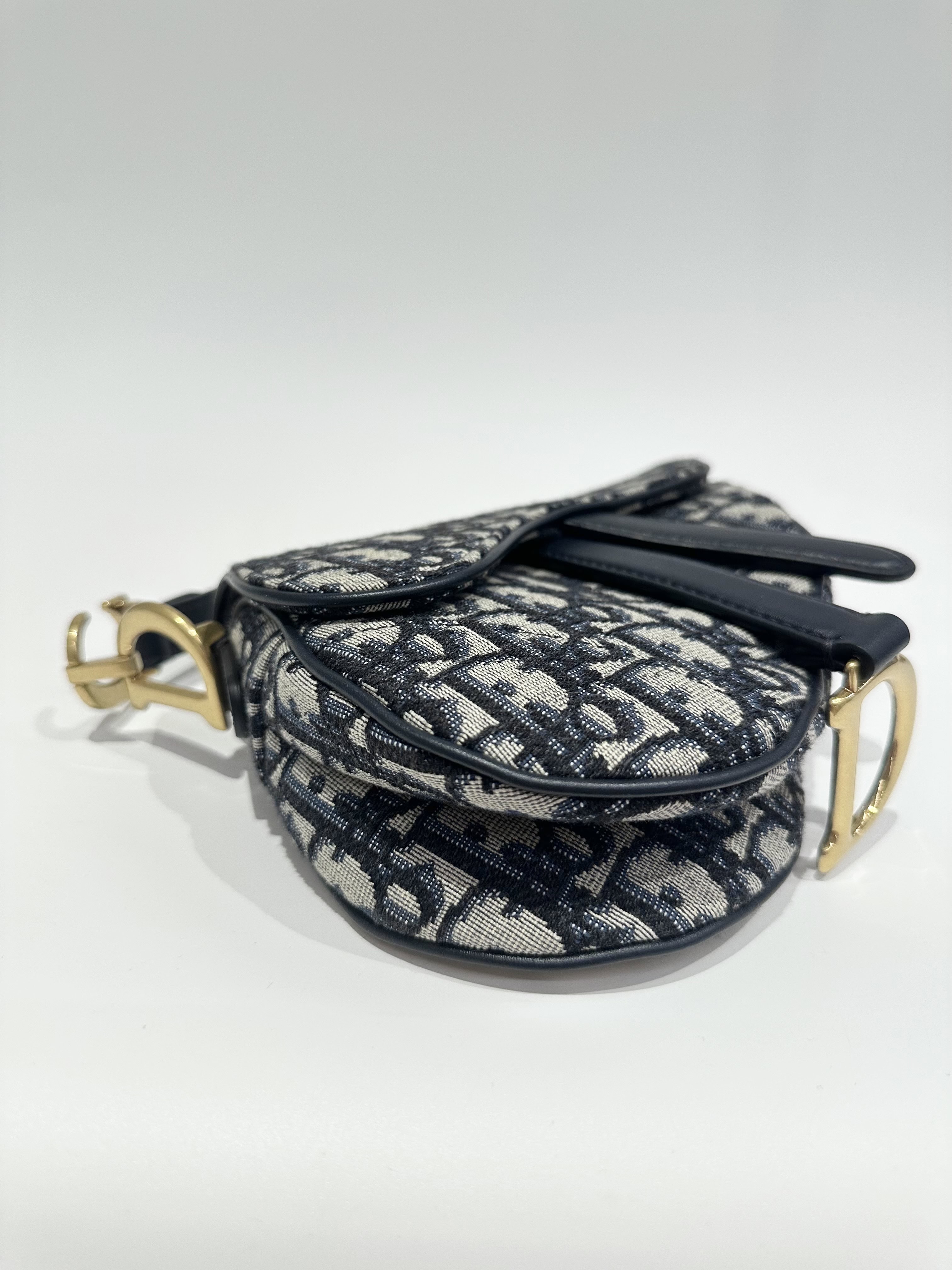 Dior Blue Saddle Cloth Handbag Small Size