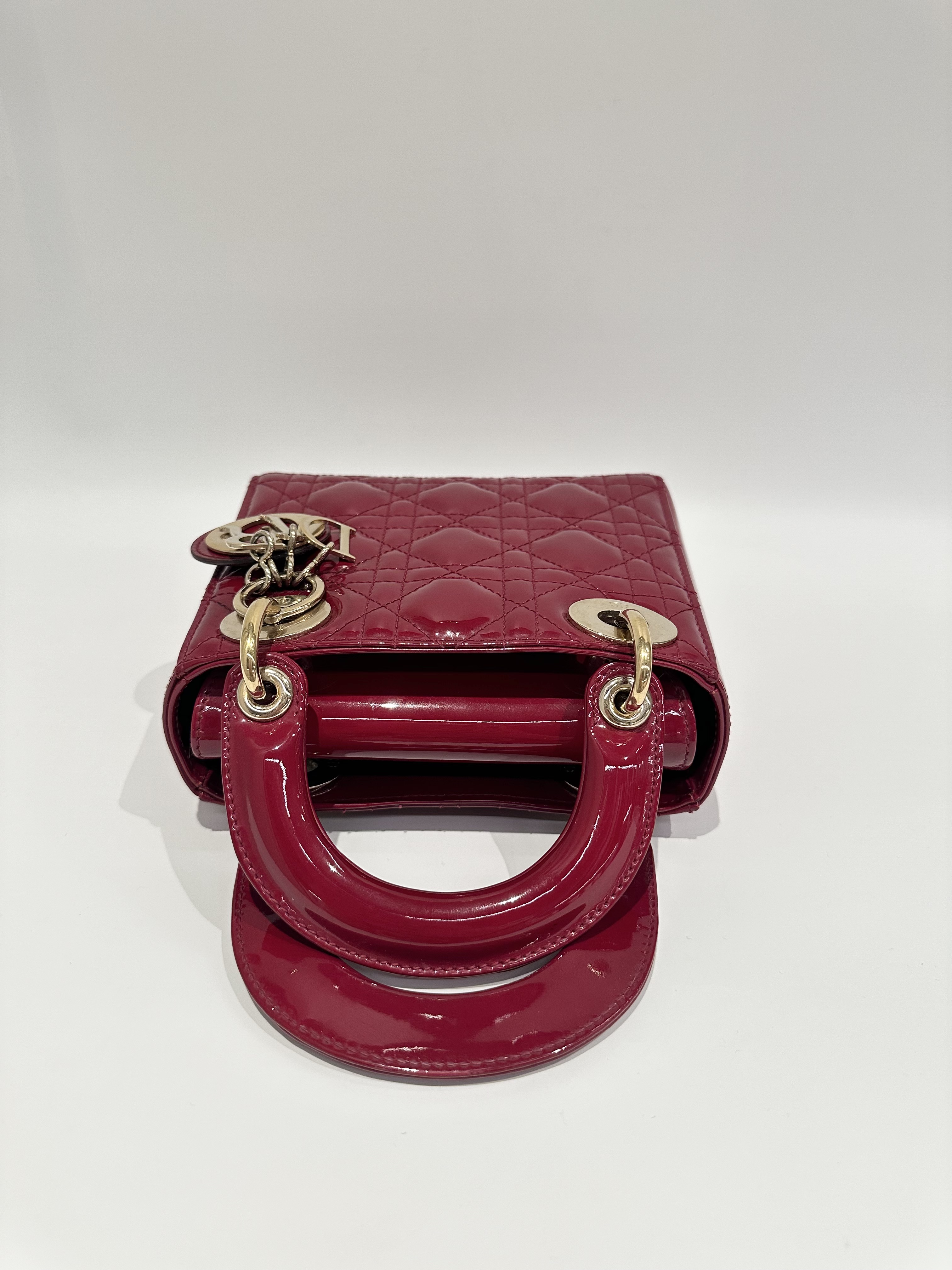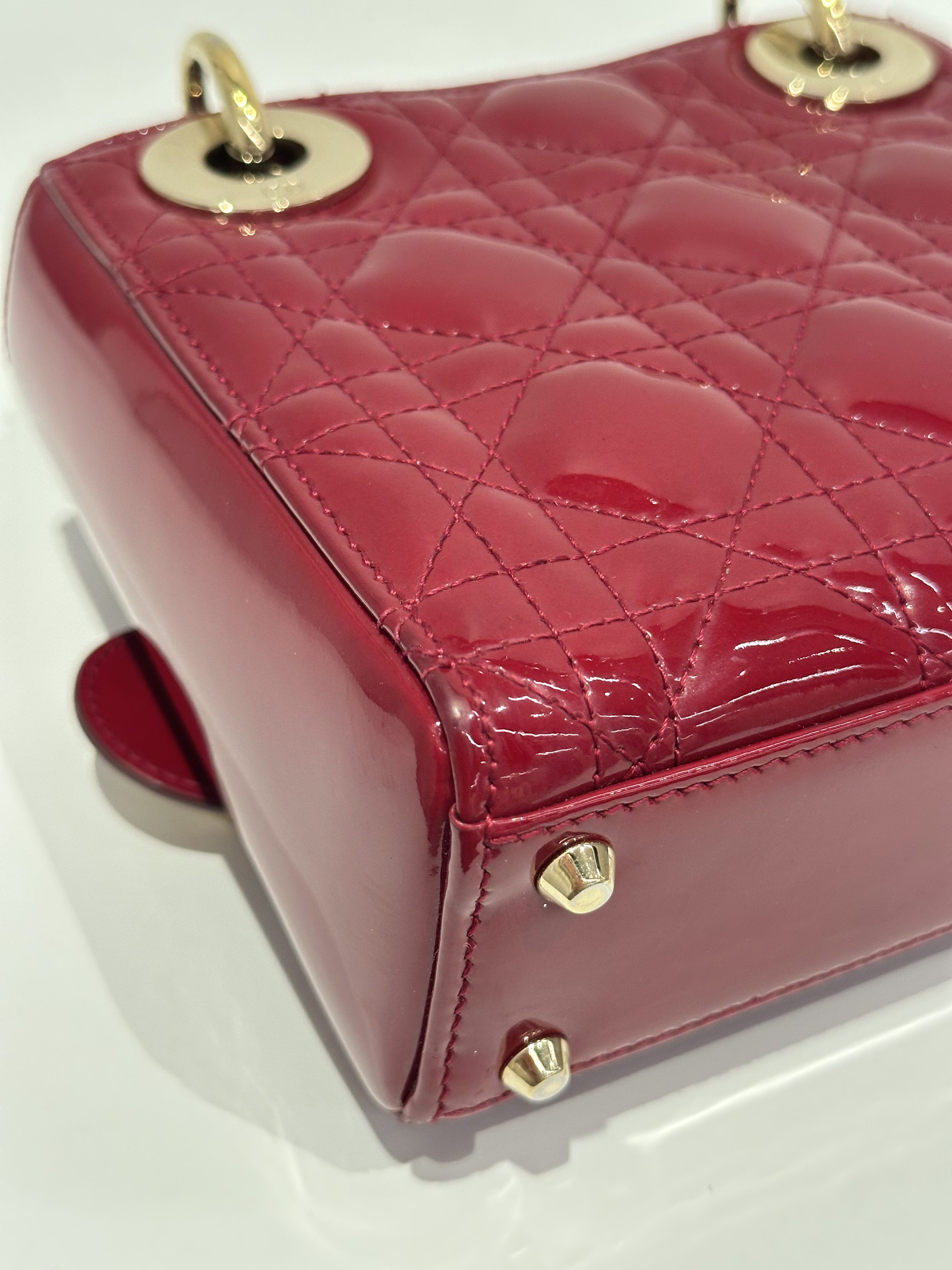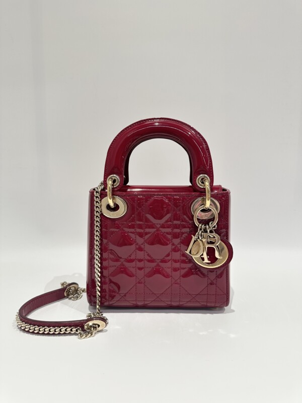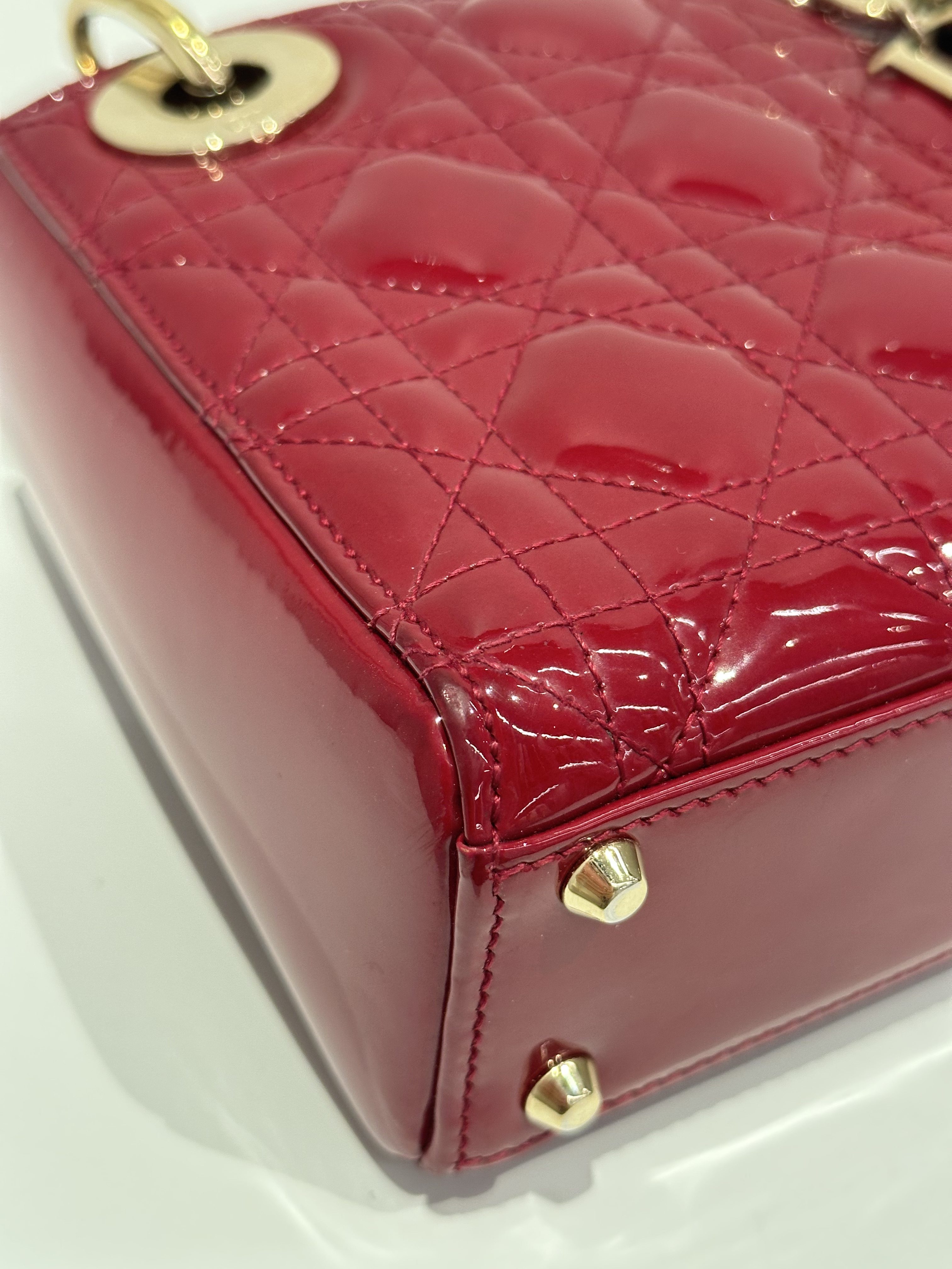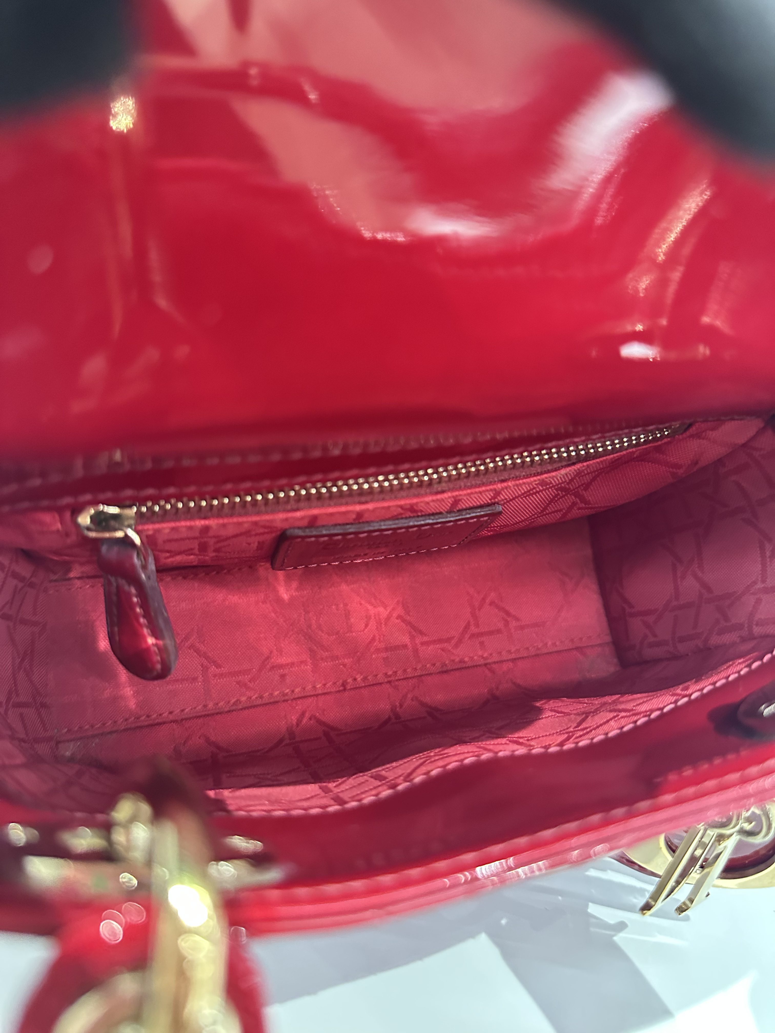 Dior Cherry Red Lady Dior Mini Patent Leather Crossbody Bag