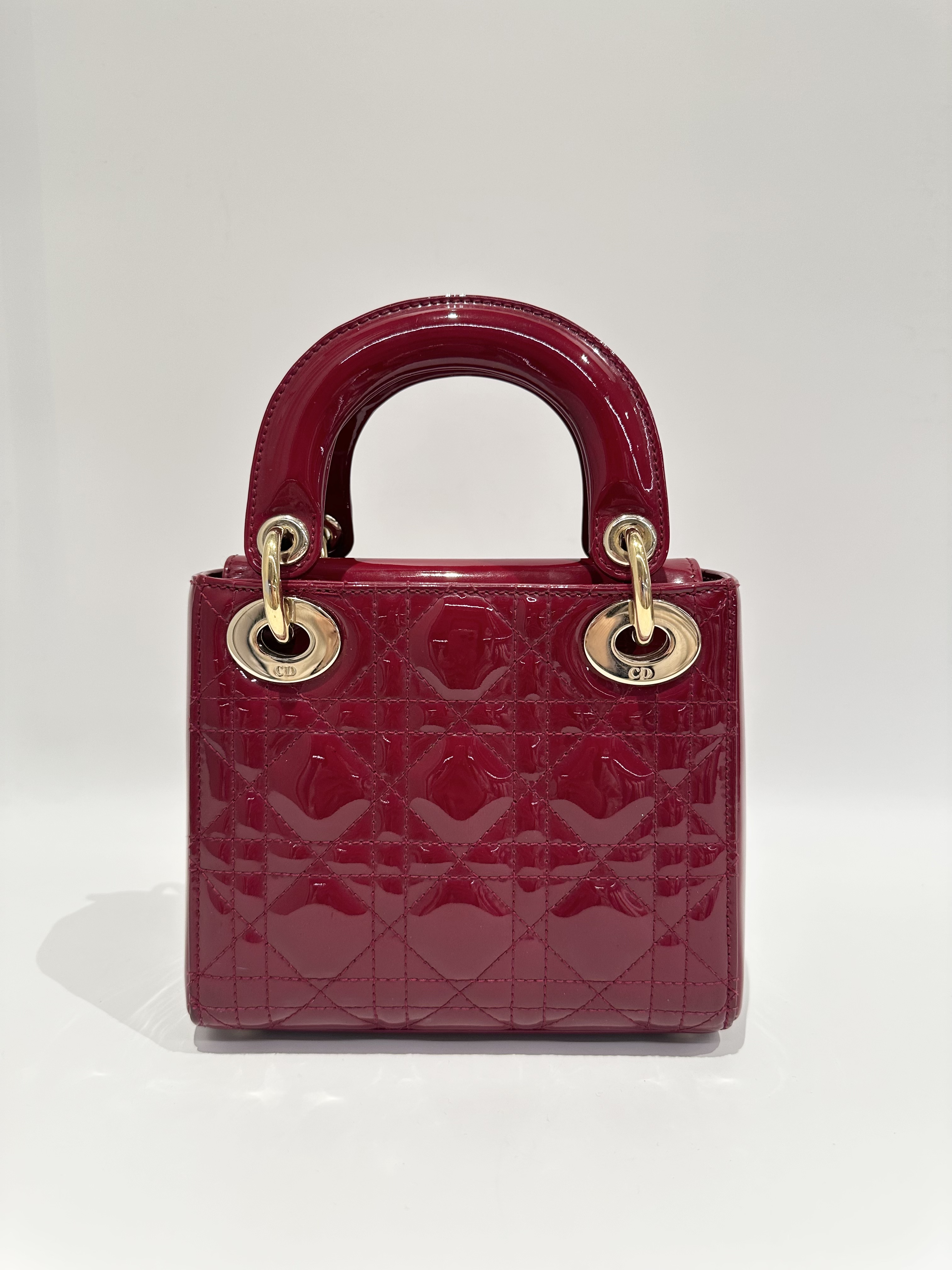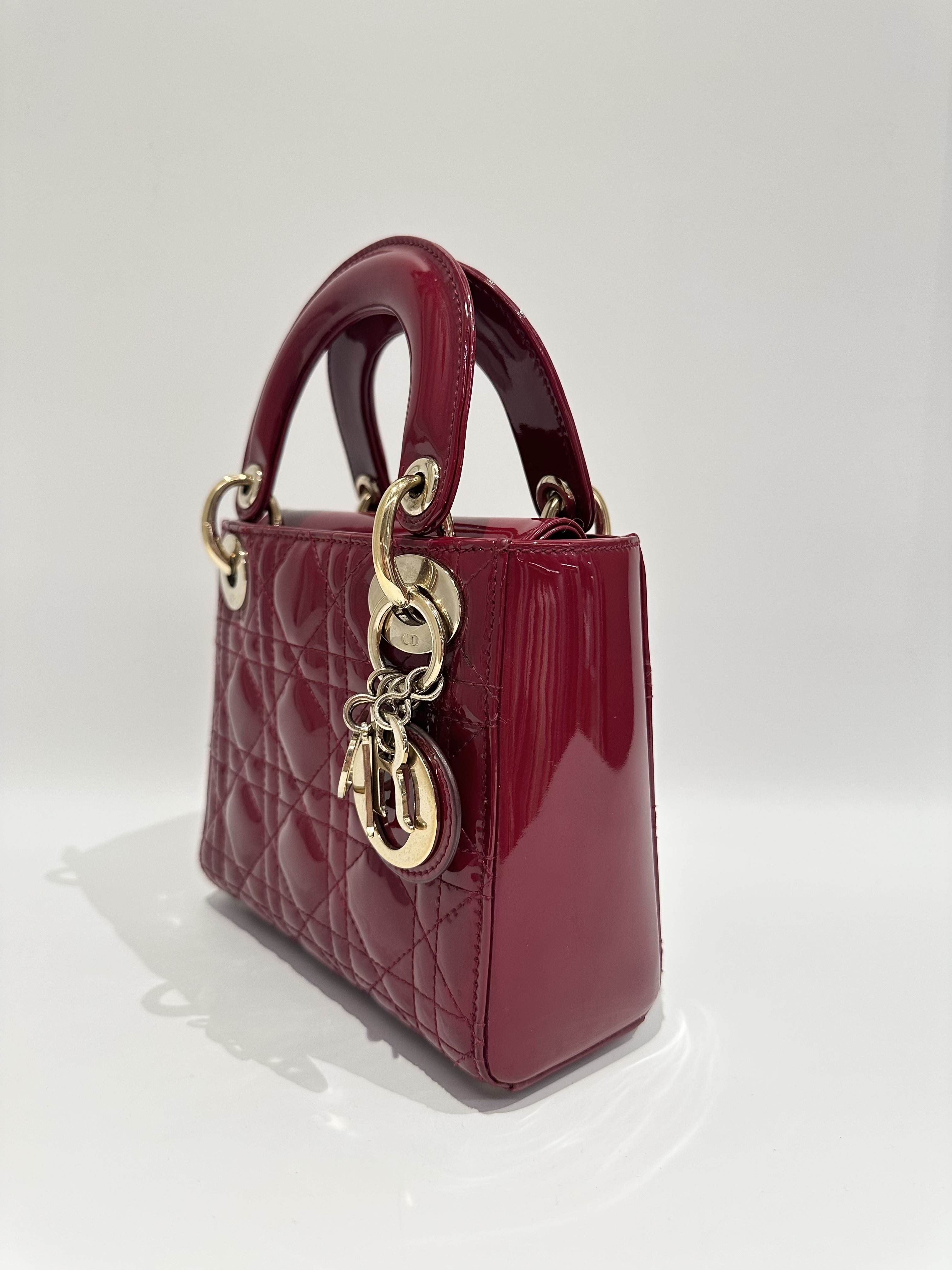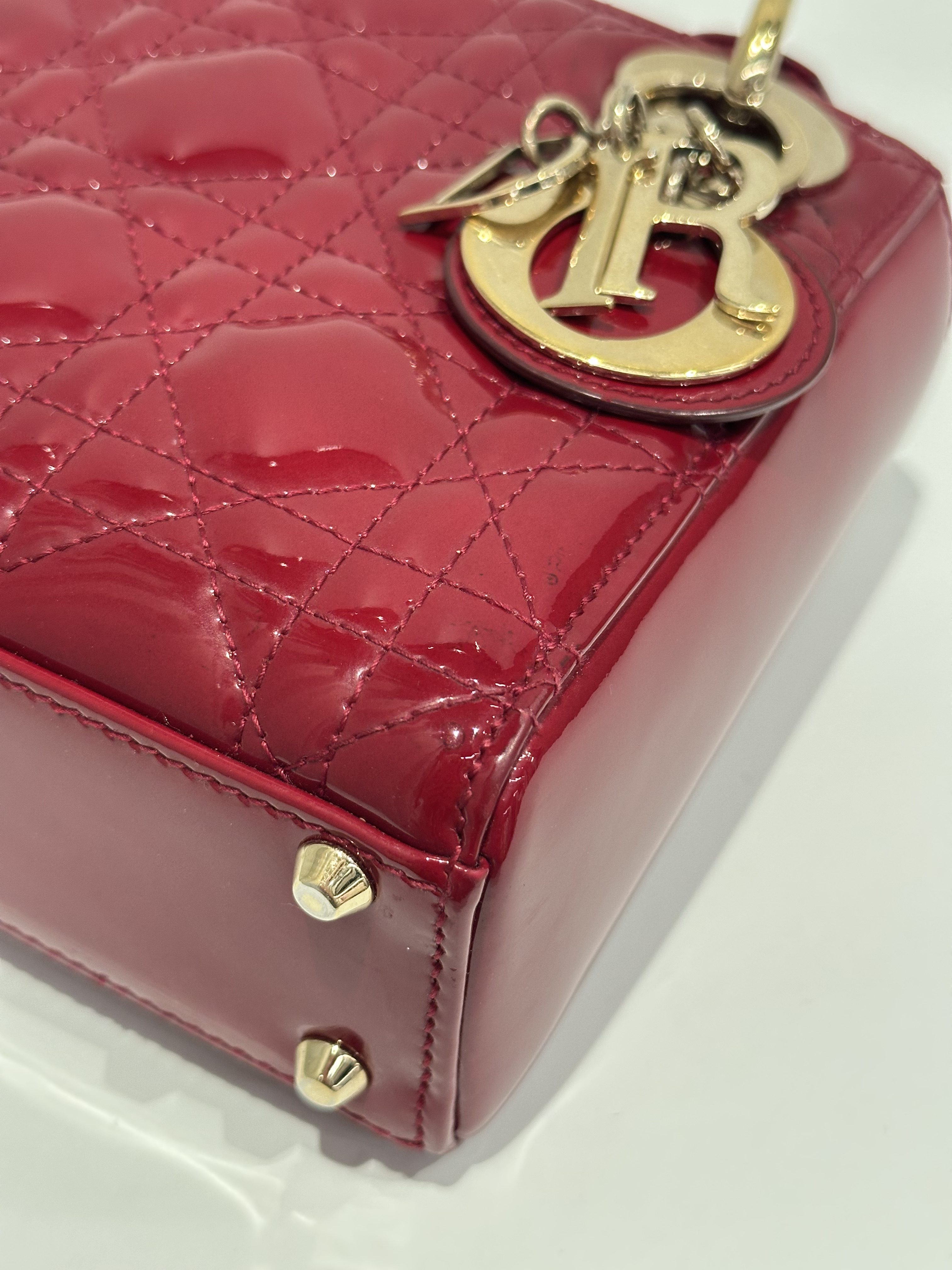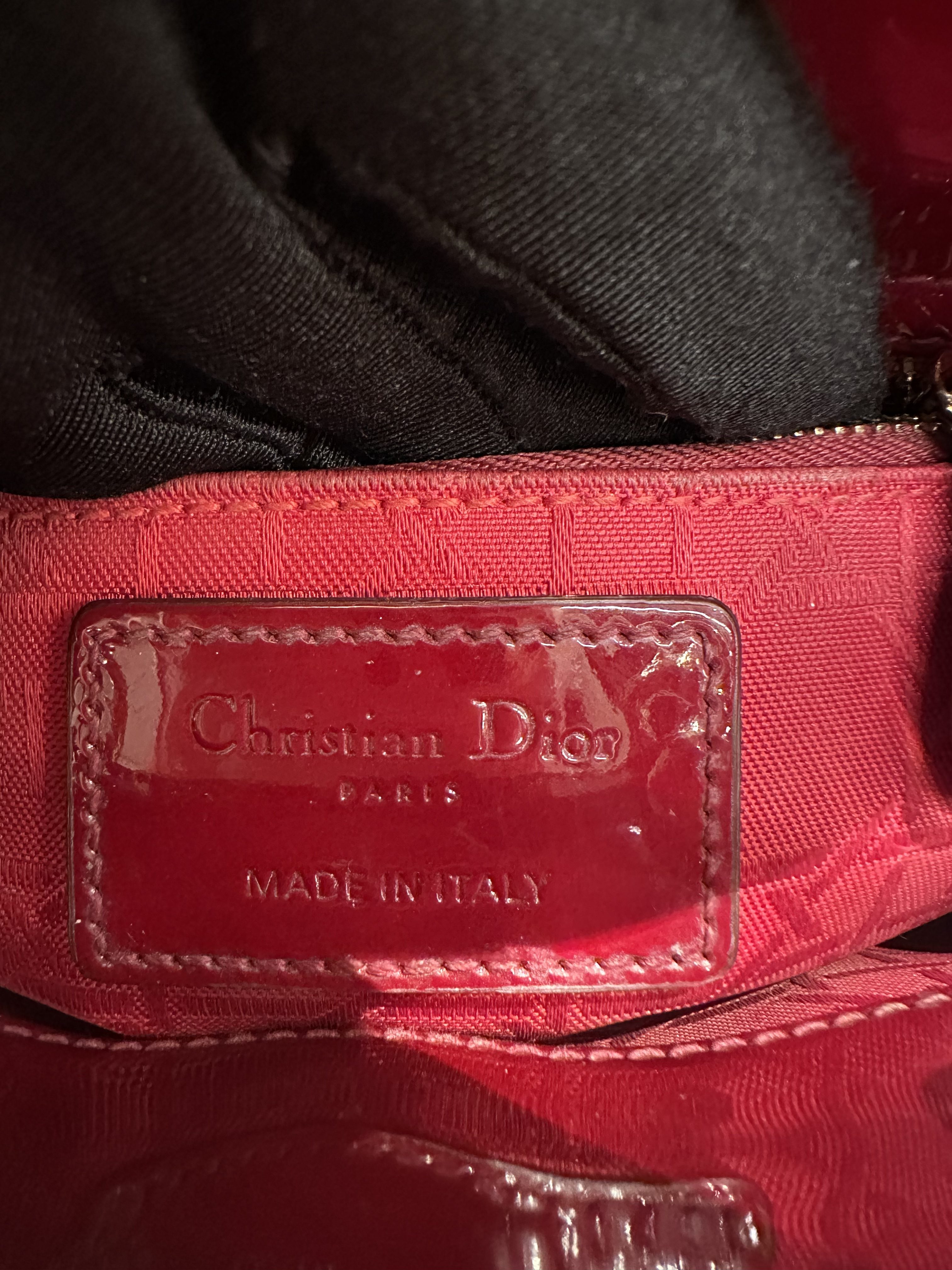 Dior Cherry Red Lady Dior Mini Patent Leather Crossbody Bag