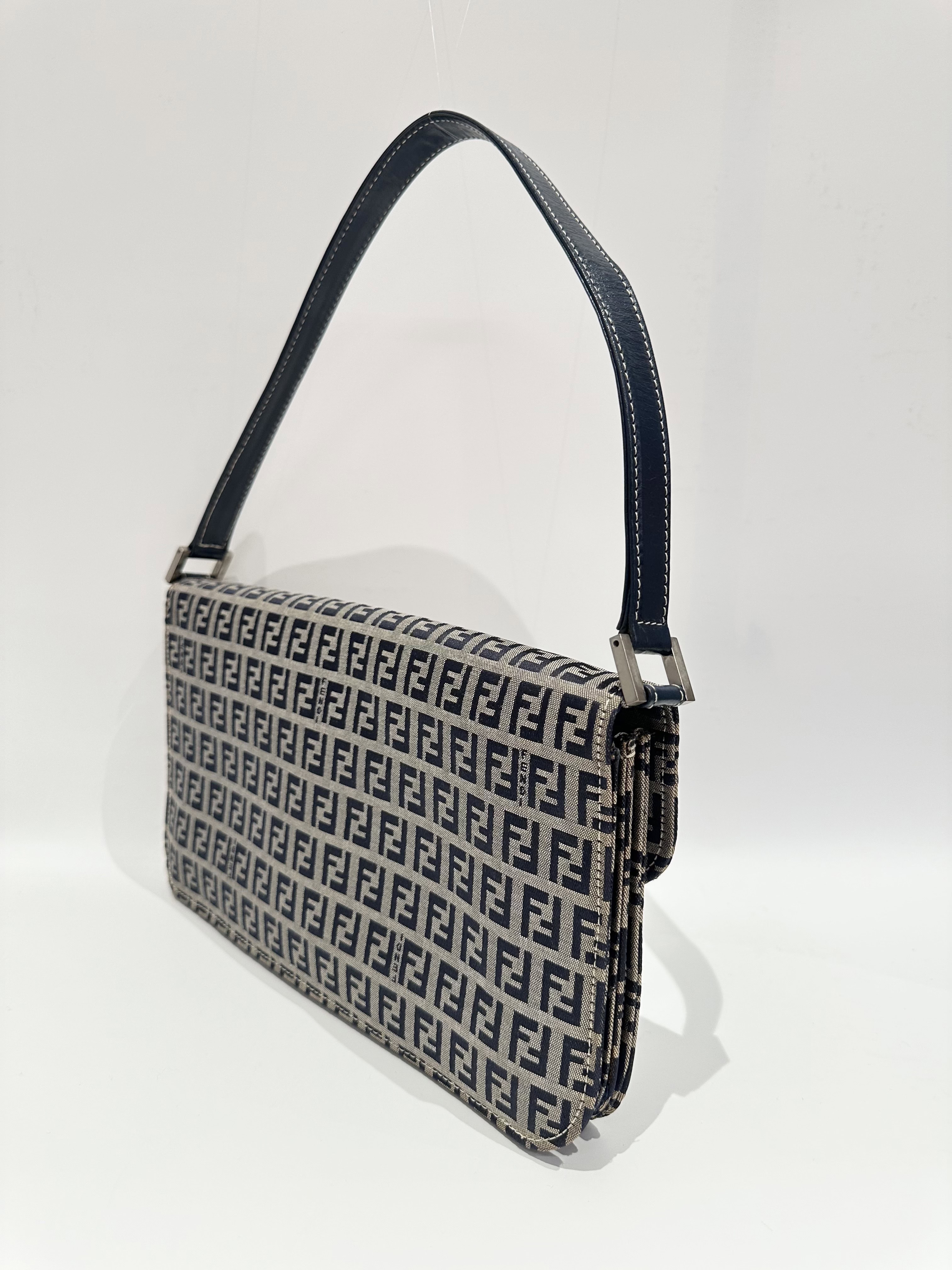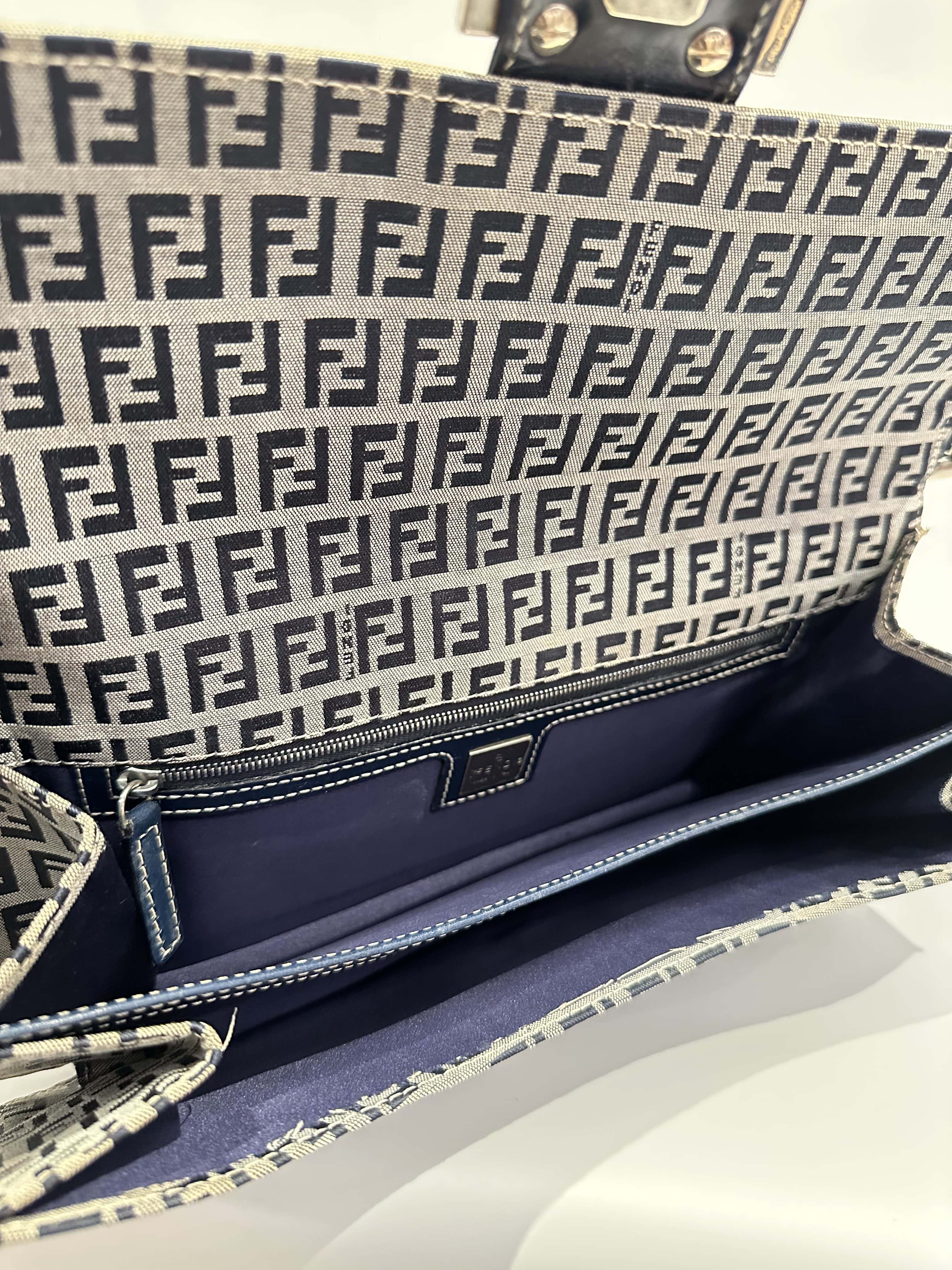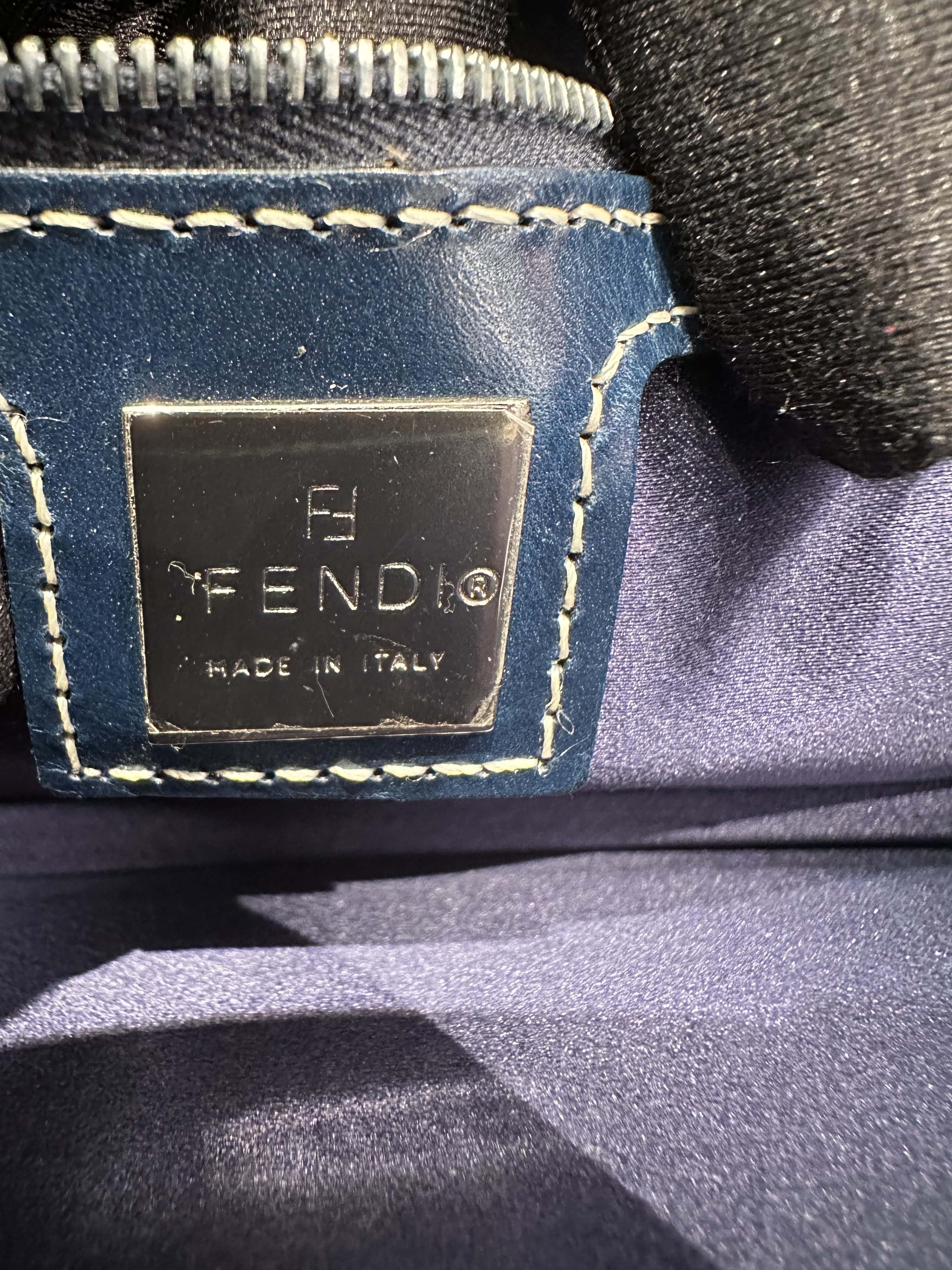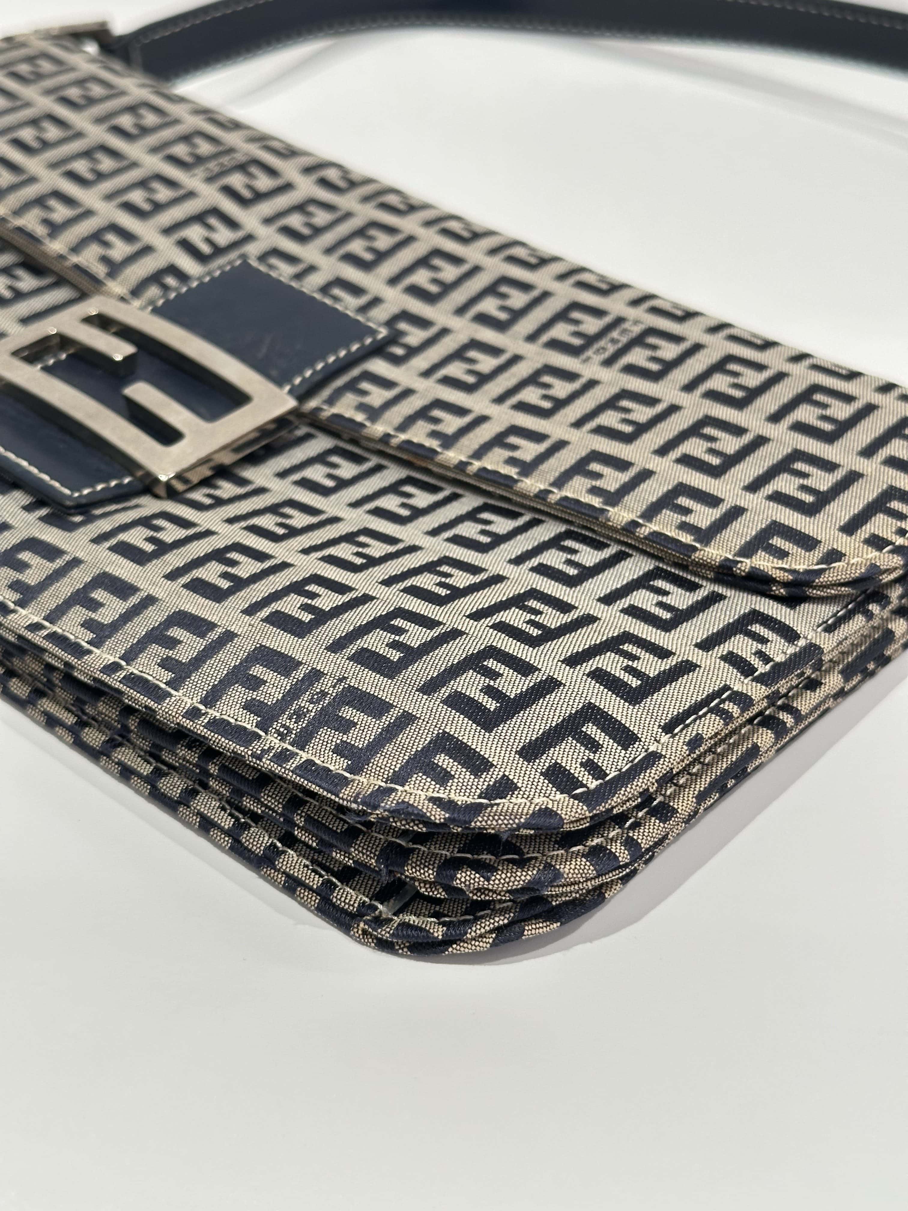 Fendi Blue Baguette FF Canvas Shoulder Bag
