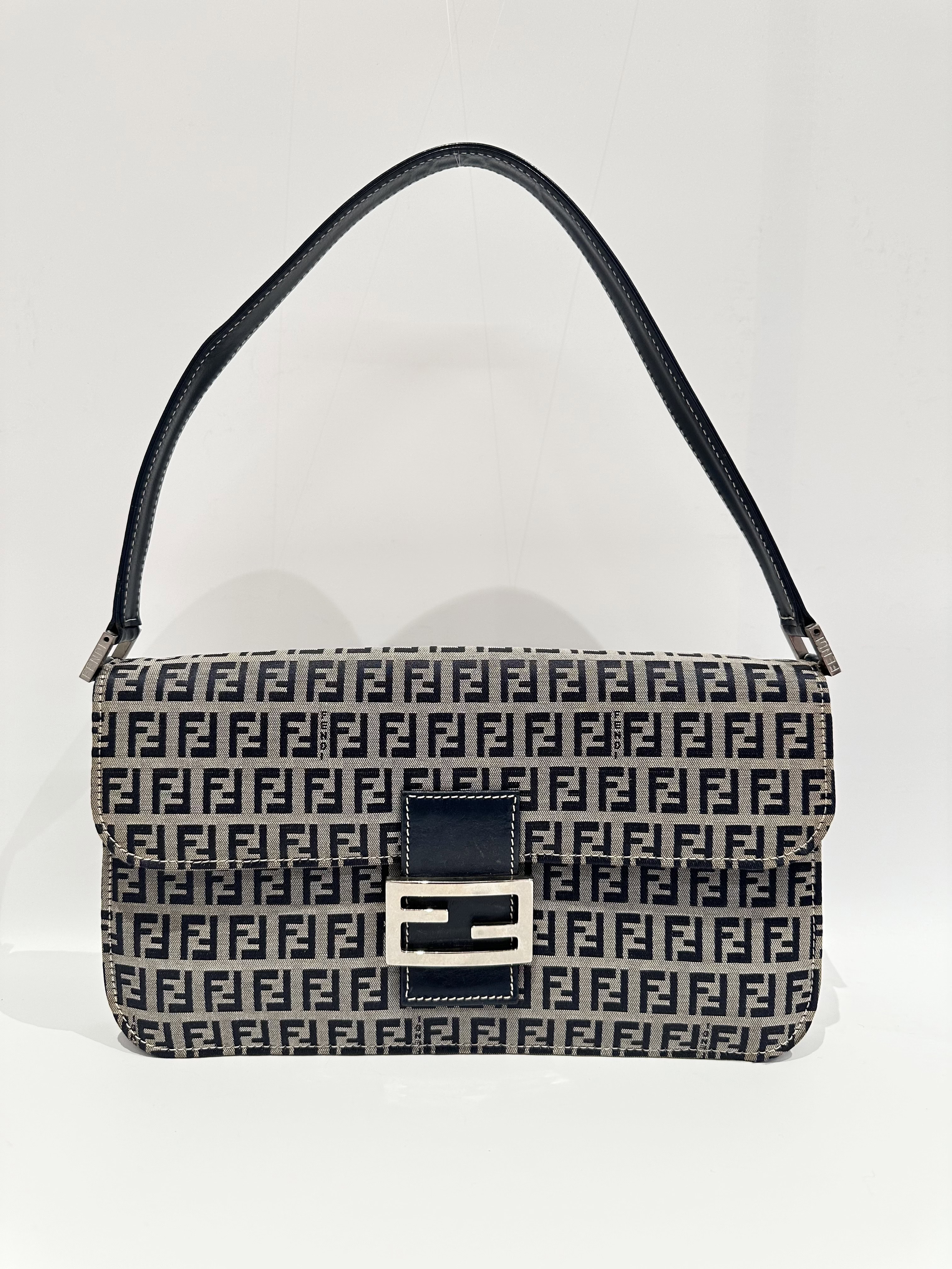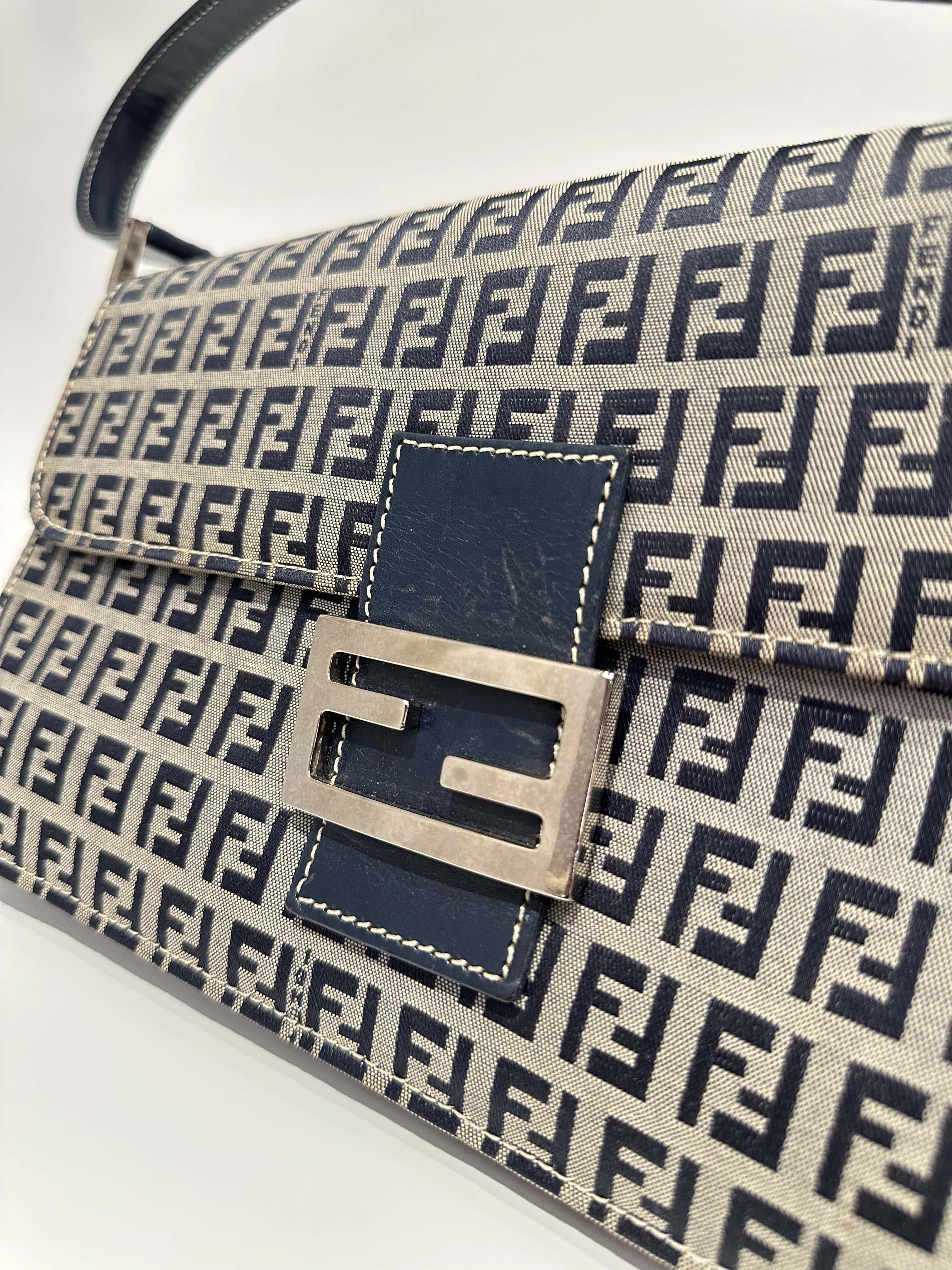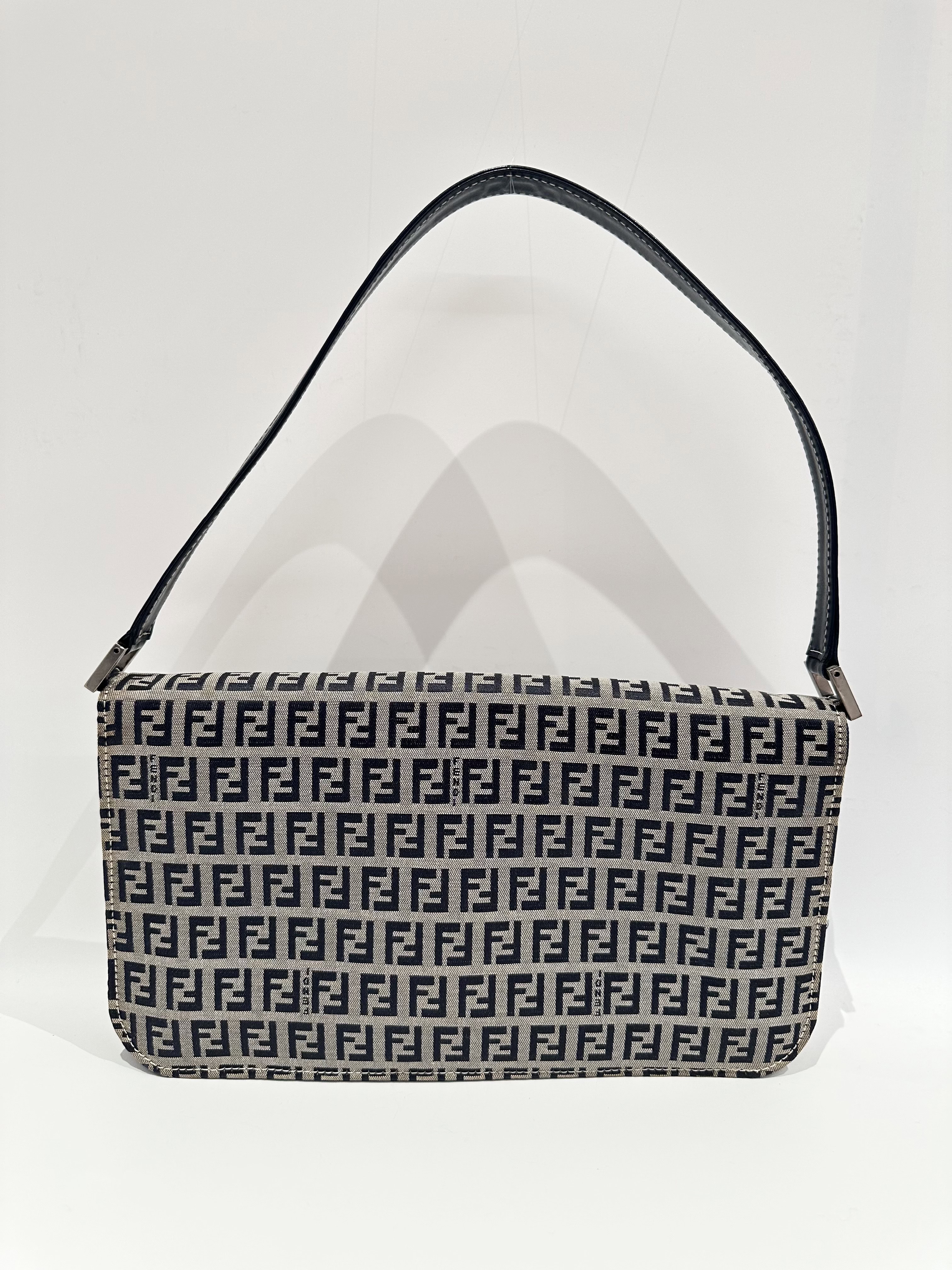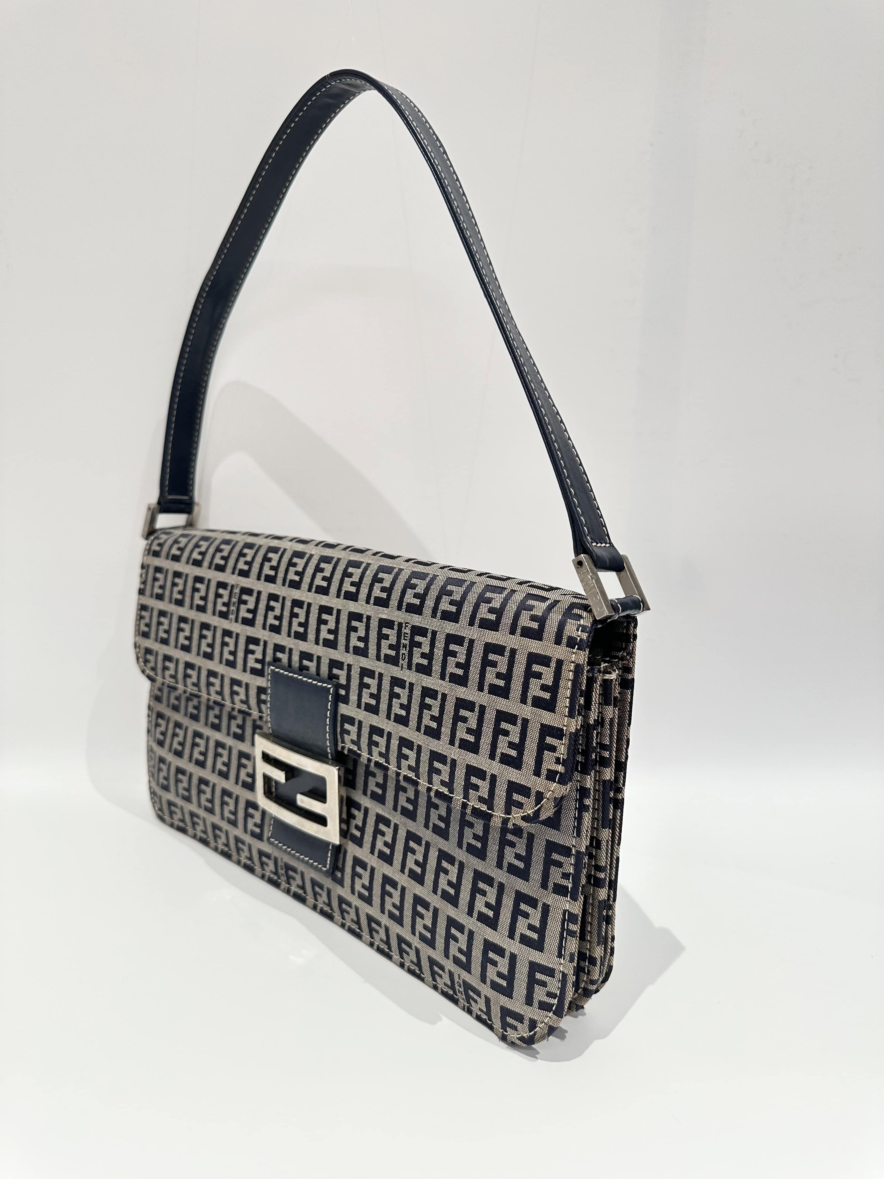 Fendi Blue Baguette FF Canvas Shoulder Bag