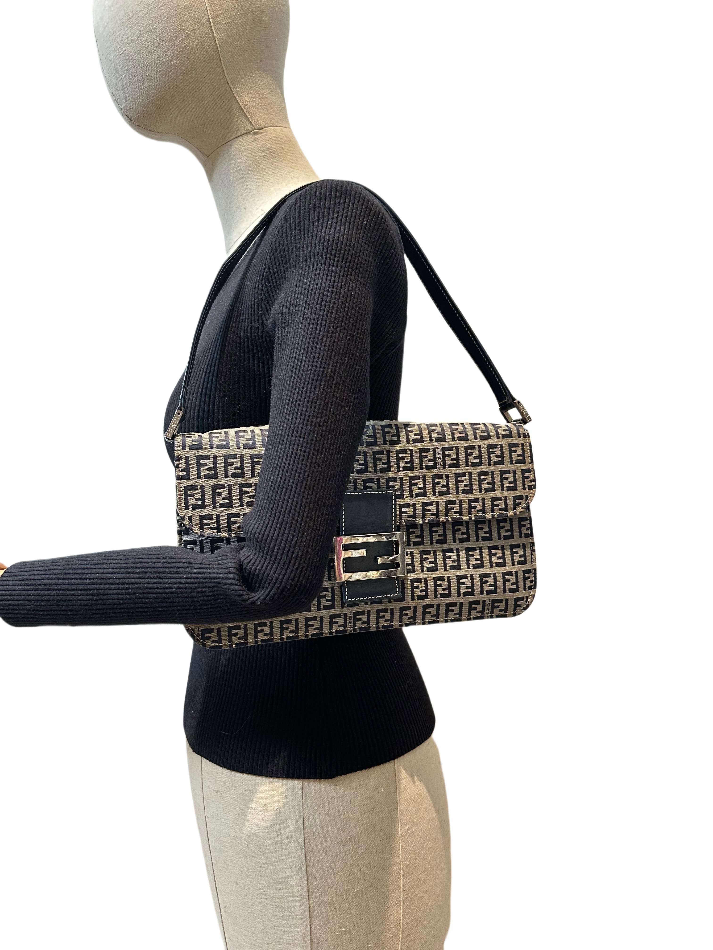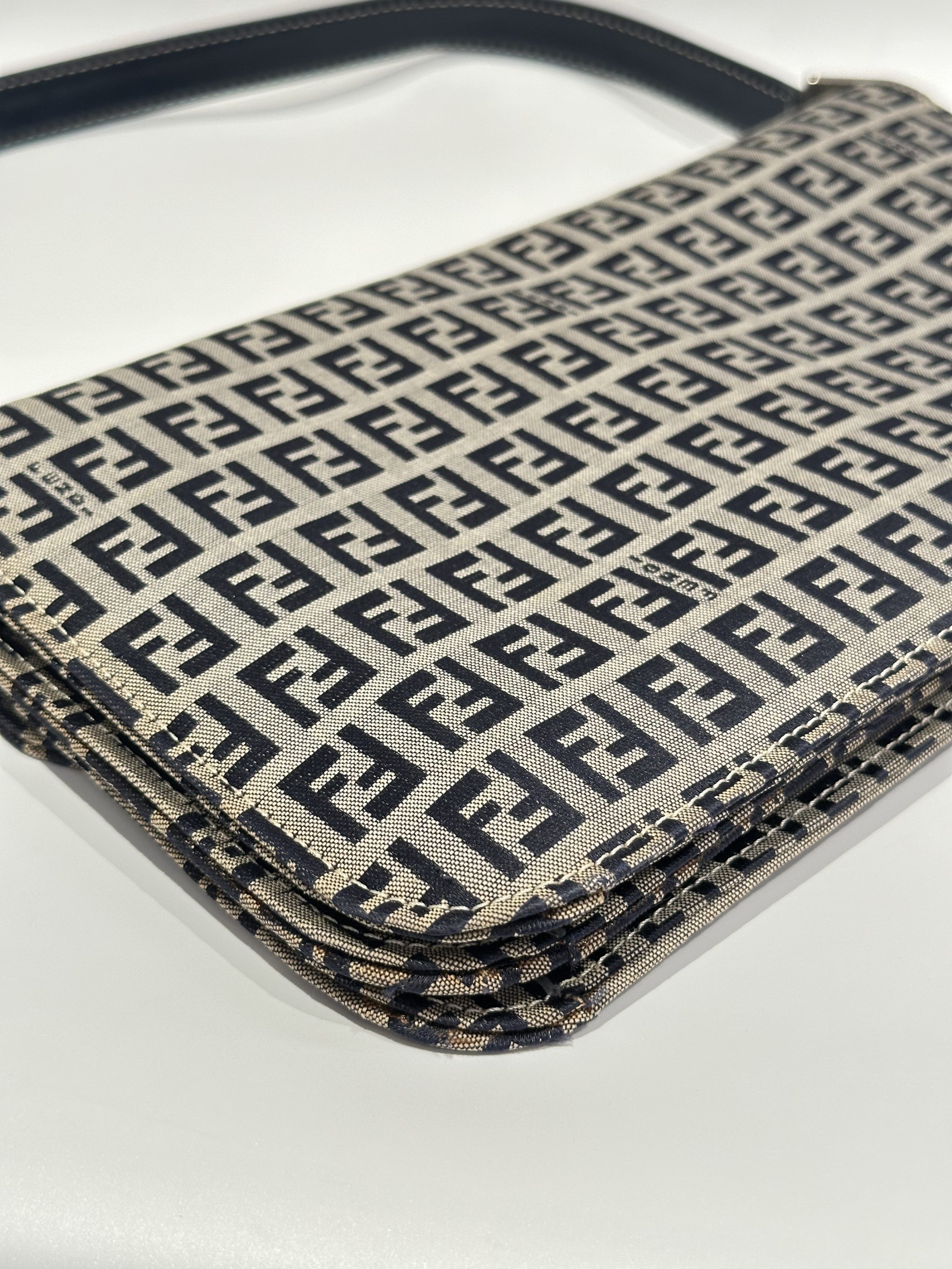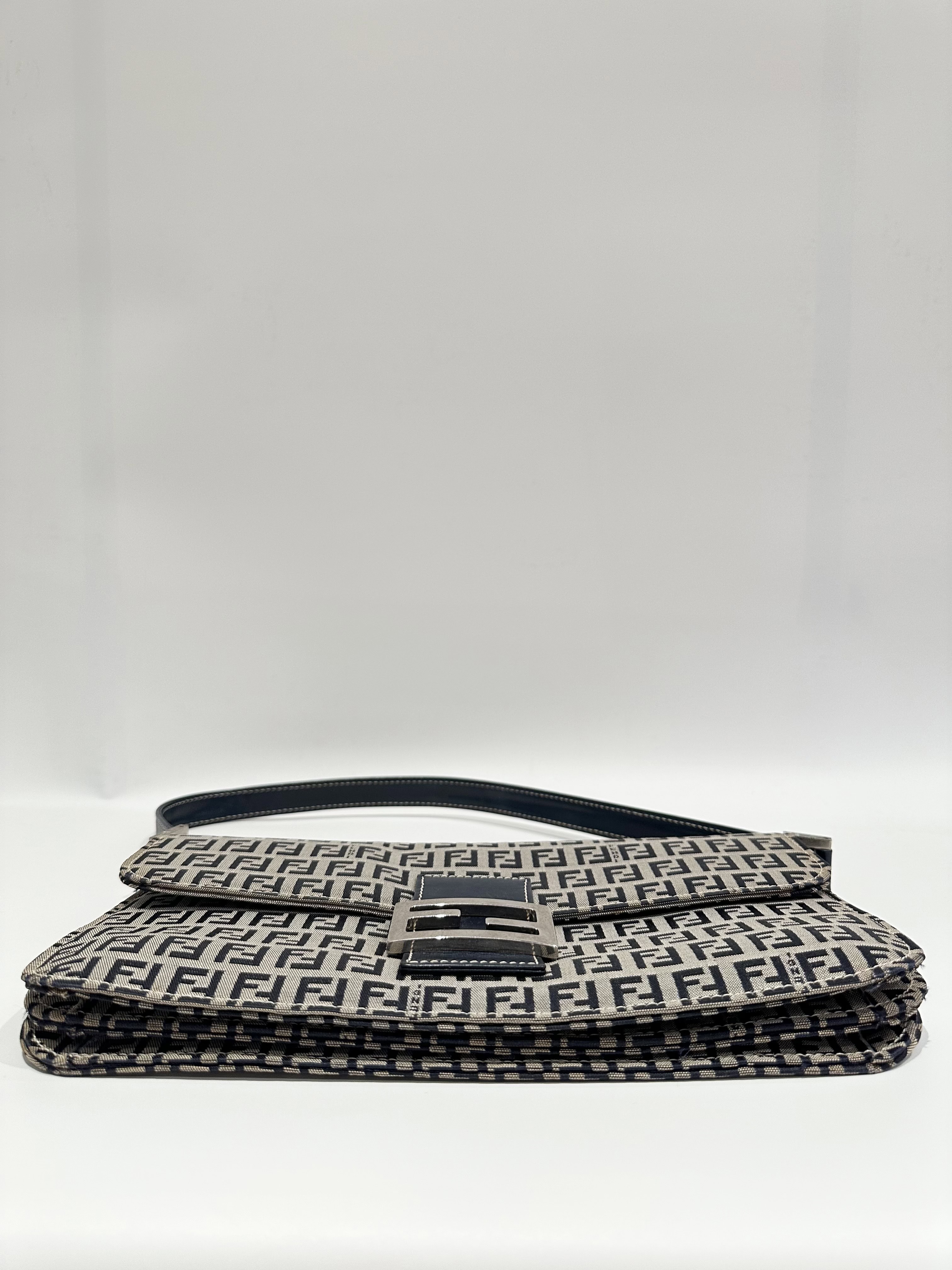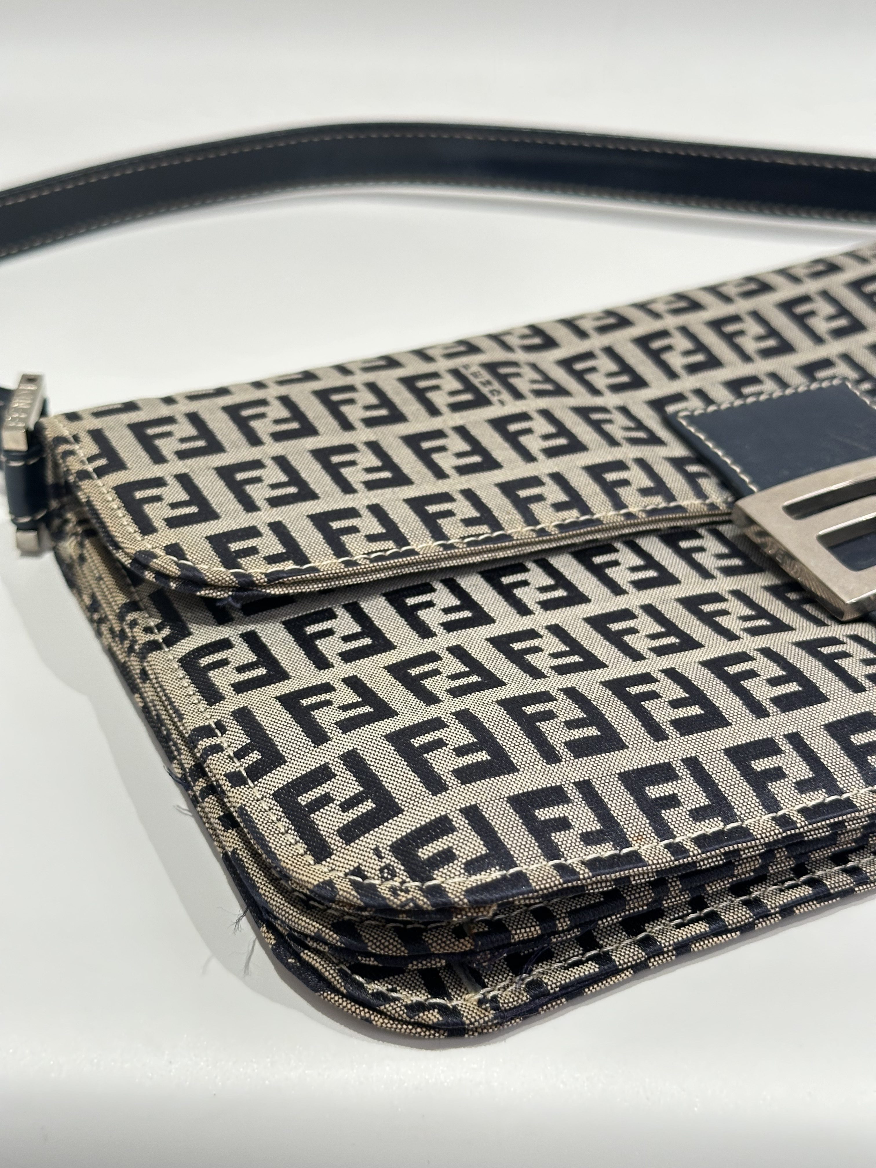 Fendi Blue Baguette FF Canvas Shoulder Bag
