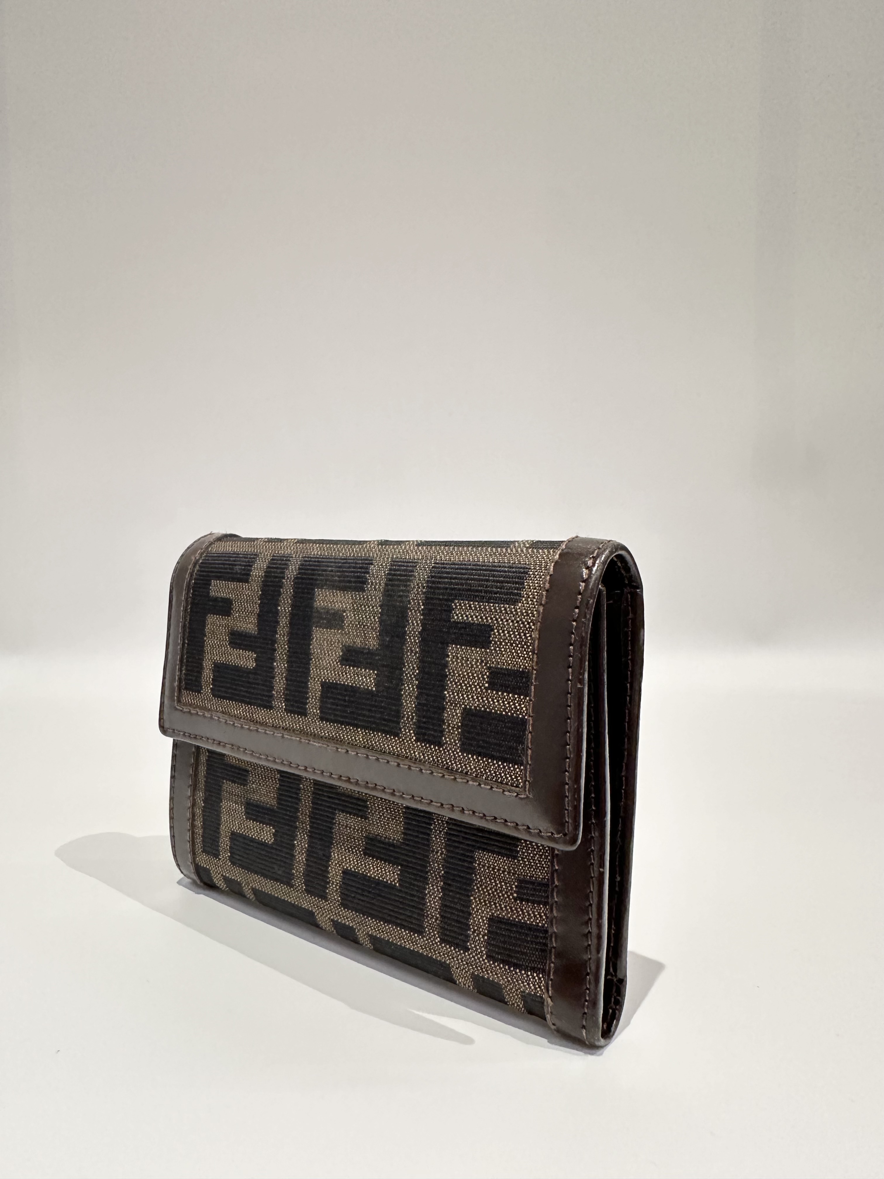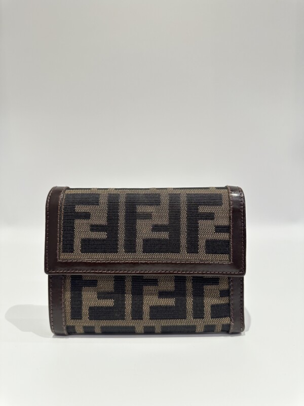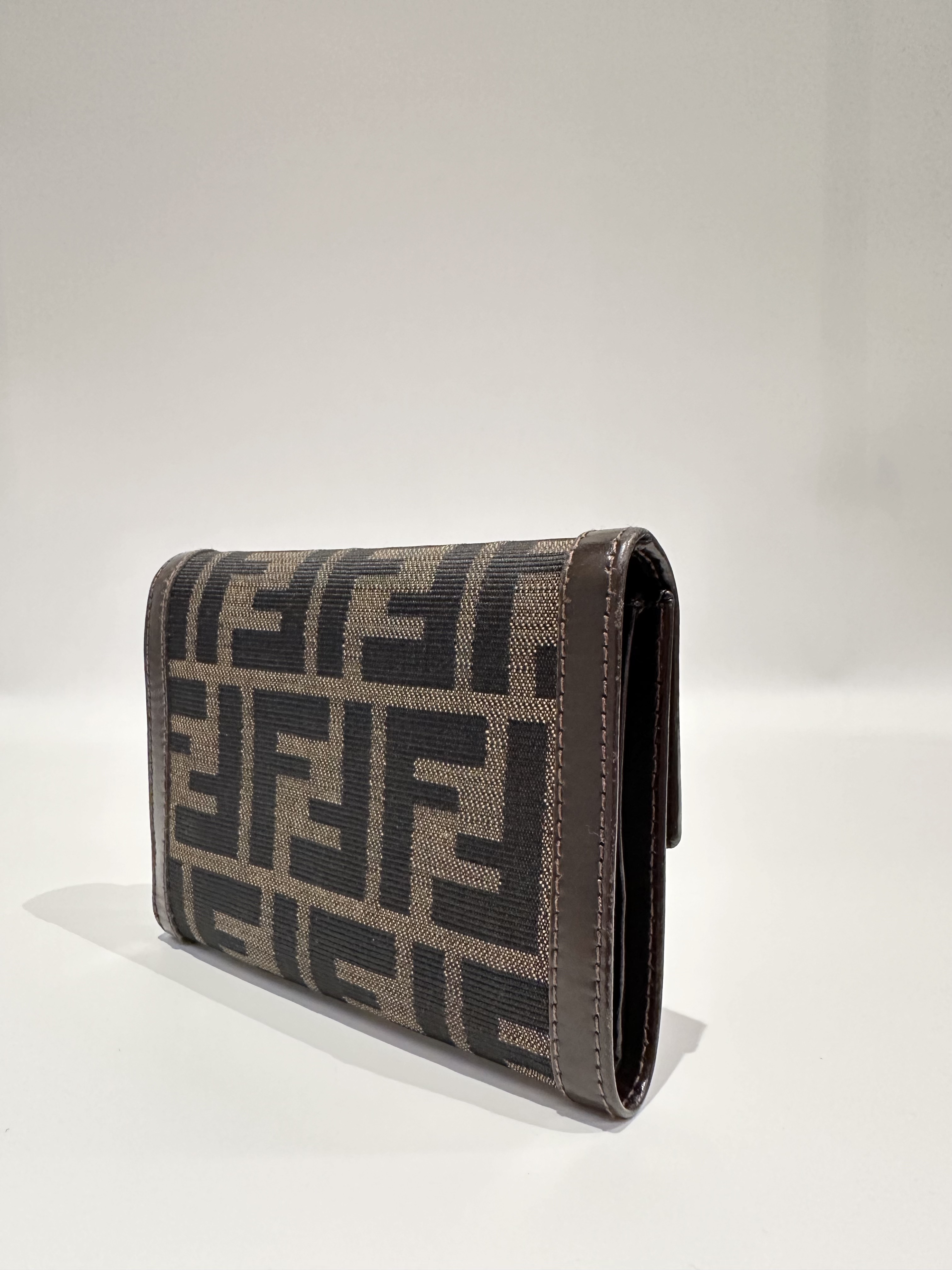 Fendi Vintage Brown FF Canvas Flap Wallet