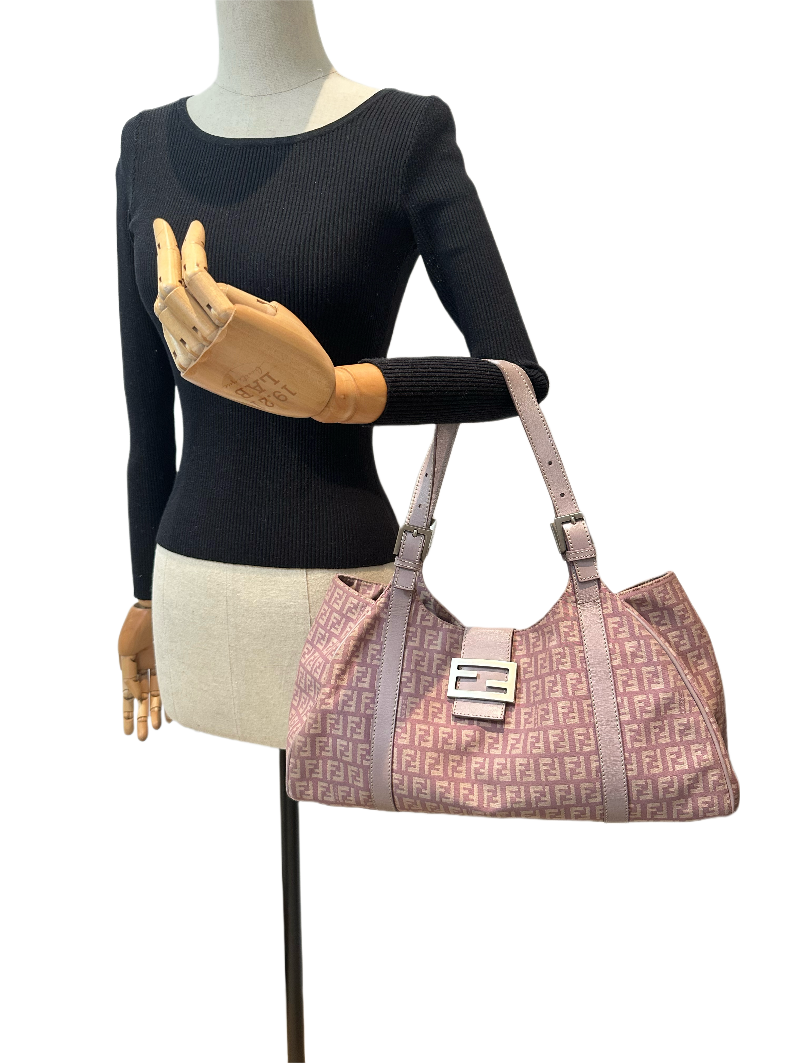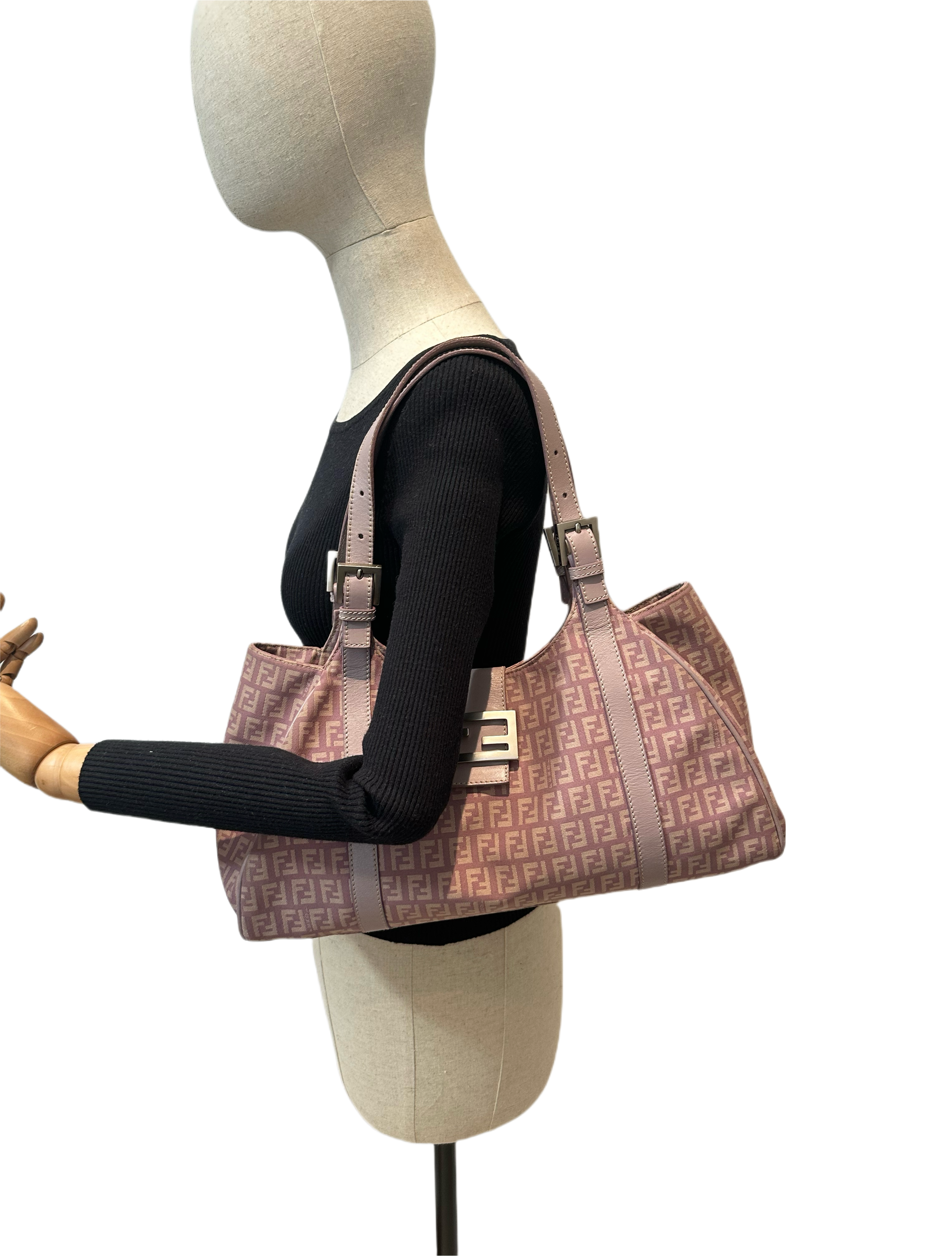 Fendi Vintage Pink FF Canvas Shoulder Bag