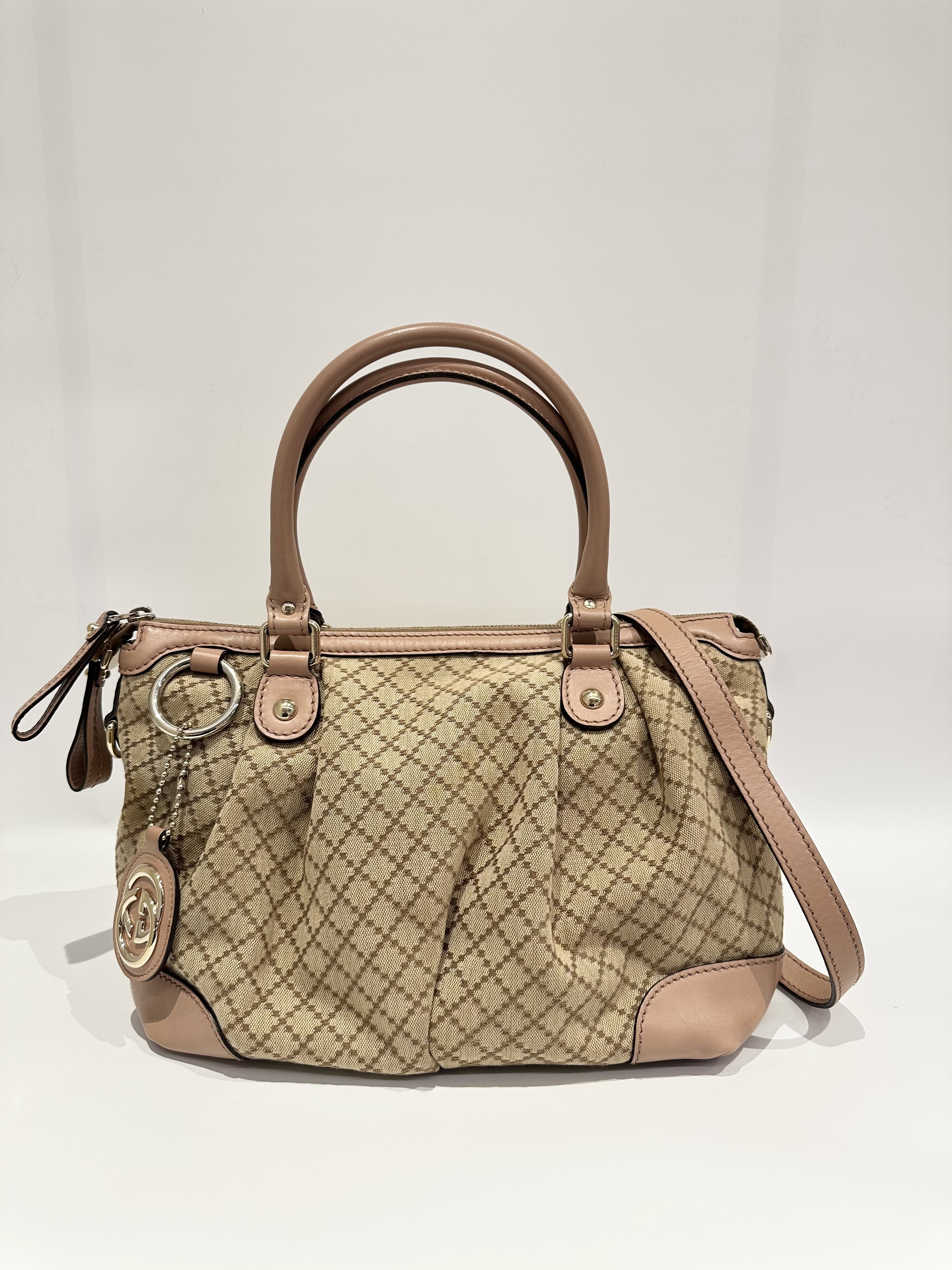 Gucci Beige Sukey Diamante Canvas Handbag