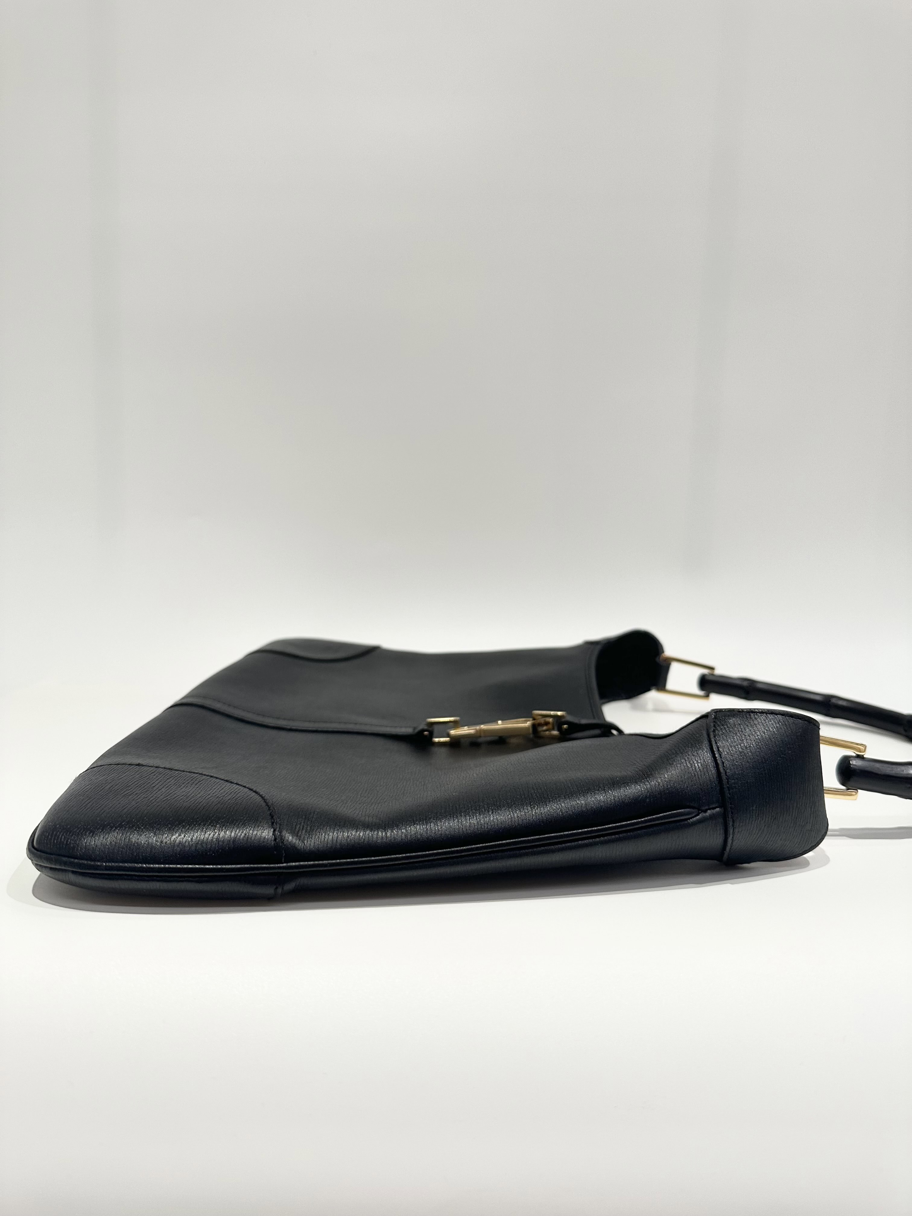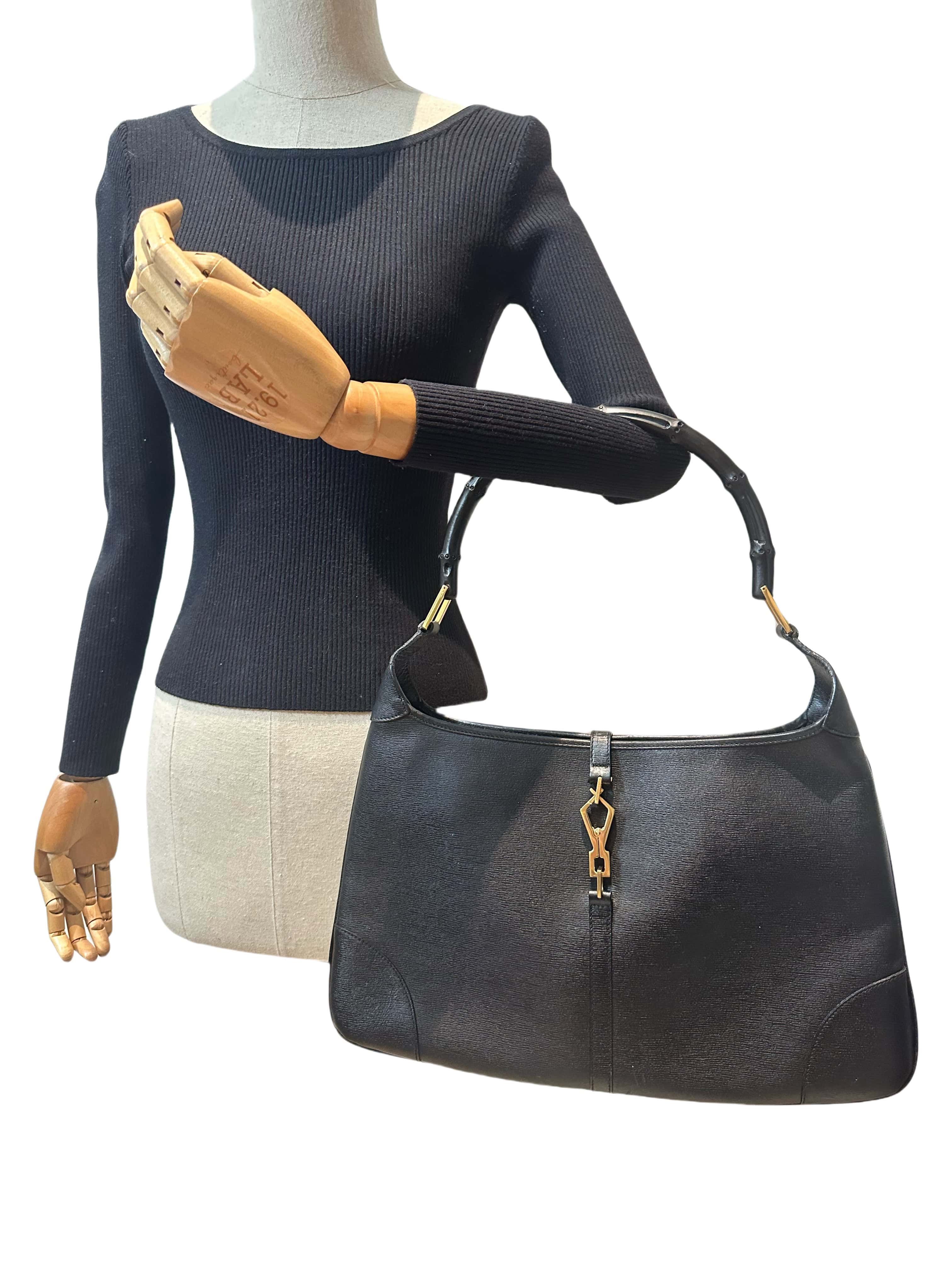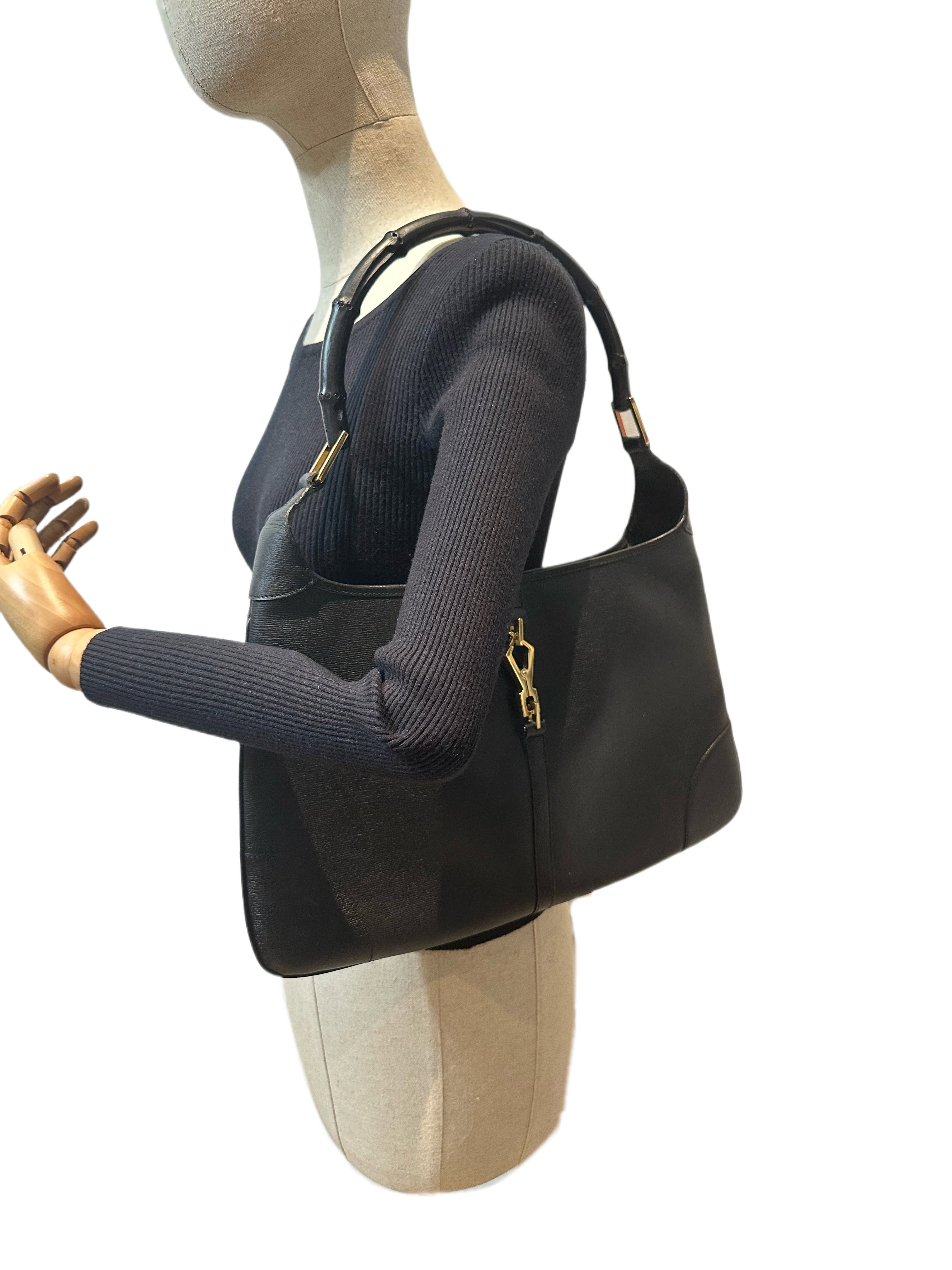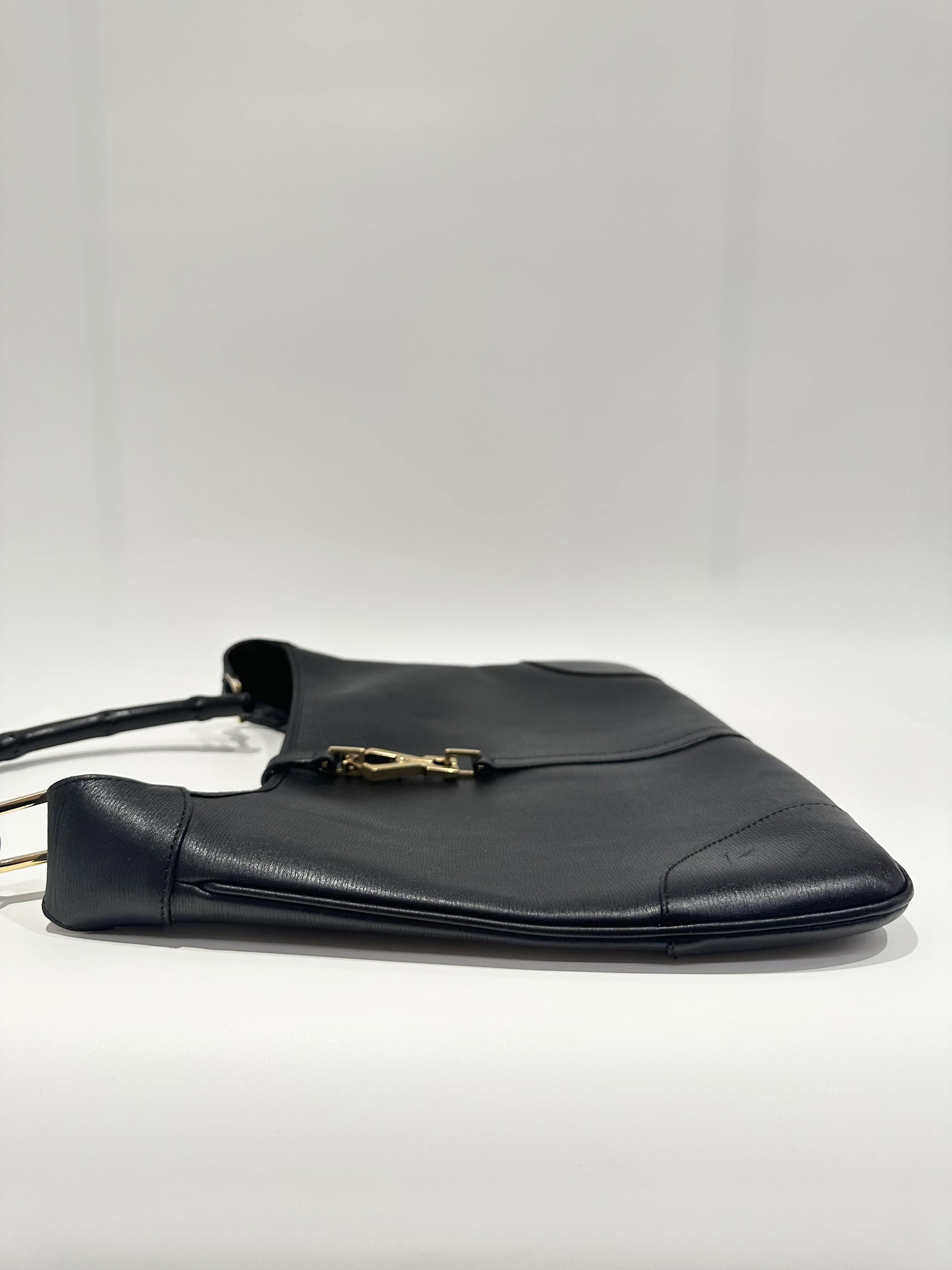 Gucci Black Jackie Bamboo Top Handle Large Leather Handbag