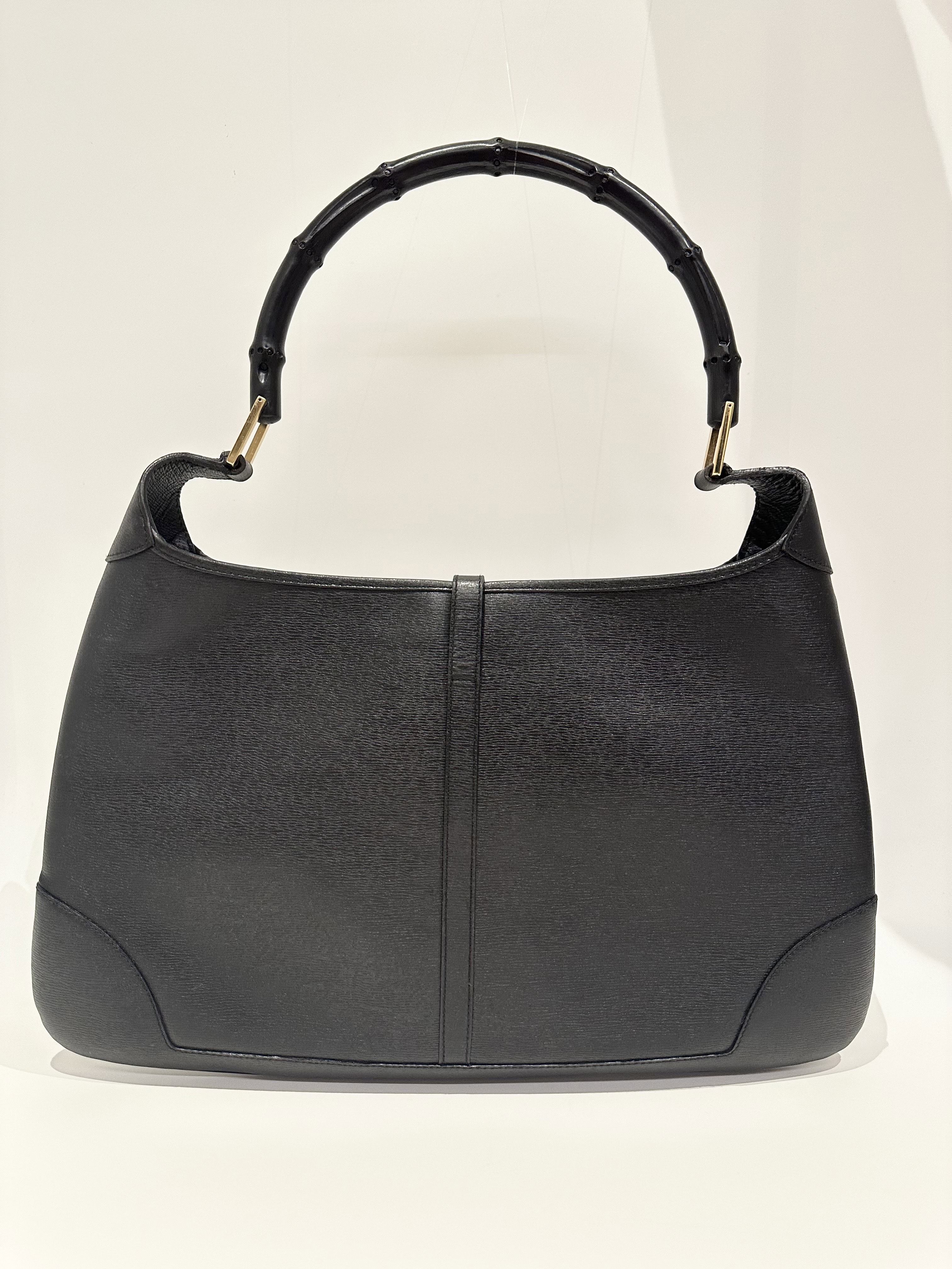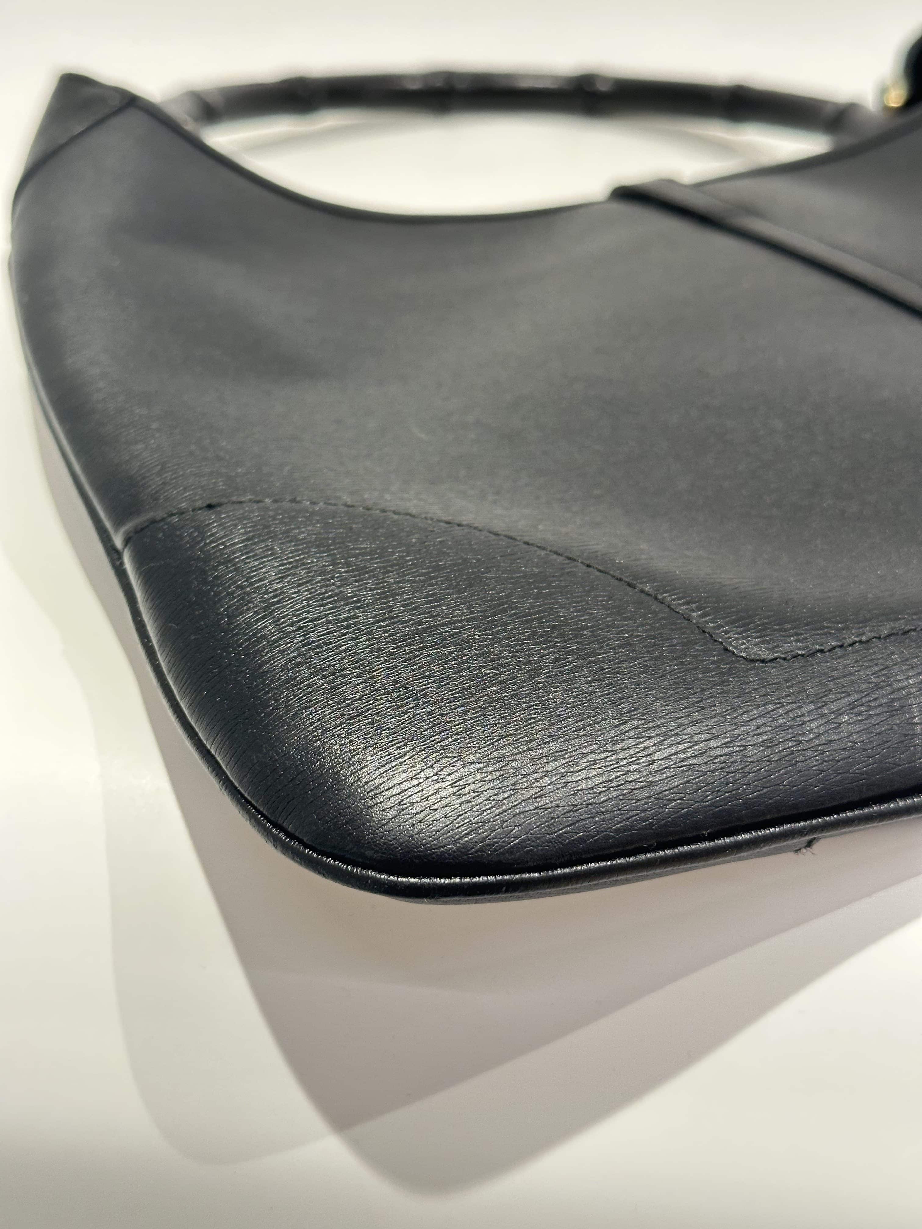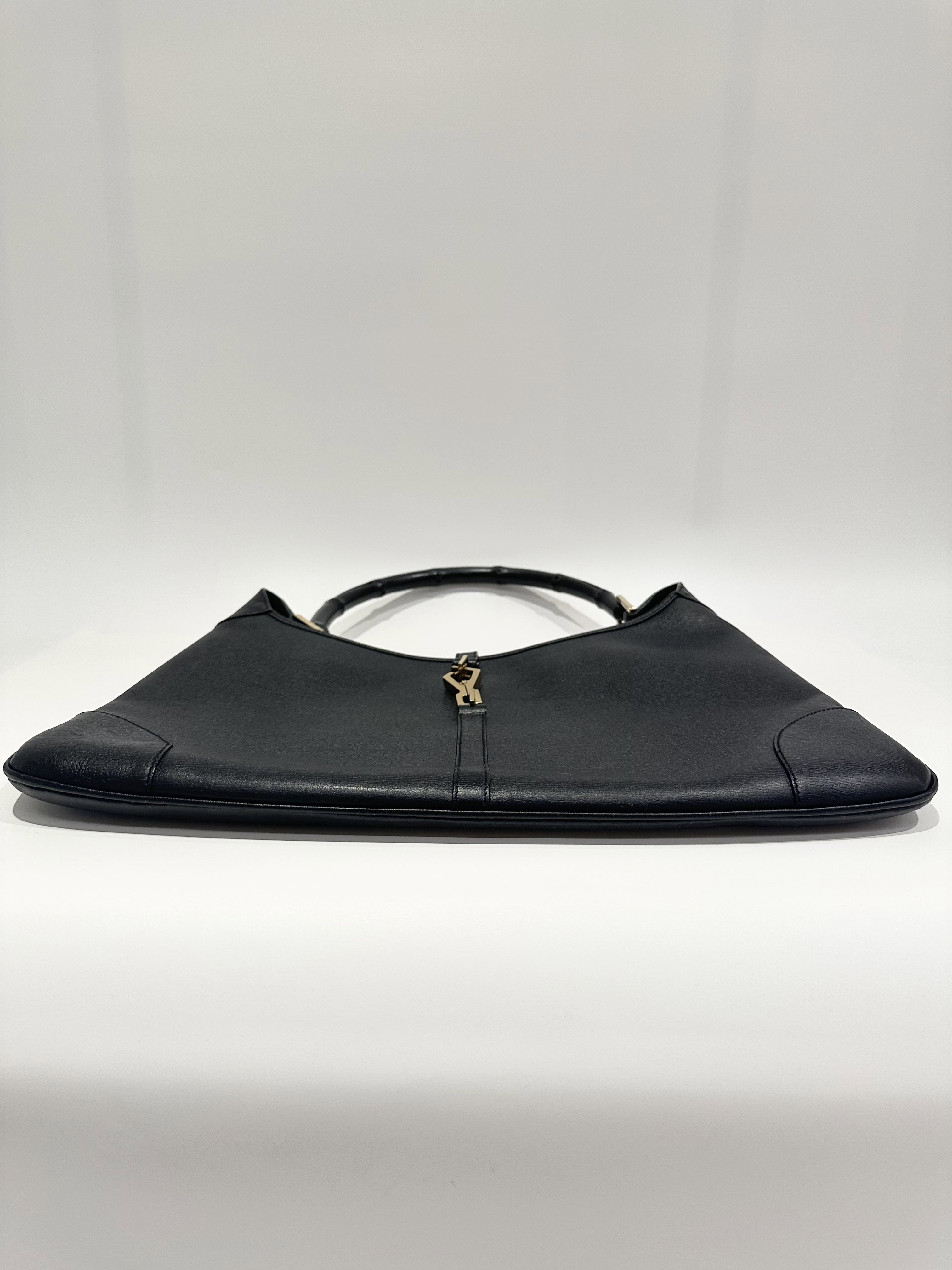 Gucci Black Jackie Bamboo Top Handle Large Leather Handbag