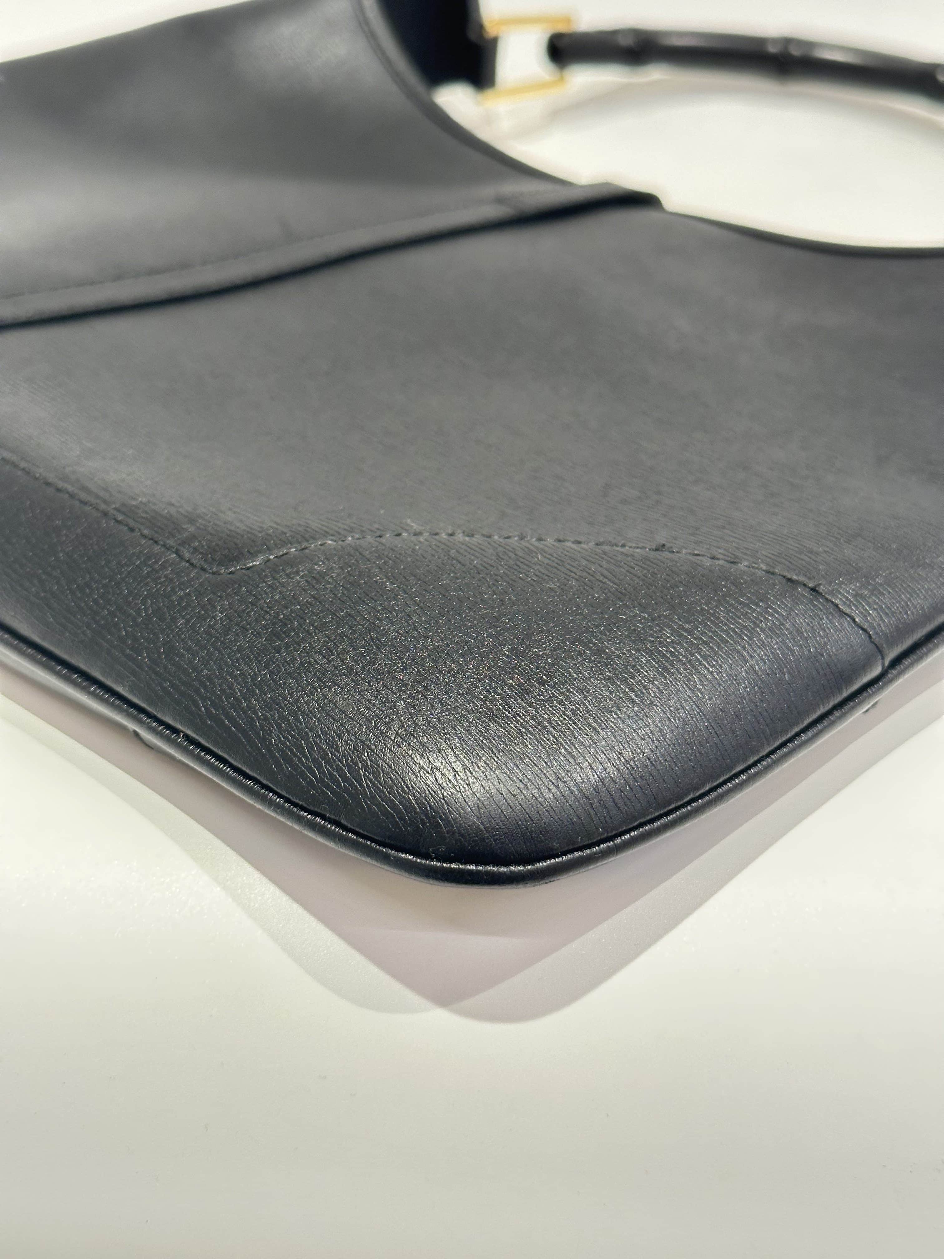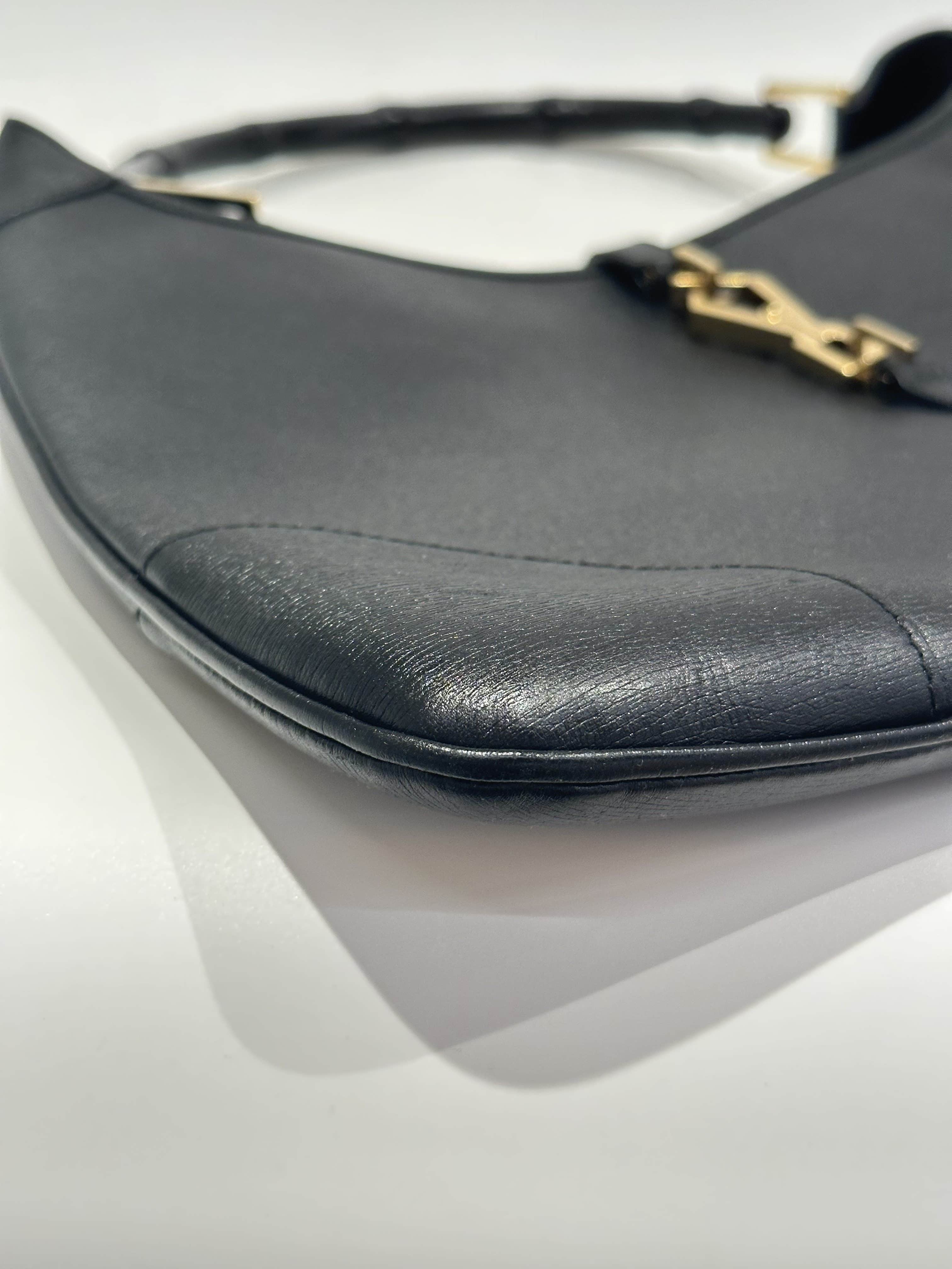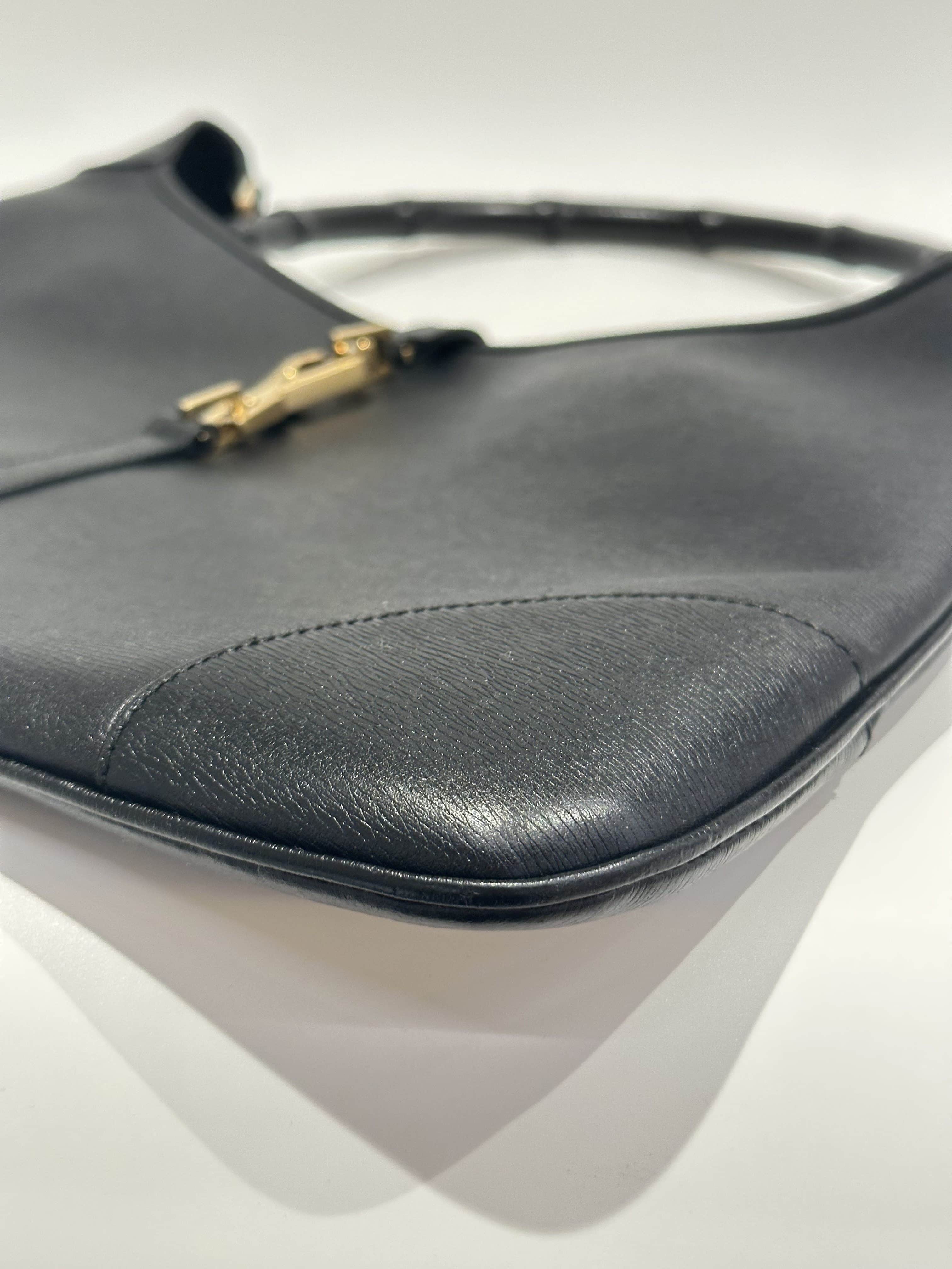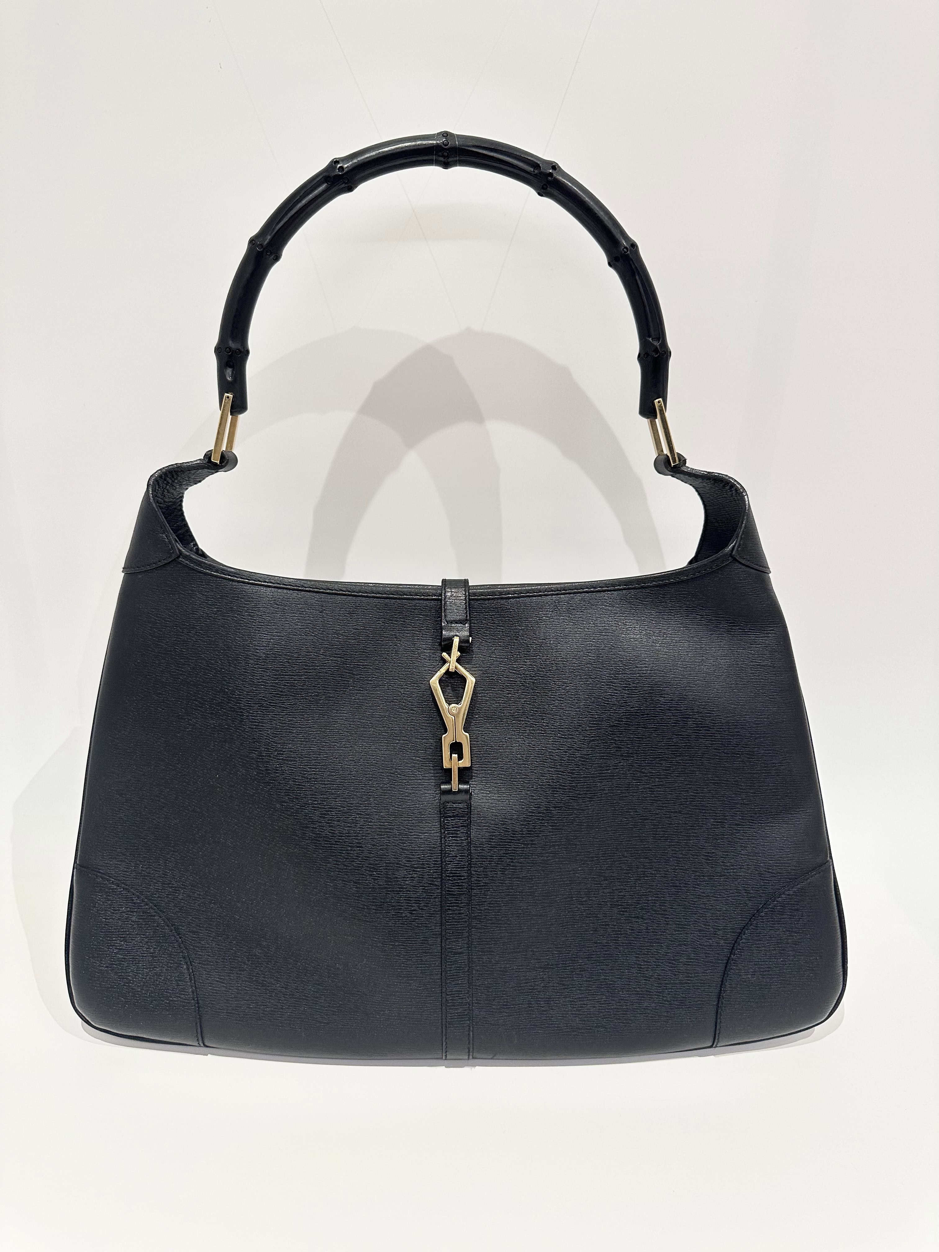 Gucci Black Jackie Bamboo Top Handle Large Leather Handbag