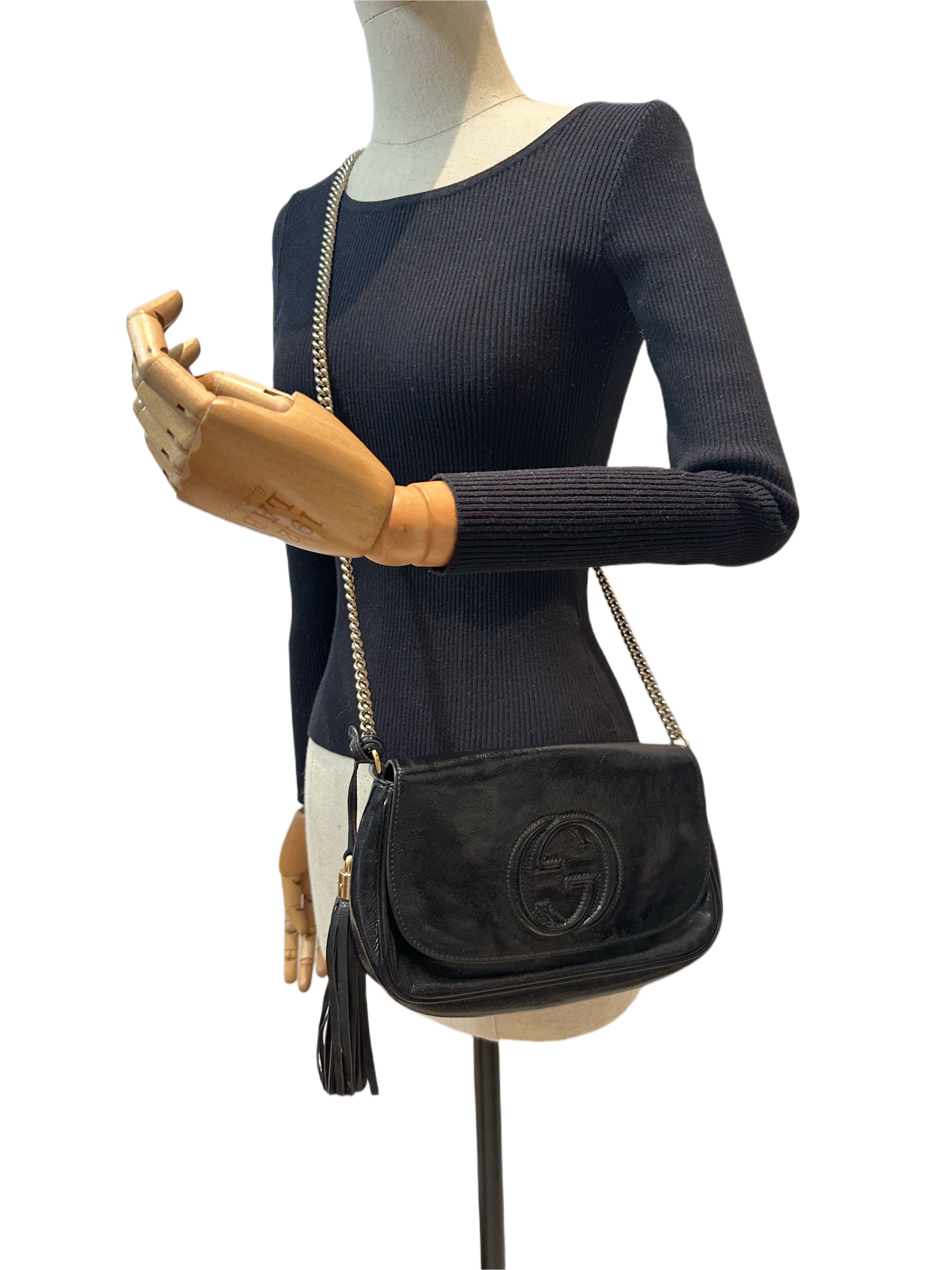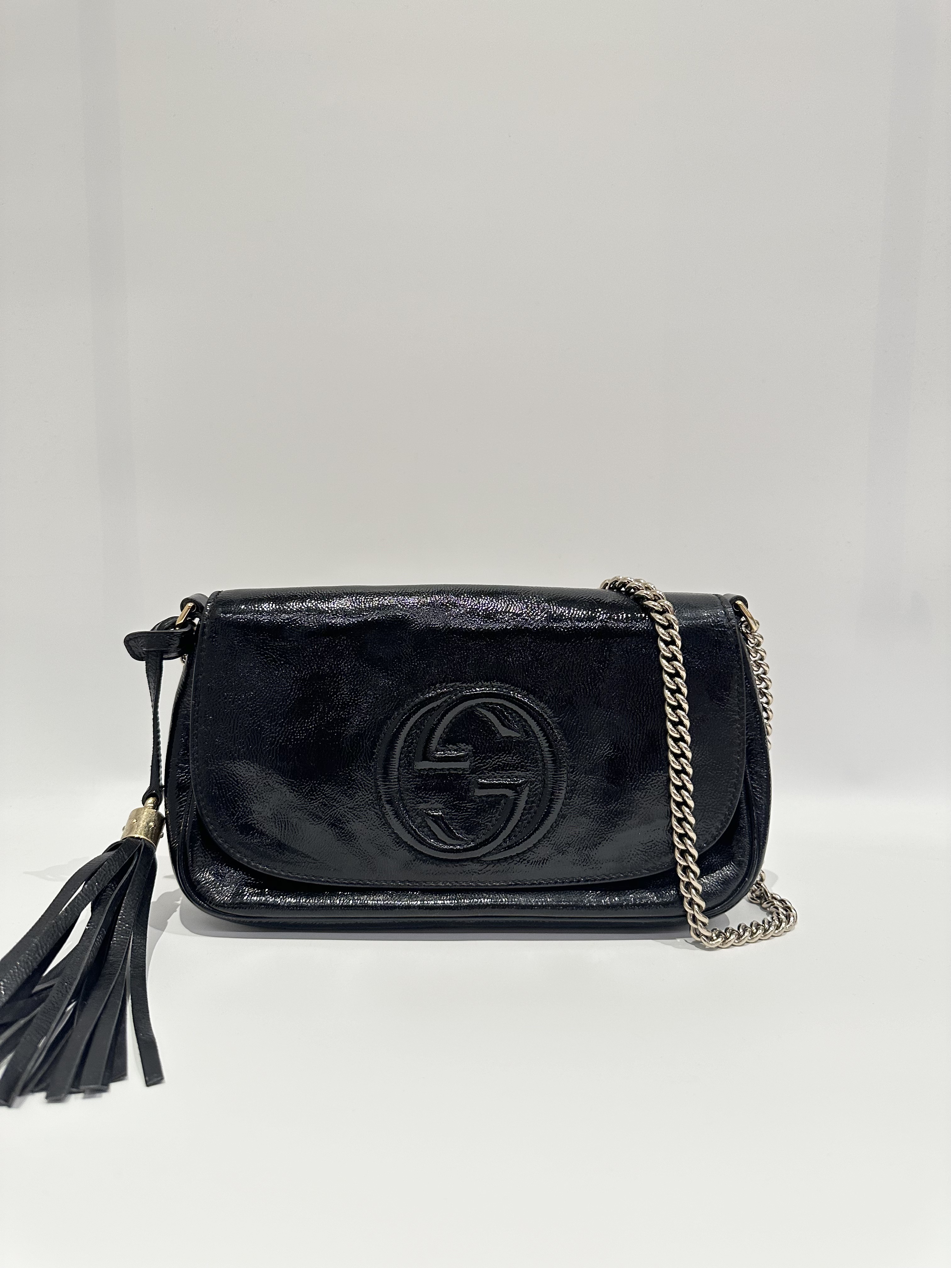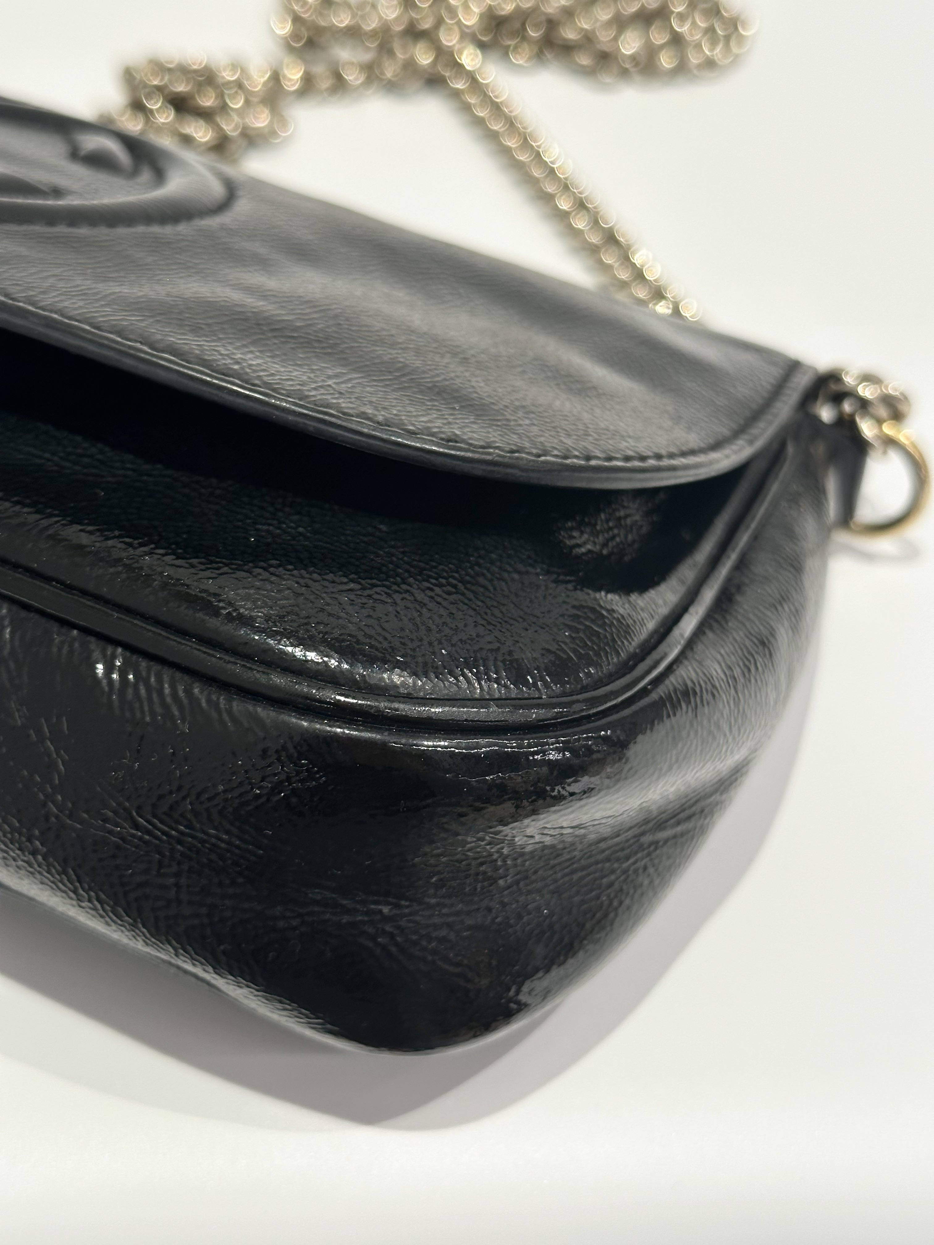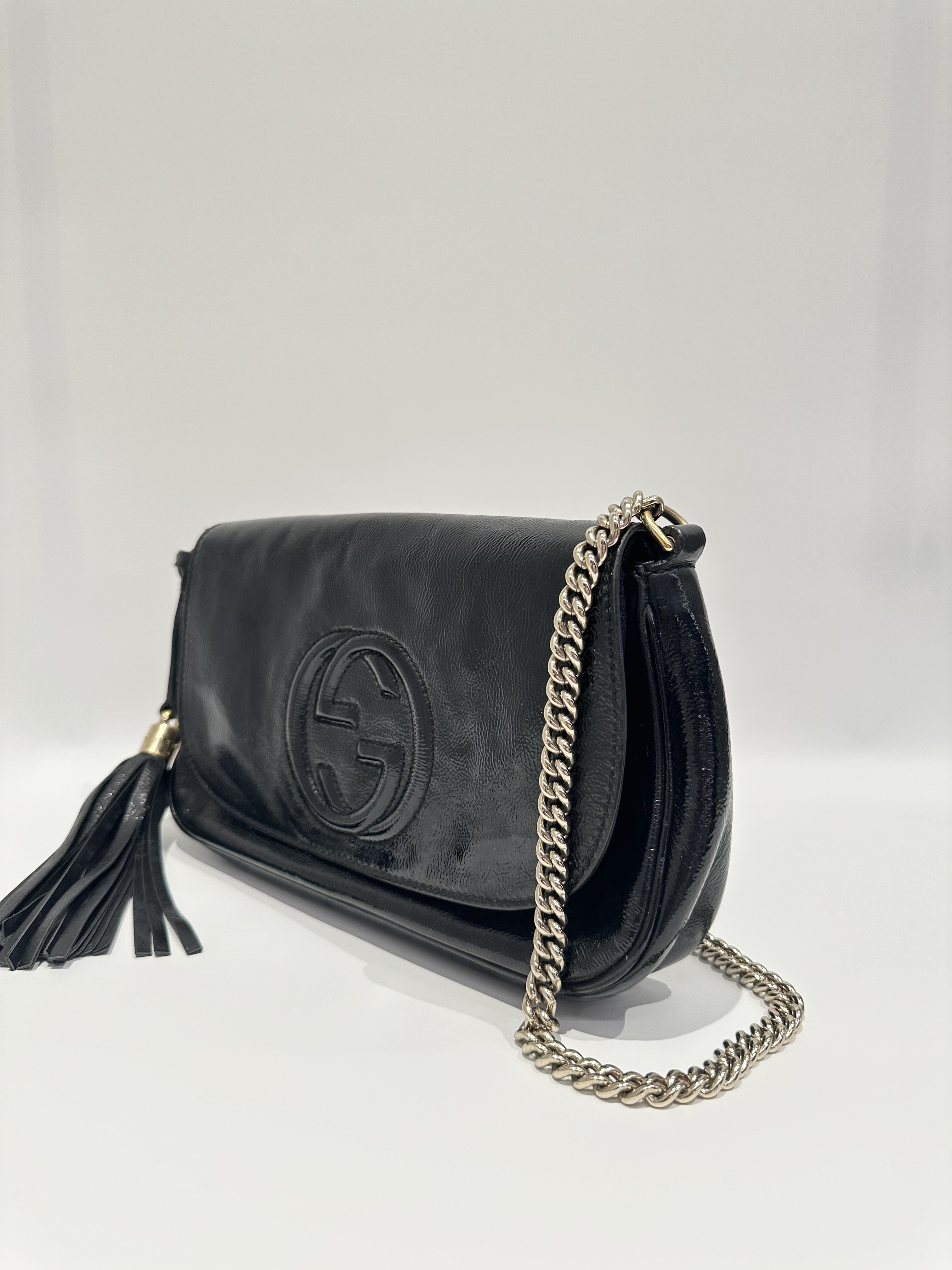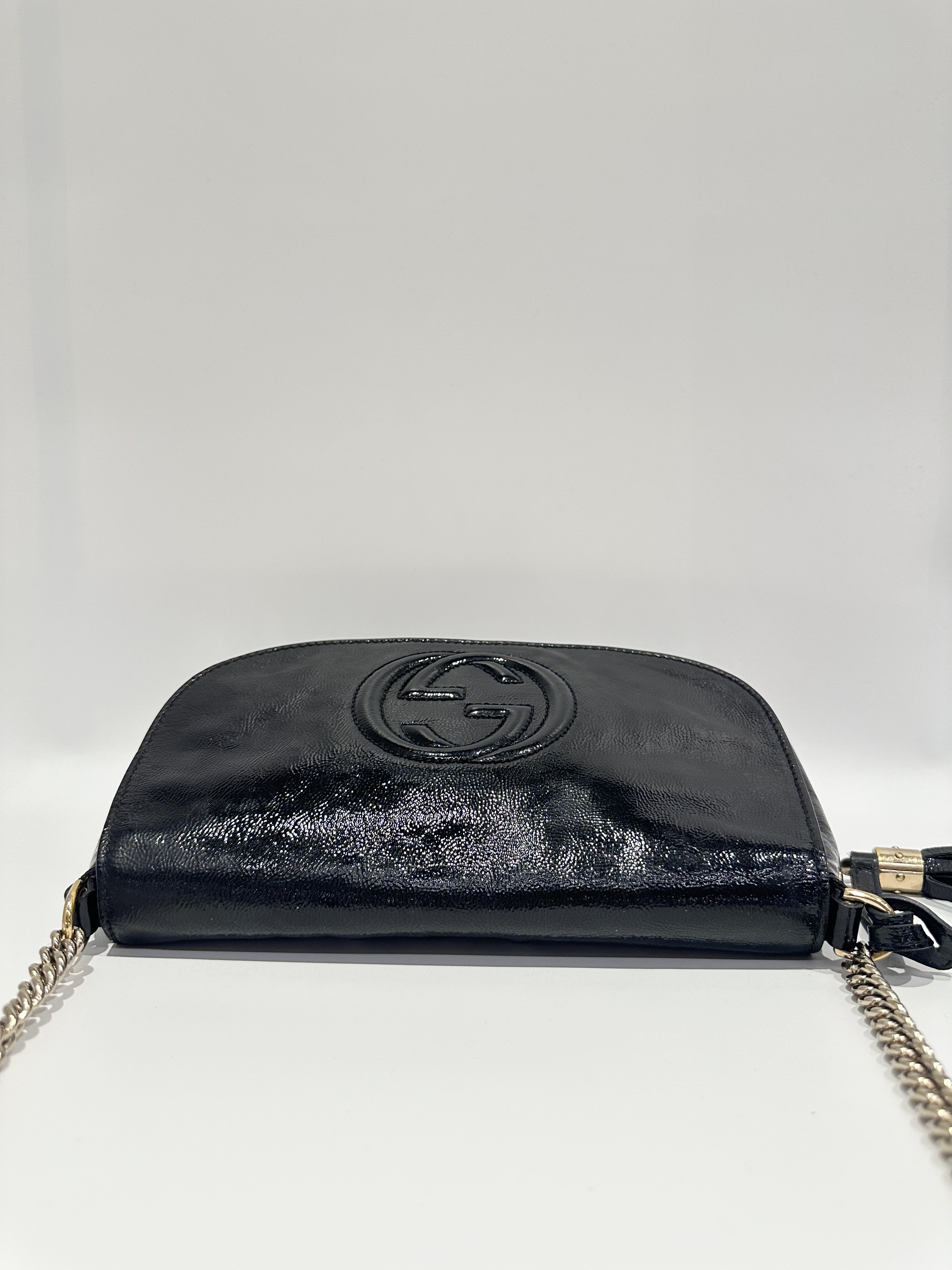 Gucci Black Soho Long Flap Patent Leather Crossbody Bag
