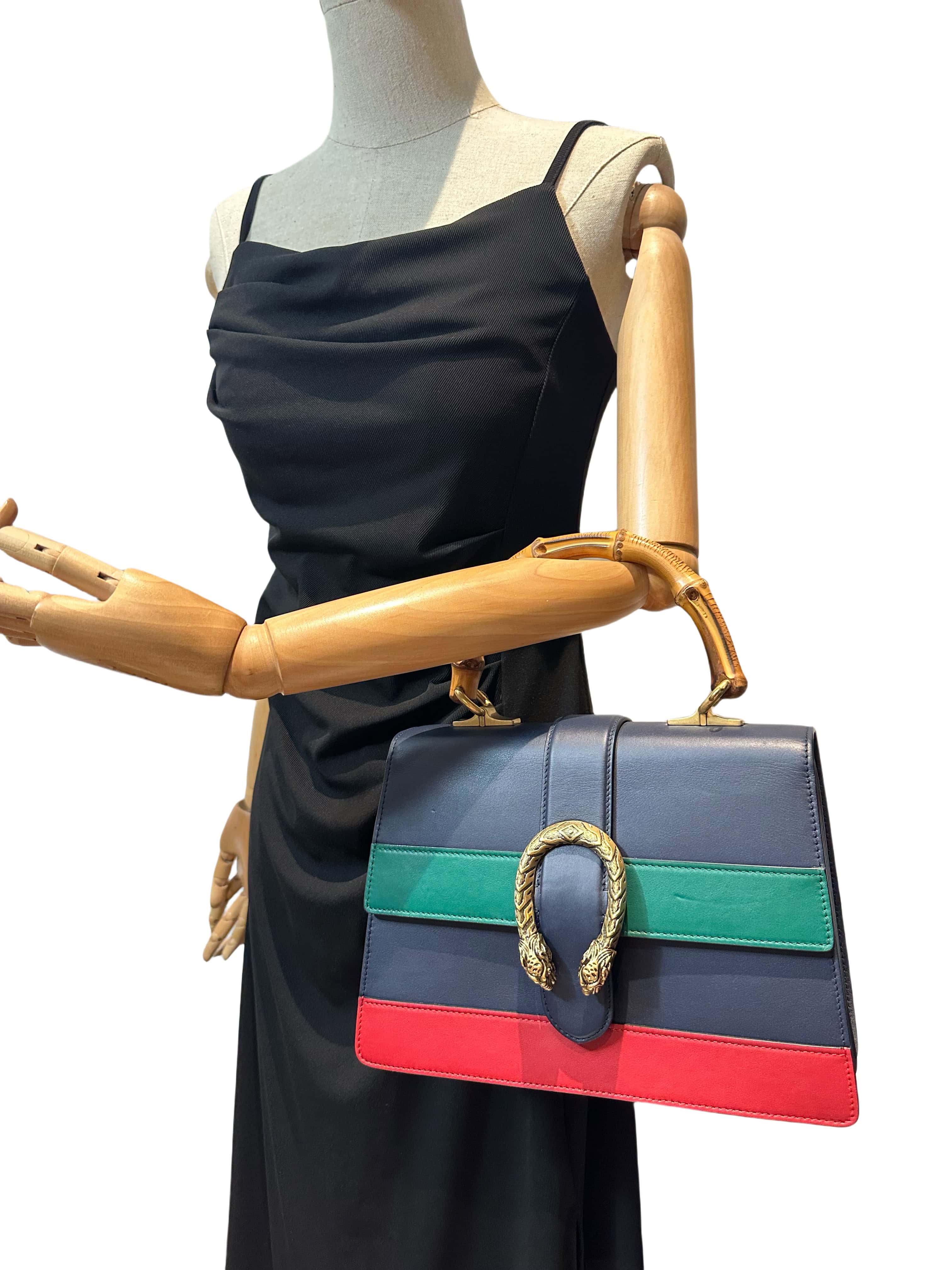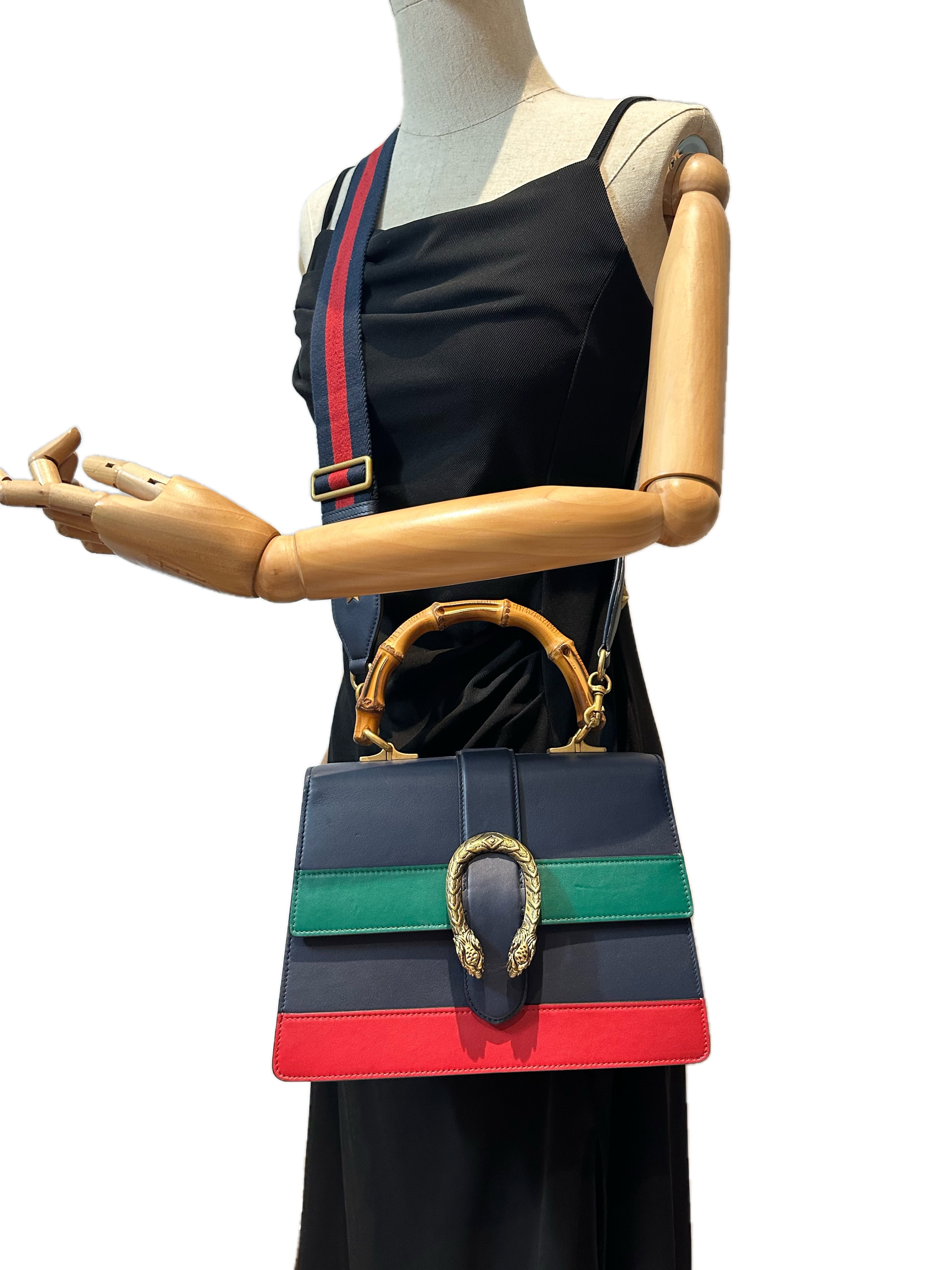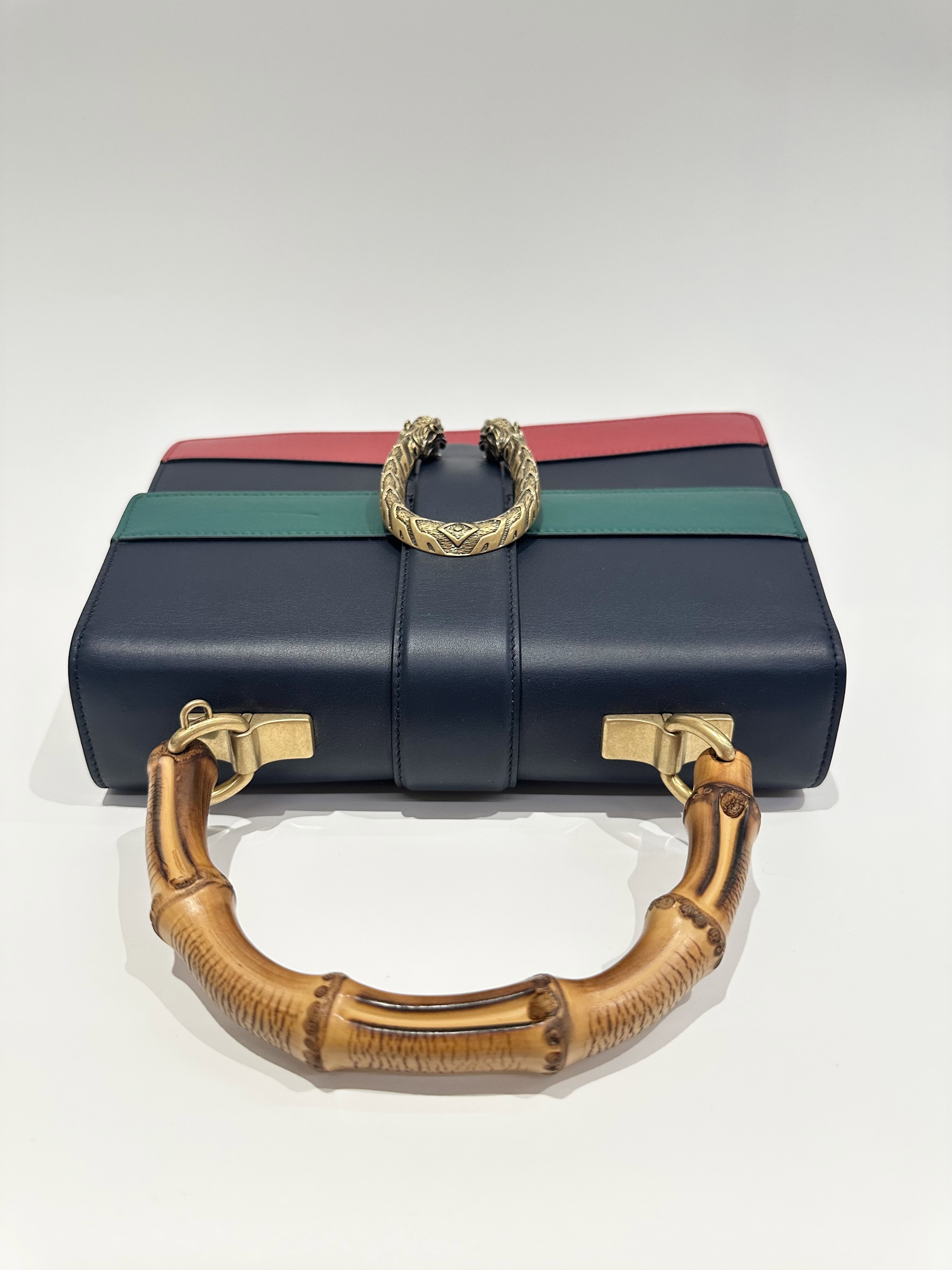Gucci Blue Dionysus Bamboo Top Handle Leather Handbag