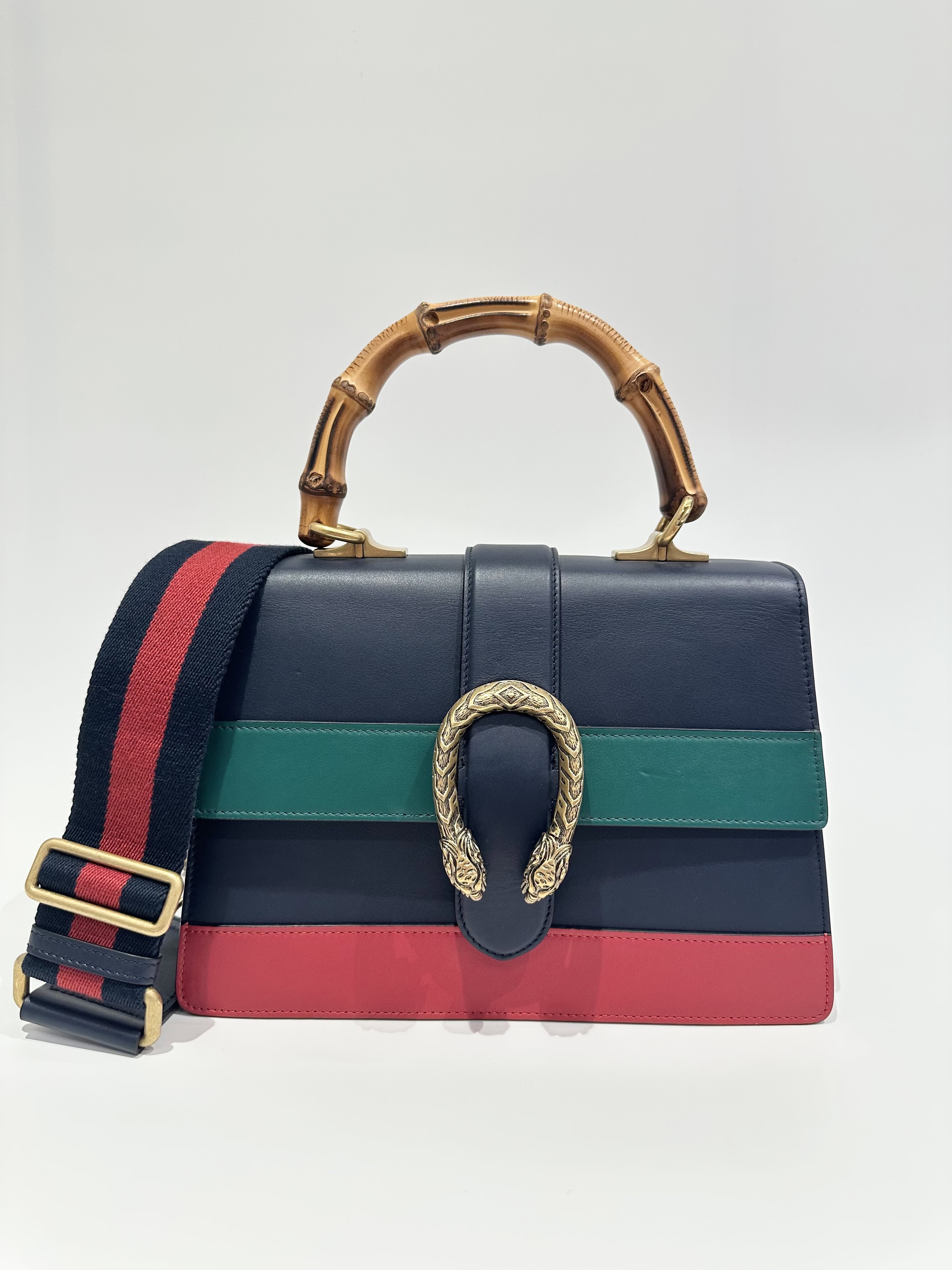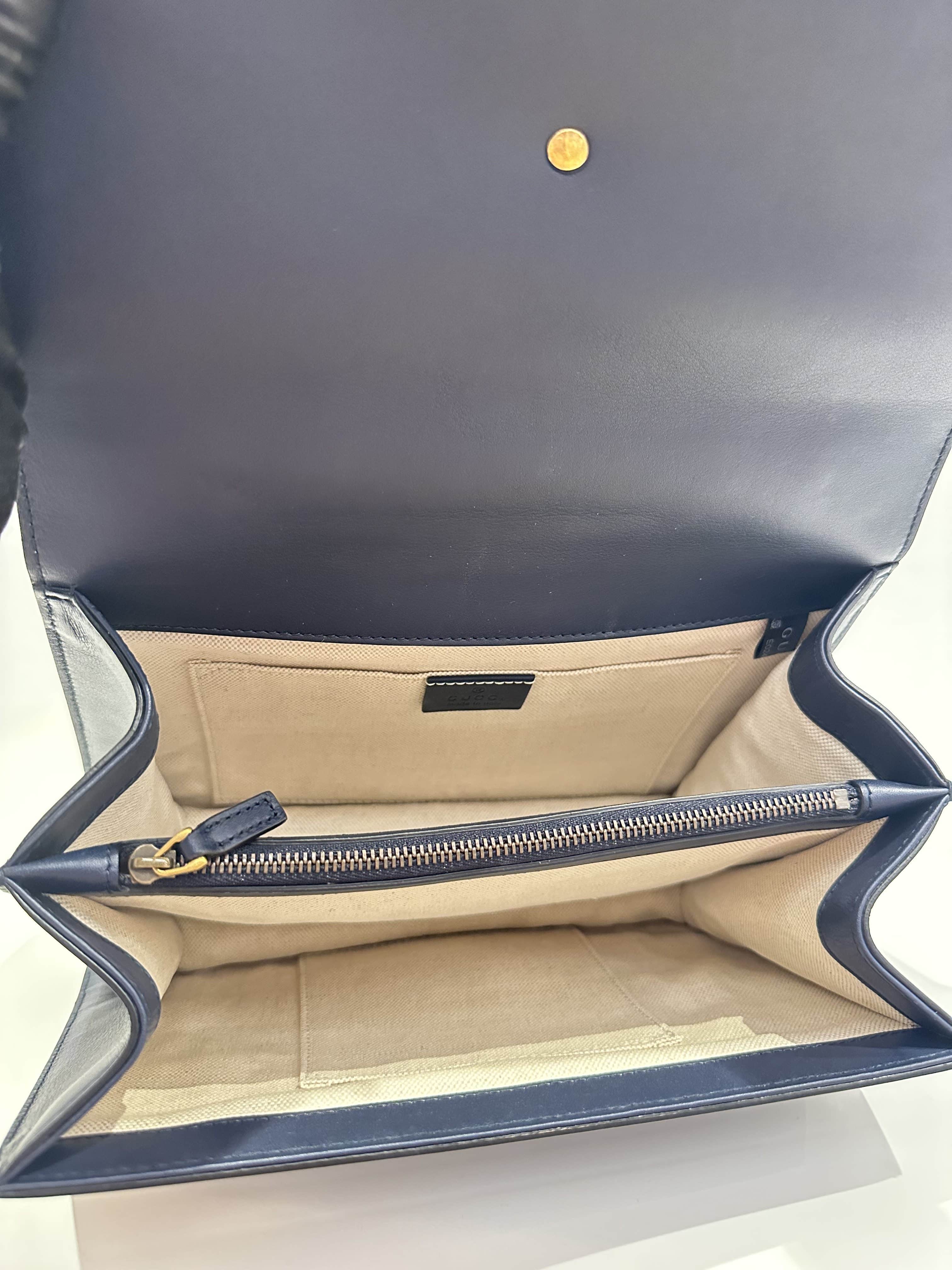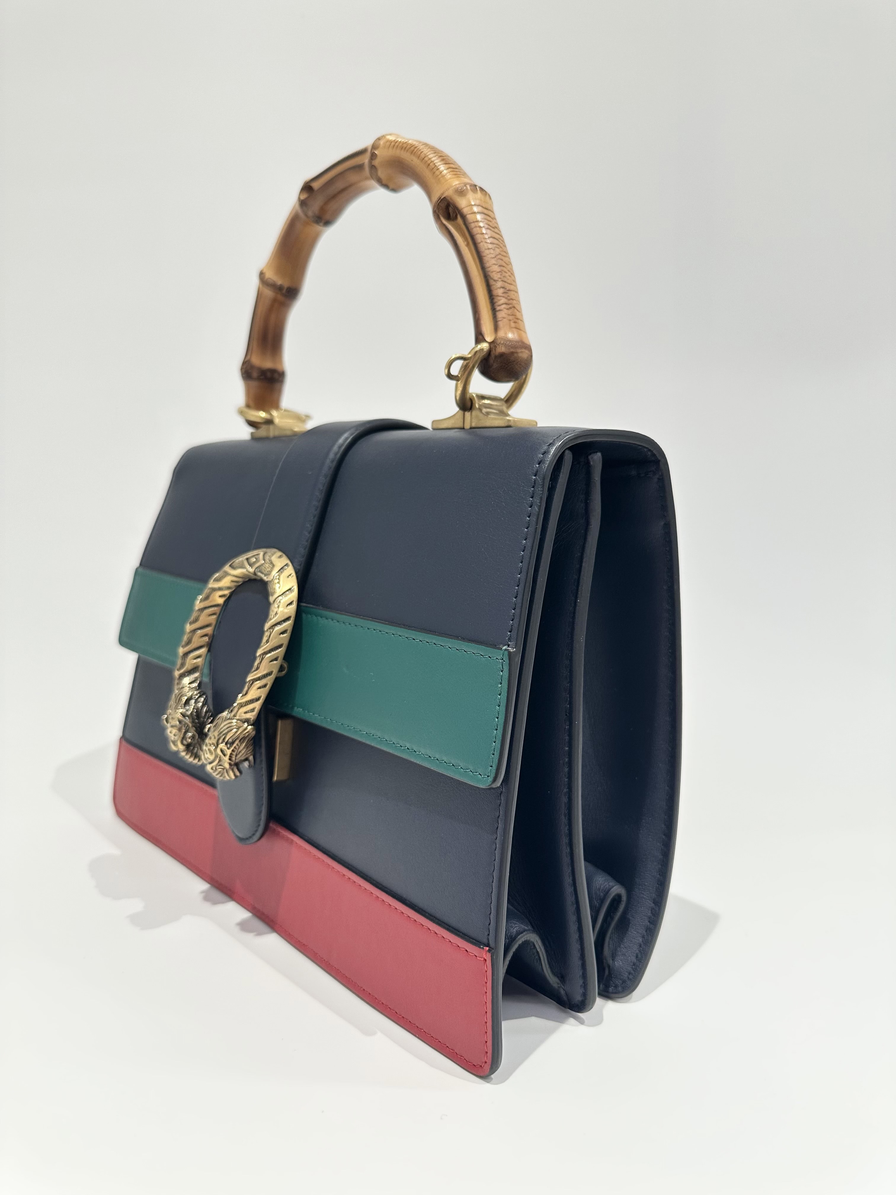 Gucci Blue Dionysus Bamboo Top Handle Leather Handbag