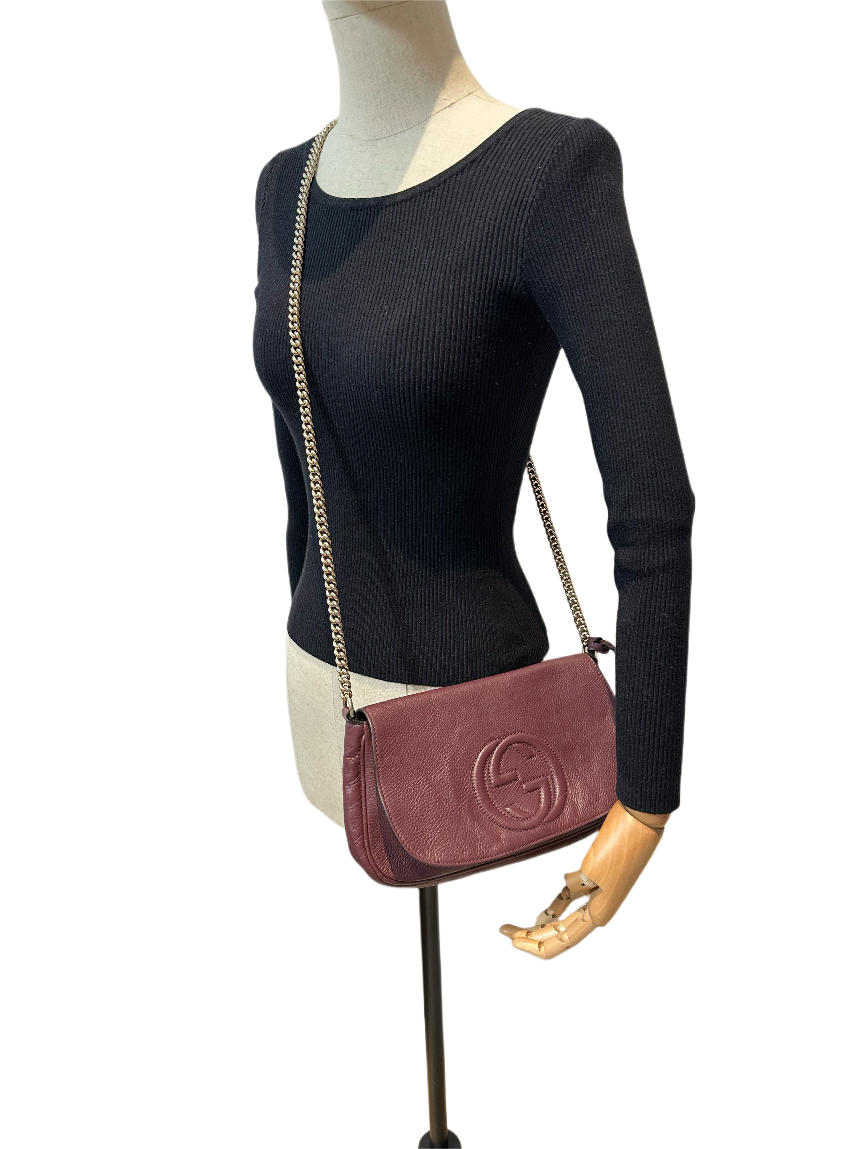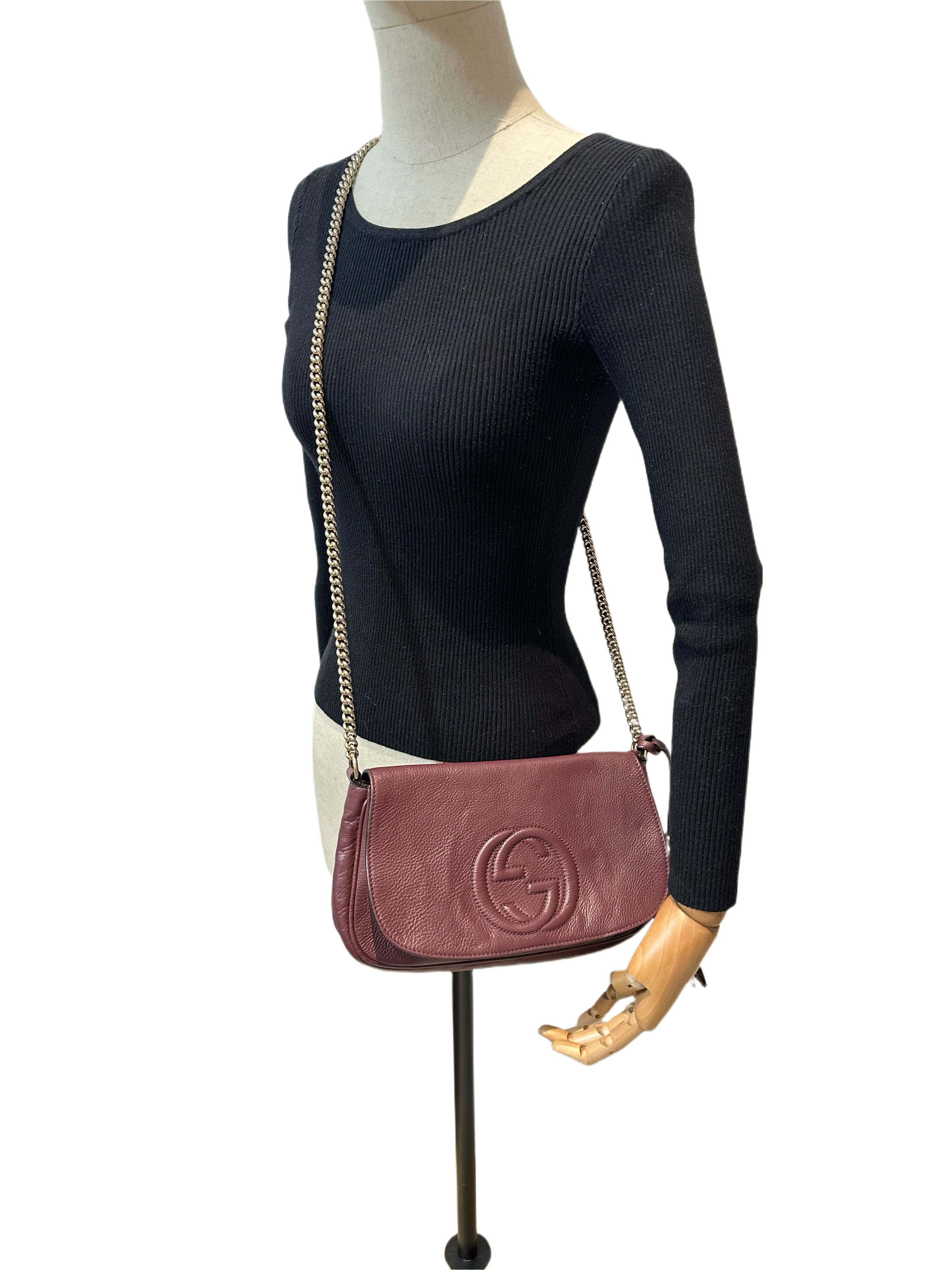 Gucci Burgundy soho long flap crossbody bag