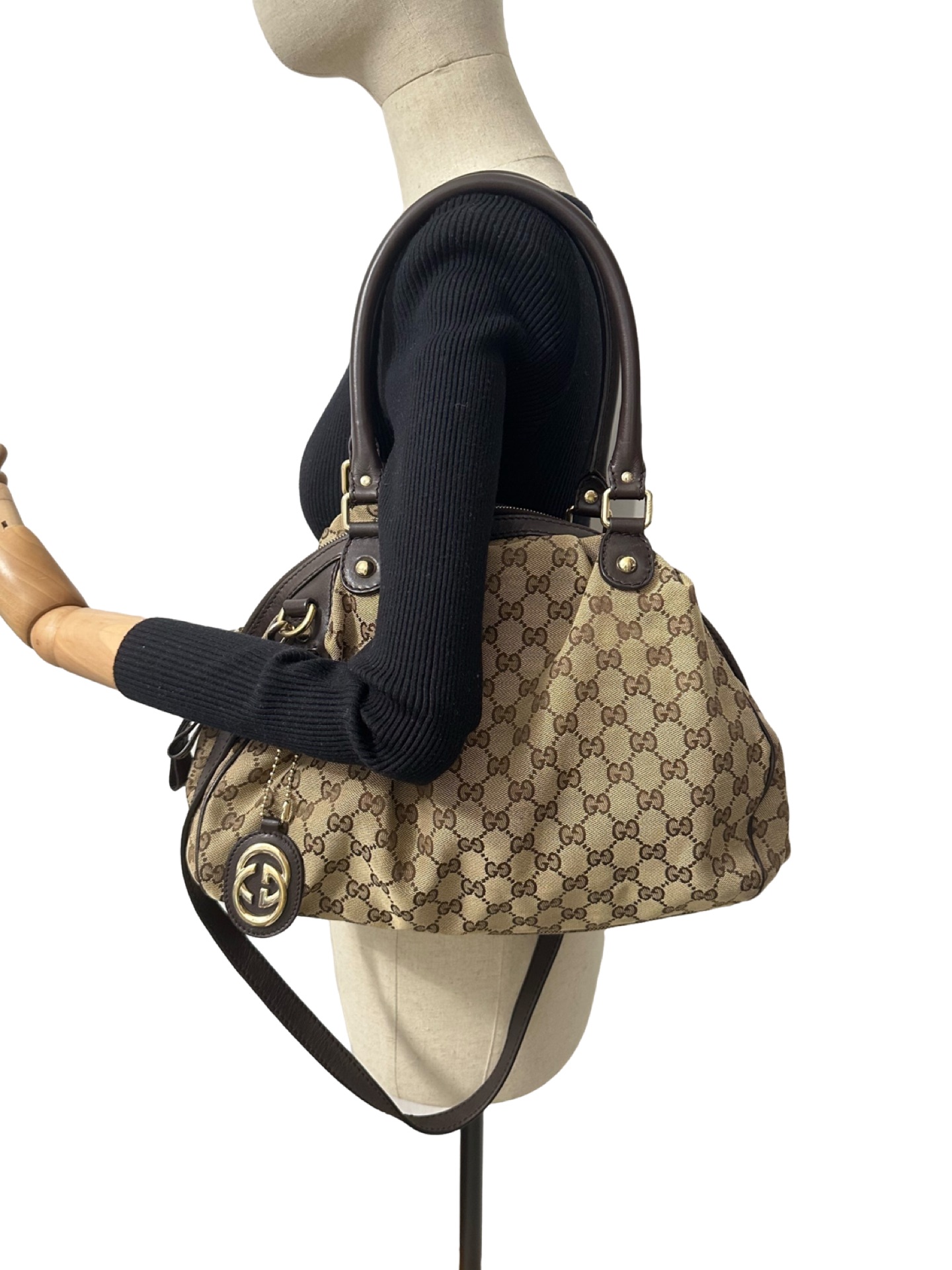 Gucci canvas brown shoulder bag