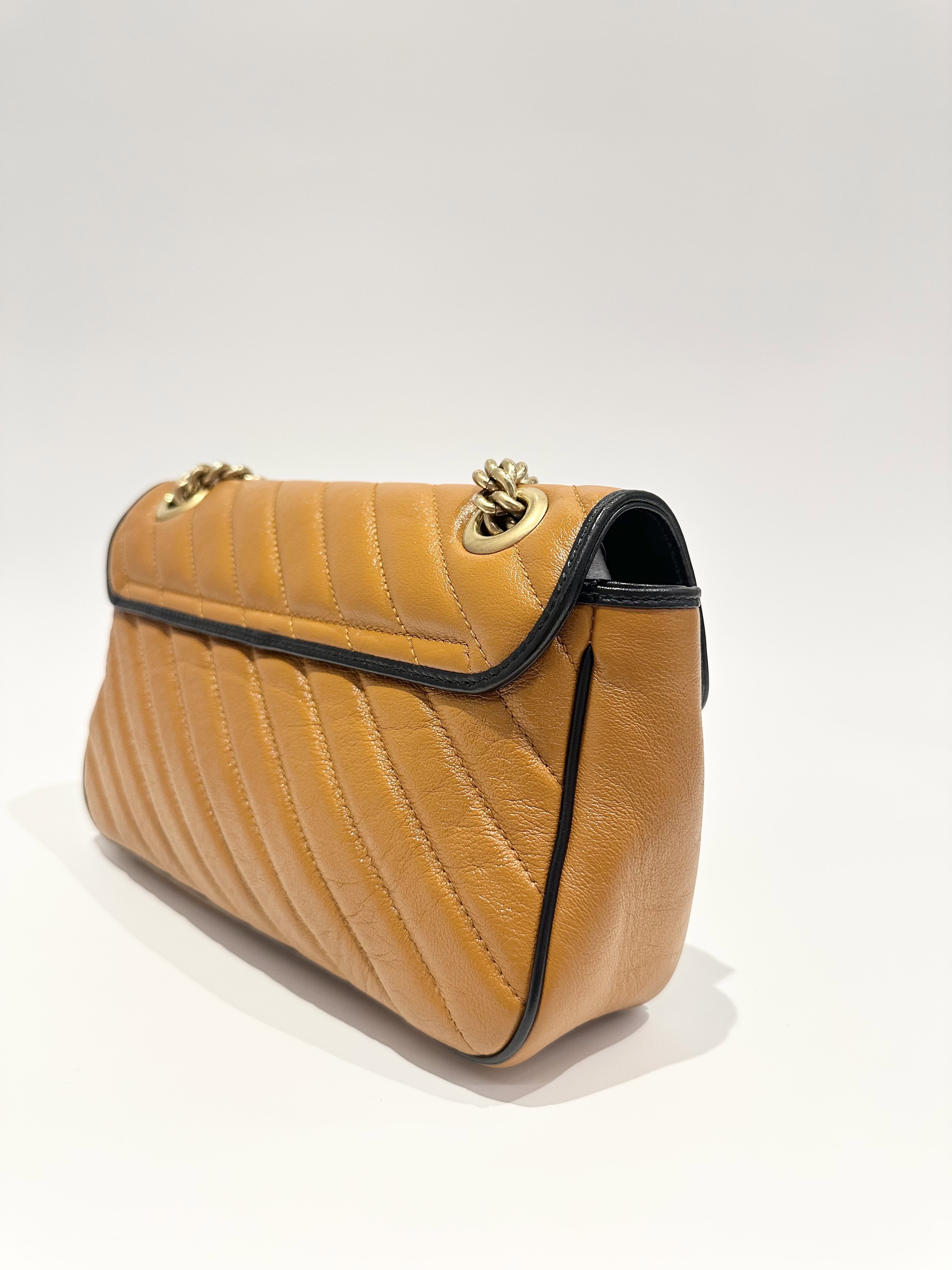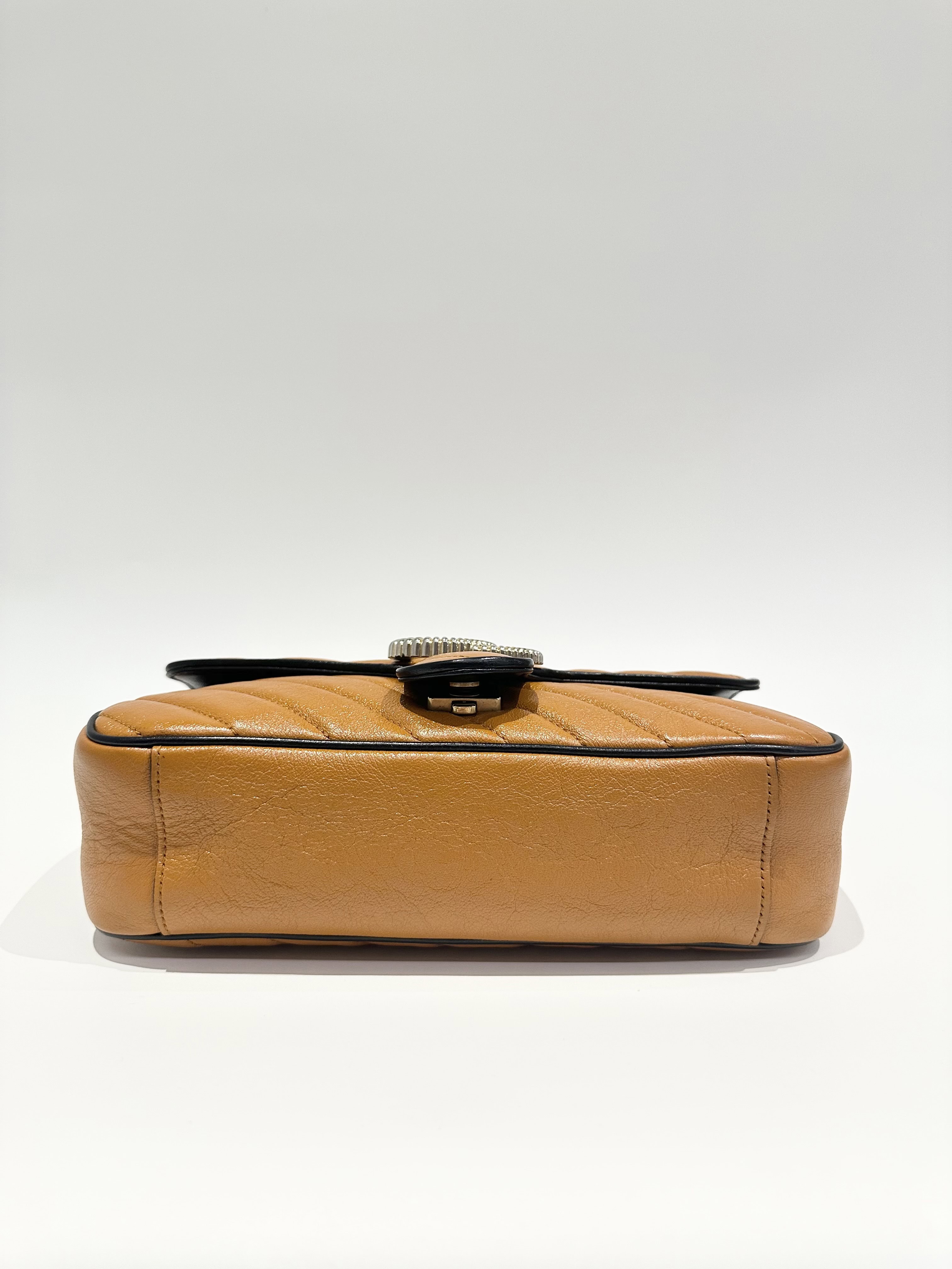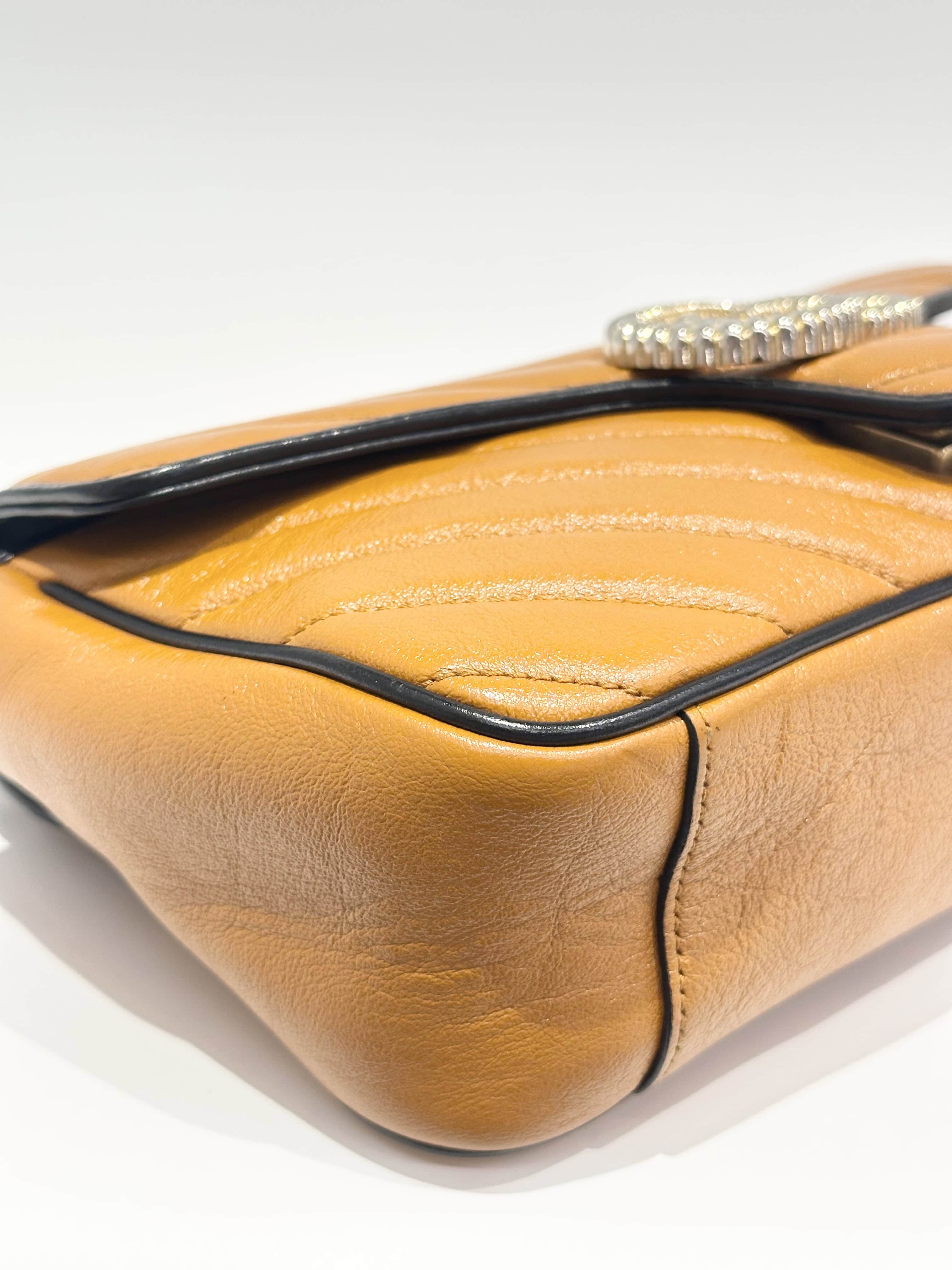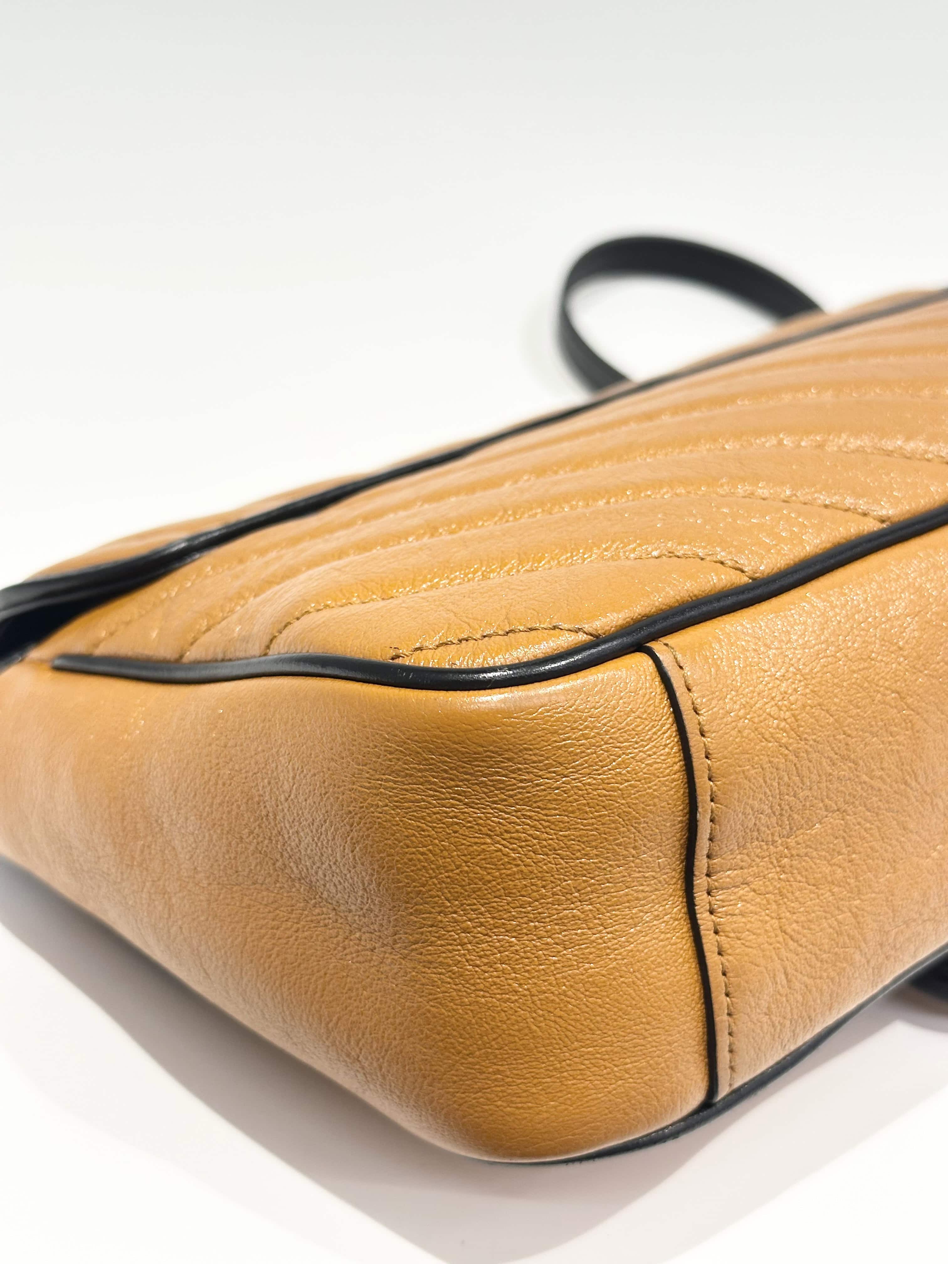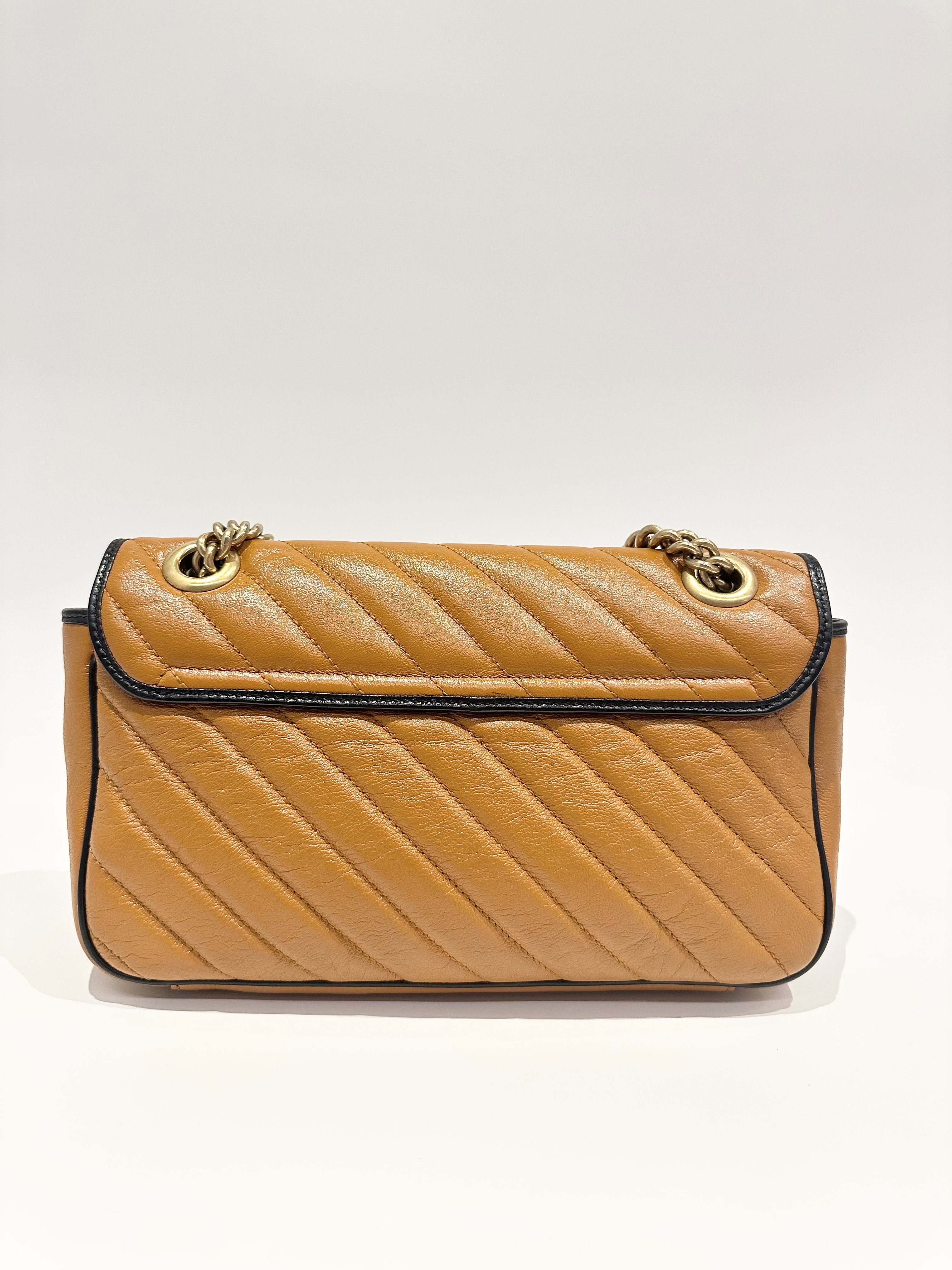 Gucci Caramel GG Marmont Flap Leather Handbag