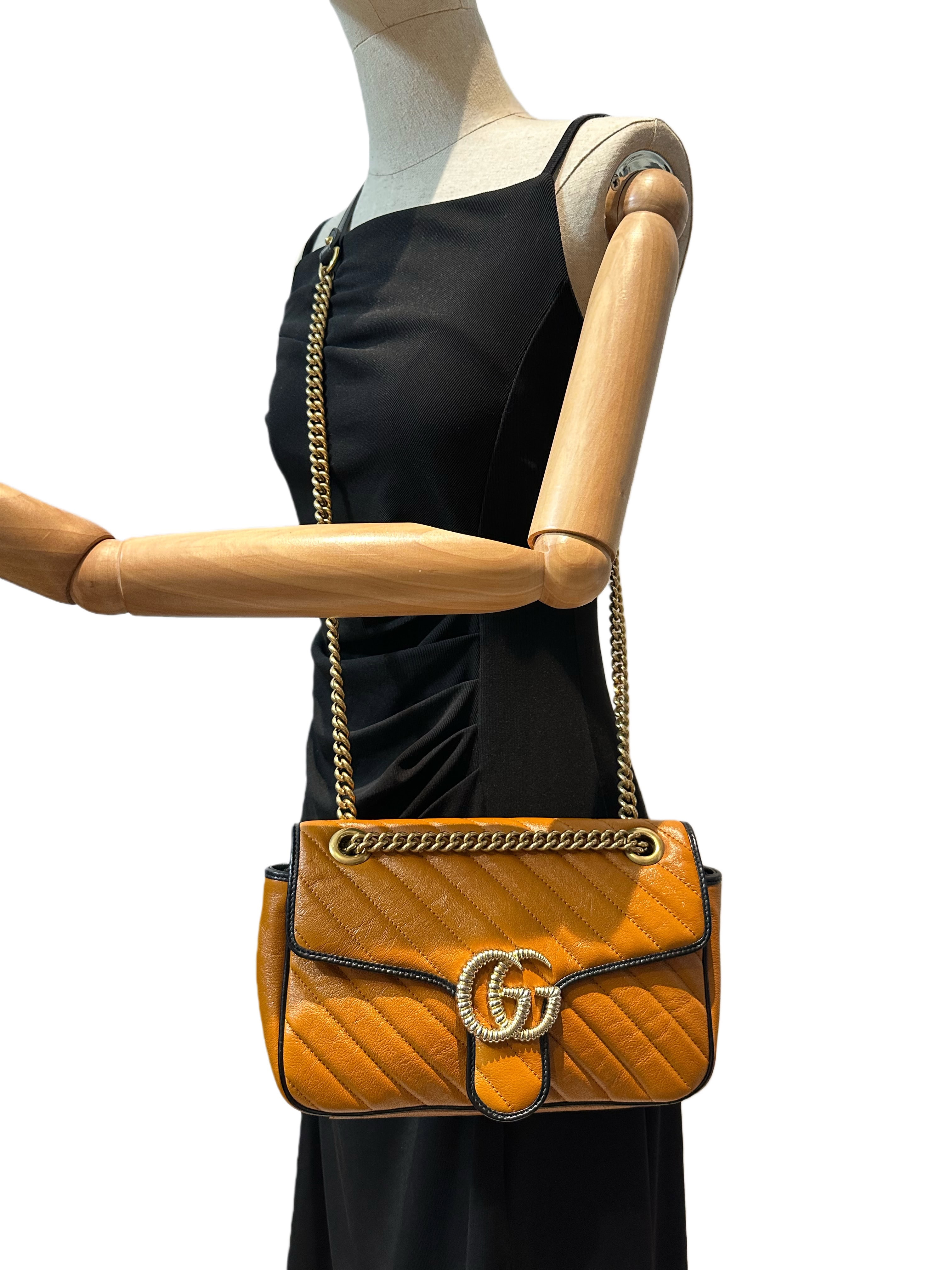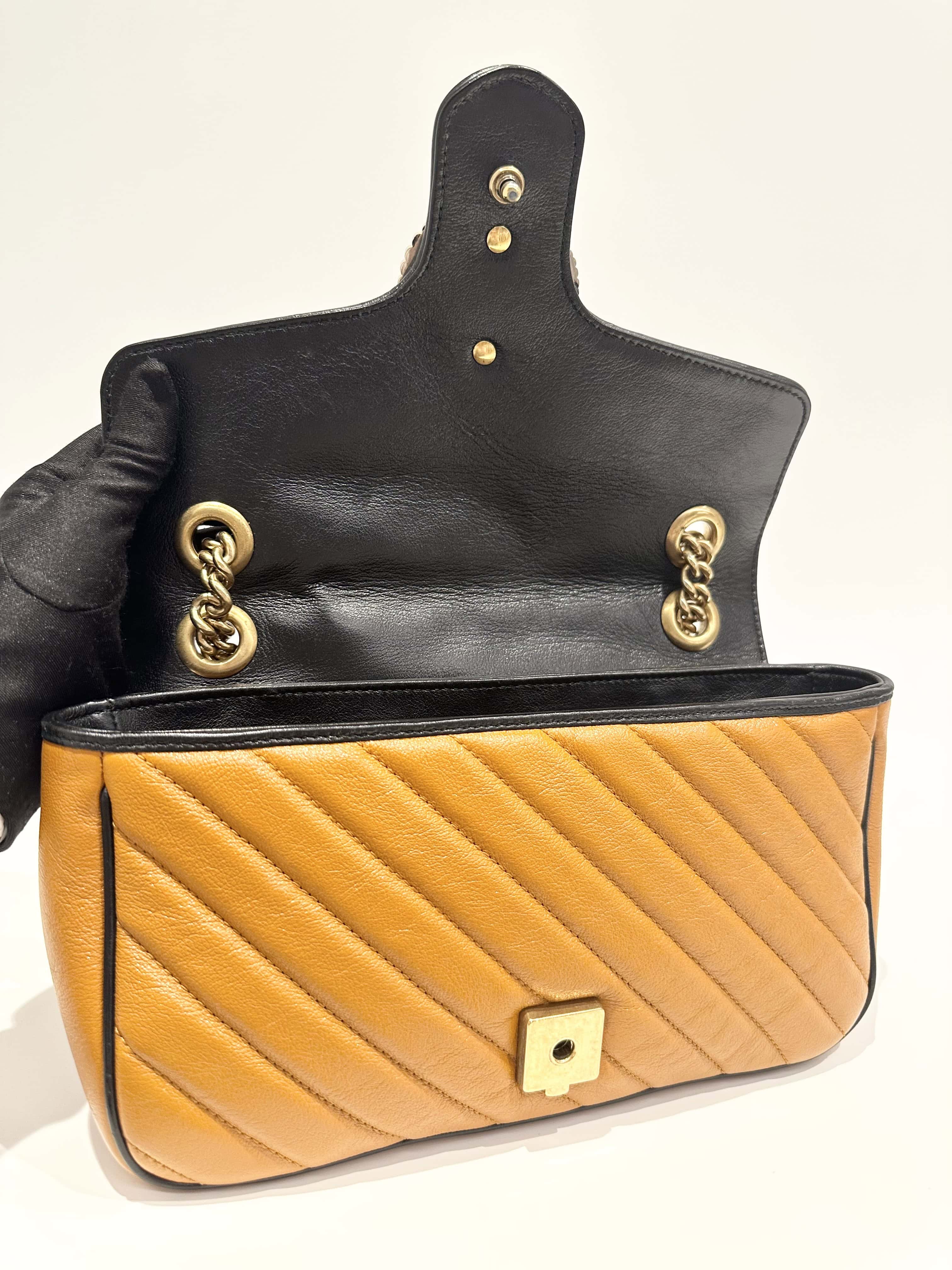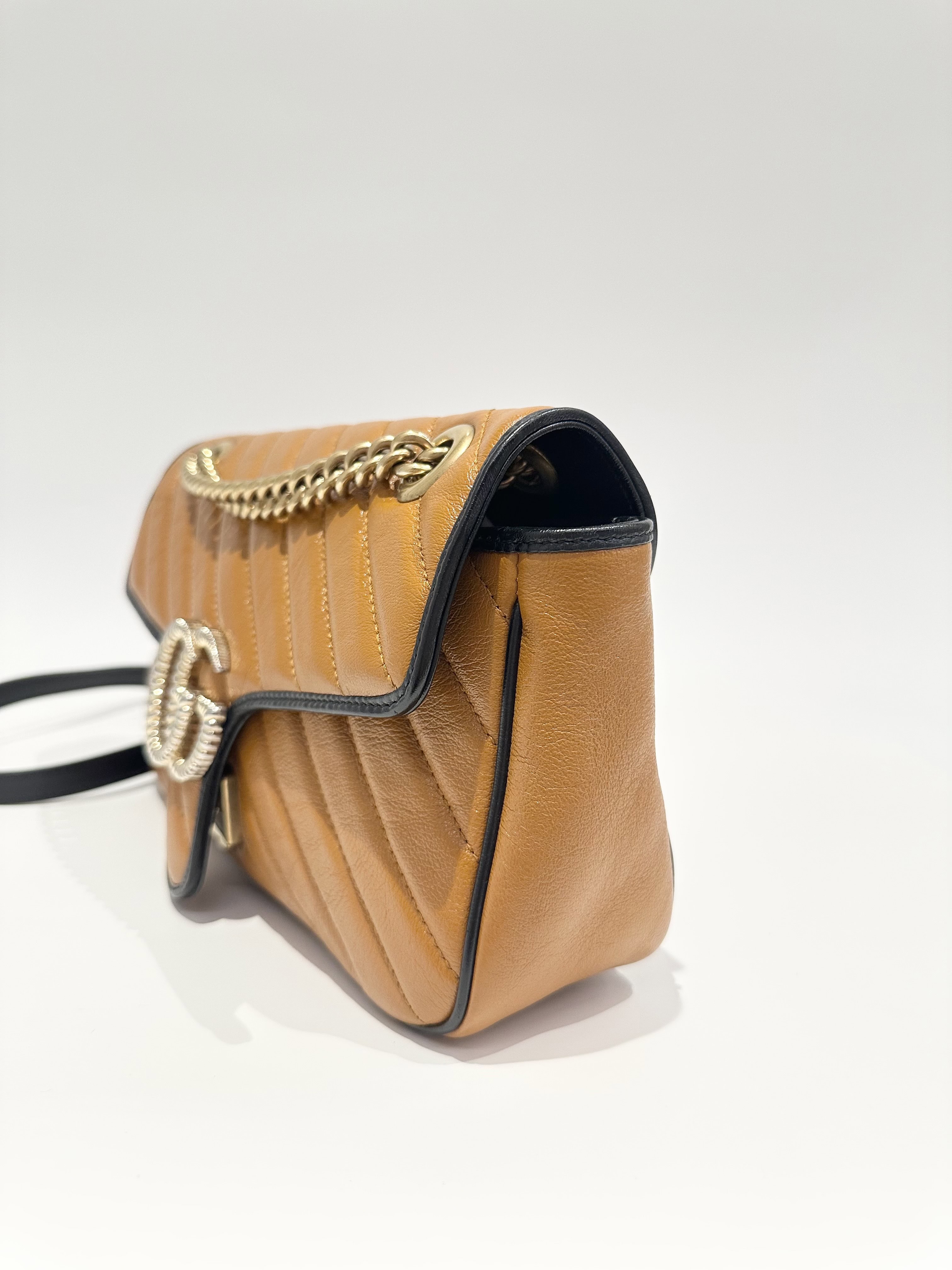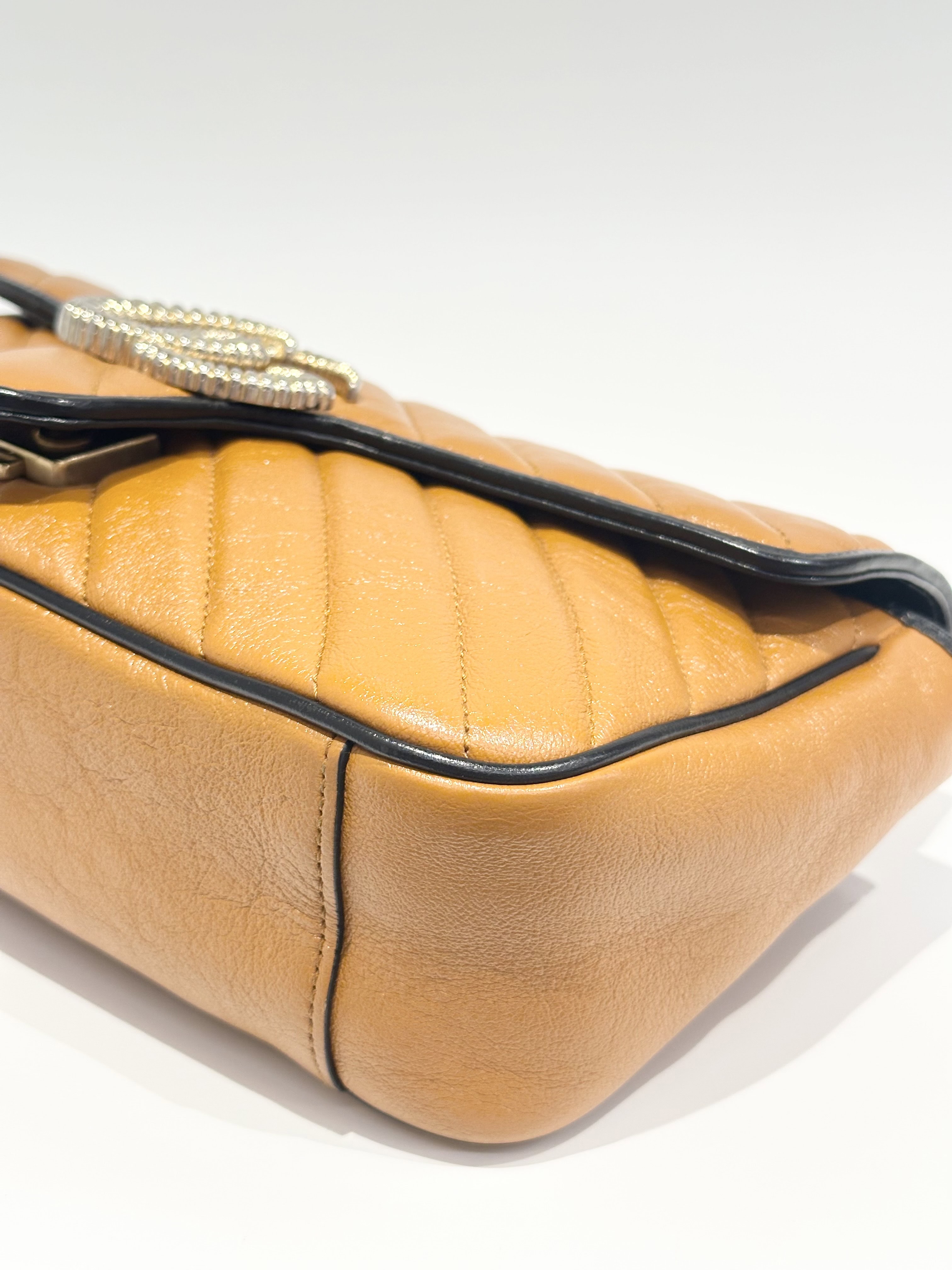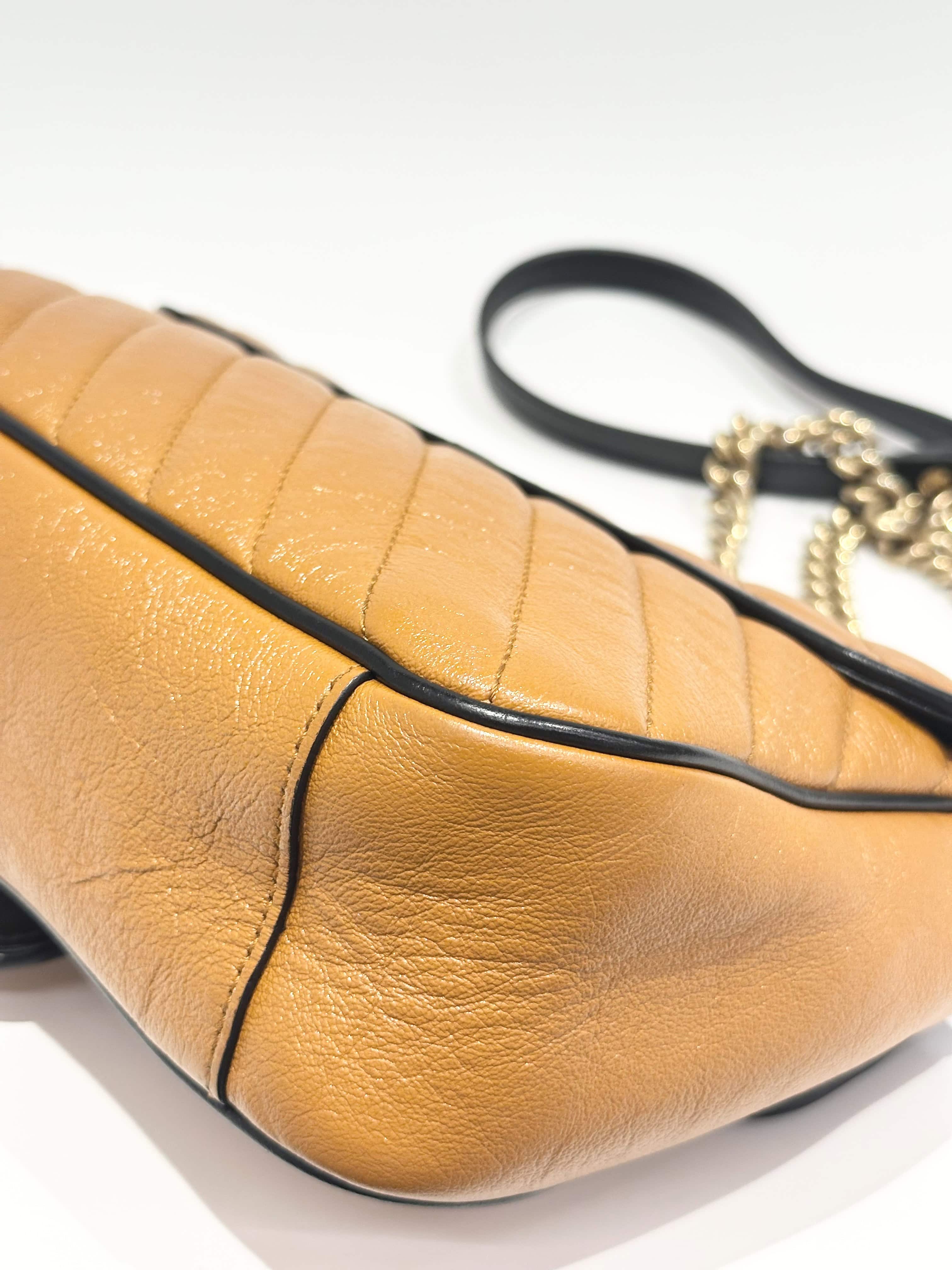 Gucci Caramel GG Marmont Flap Leather Handbag