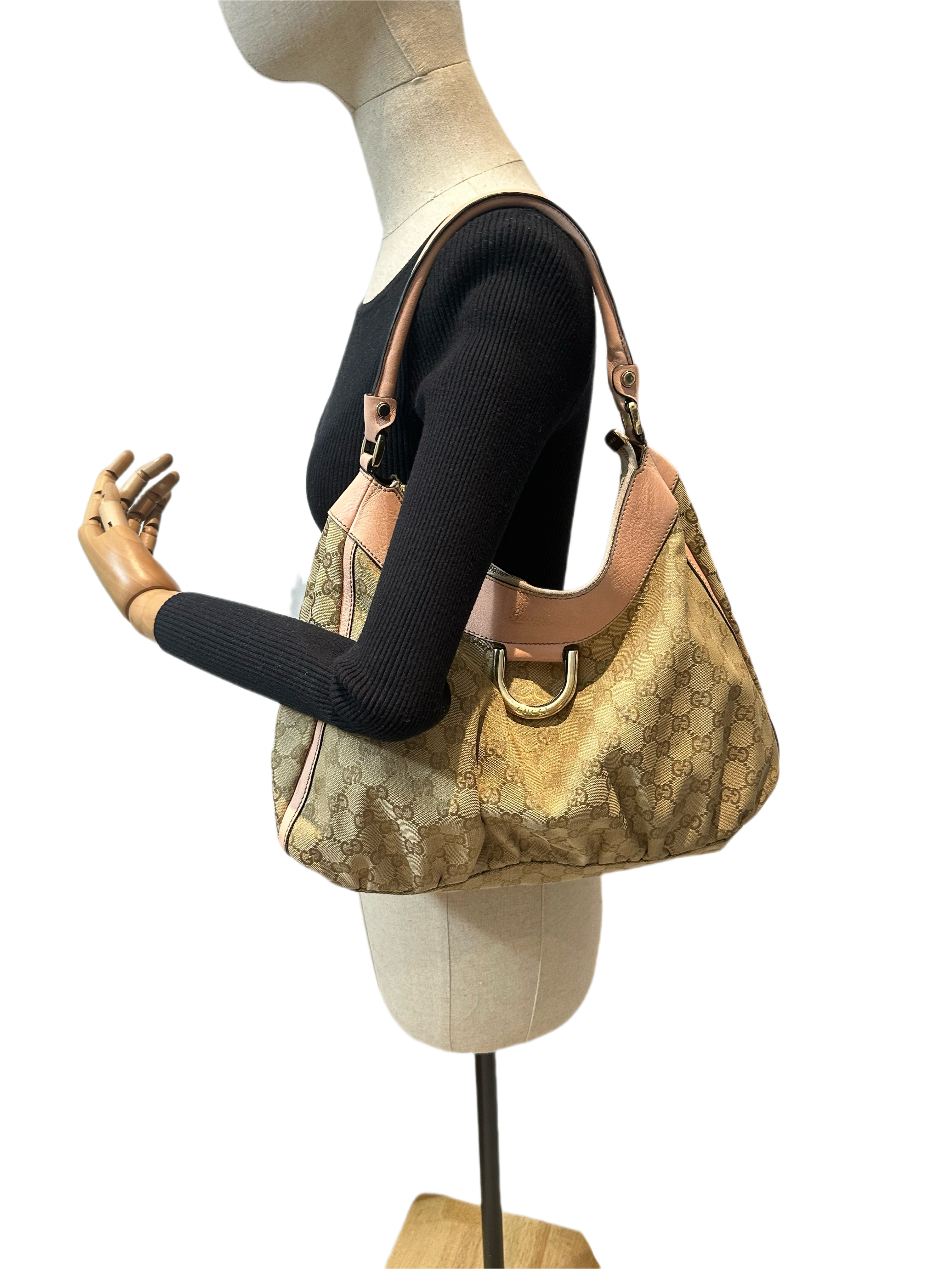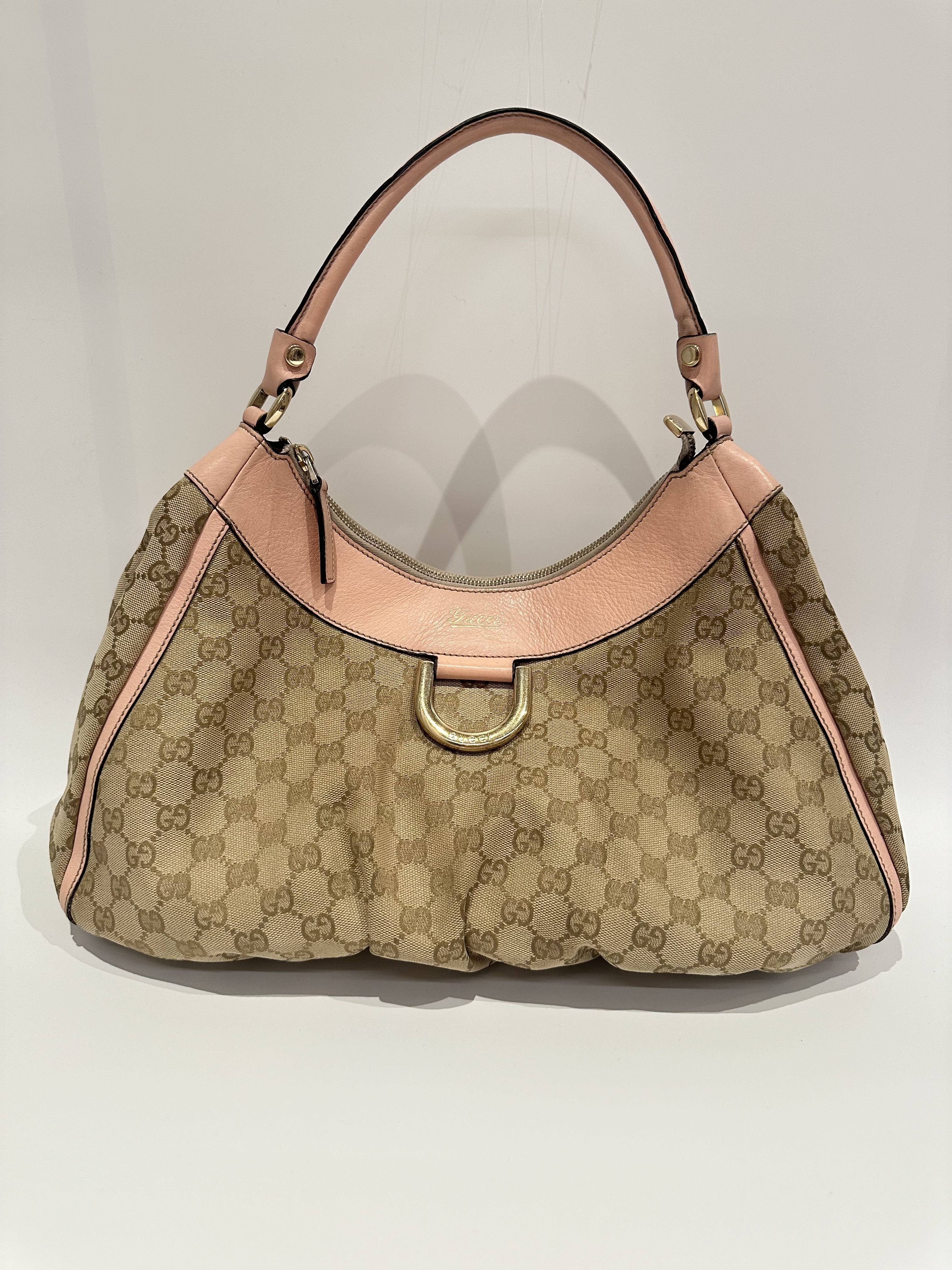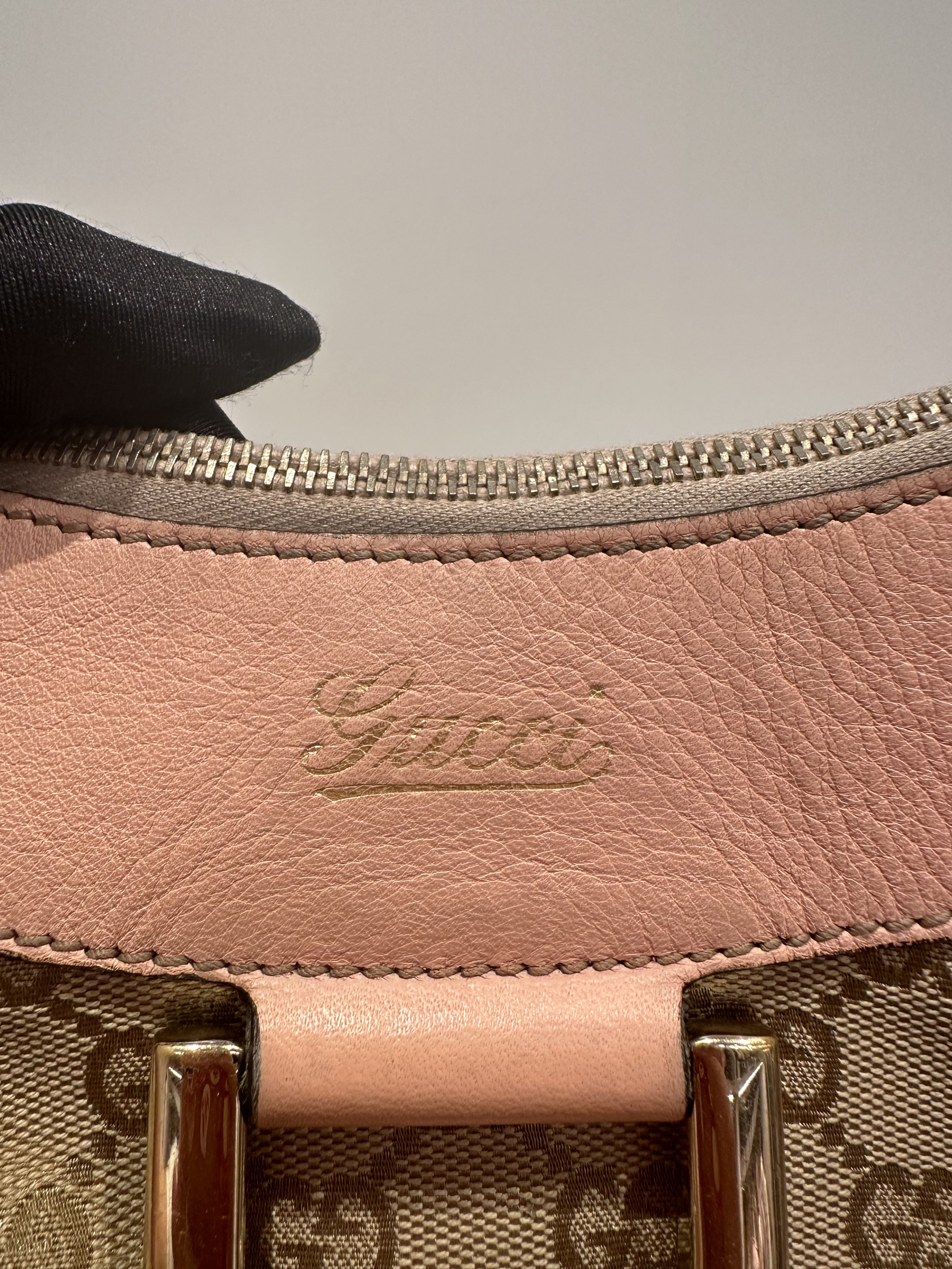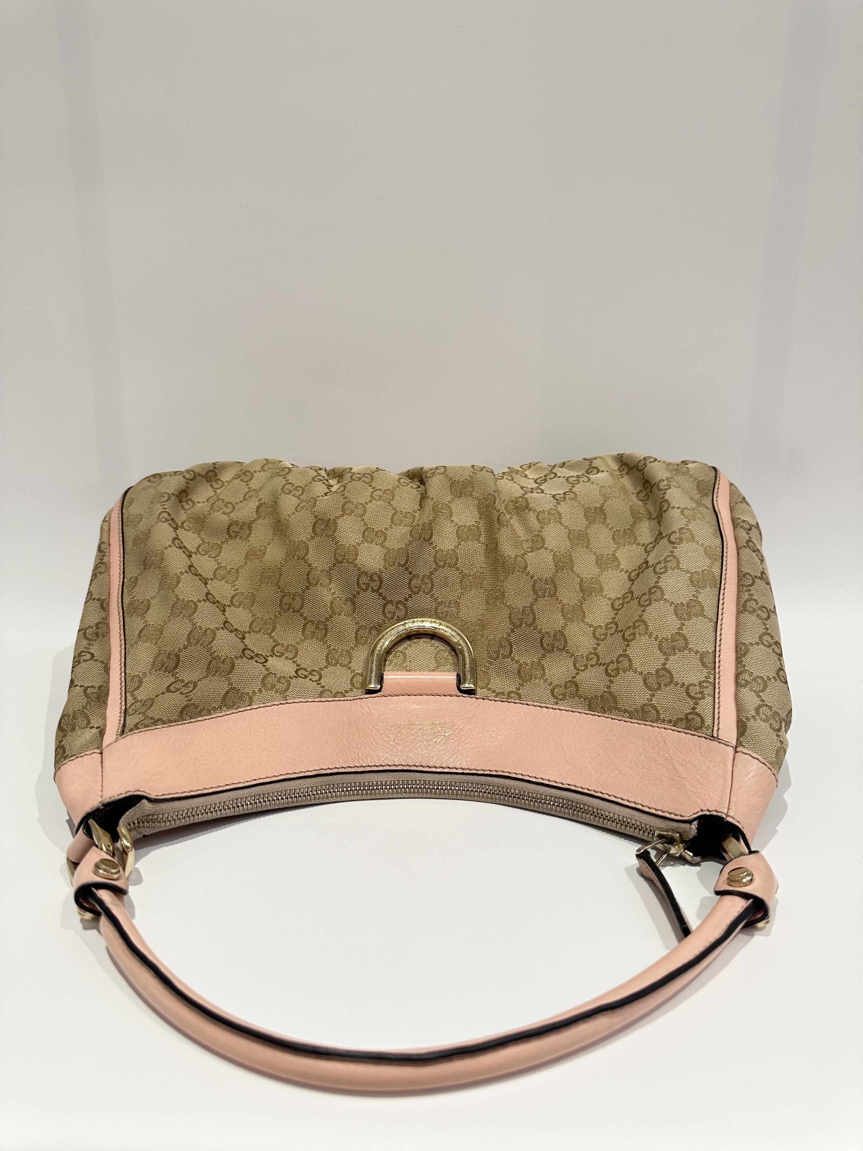 Gucci D-ring pink brown GG canvas shoulder bag